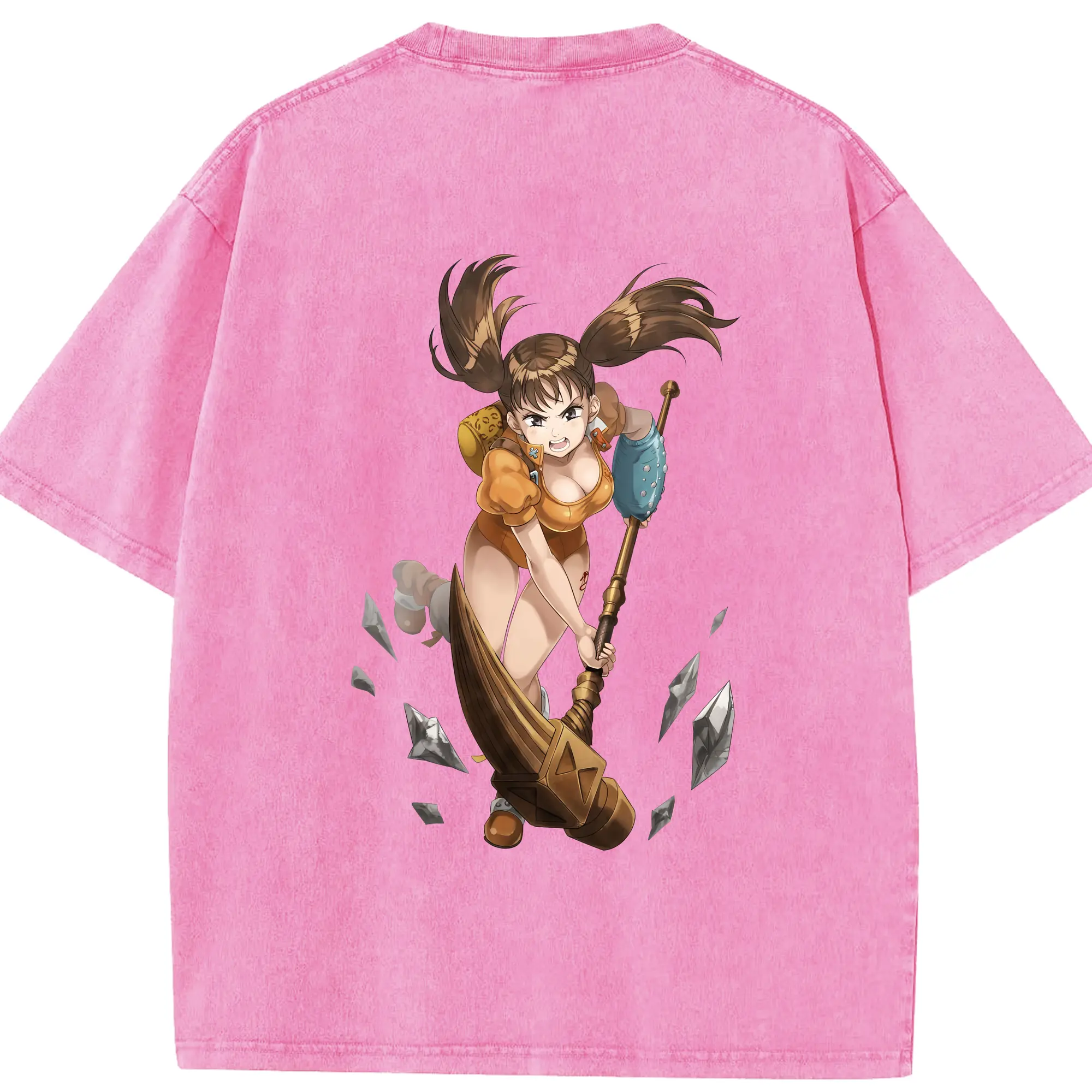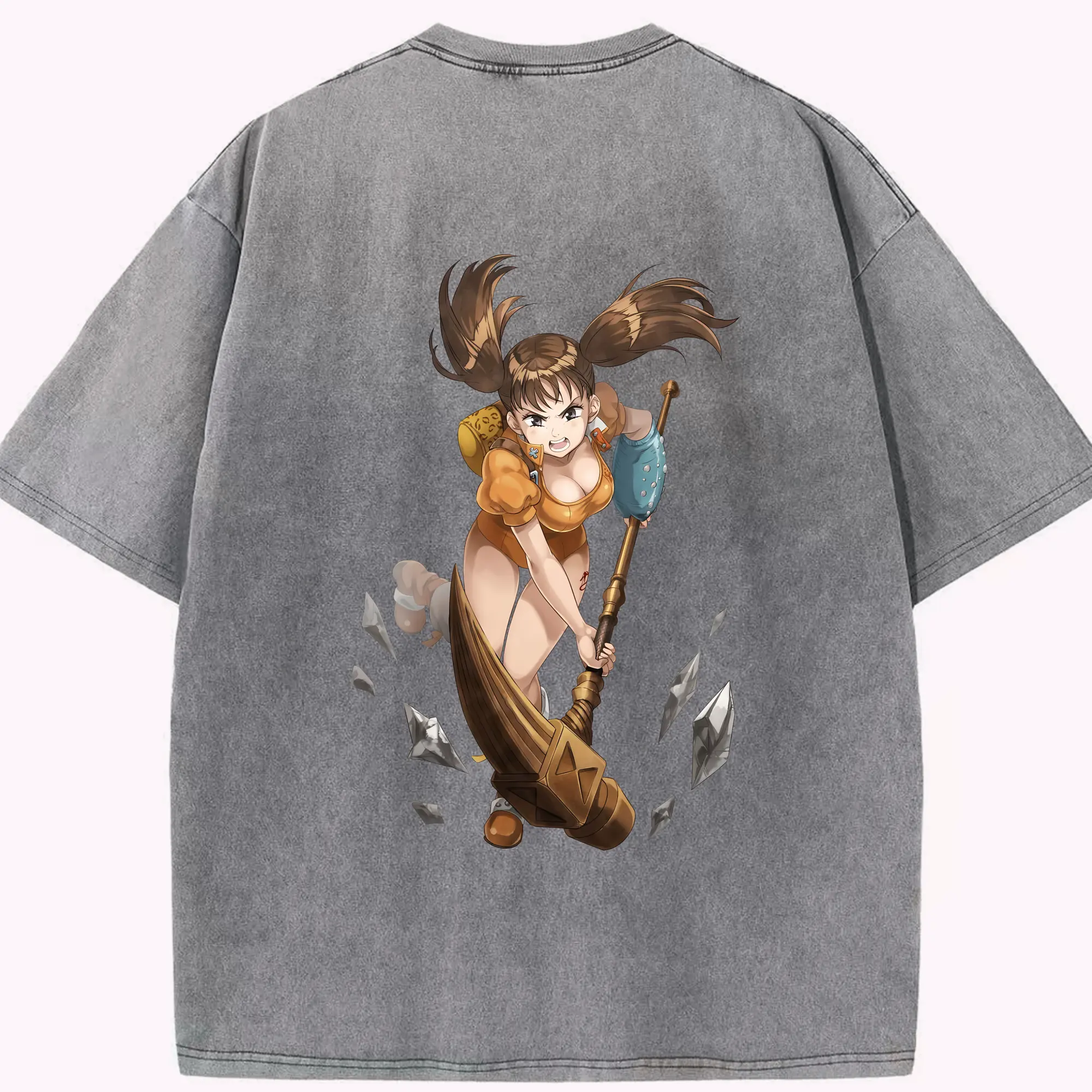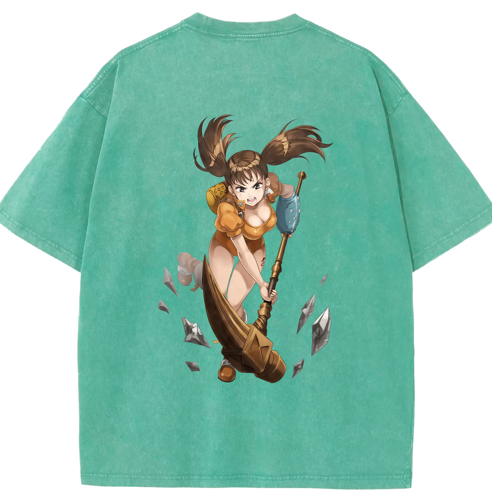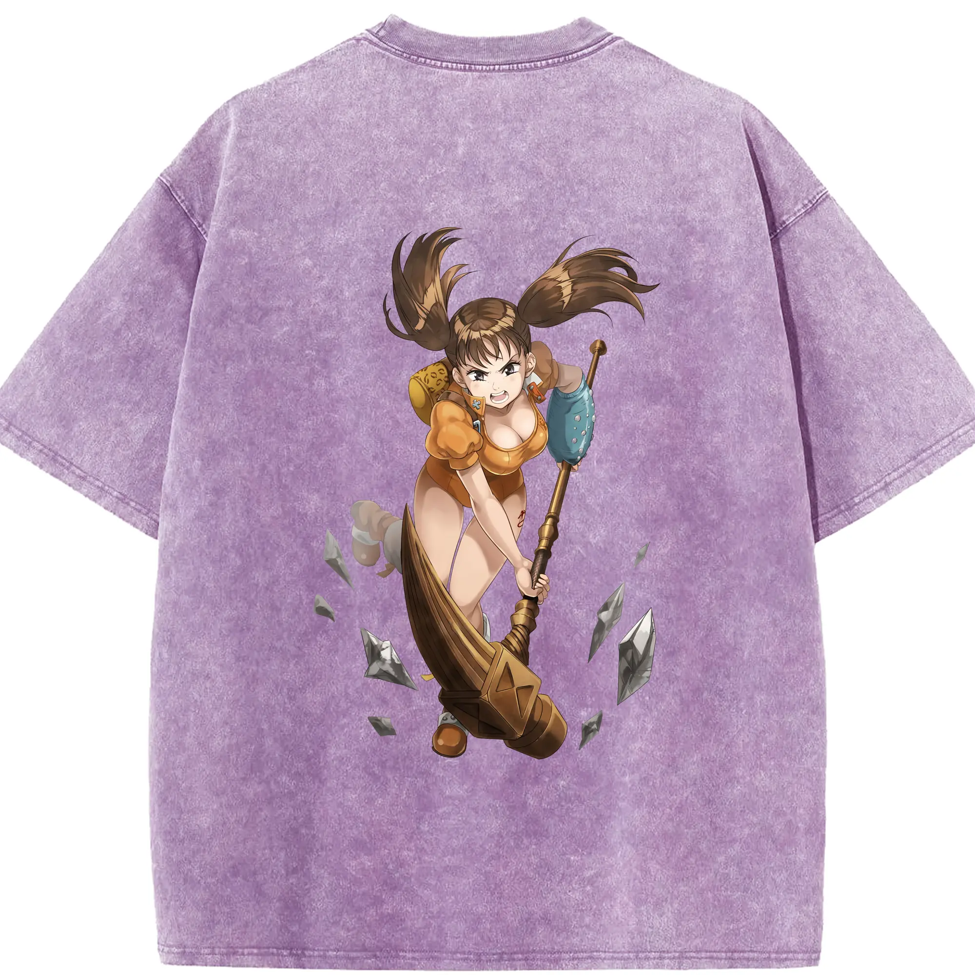 七つの大罪 グッズ ディアンヌ - 綿100% ヴィンテージ風 半袖Tシャツ ・ フロントプリント ・ 柔らか肌触り ・ 通気性 快適 ・ スポーツ カジュアル 外出用