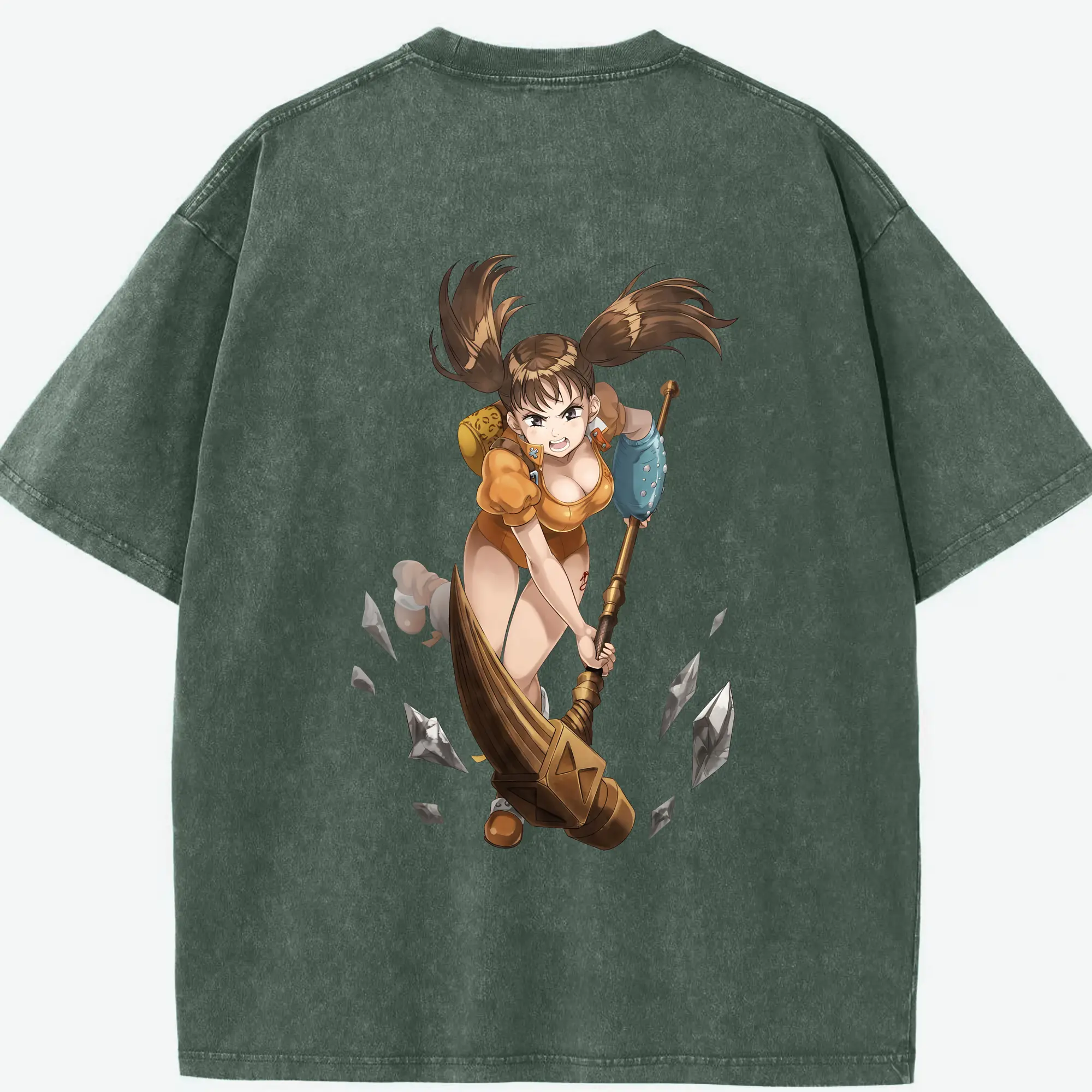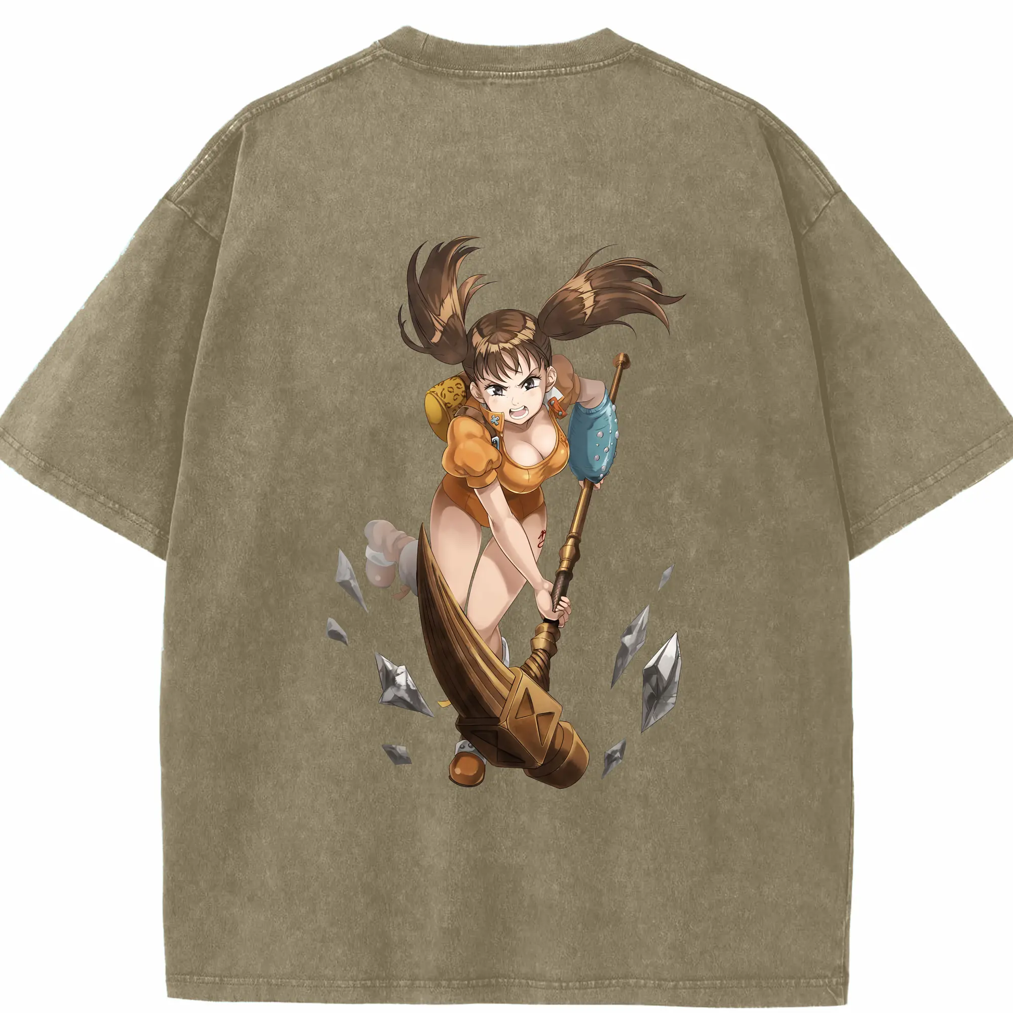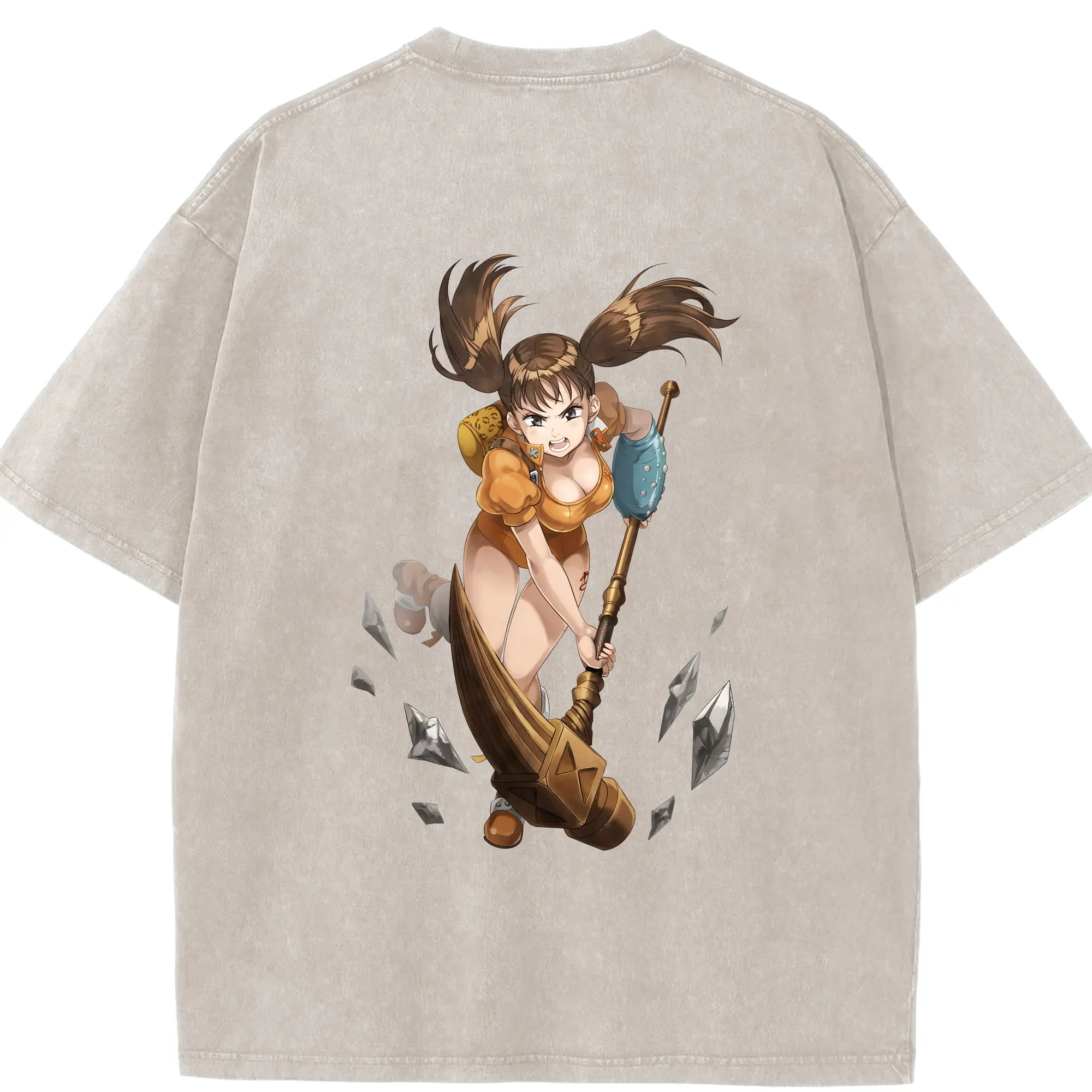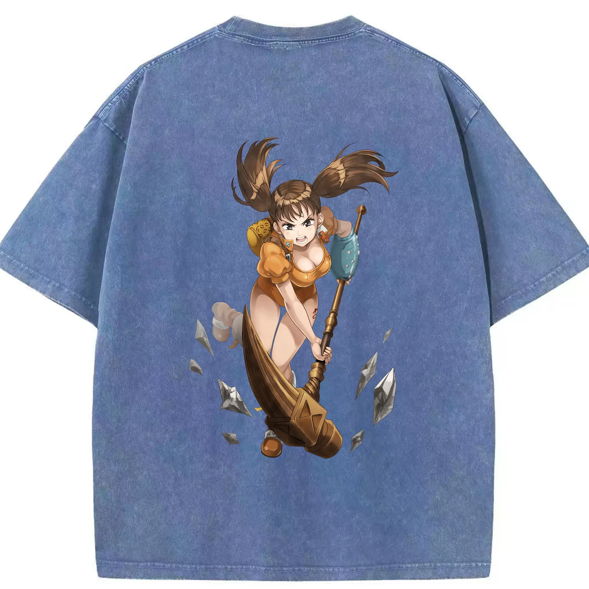 七つの大罪 グッズ ディアンヌ - 綿100% ヴィンテージ風 半袖Tシャツ ・ フロントプリント ・ 柔らか肌触り ・ 通気性 快適 ・ スポーツ カジュアル 外出用