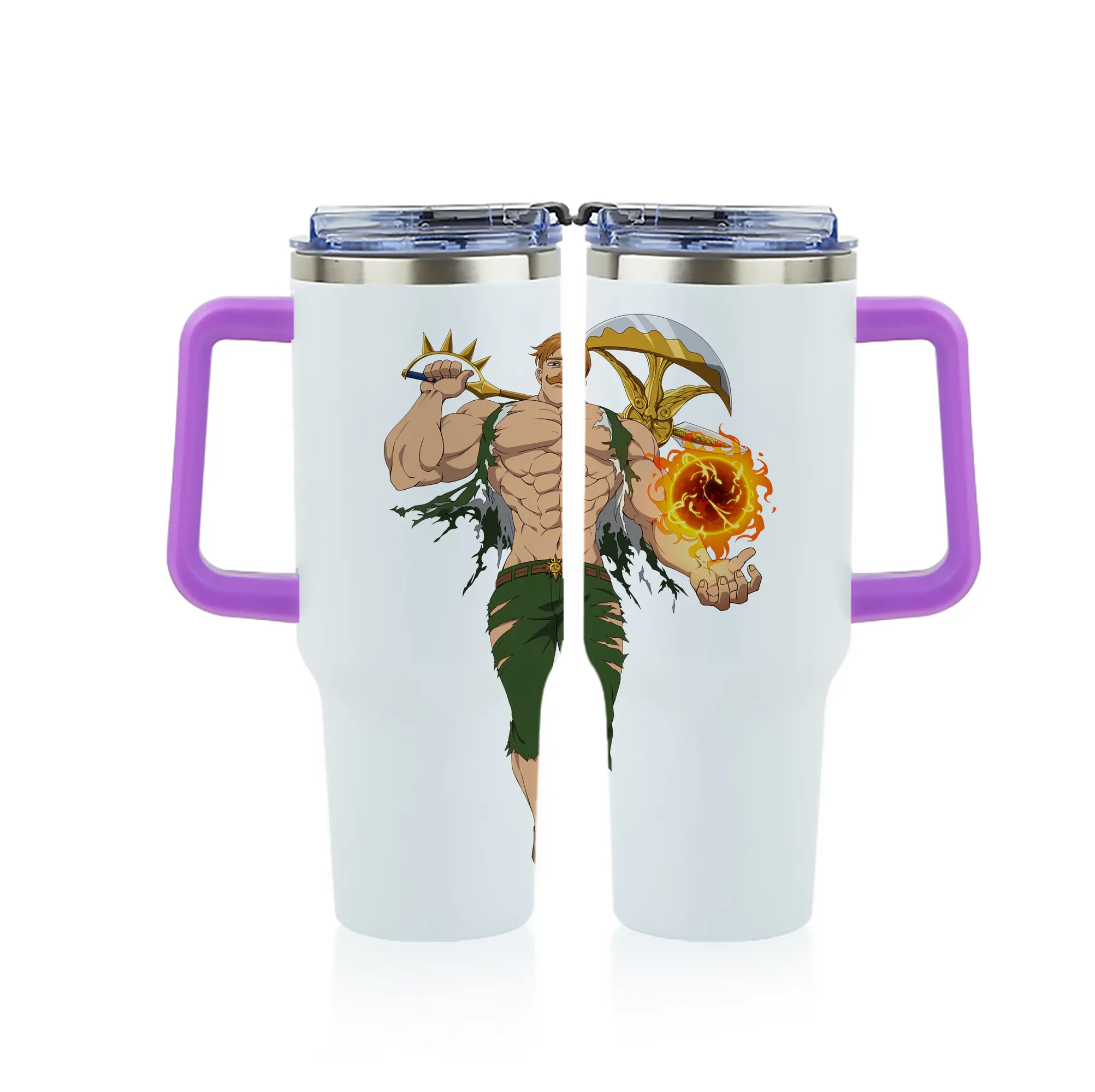 七つの大罪 グッズ エスカノール - 1200mL フルプリント車用タンブラー ・ 304ステンレス 内側 ・ 201ステンレス 外側 ・ 保温 保冷 ・ 通勤 ドライブ アウトドア用