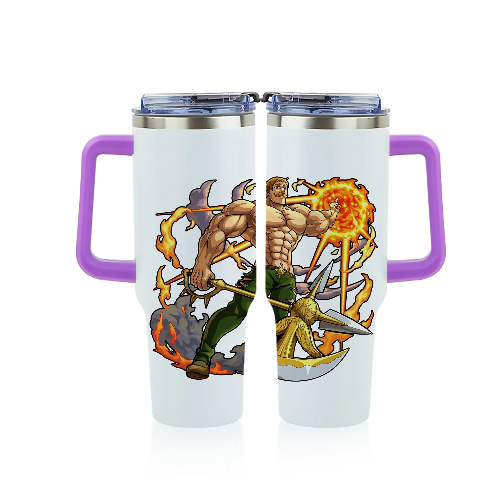 七つの大罪 グッズ エスカノール - 1200mL フルプリント車用タンブラー ・ 304ステンレス 内側 ・ 201ステンレス 外側 ・ 保温 保冷 ・ 通勤 ドライブ アウトドア用