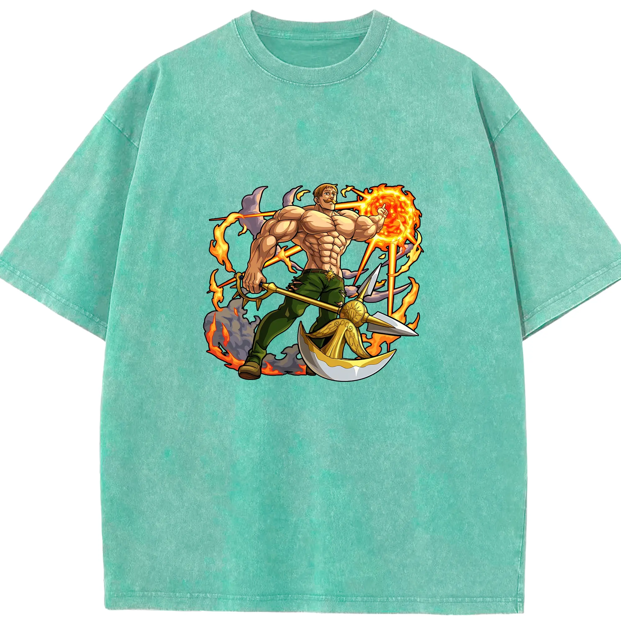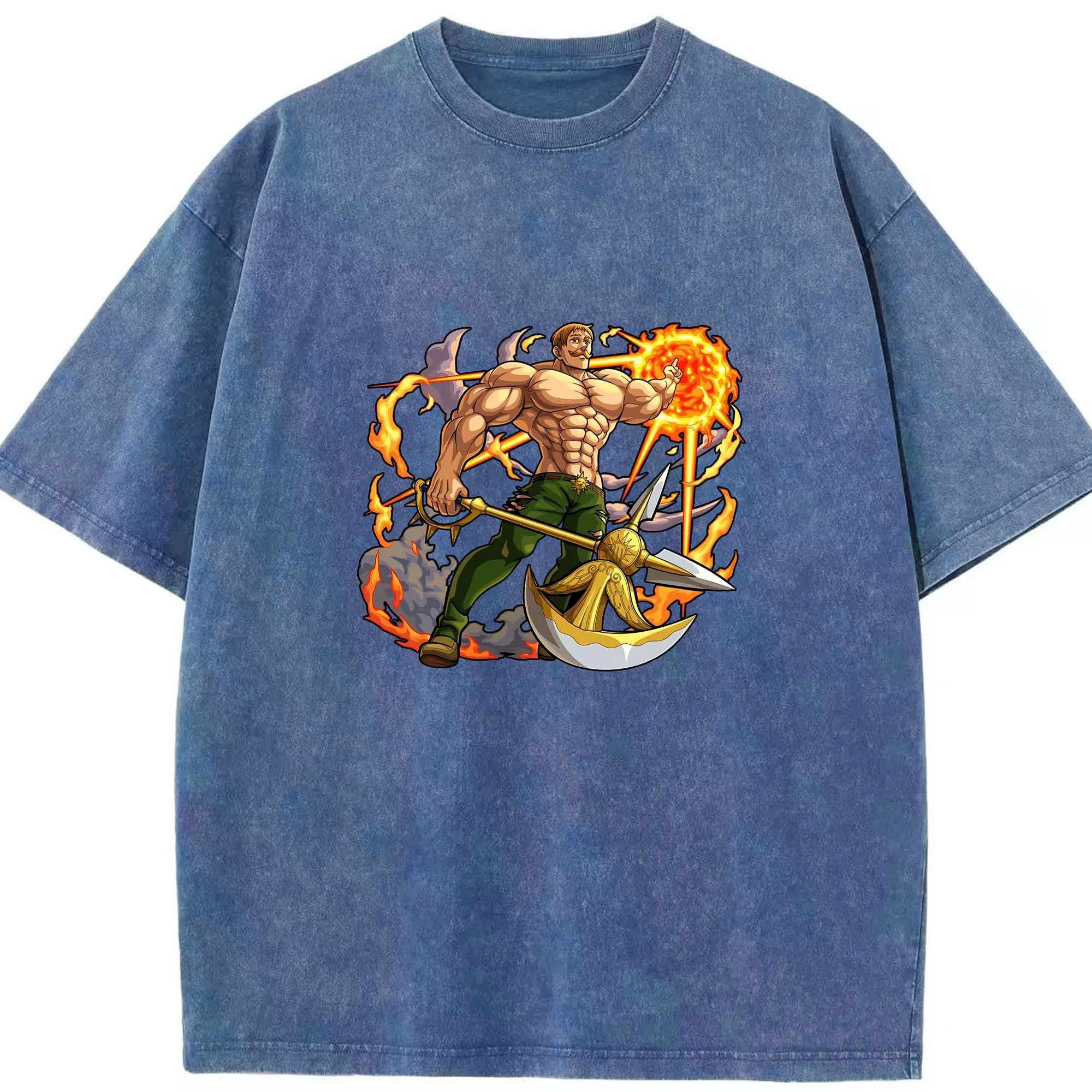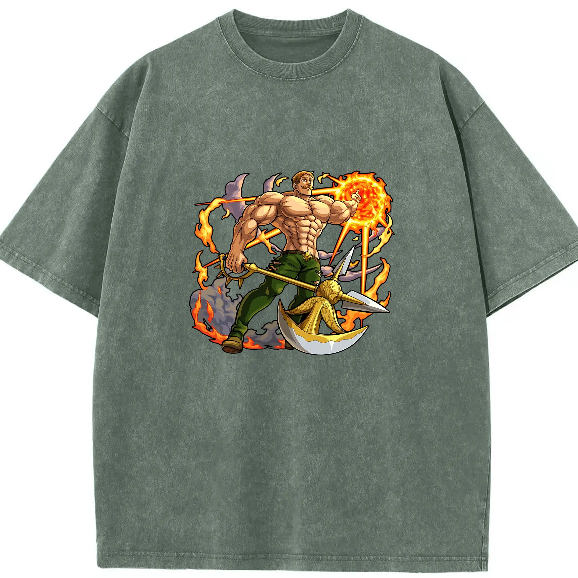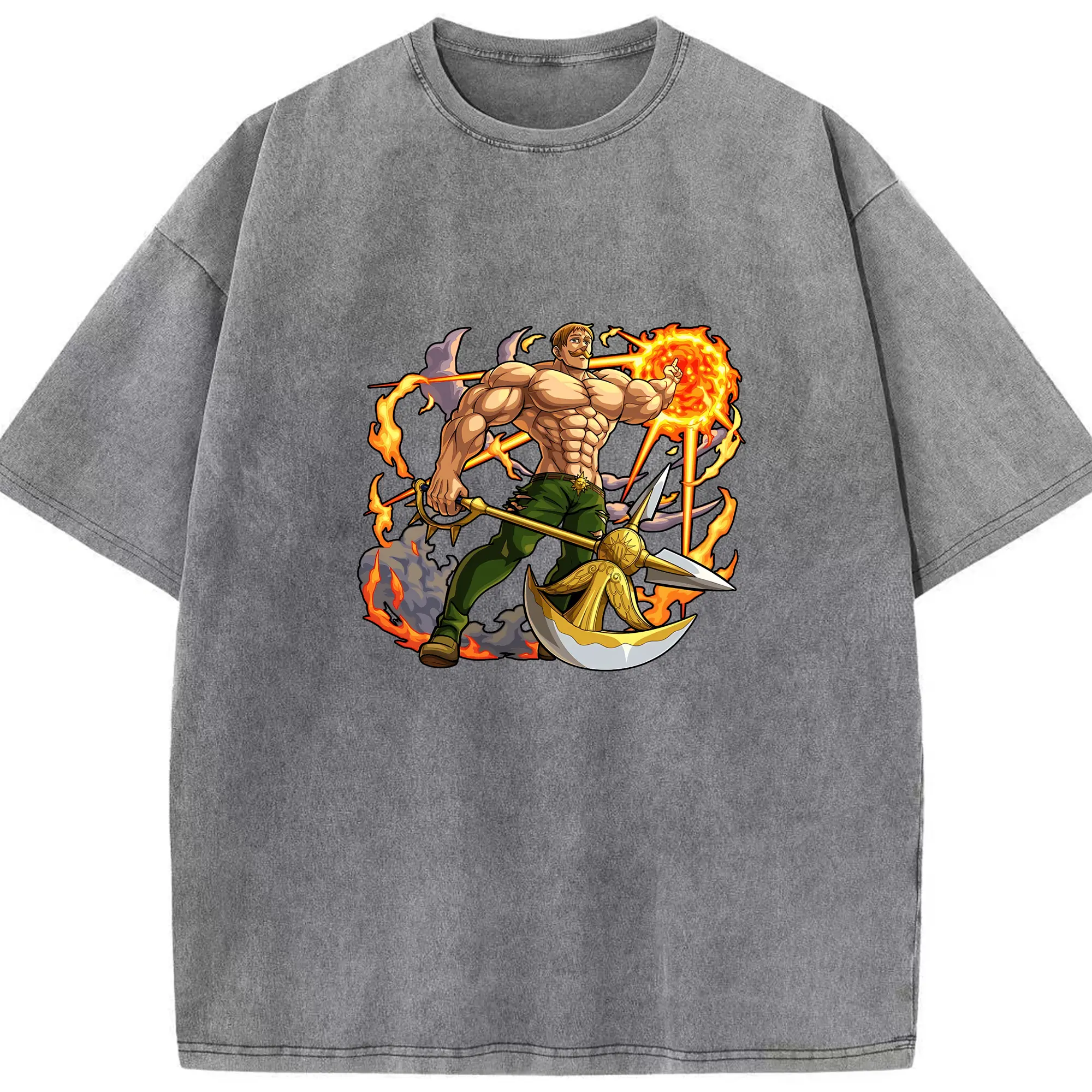 七つの大罪 グッズ エスカノール - 綿100% ヴィンテージ風 半袖Tシャツ ・ 背面プリント ・ 柔らか肌触り ・ 通気性 快適 ・ スポーツ カジュアル 外出用