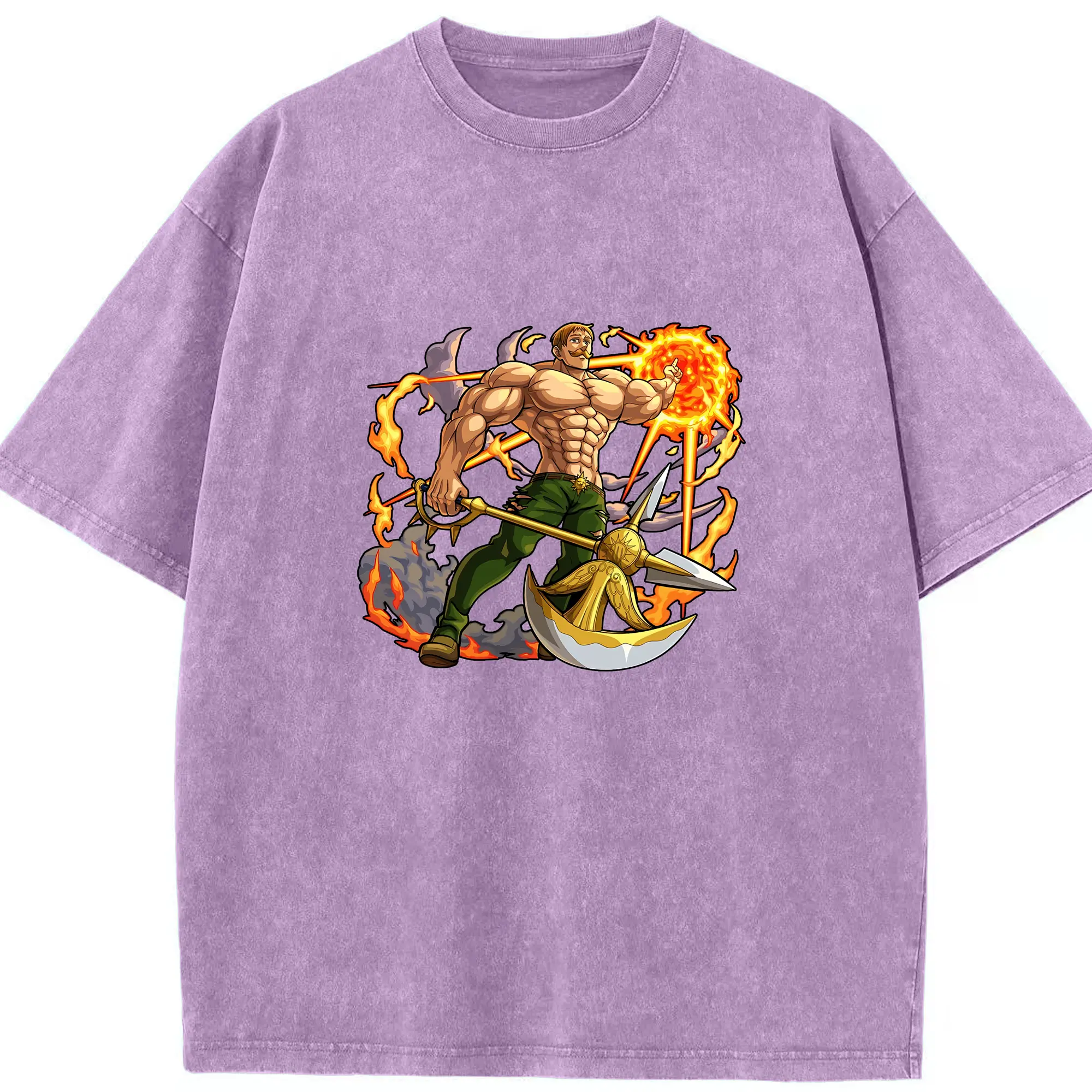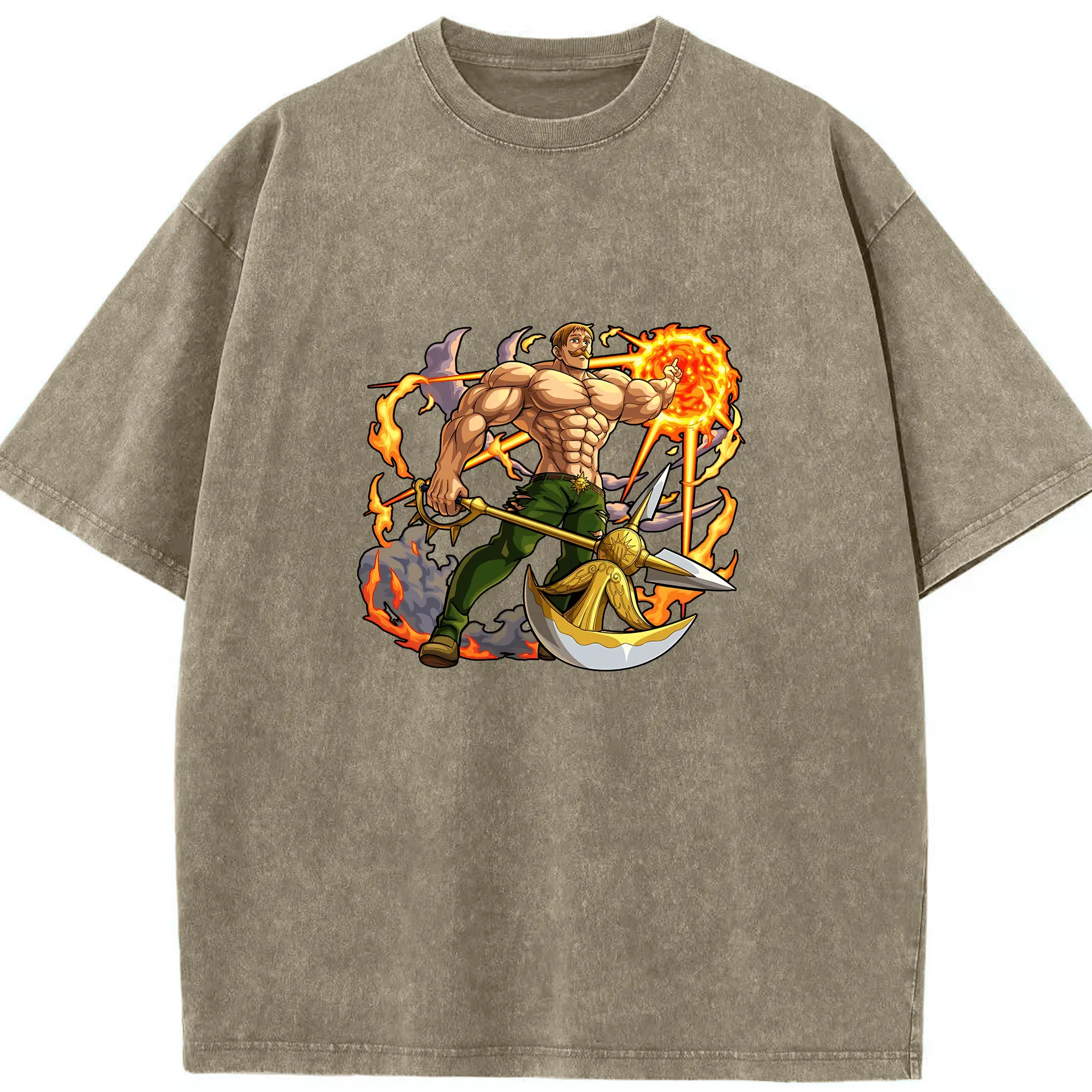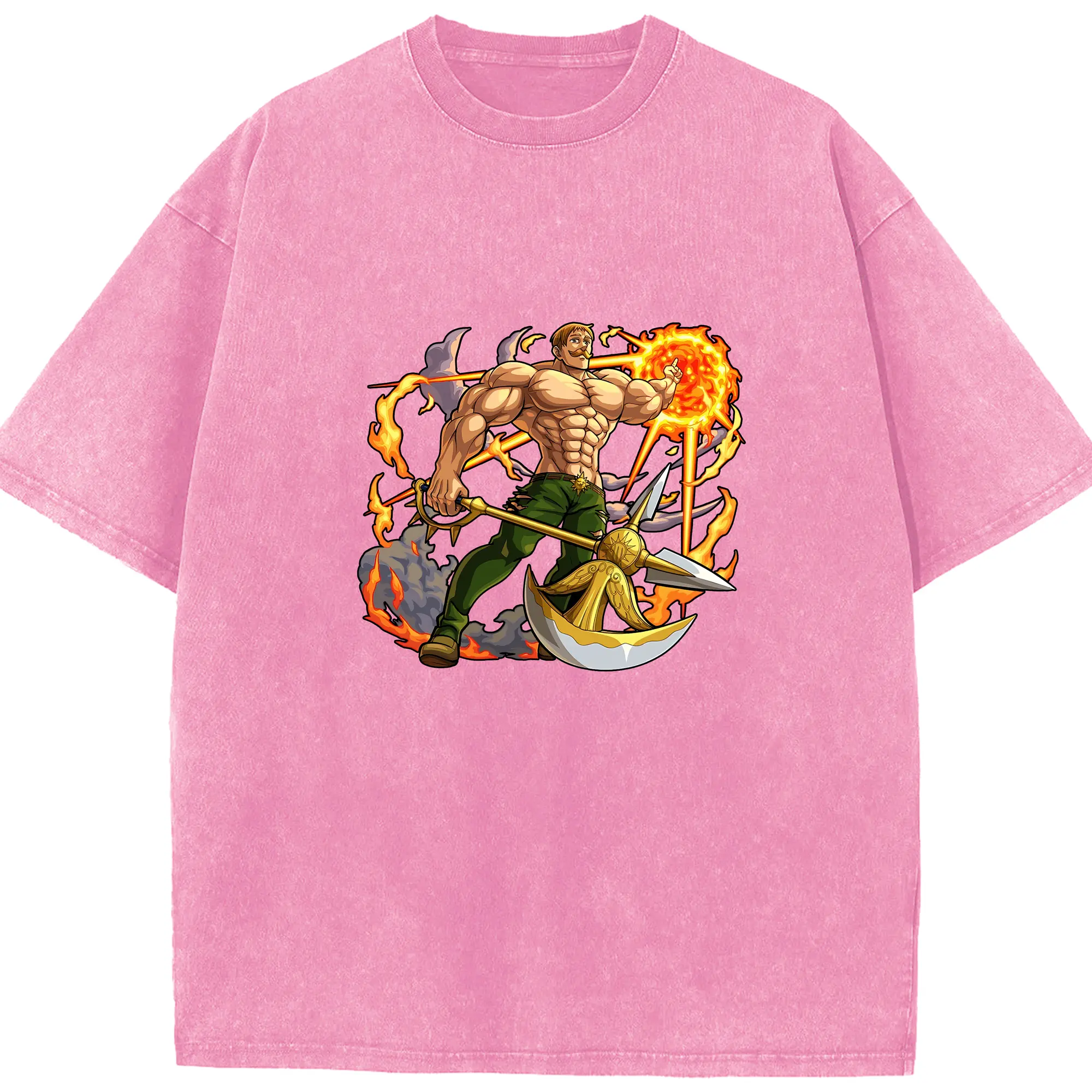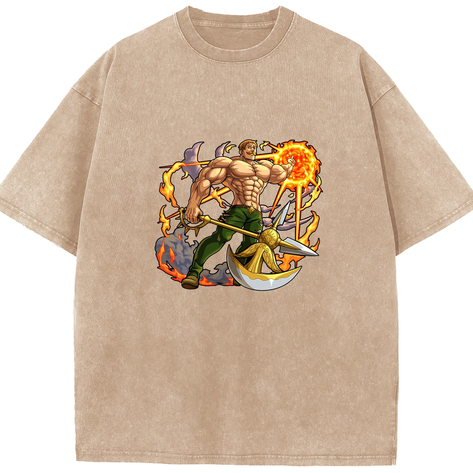 七つの大罪 グッズ エスカノール - 綿100% ヴィンテージ風 半袖Tシャツ ・ 背面プリント ・ 柔らか肌触り ・ 通気性 快適 ・ スポーツ カジュアル 外出用
