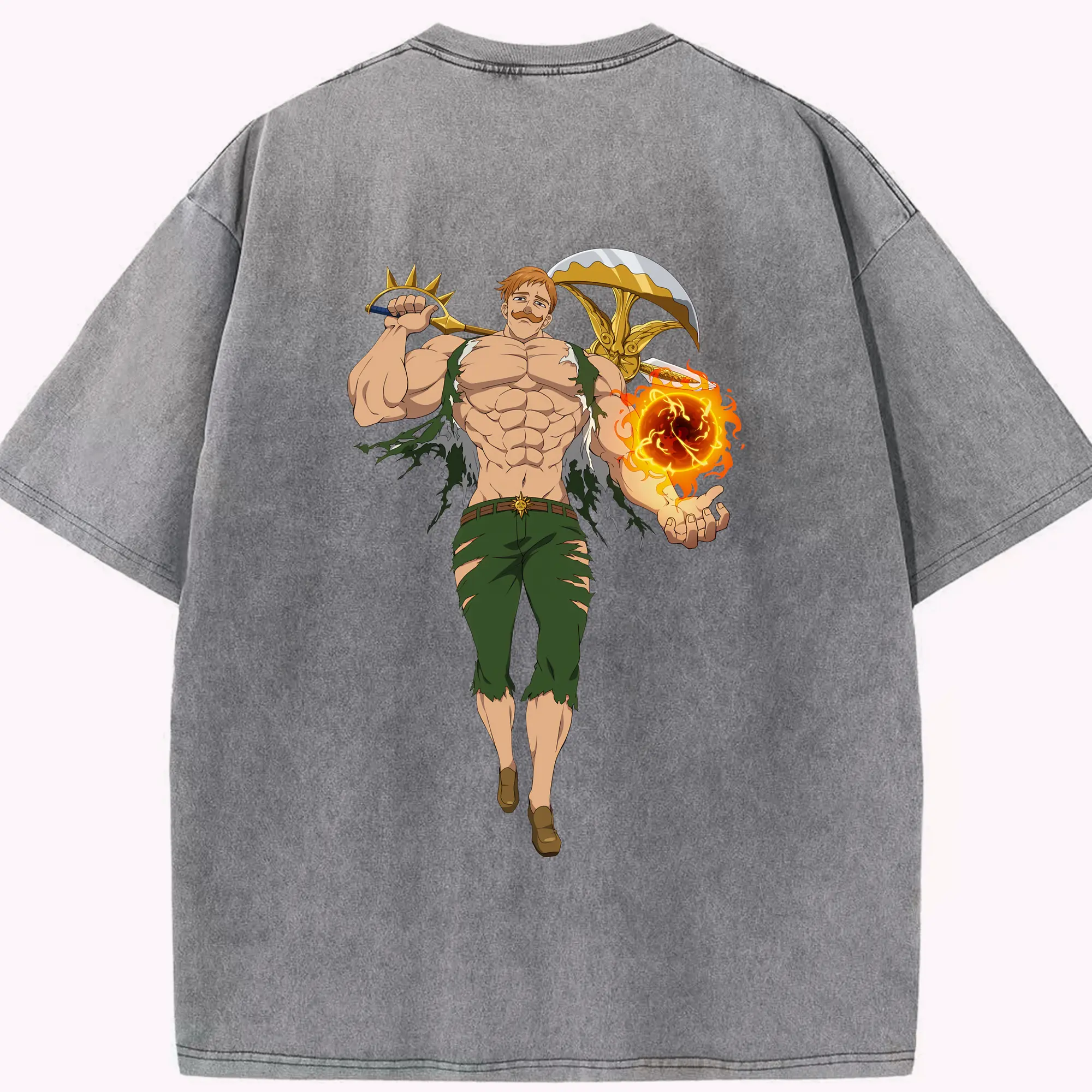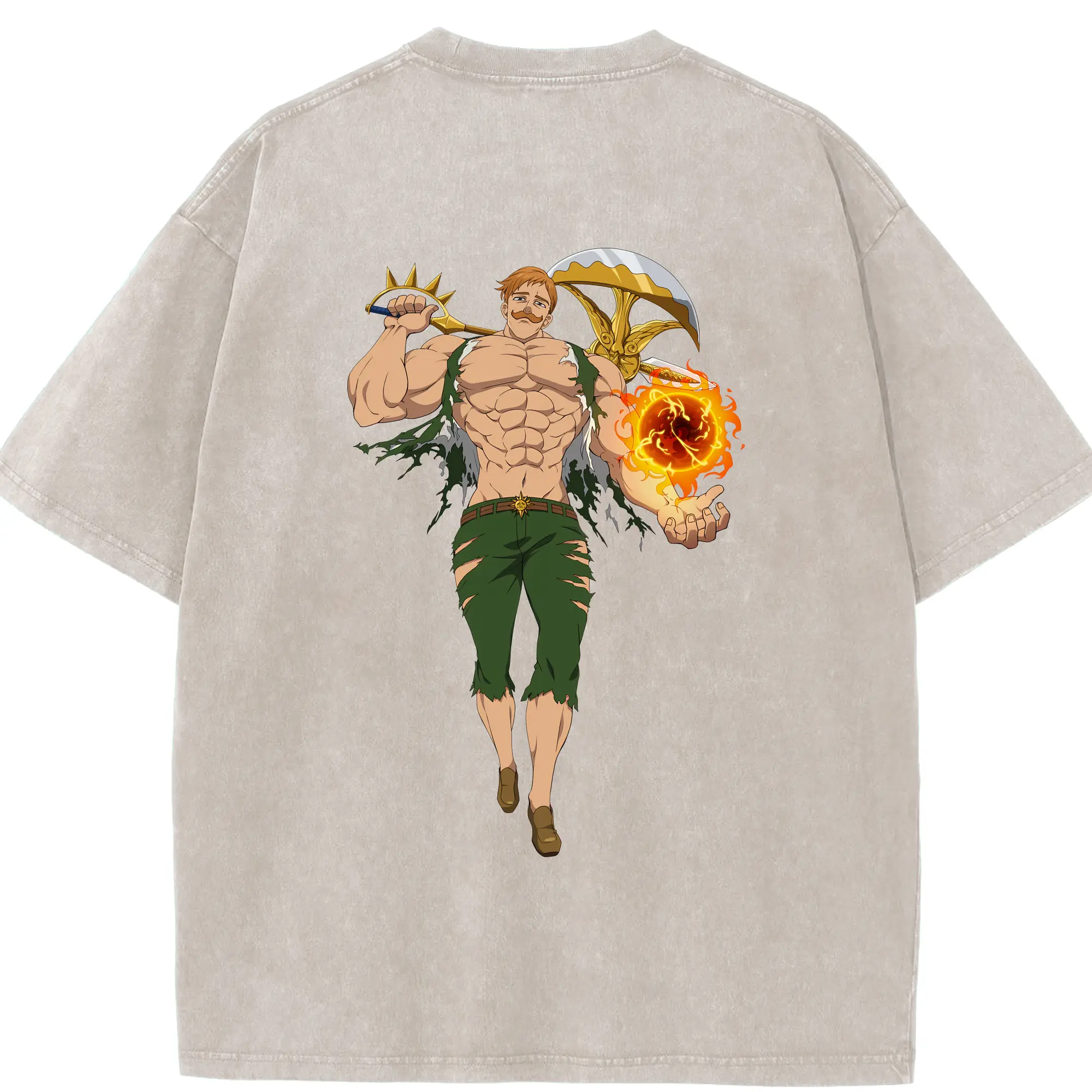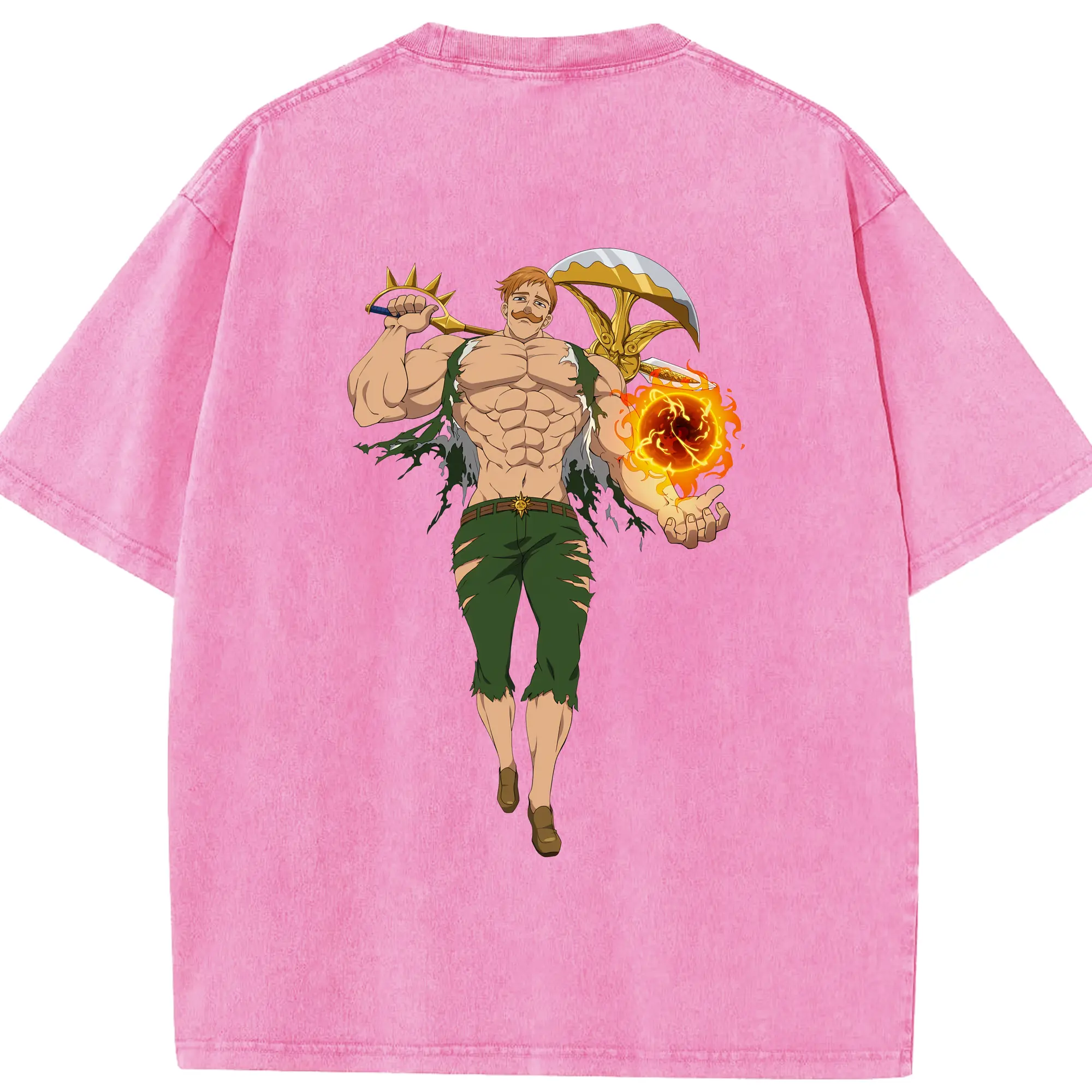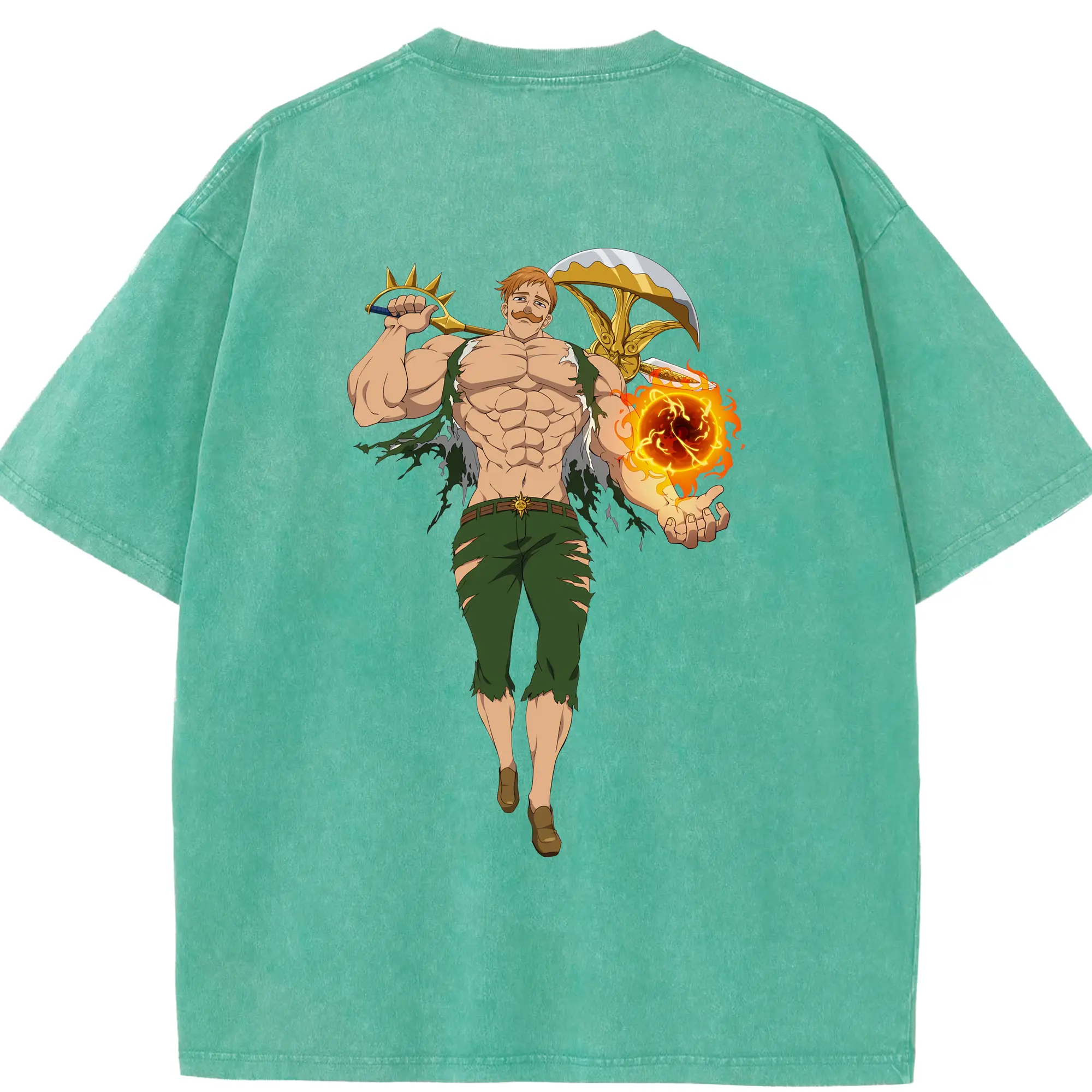 七つの大罪 グッズ エスカノール - 綿100% ヴィンテージ風 半袖Tシャツ ・ フロントプリント ・ 柔らか肌触り ・ 通気性 快適 ・ スポーツ カジュアル 外出用