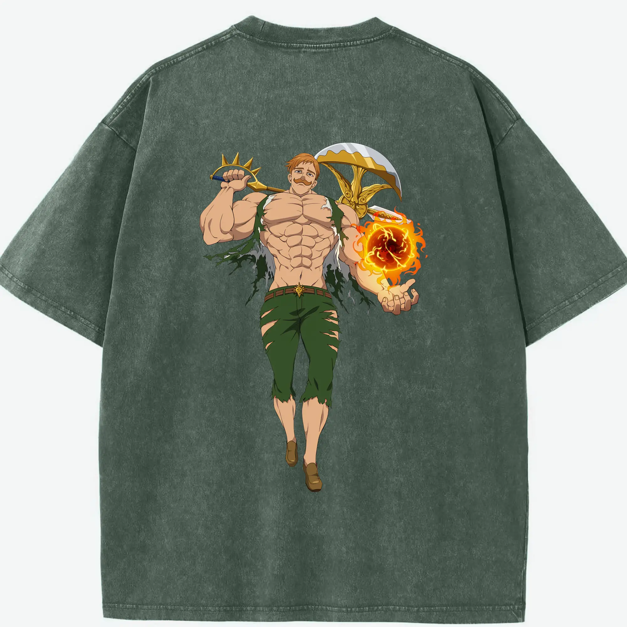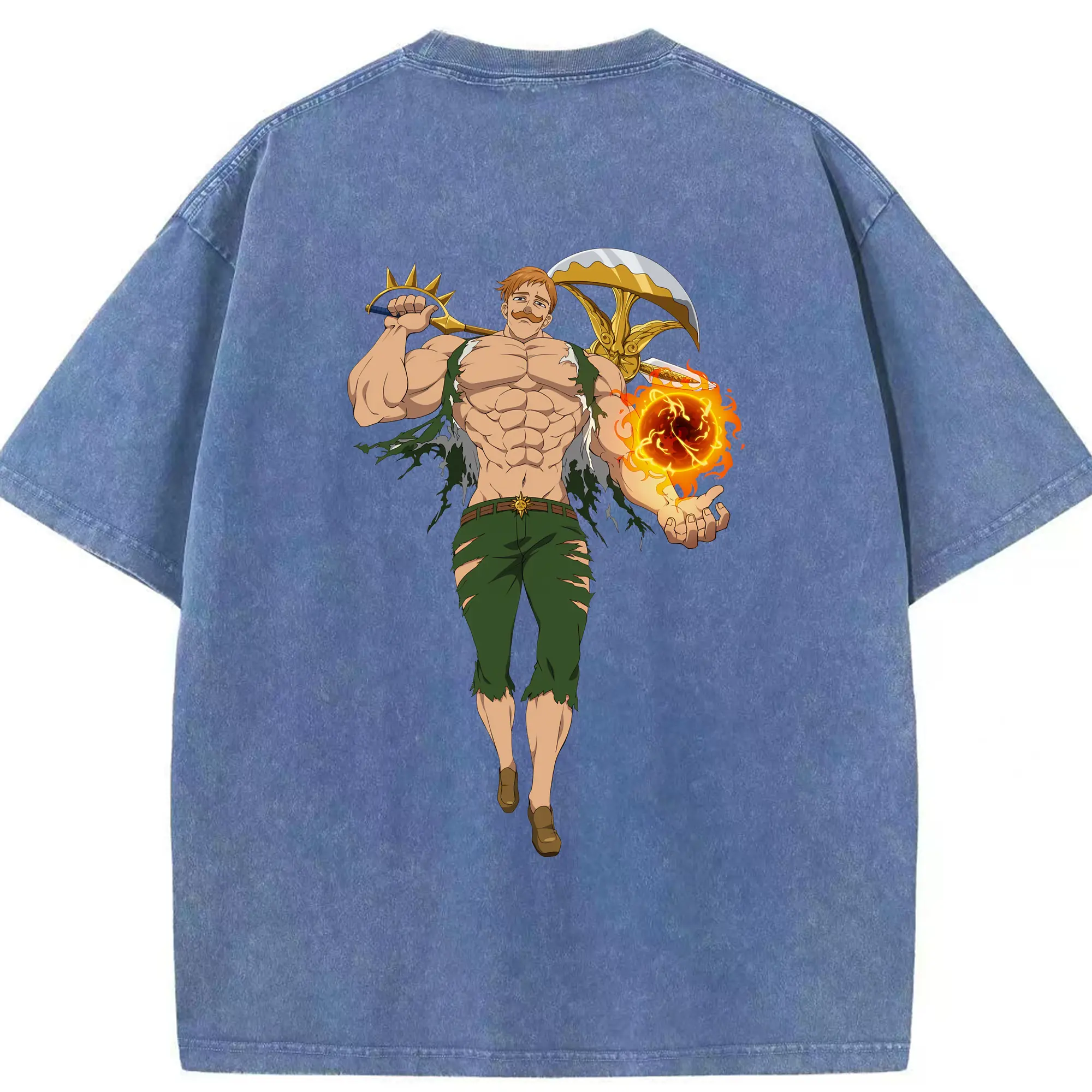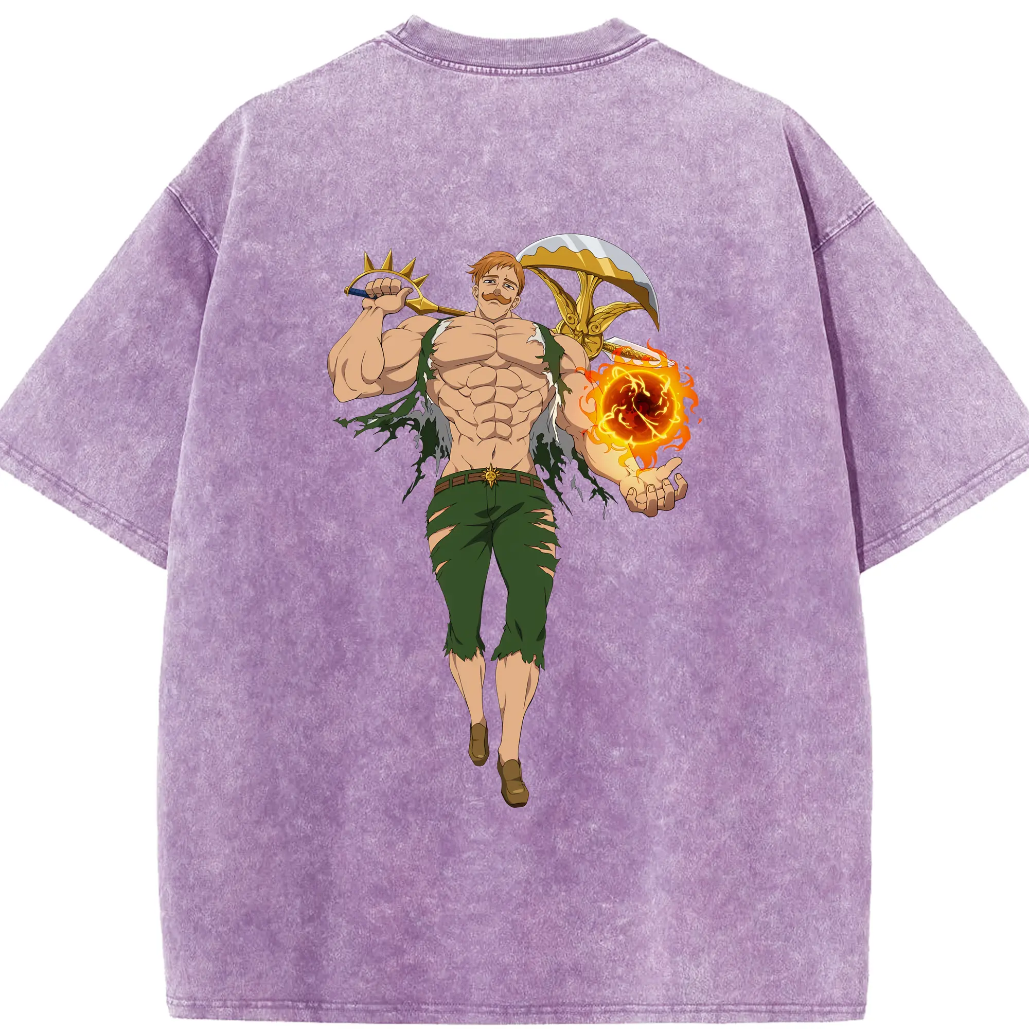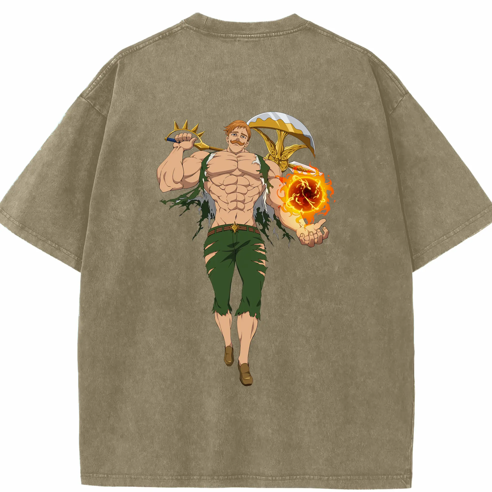 七つの大罪 グッズ エスカノール - 綿100% ヴィンテージ風 半袖Tシャツ ・ フロントプリント ・ 柔らか肌触り ・ 通気性 快適 ・ スポーツ カジュアル 外出用