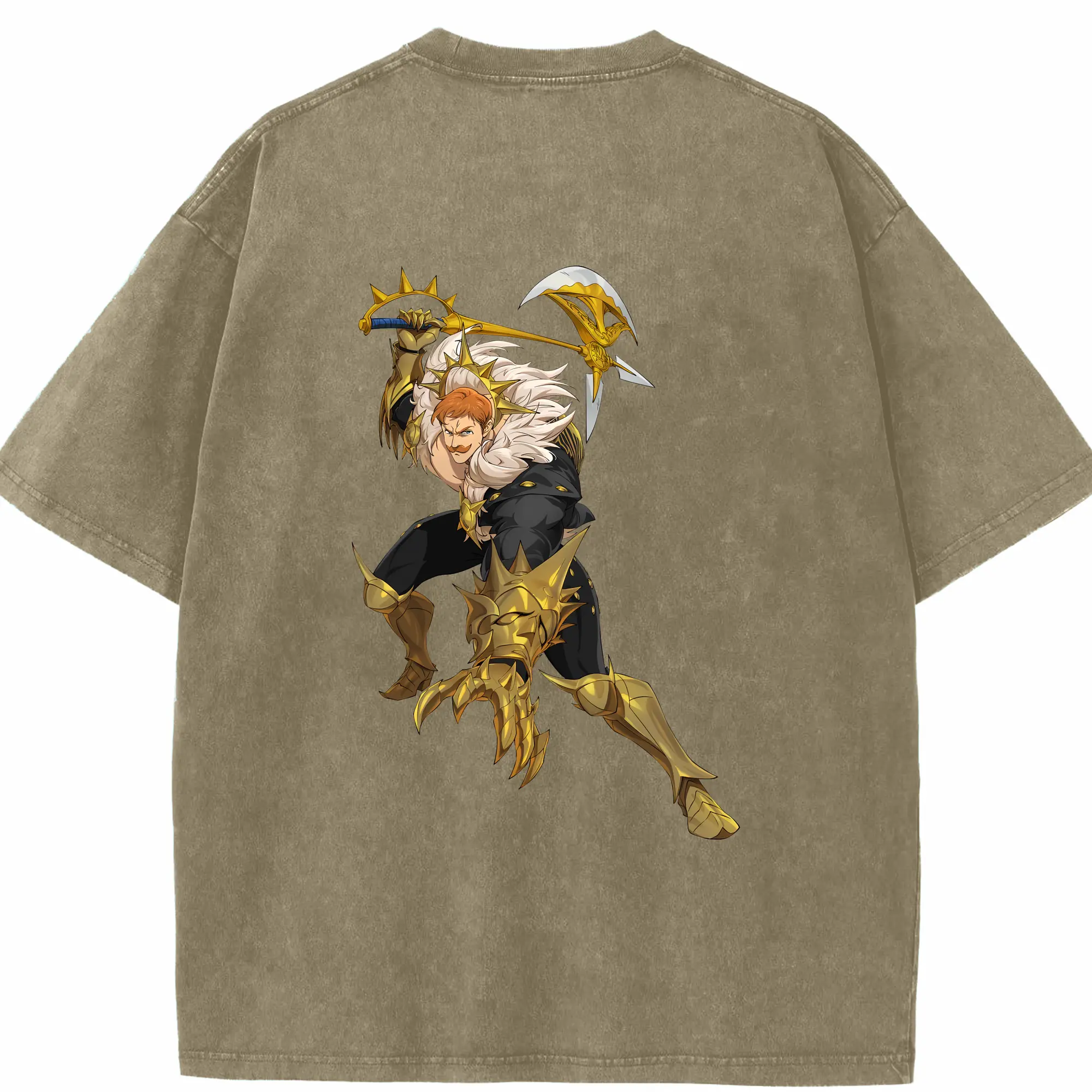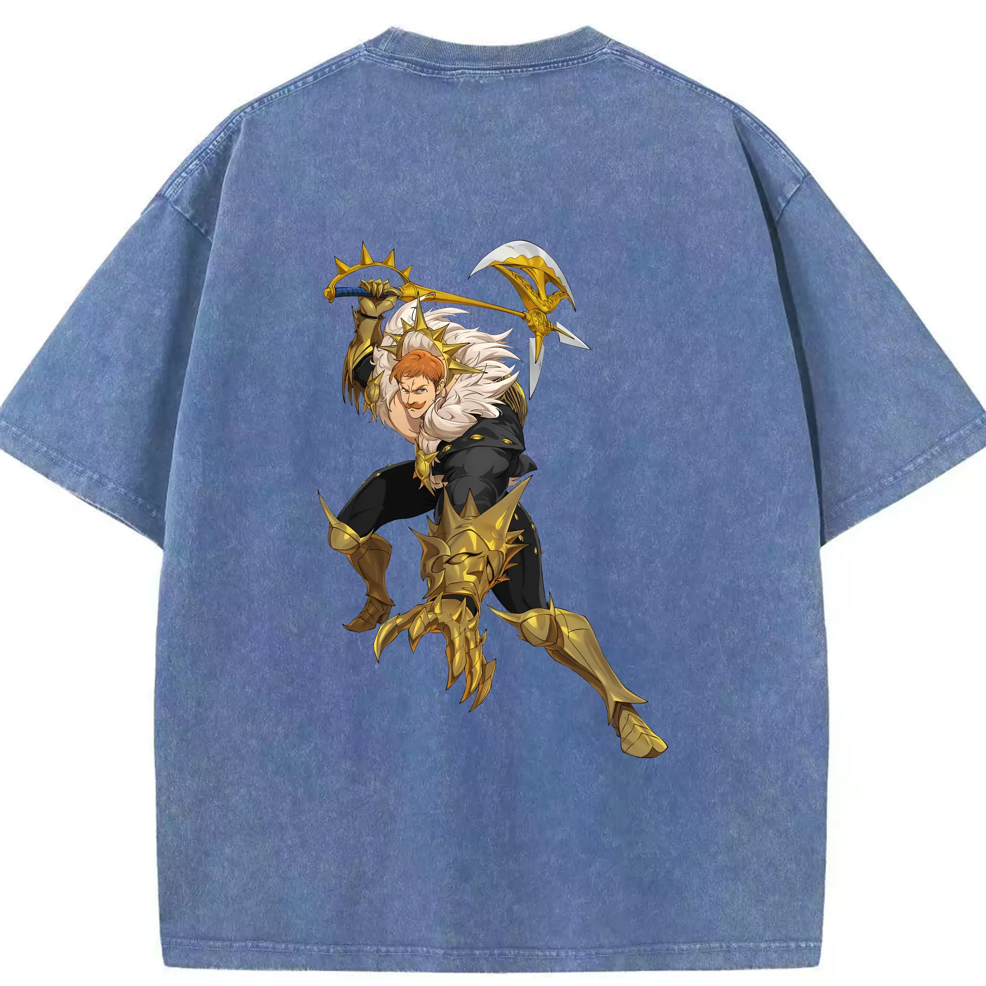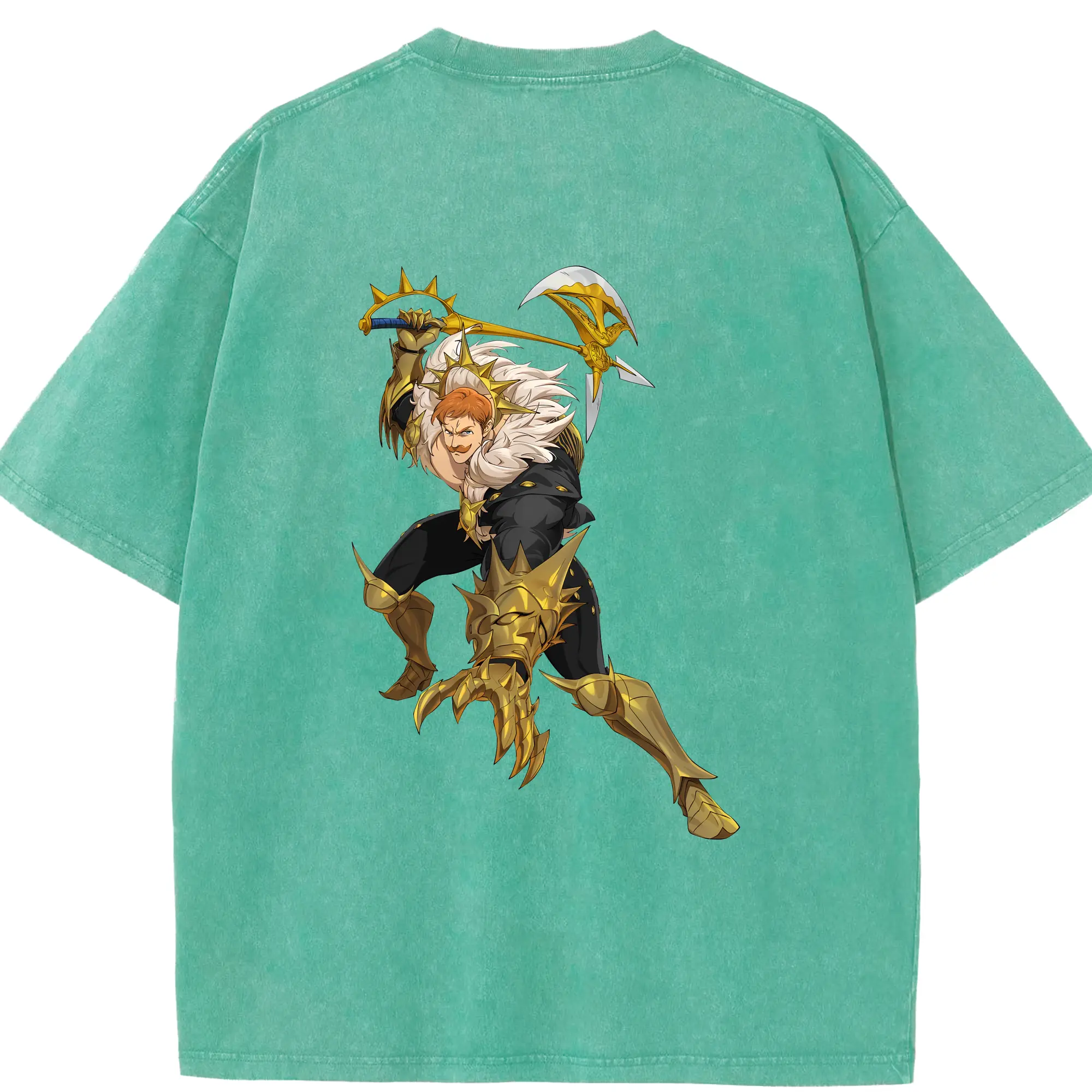 七つの大罪 グッズ エスカノール - 綿100% ヴィンテージ風 半袖Tシャツ ・ フロントプリント ・ 柔らか肌触り ・ 通気性 快適 ・ スポーツ カジュアル 外出用