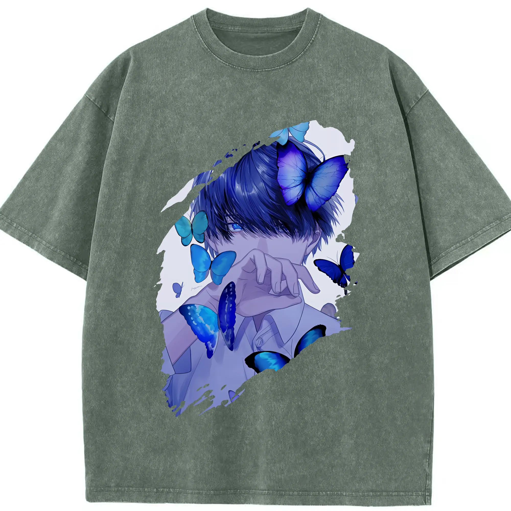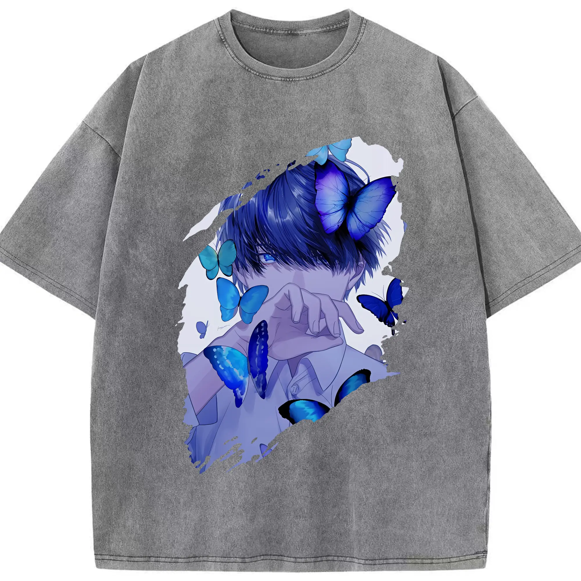 五等分の花嫁 グッズ 上杉 風太郎 - 綿100% ヴィンテージ風 半袖Tシャツ ・ 背面プリント ・ 柔らか肌触り ・ 通気性 快適 ・ スポーツ カジュアル 外出用