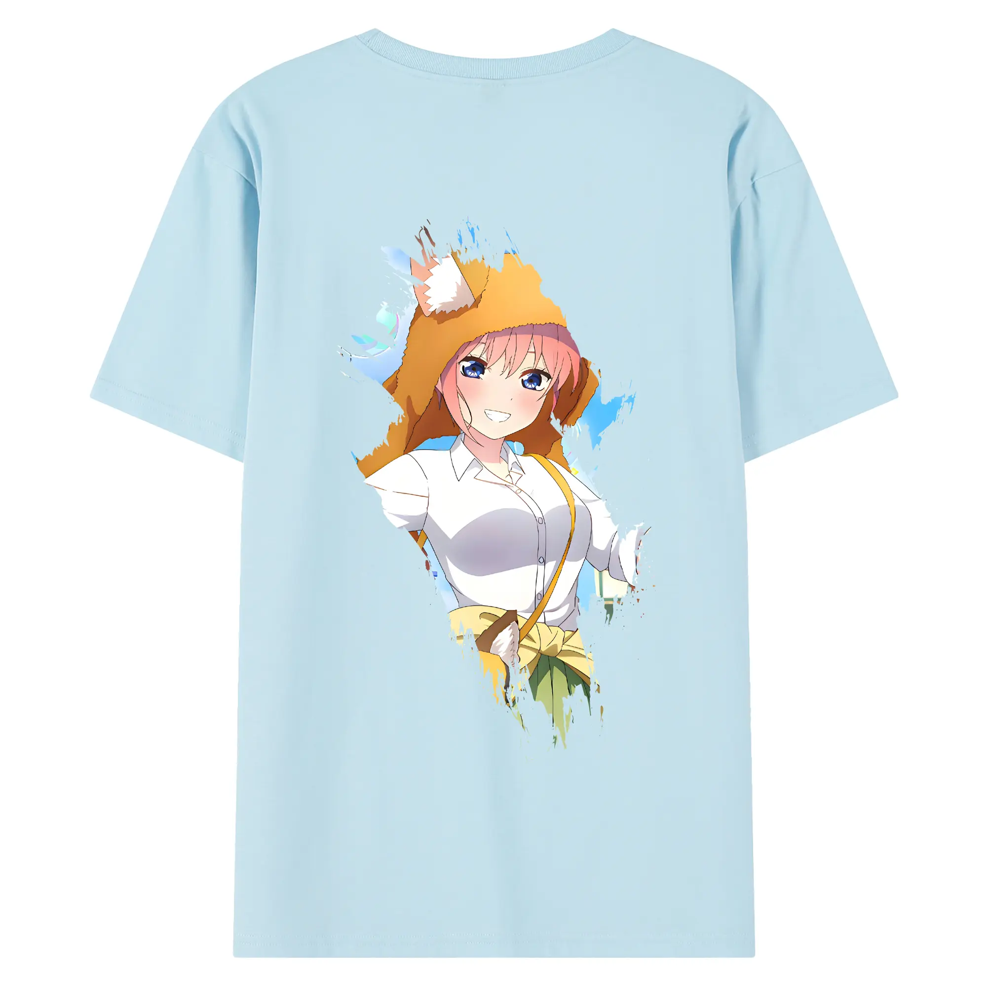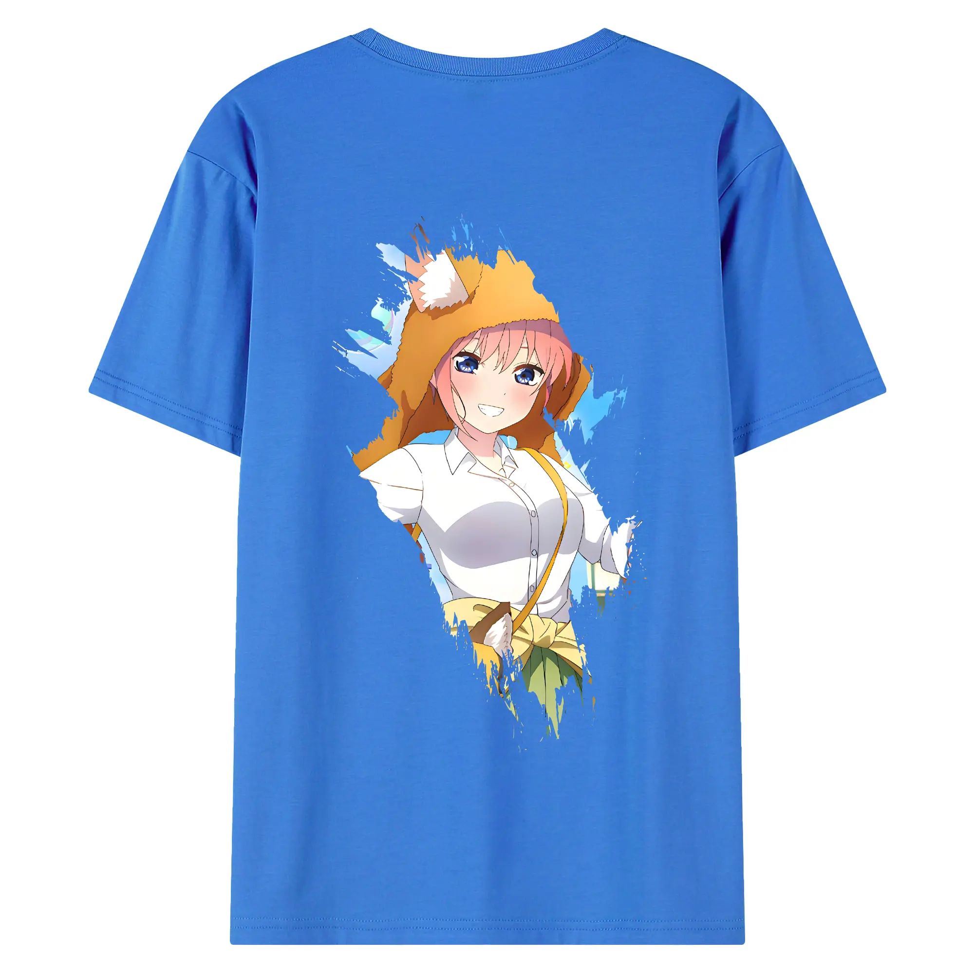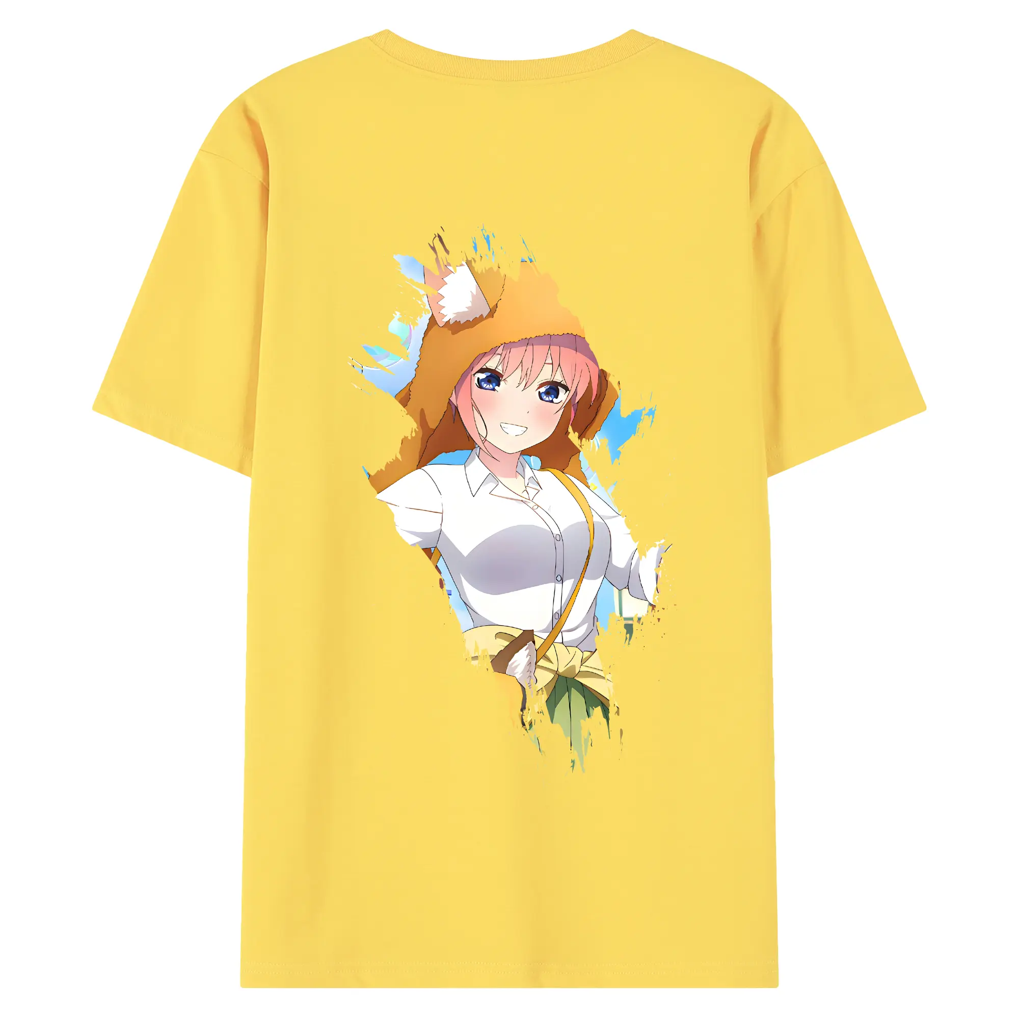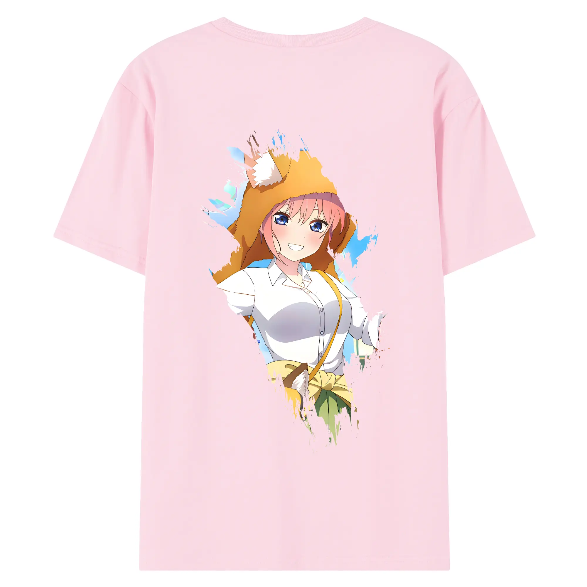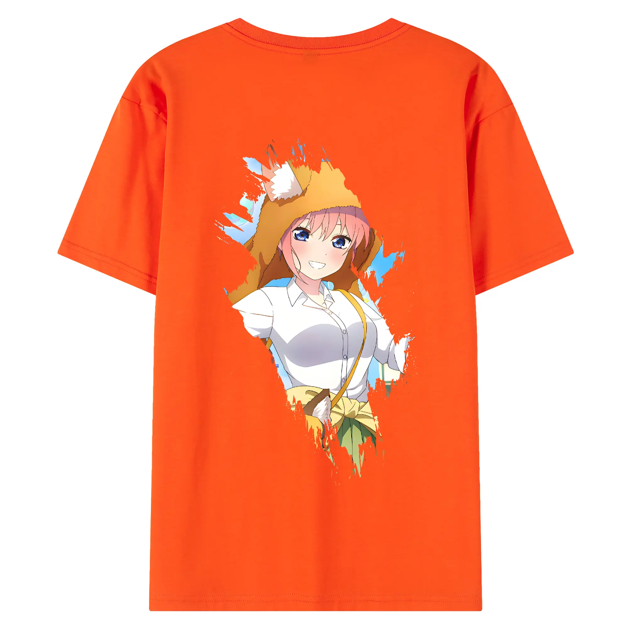 五等分の花嫁 グッズ 中野 二乃 - 綿100% 半袖Tシャツ ・ バックプリント ・ 快適 通気性 ・ 日常使い 散歩 スポーツ用