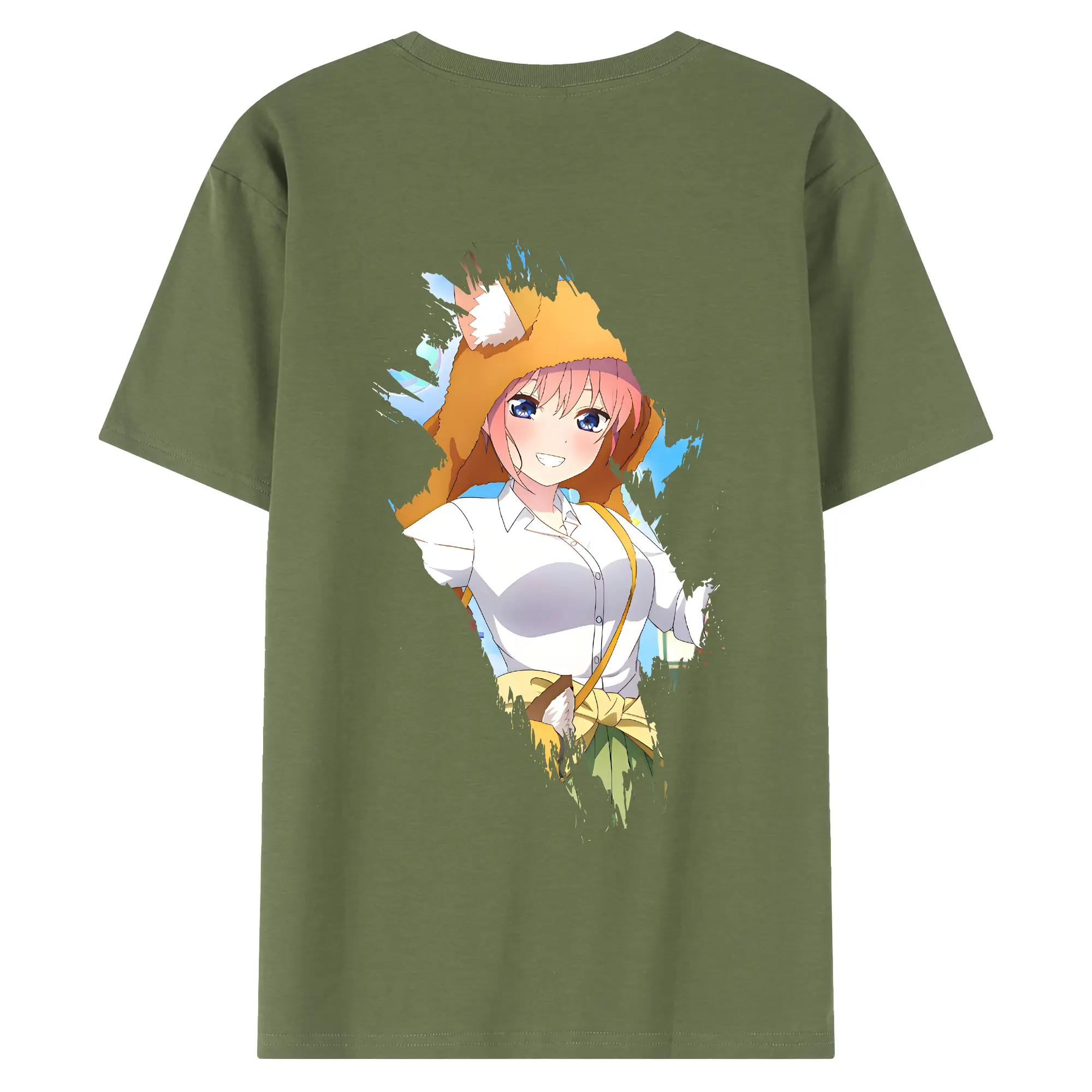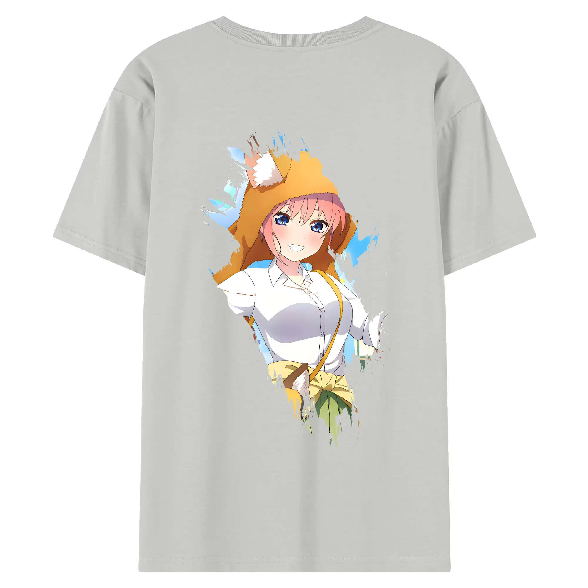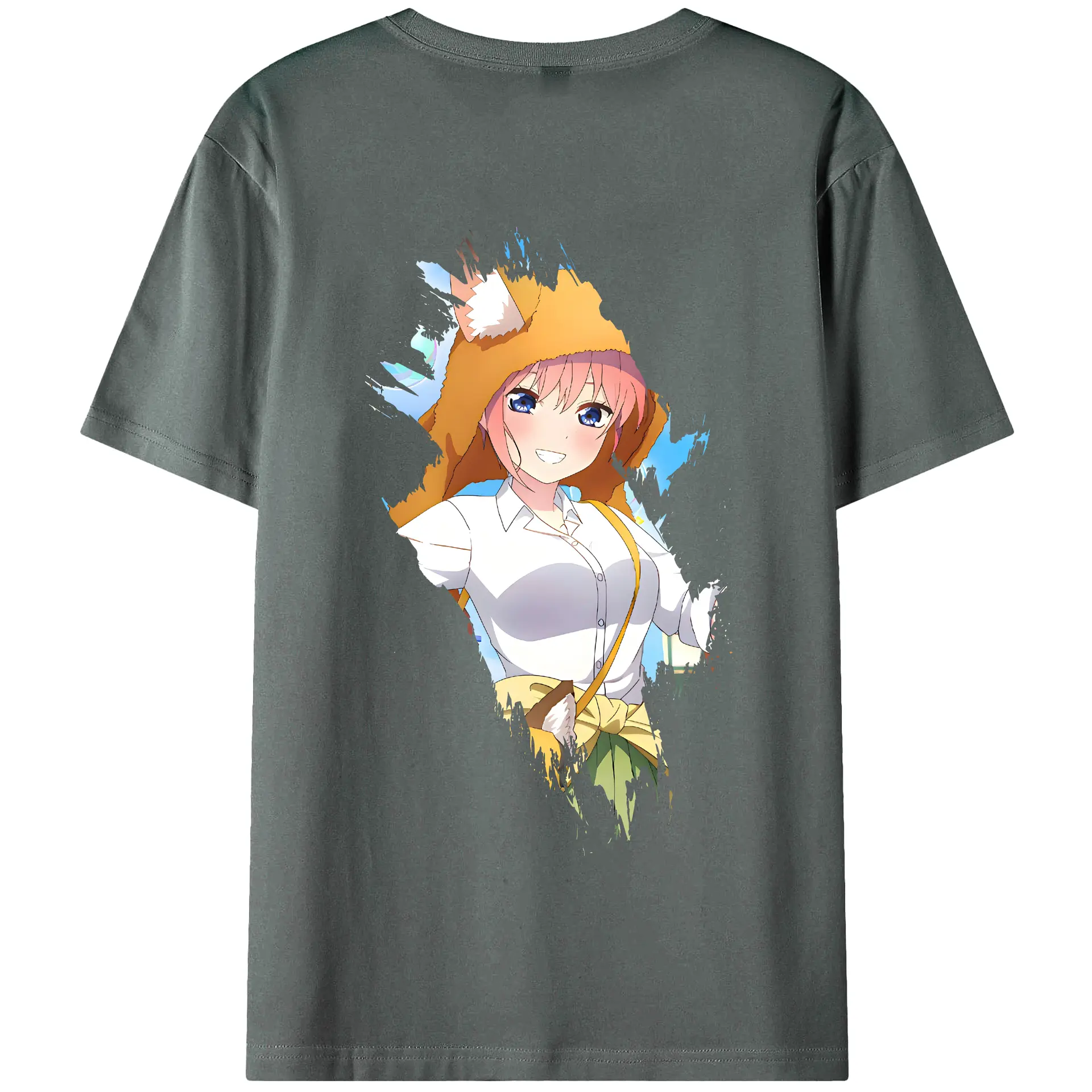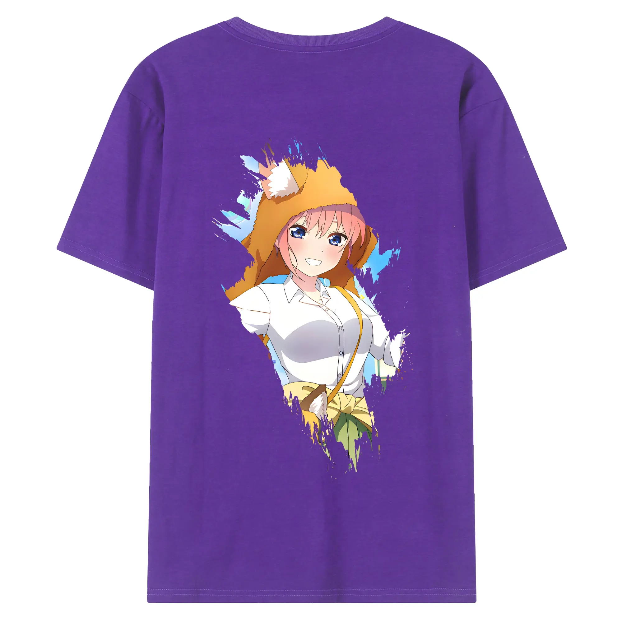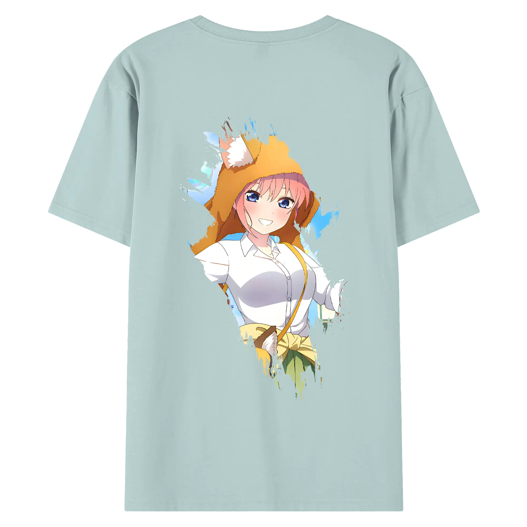 五等分の花嫁 グッズ 中野 二乃 - 綿100% 半袖Tシャツ ・ バックプリント ・ 快適 通気性 ・ 日常使い 散歩 スポーツ用
