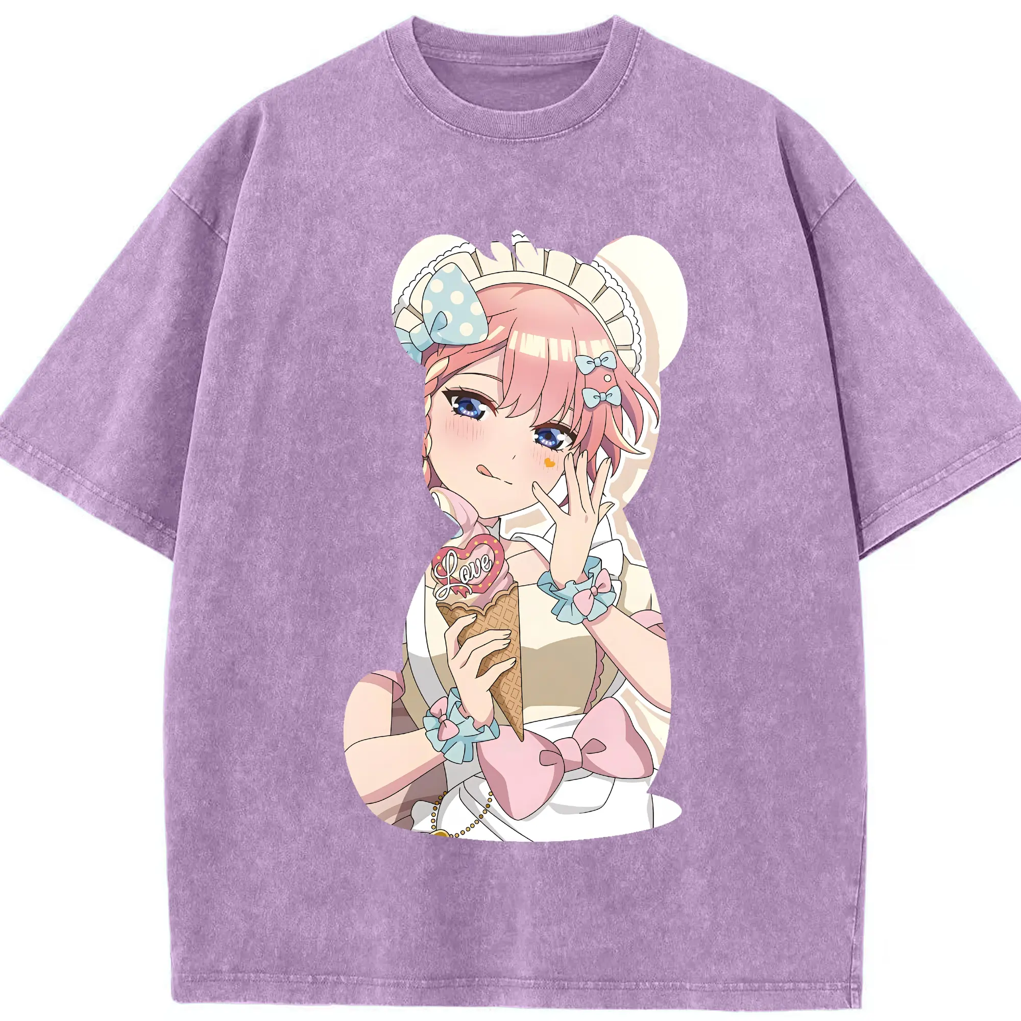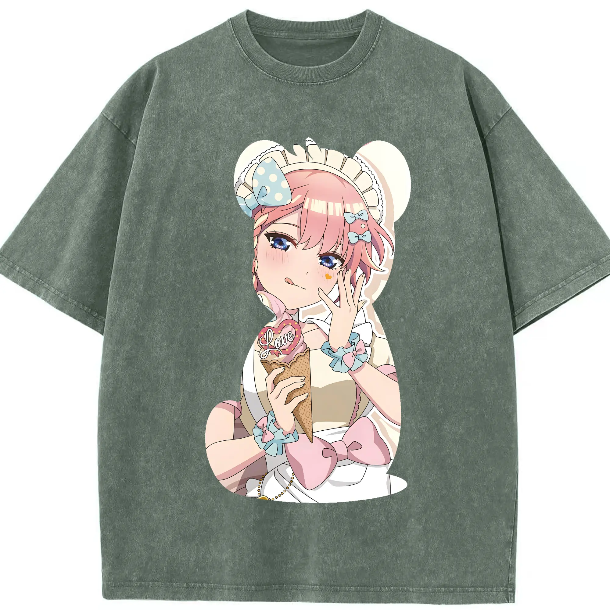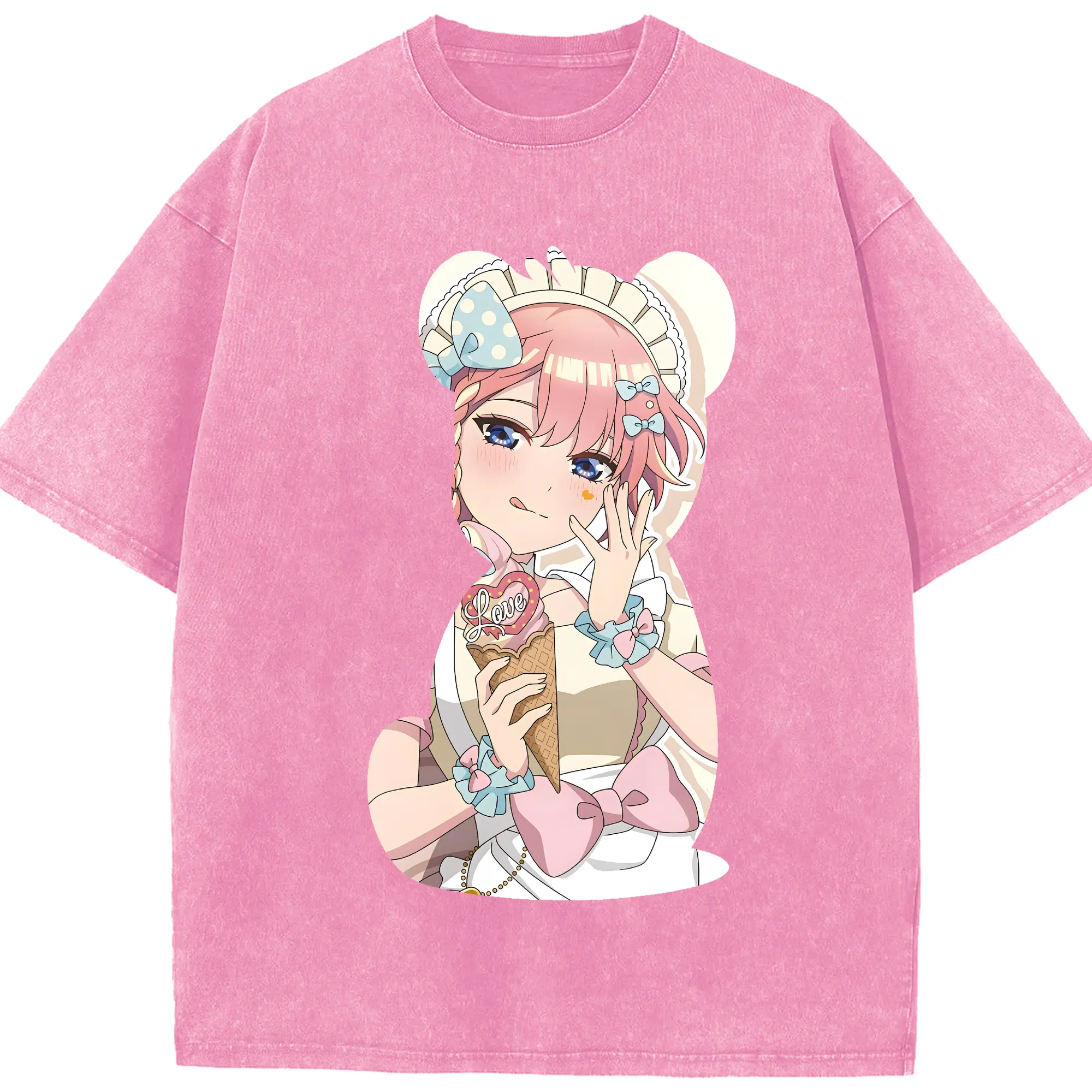 五等分の花嫁 グッズ 中野 一花 - 綿100% ヴィンテージ風 半袖Tシャツ ・ 背面プリント ・ 柔らか肌触り ・ 通気性 快適 ・ スポーツ カジュアル 外出用