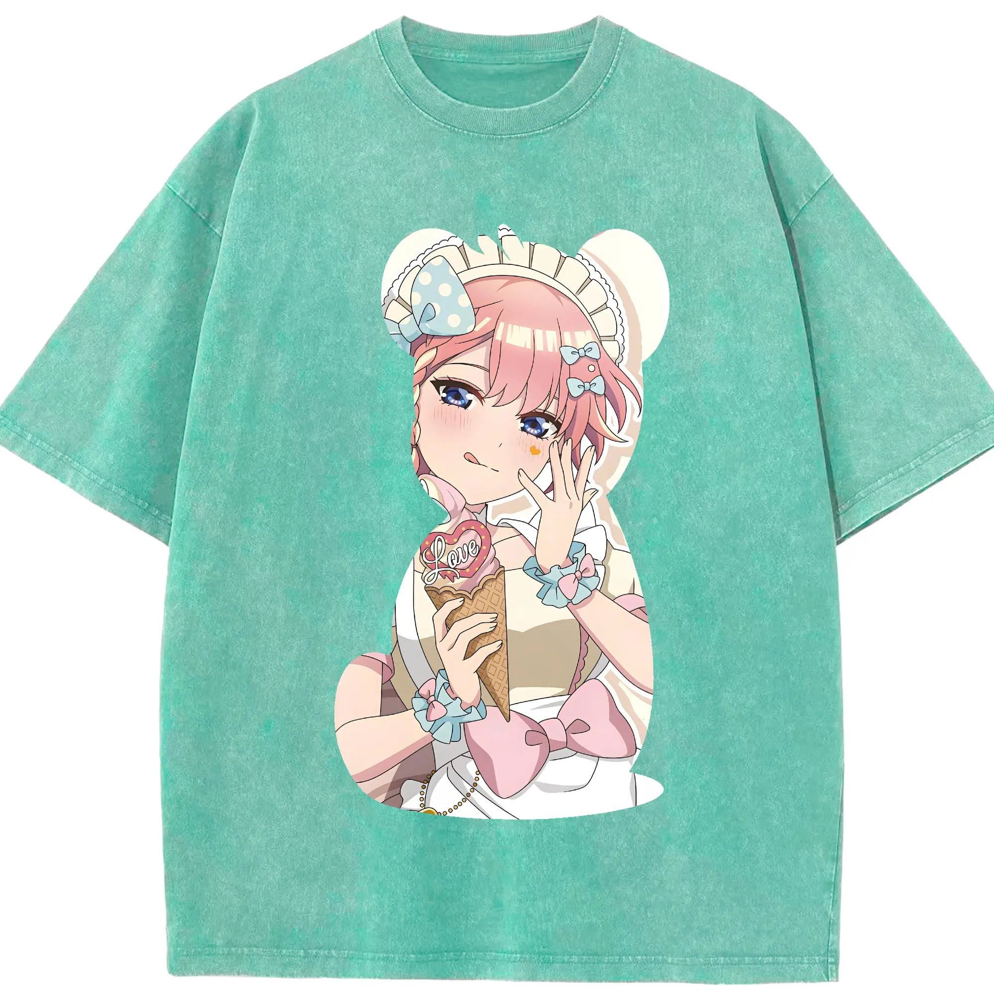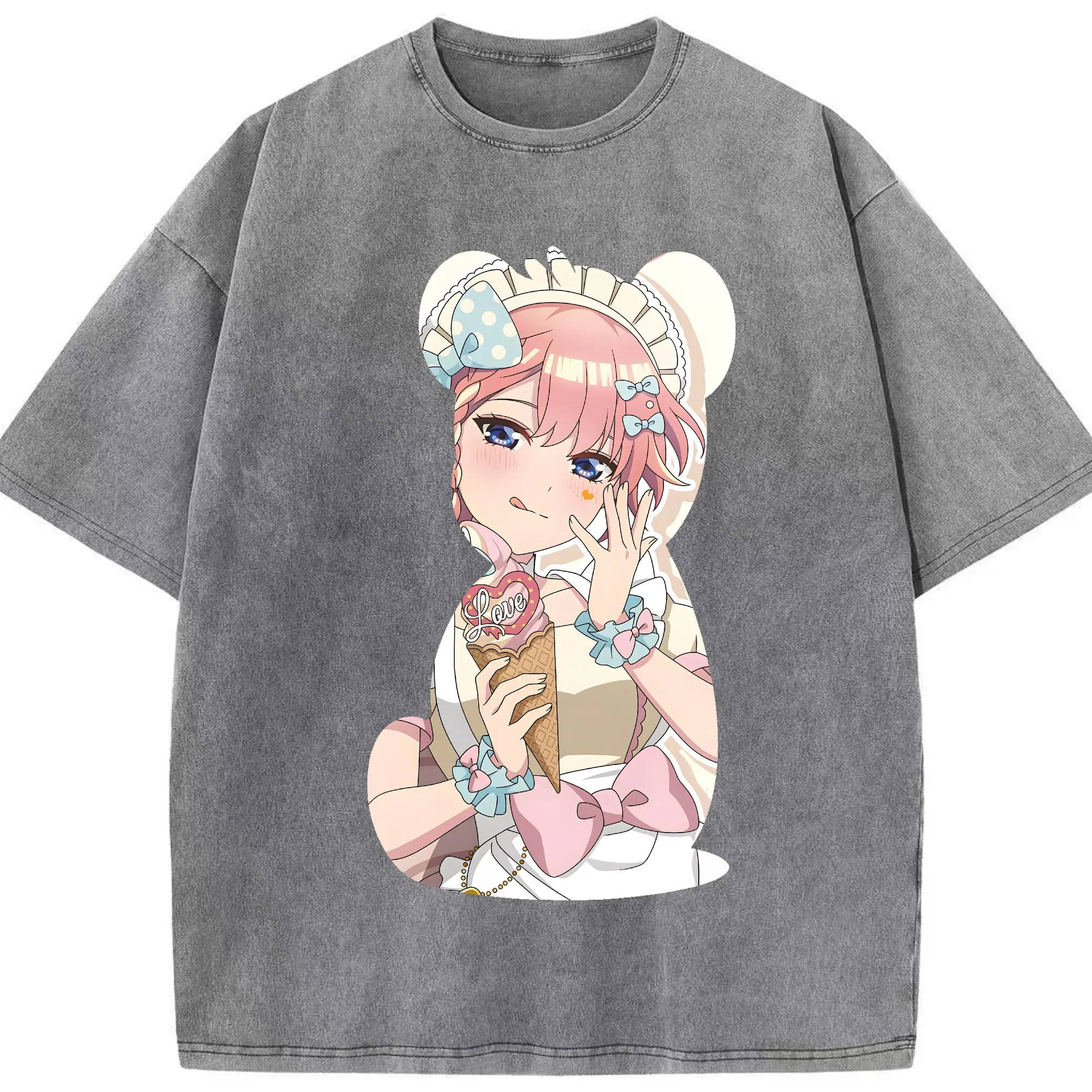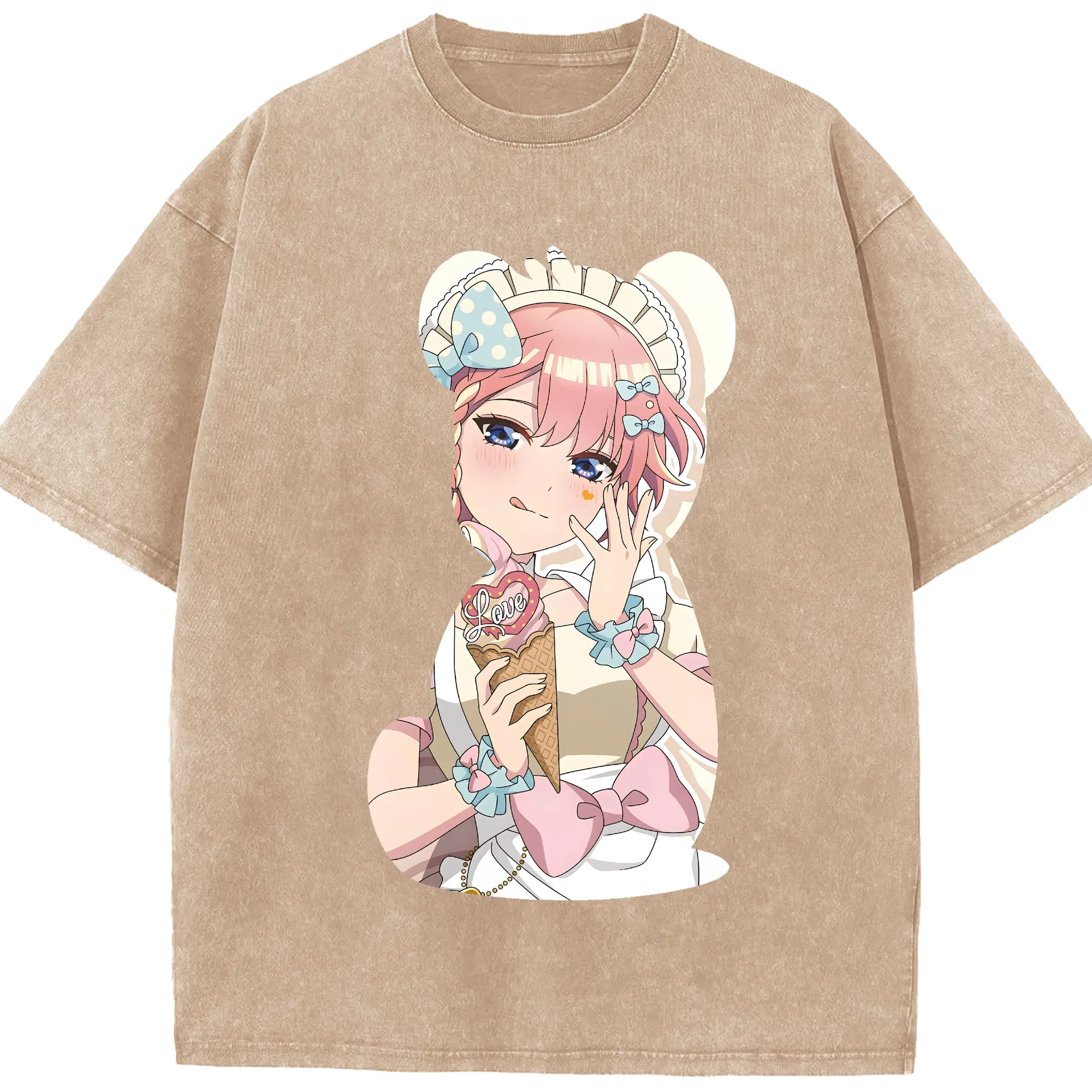 五等分の花嫁 グッズ 中野 一花 - 綿100% ヴィンテージ風 半袖Tシャツ ・ 背面プリント ・ 柔らか肌触り ・ 通気性 快適 ・ スポーツ カジュアル 外出用