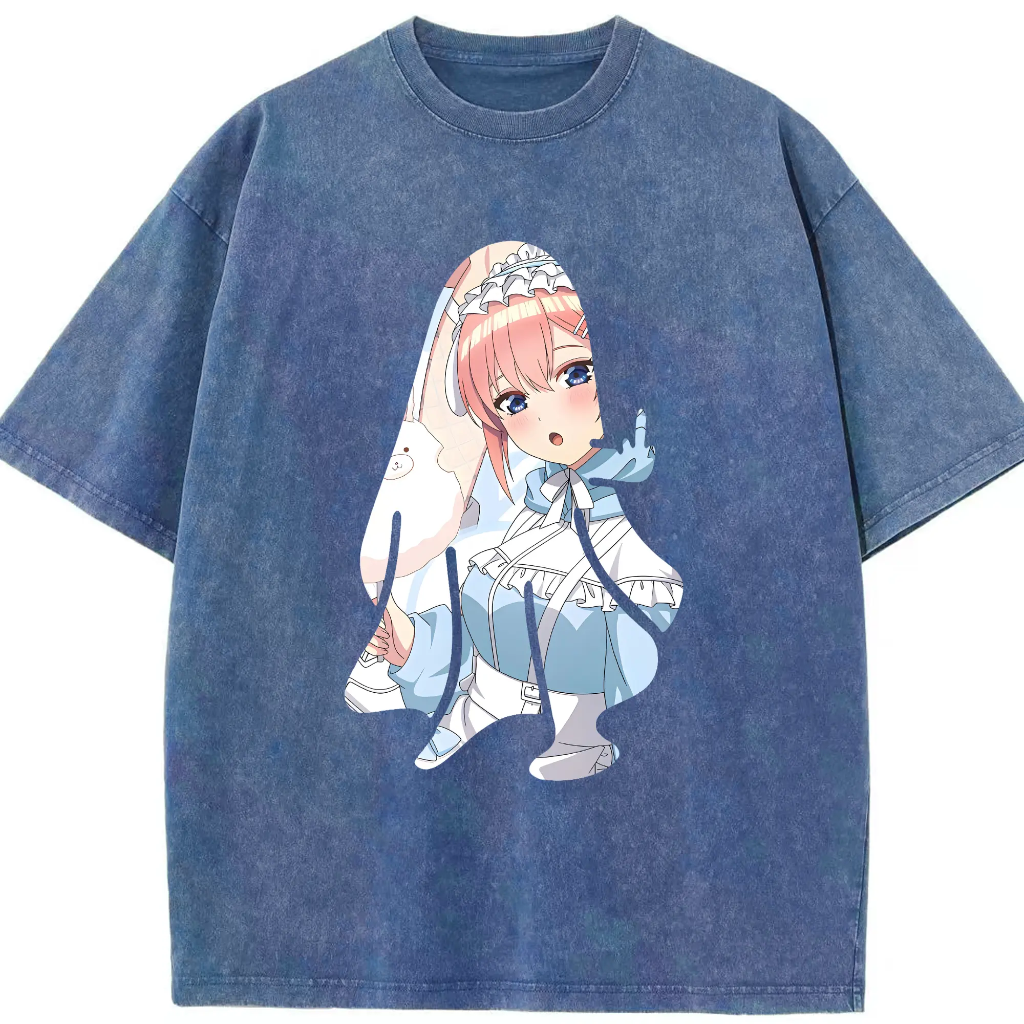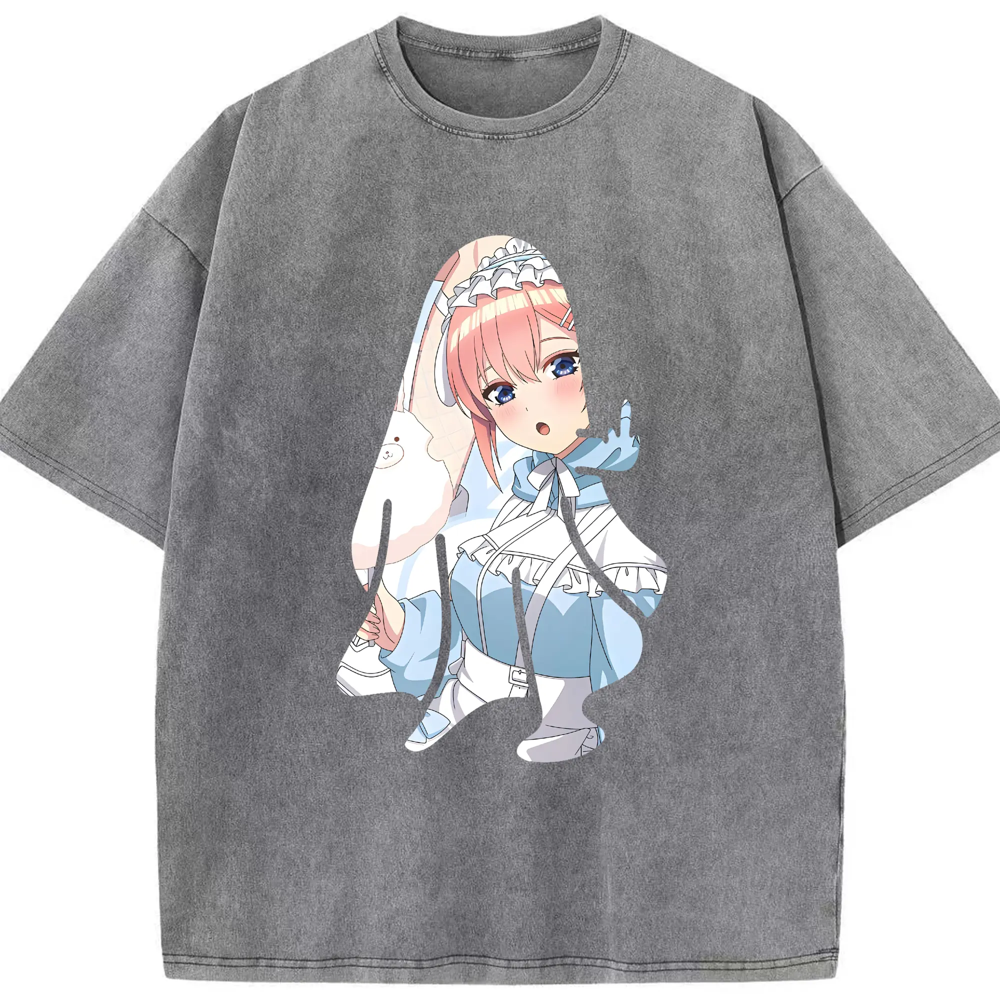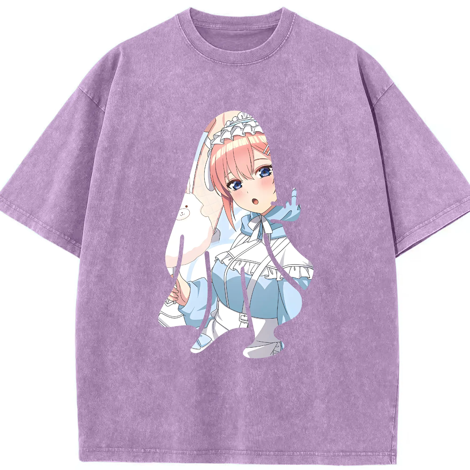 五等分の花嫁 グッズ 中野 一花 - 綿100% ヴィンテージ風 半袖Tシャツ ・ 背面プリント ・ 柔らか肌触り ・ 通気性 快適 ・ スポーツ カジュアル 外出用
