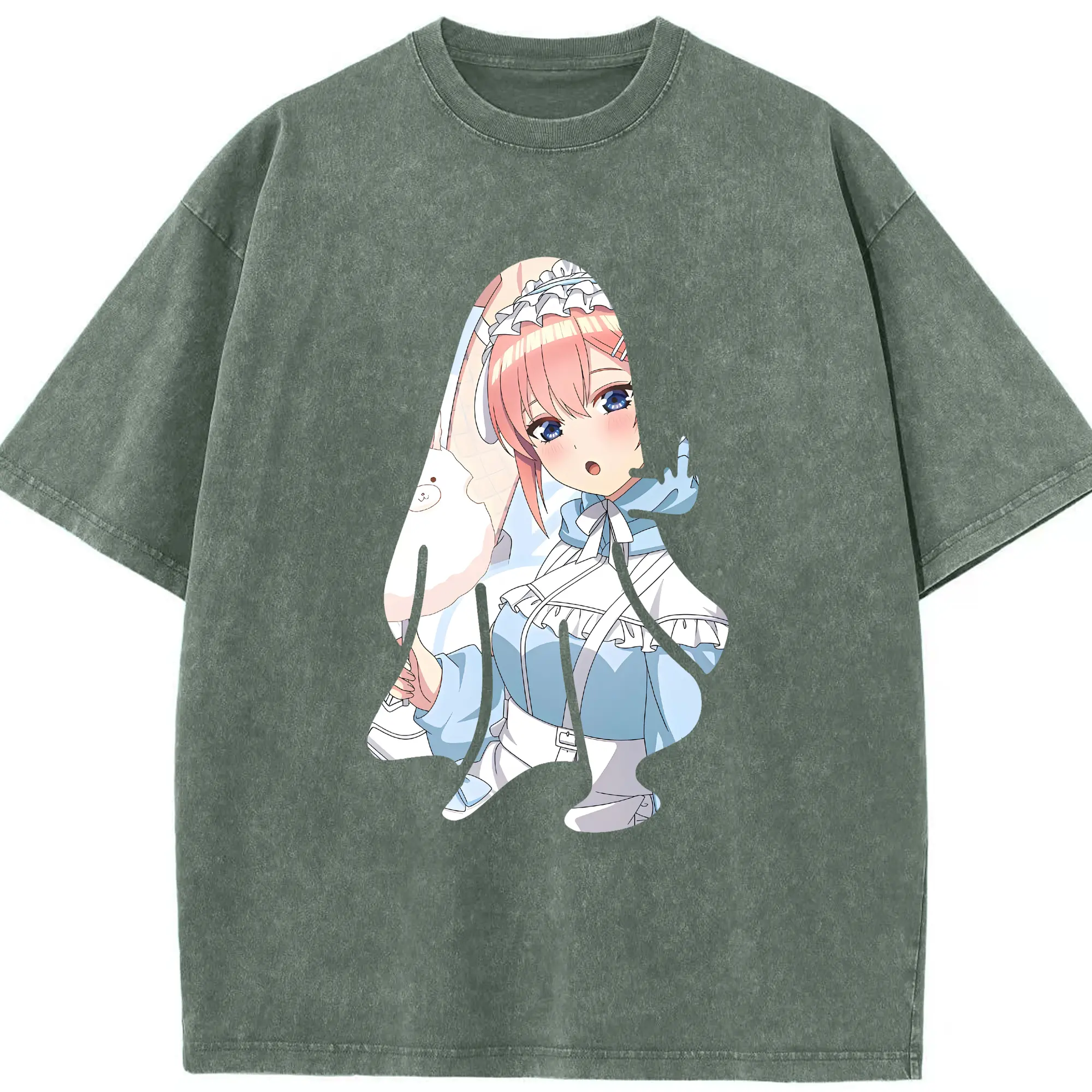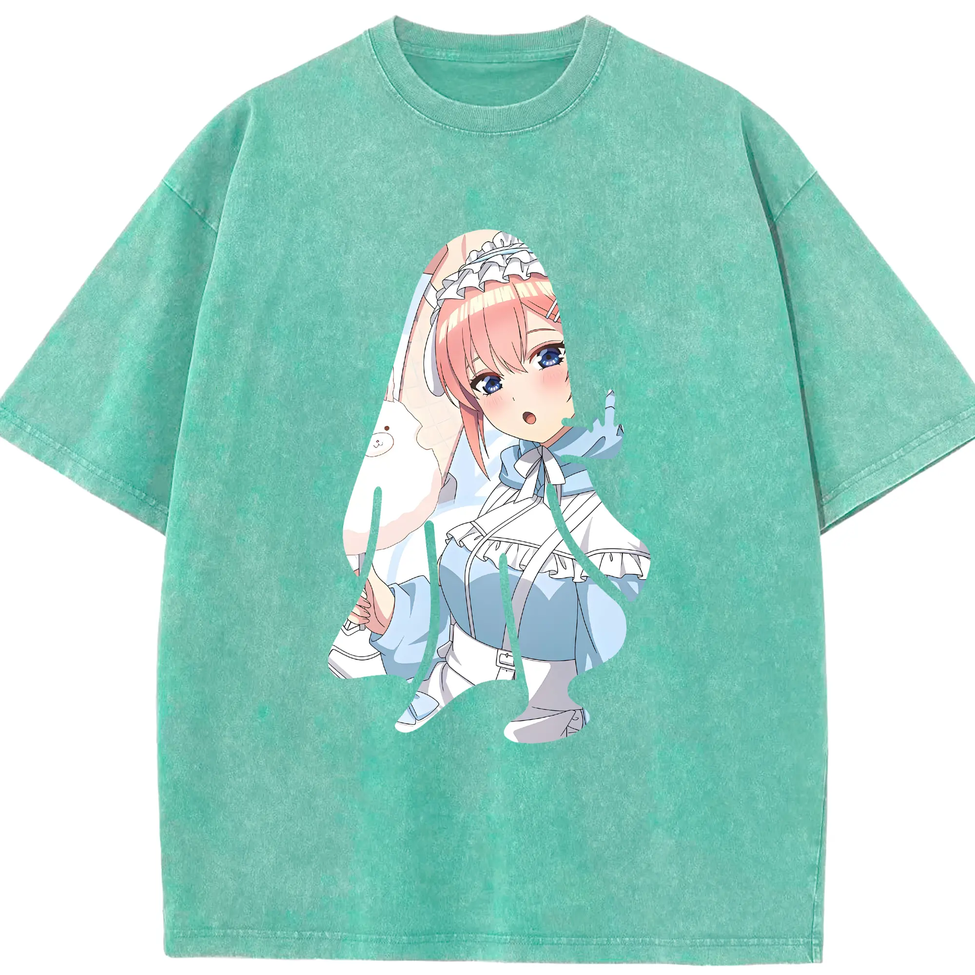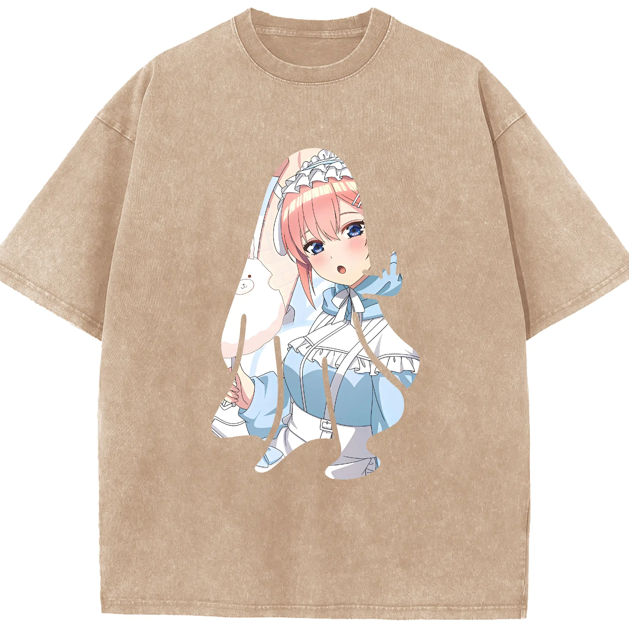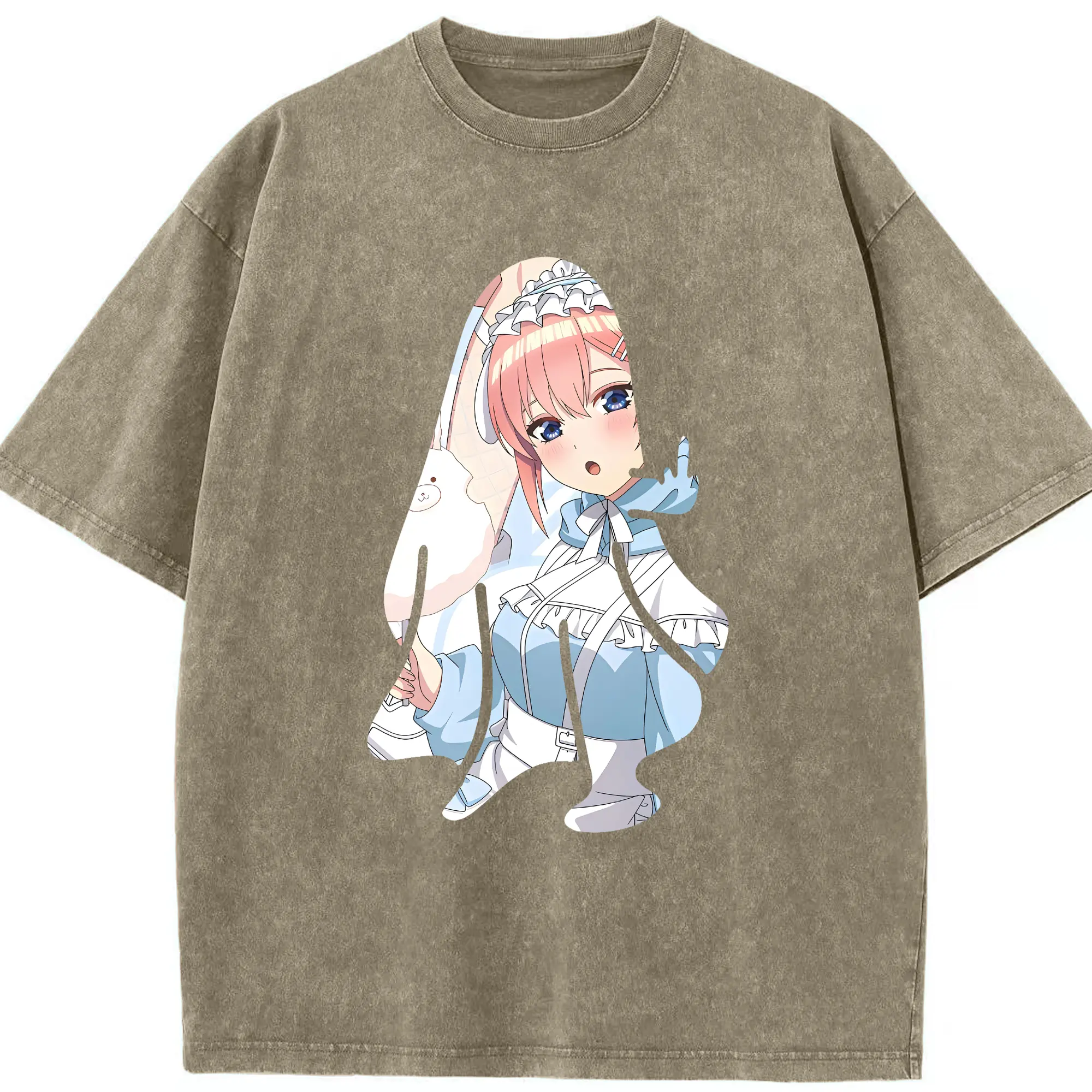 五等分の花嫁 グッズ 中野 一花 - 綿100% ヴィンテージ風 半袖Tシャツ ・ 背面プリント ・ 柔らか肌触り ・ 通気性 快適 ・ スポーツ カジュアル 外出用