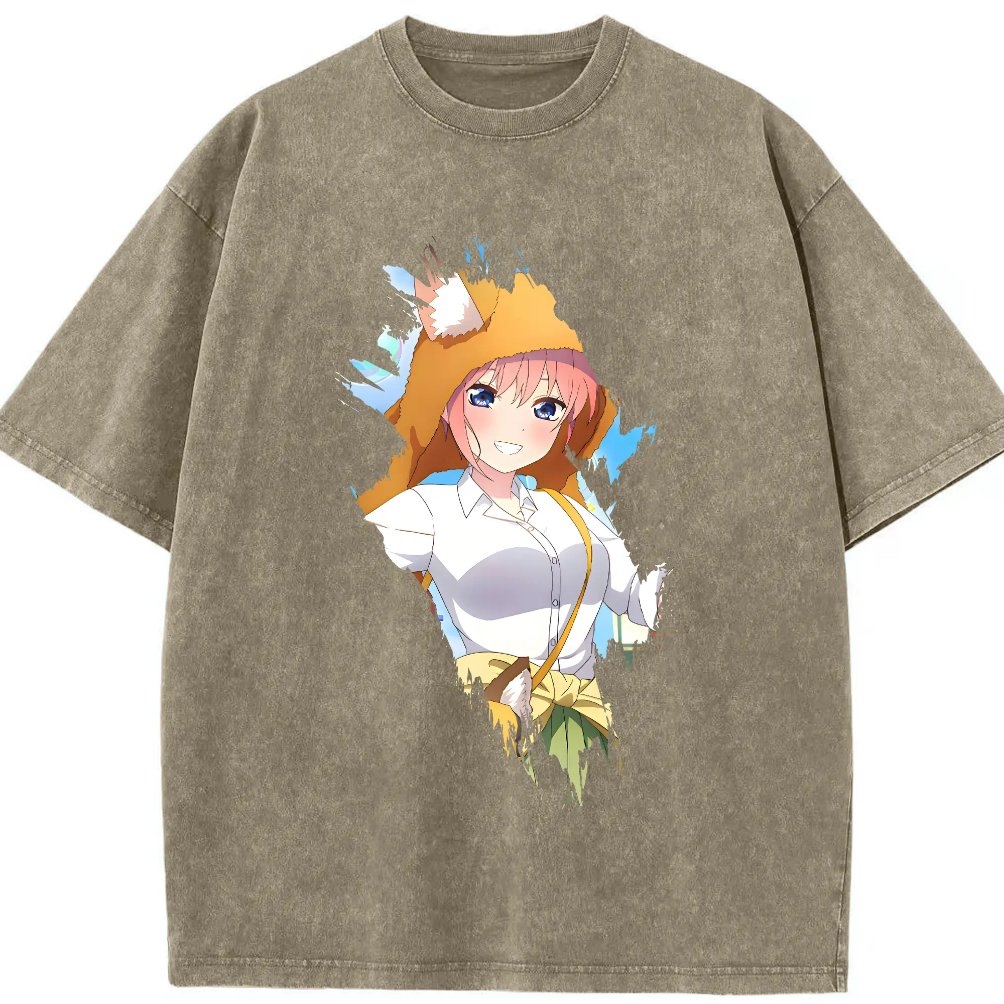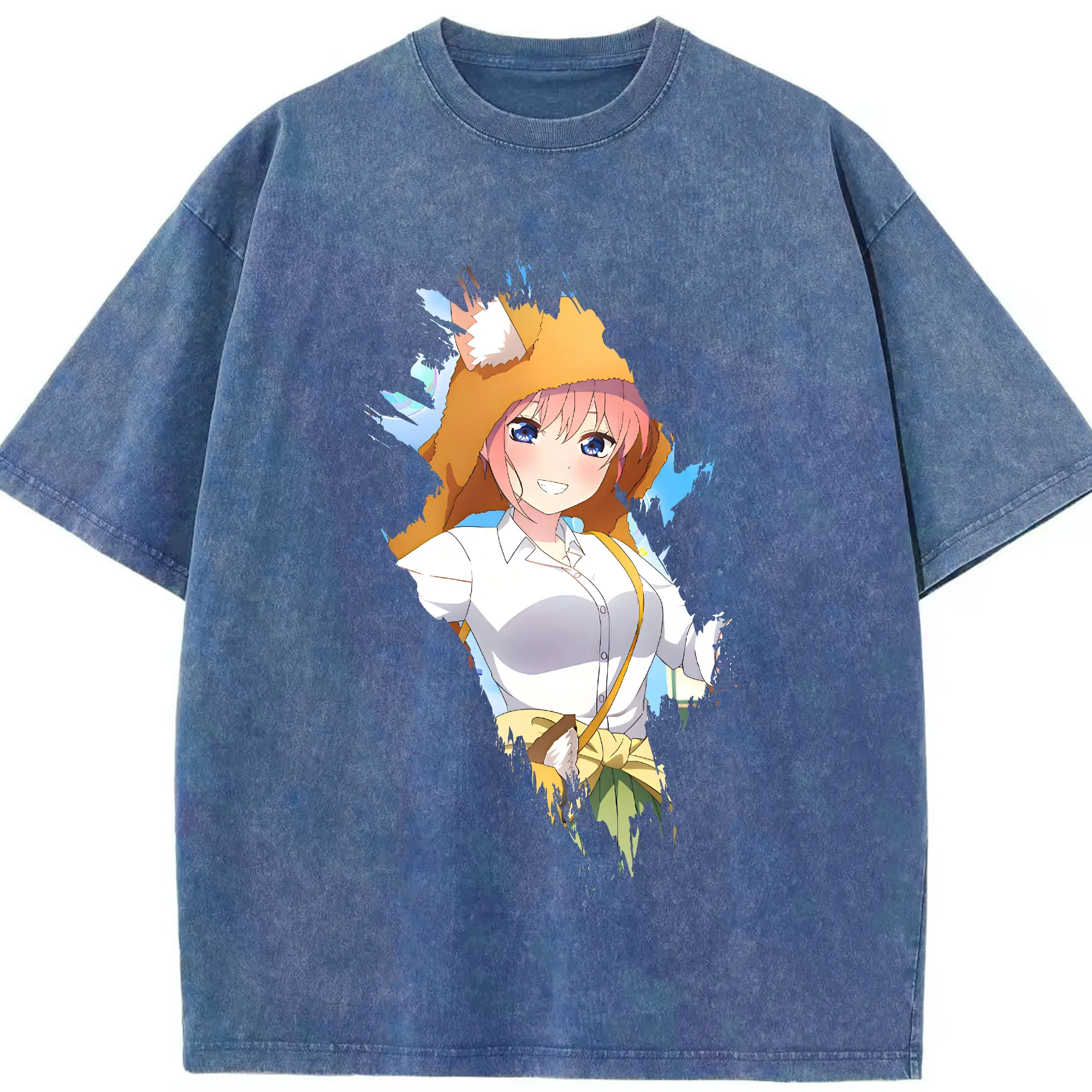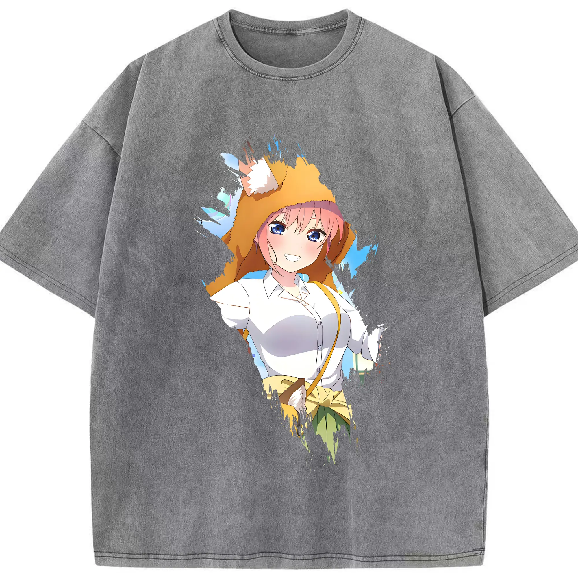 五等分の花嫁 グッズ 中野 一花 - 綿100% ヴィンテージ風 半袖Tシャツ ・ 背面プリント ・ 柔らか肌触り ・ 通気性 快適 ・ スポーツ カジュアル 外出用