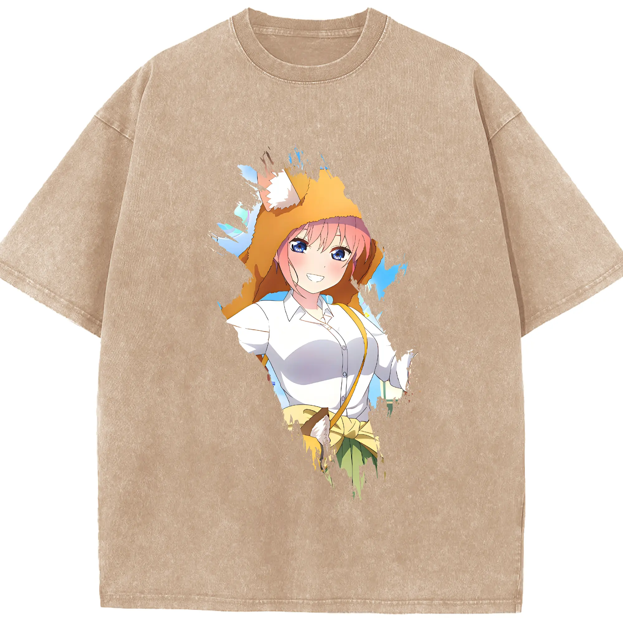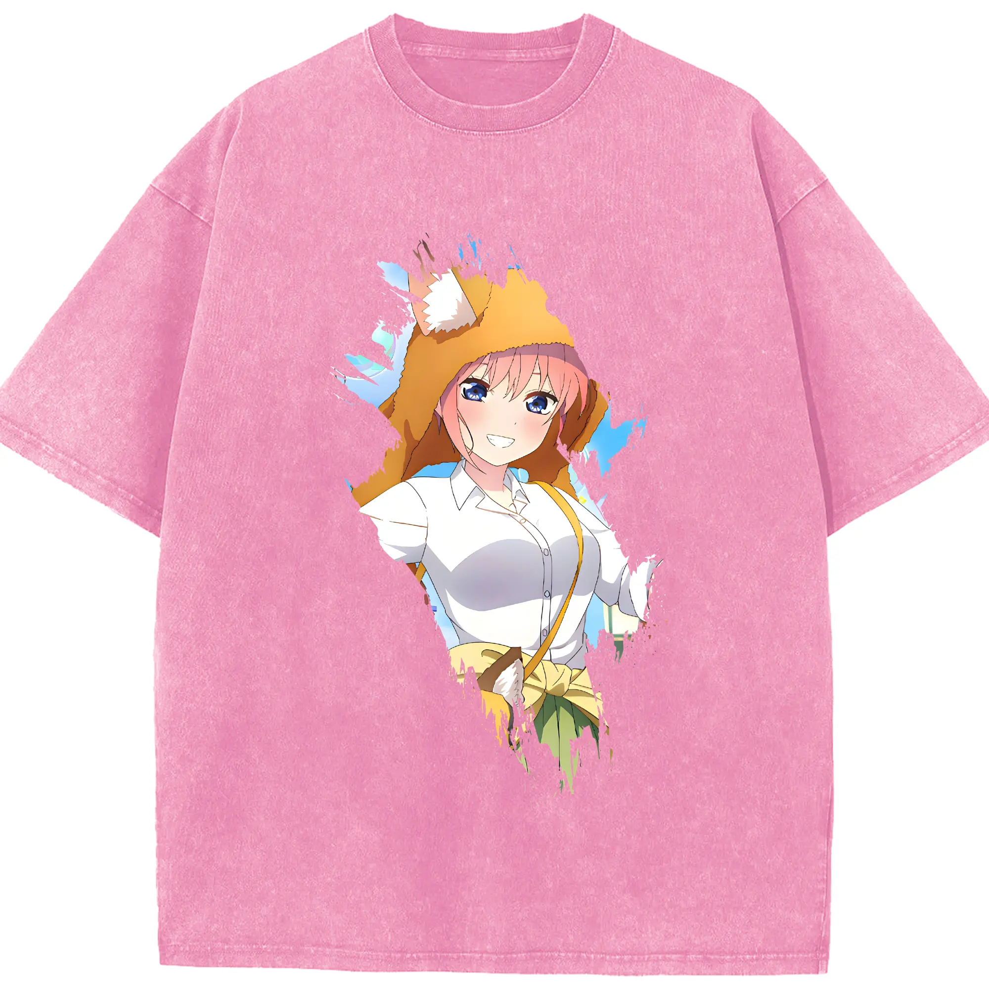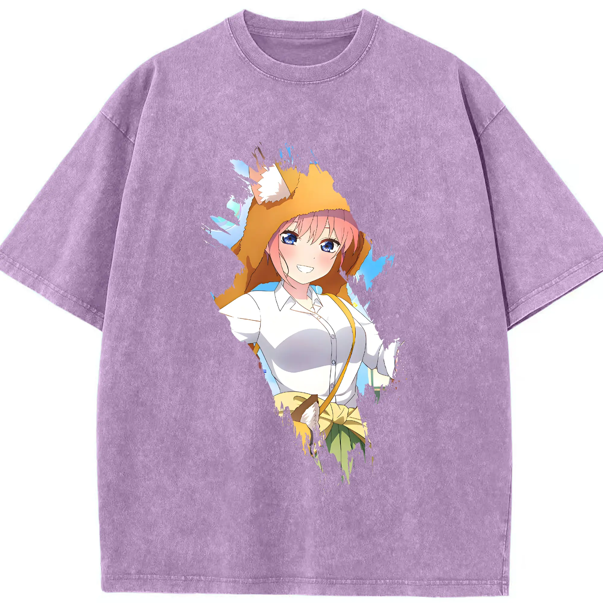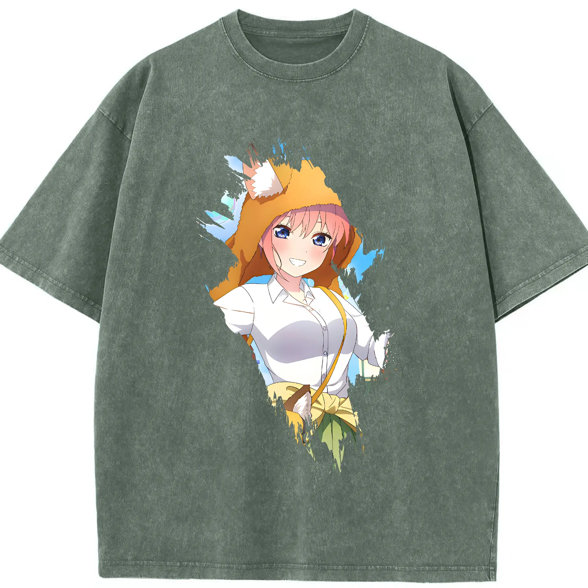 五等分の花嫁 グッズ 中野 一花 - 綿100% ヴィンテージ風 半袖Tシャツ ・ 背面プリント ・ 柔らか肌触り ・ 通気性 快適 ・ スポーツ カジュアル 外出用