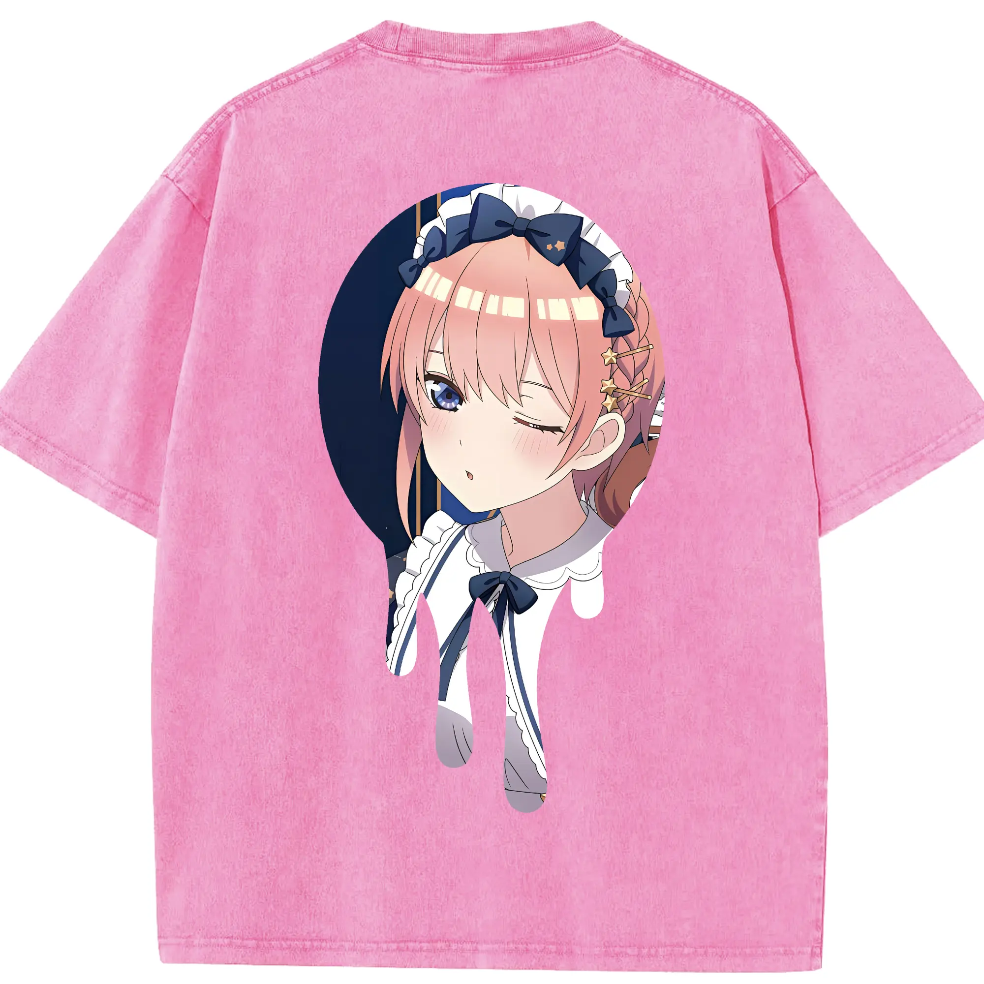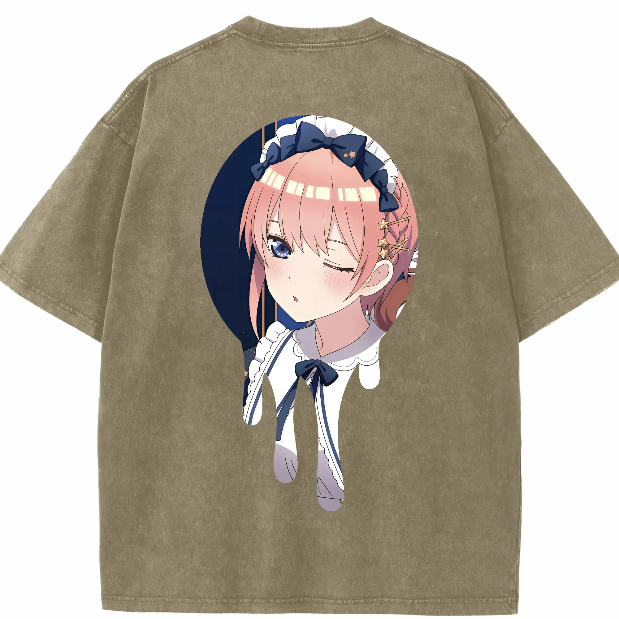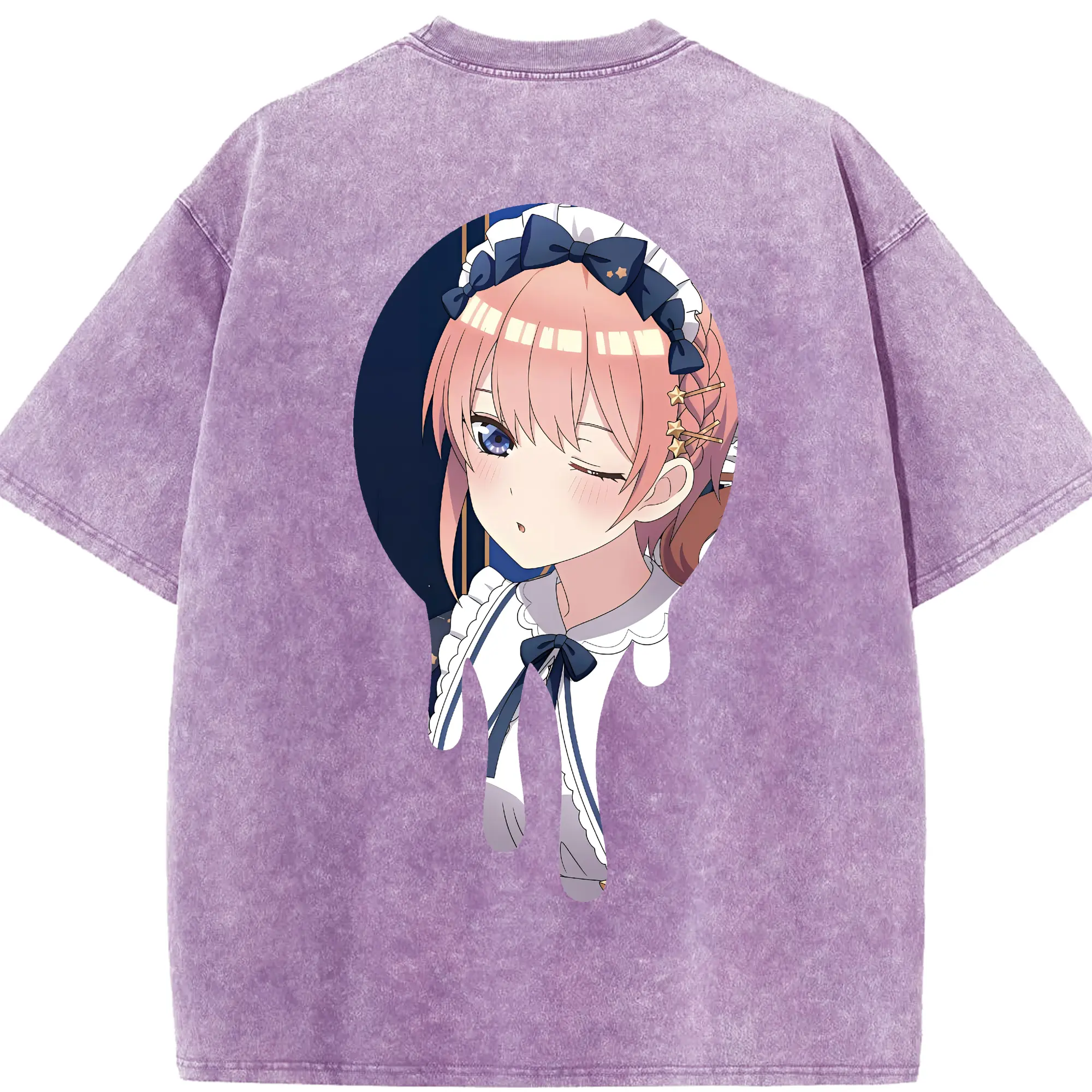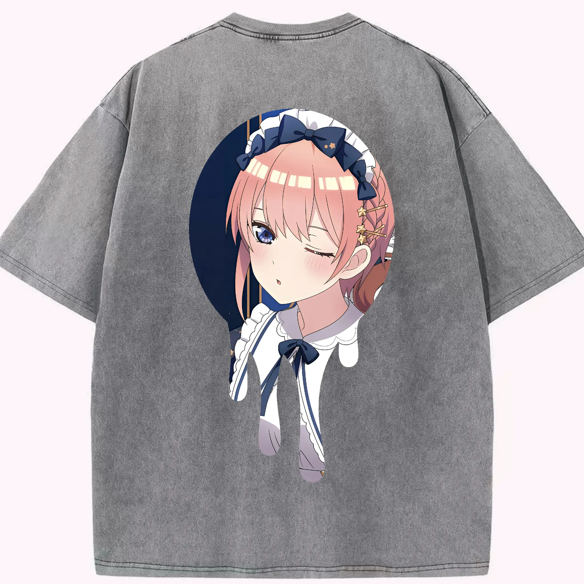 五等分の花嫁 グッズ 中野 一花 - 綿100% ヴィンテージ風 半袖Tシャツ ・ フロントプリント ・ 柔らか肌触り ・ 通気性 快適 ・ スポーツ カジュアル 外出用