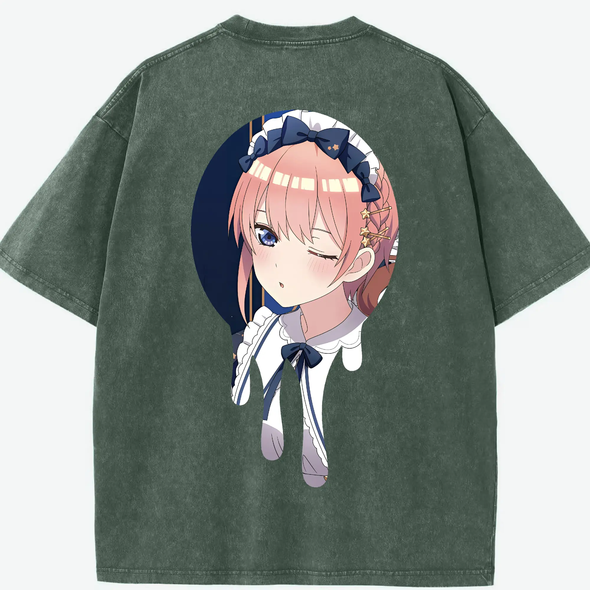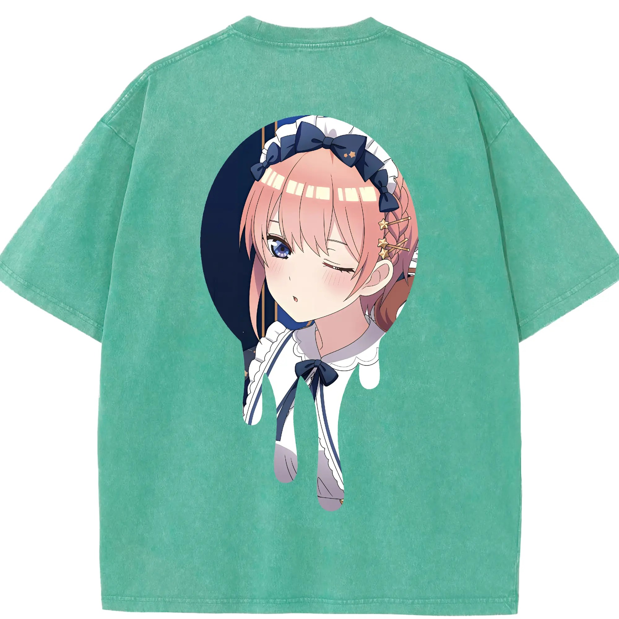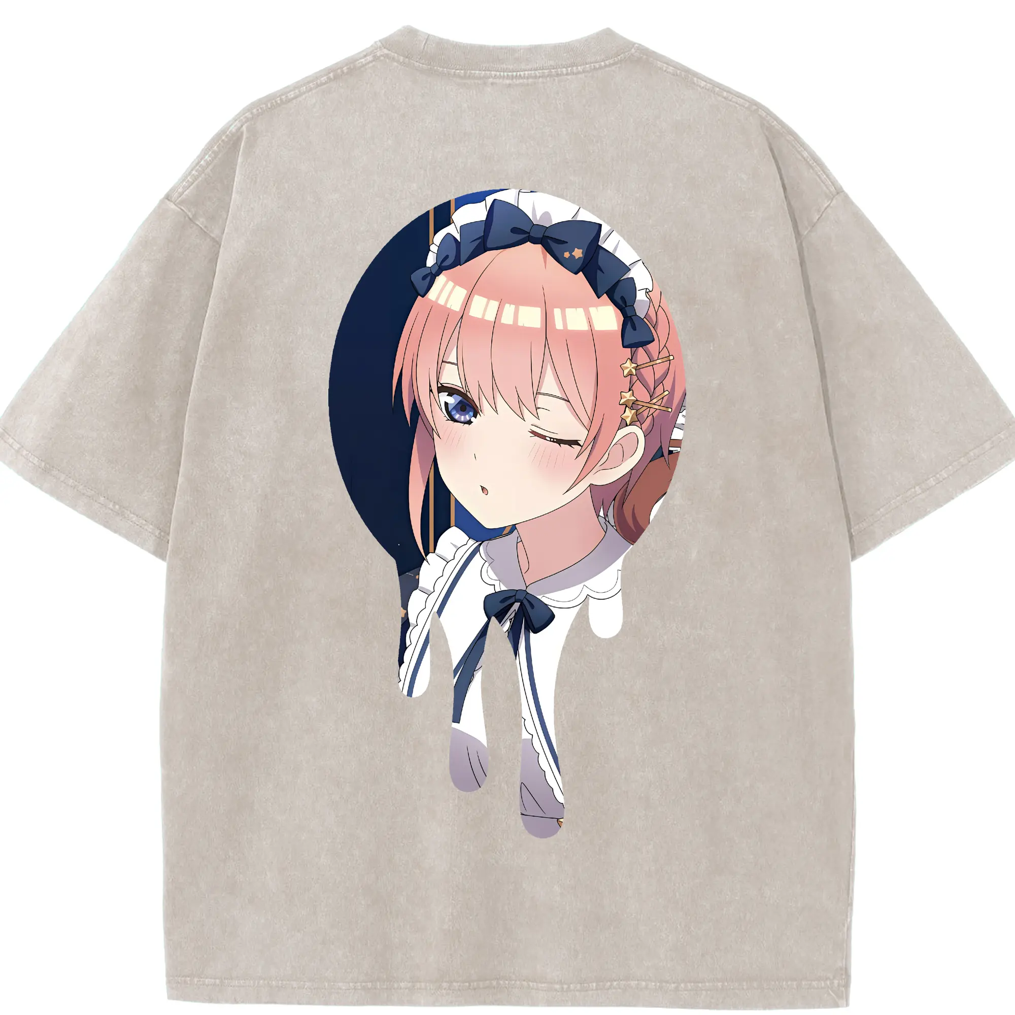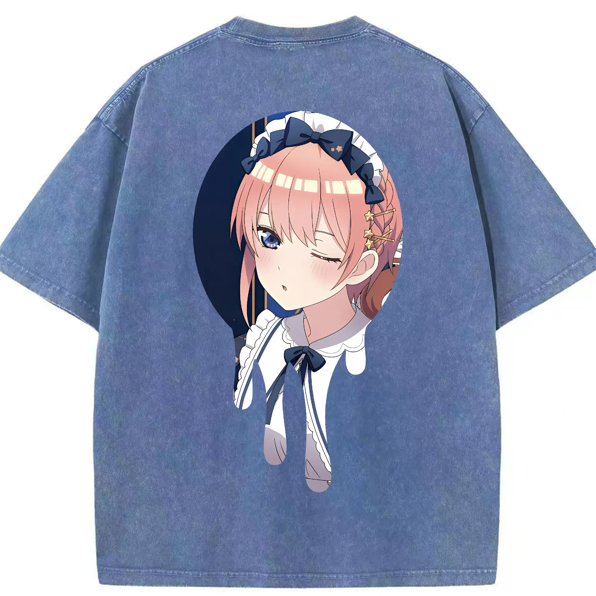 五等分の花嫁 グッズ 中野 一花 - 綿100% ヴィンテージ風 半袖Tシャツ ・ フロントプリント ・ 柔らか肌触り ・ 通気性 快適 ・ スポーツ カジュアル 外出用