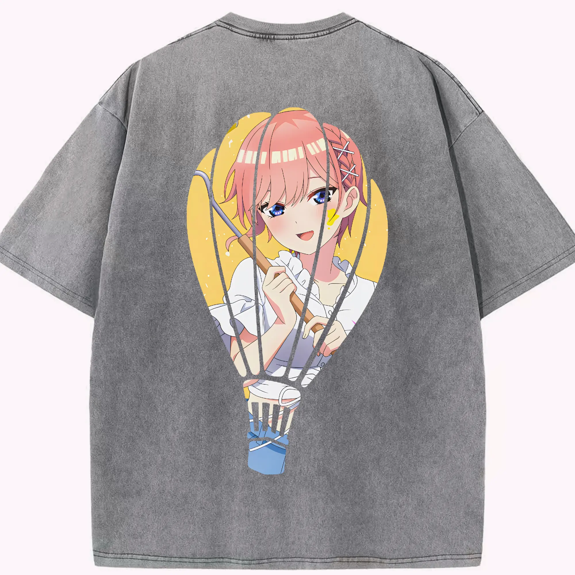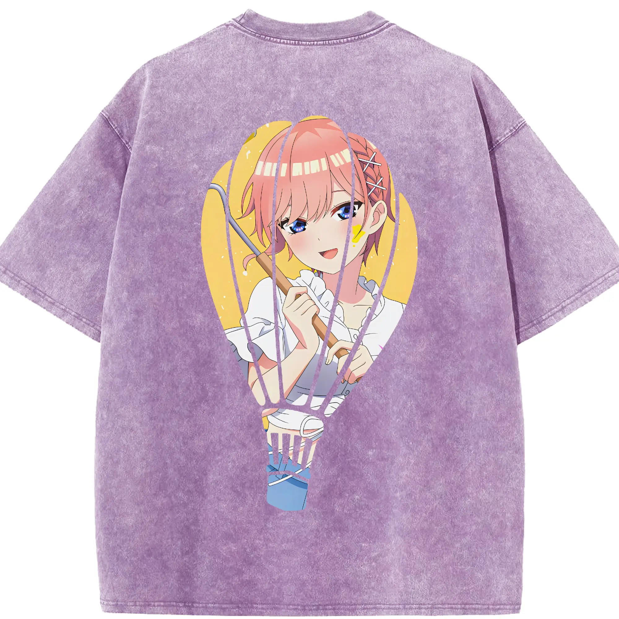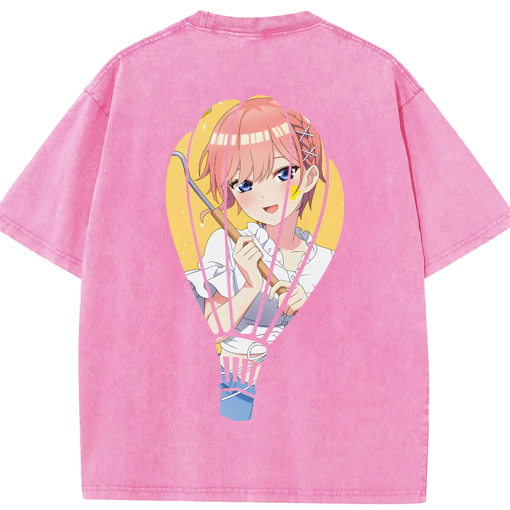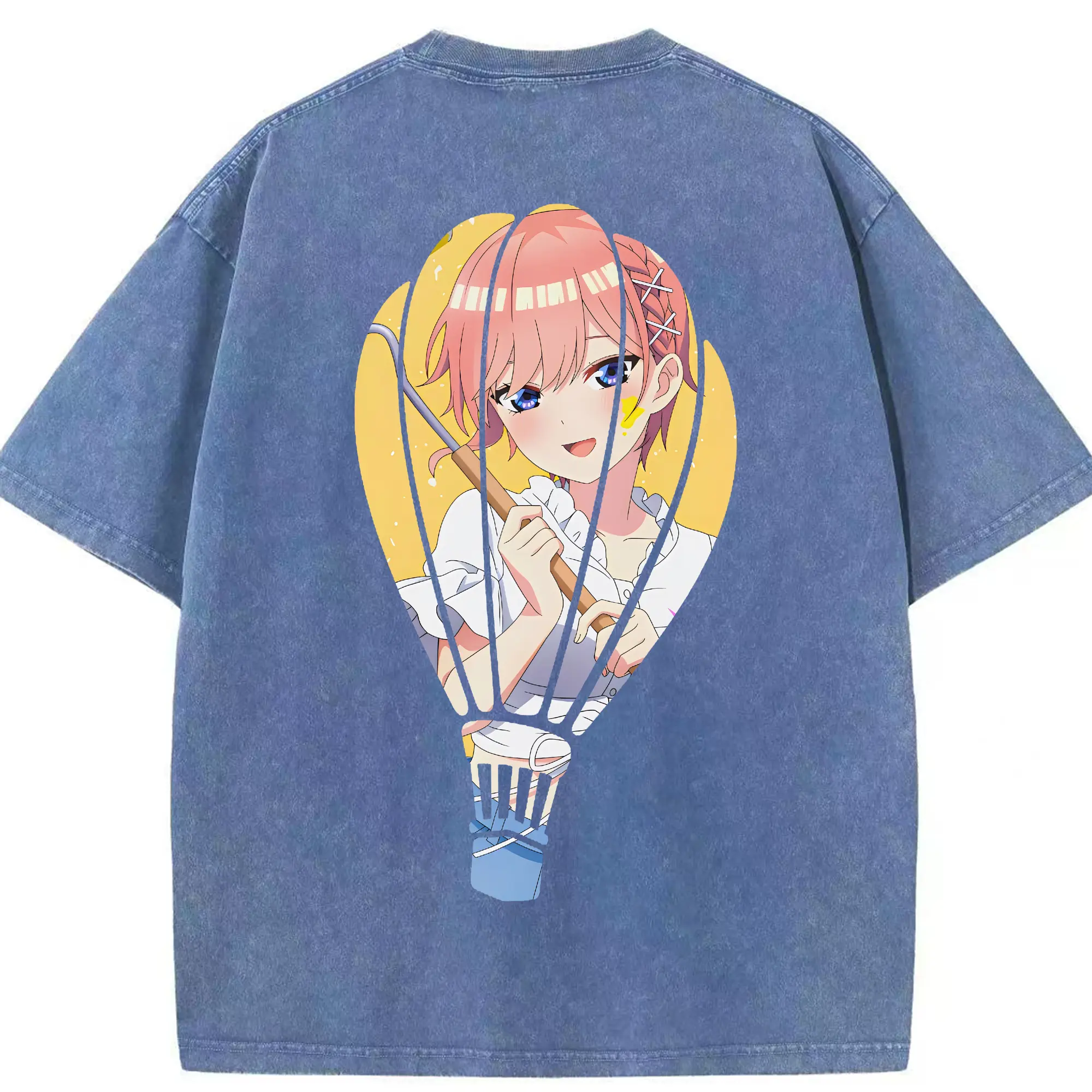 五等分の花嫁 グッズ 中野 一花 - 綿100% ヴィンテージ風 半袖Tシャツ ・ フロントプリント ・ 柔らか肌触り ・ 通気性 快適 ・ スポーツ カジュアル 外出用