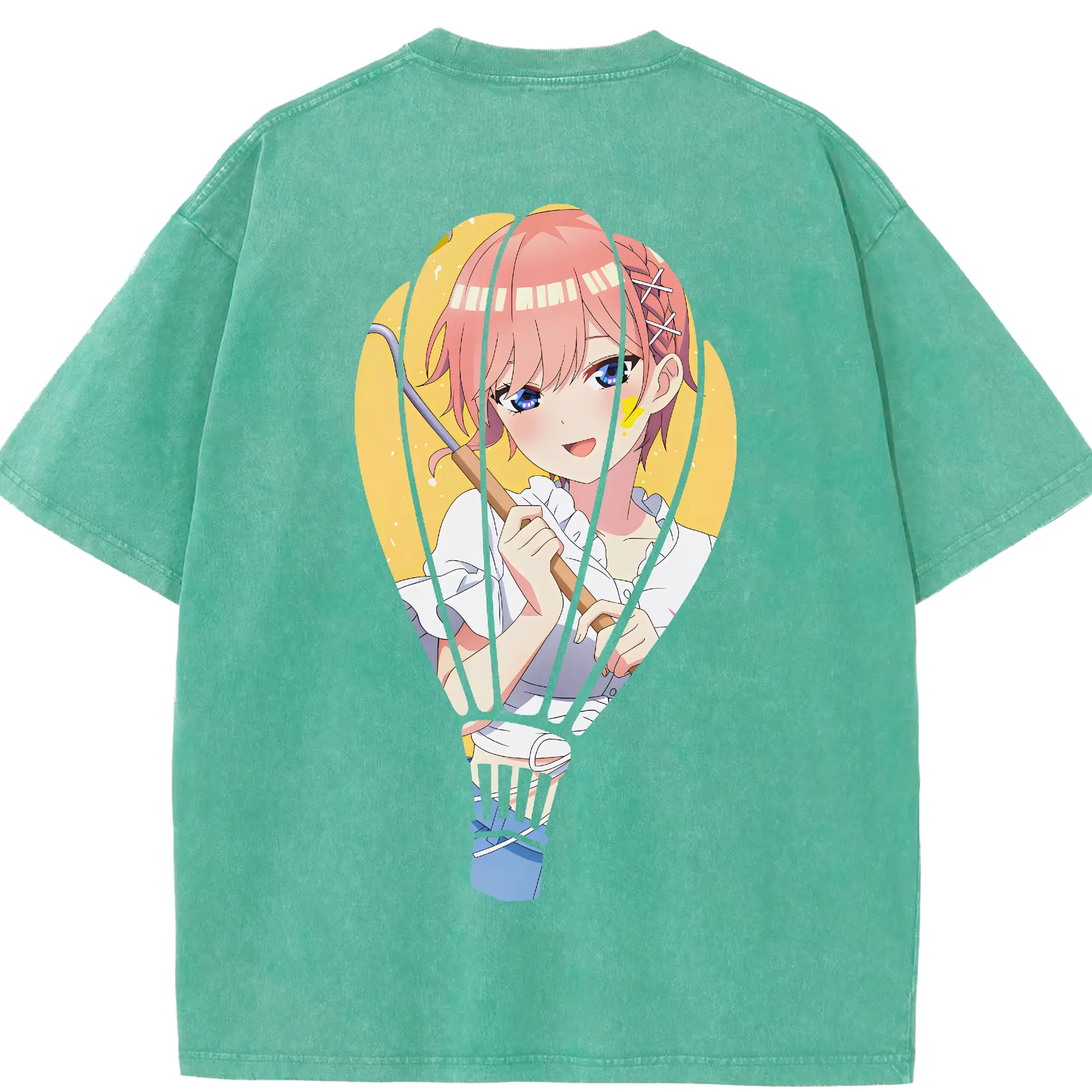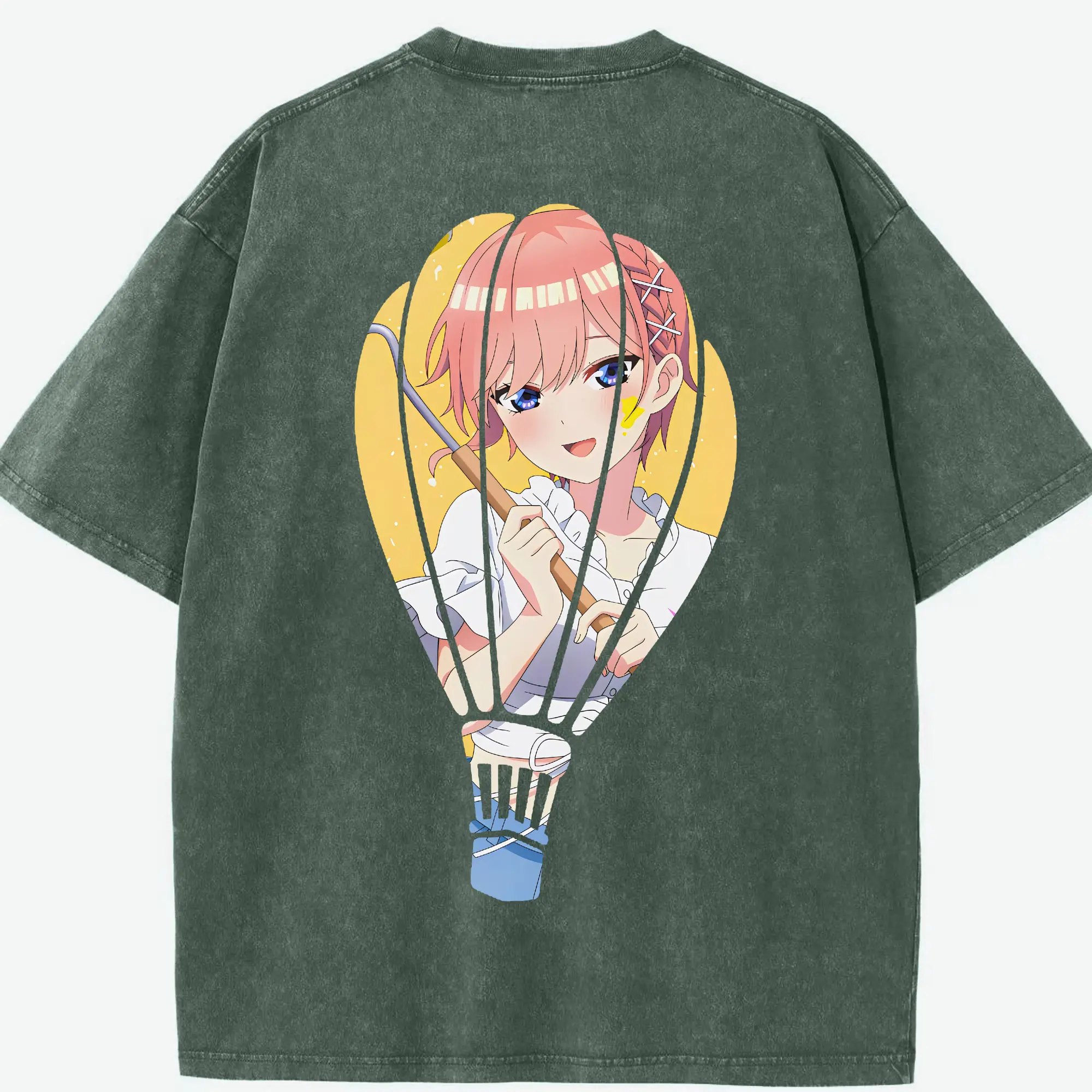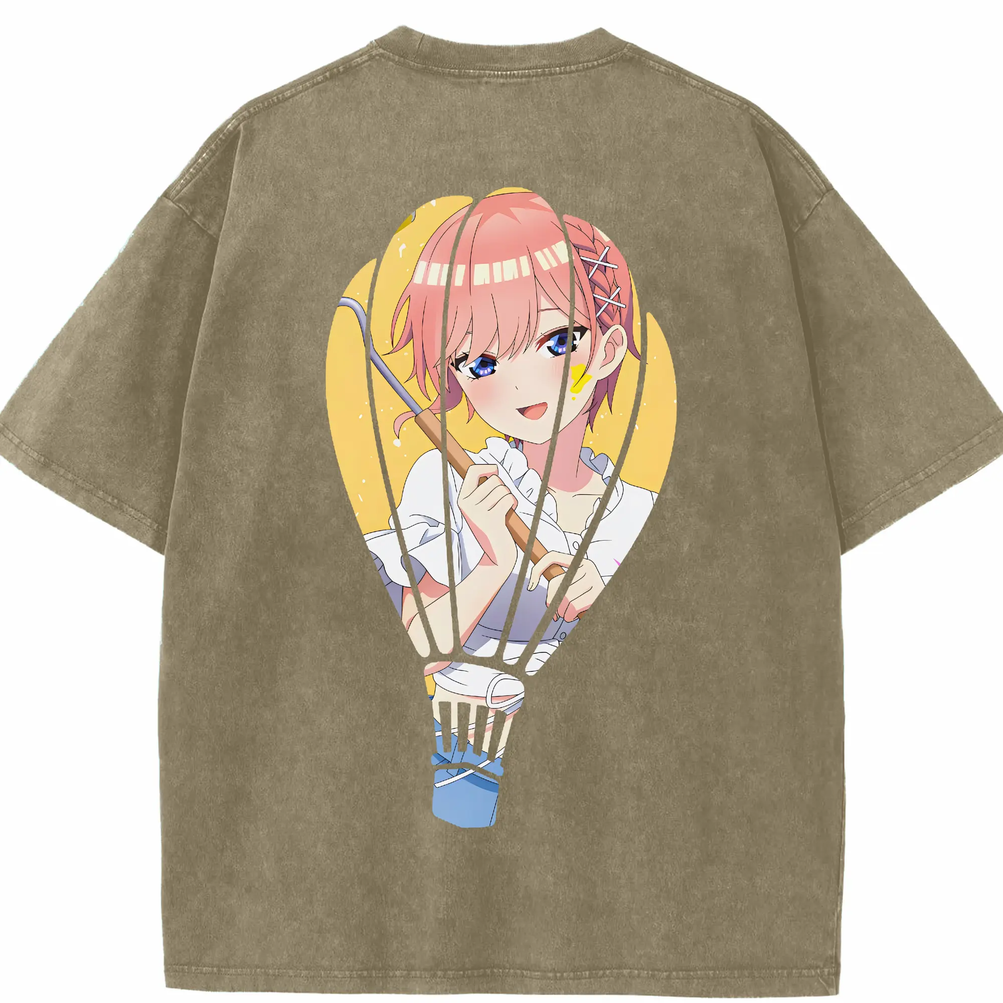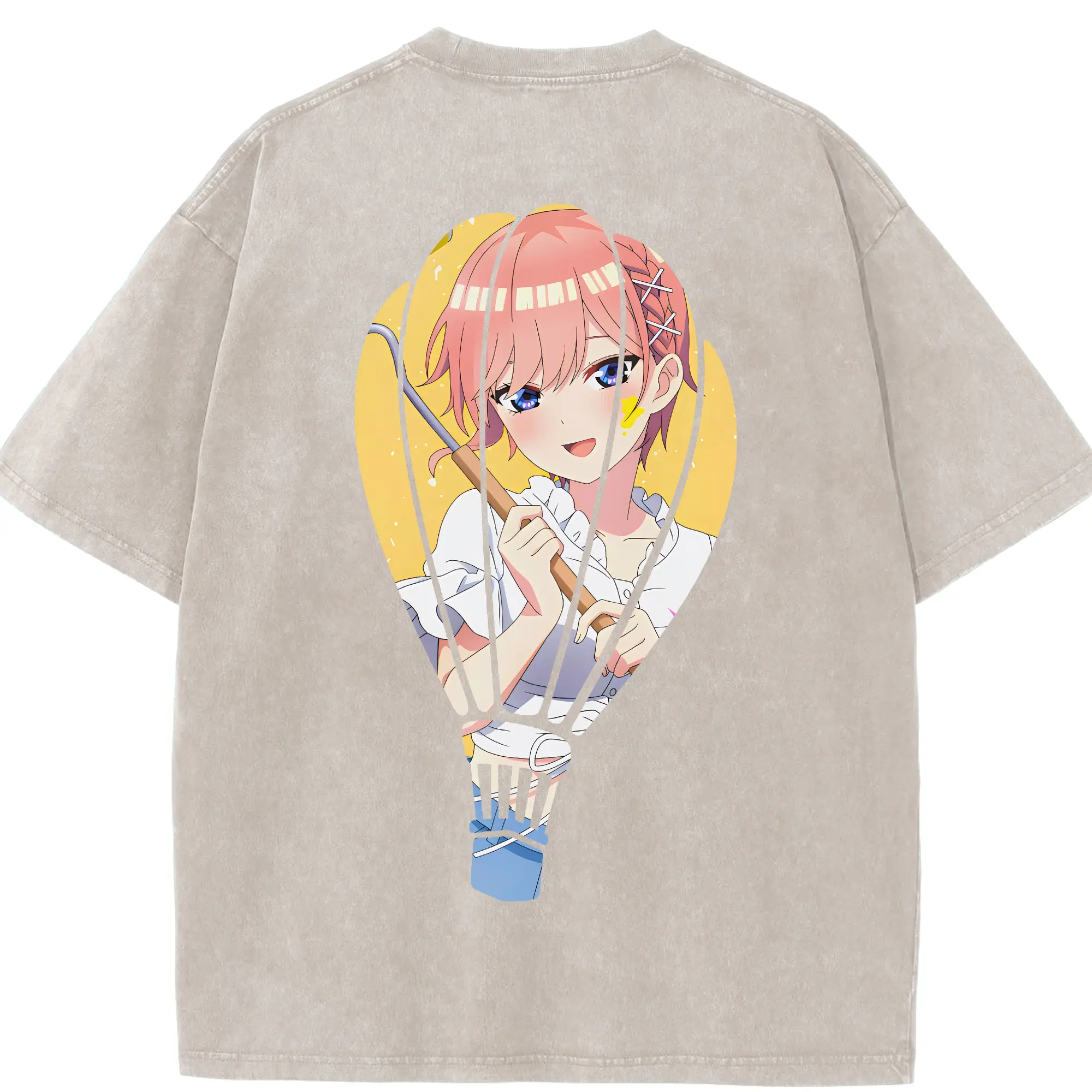五等分の花嫁 グッズ 中野 一花 - 綿100% ヴィンテージ風 半袖Tシャツ ・ フロントプリント ・ 柔らか肌触り ・ 通気性 快適 ・ スポーツ カジュアル 外出用