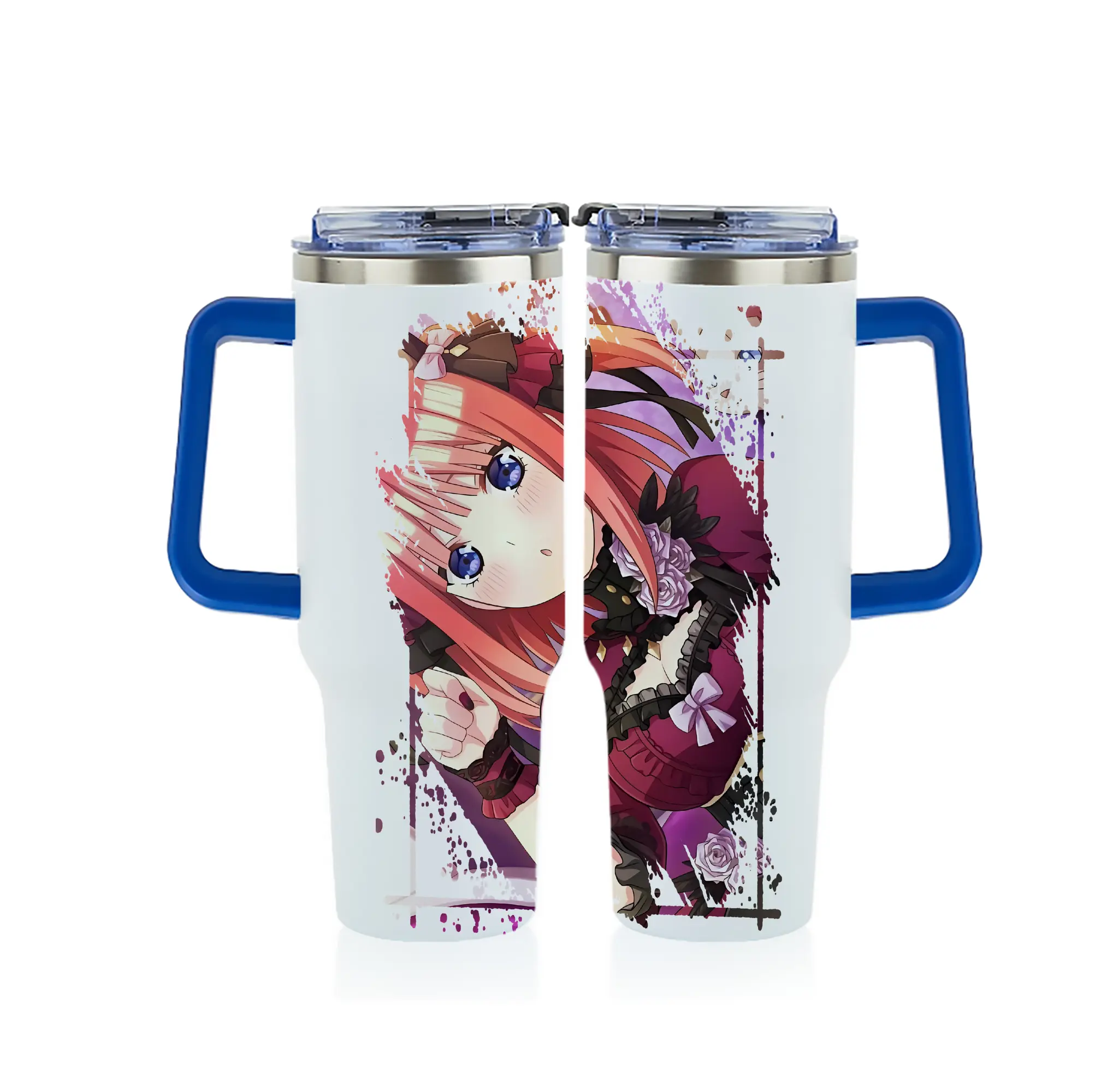 五等分の花嫁 グッズ 中野 二乃 - 1200mL フルプリント車用タンブラー ・ 304ステンレス 内側 ・ 201ステンレス 外側 ・ 保温 保冷 ・ 通勤 ドライブ アウトドア用