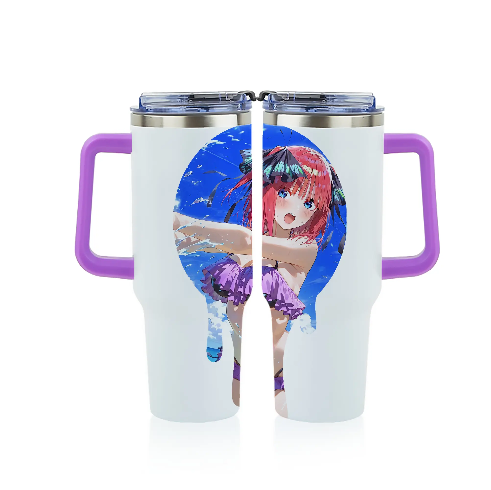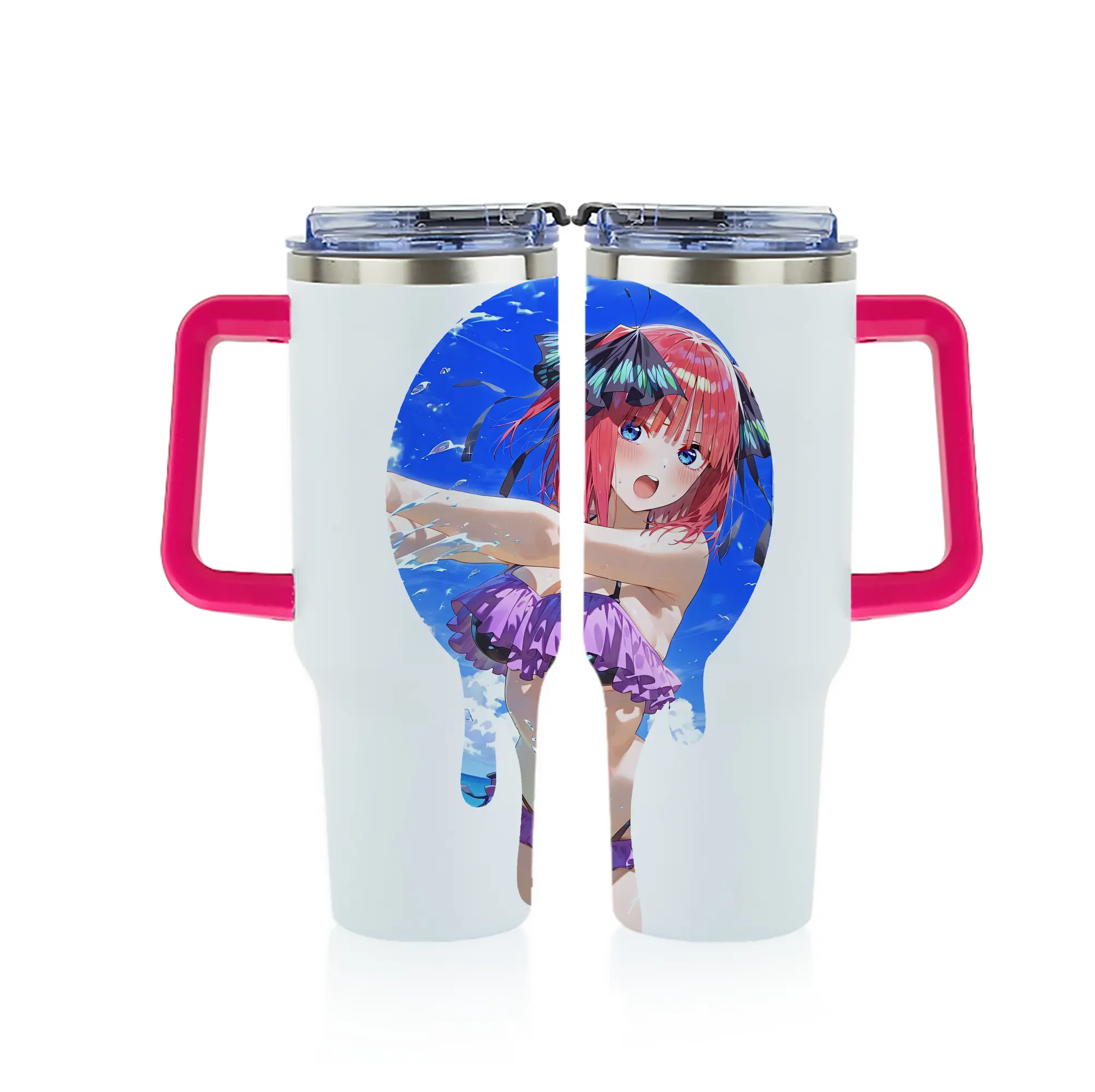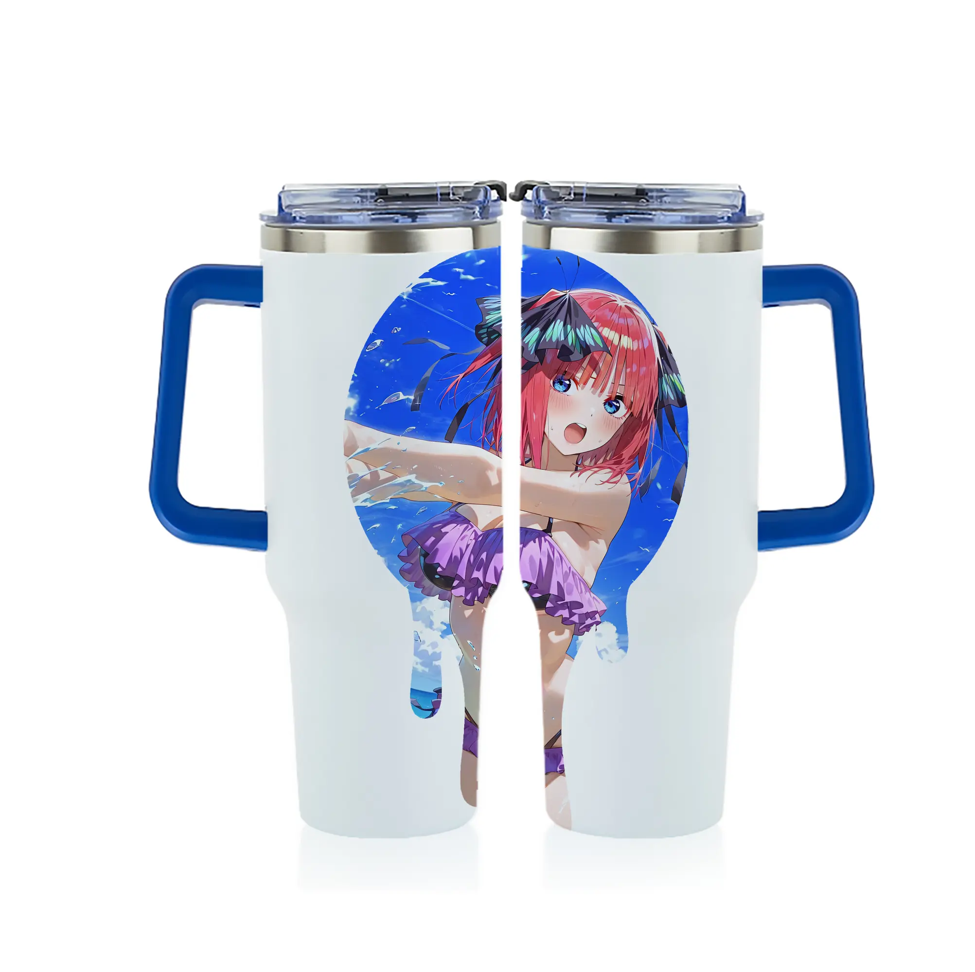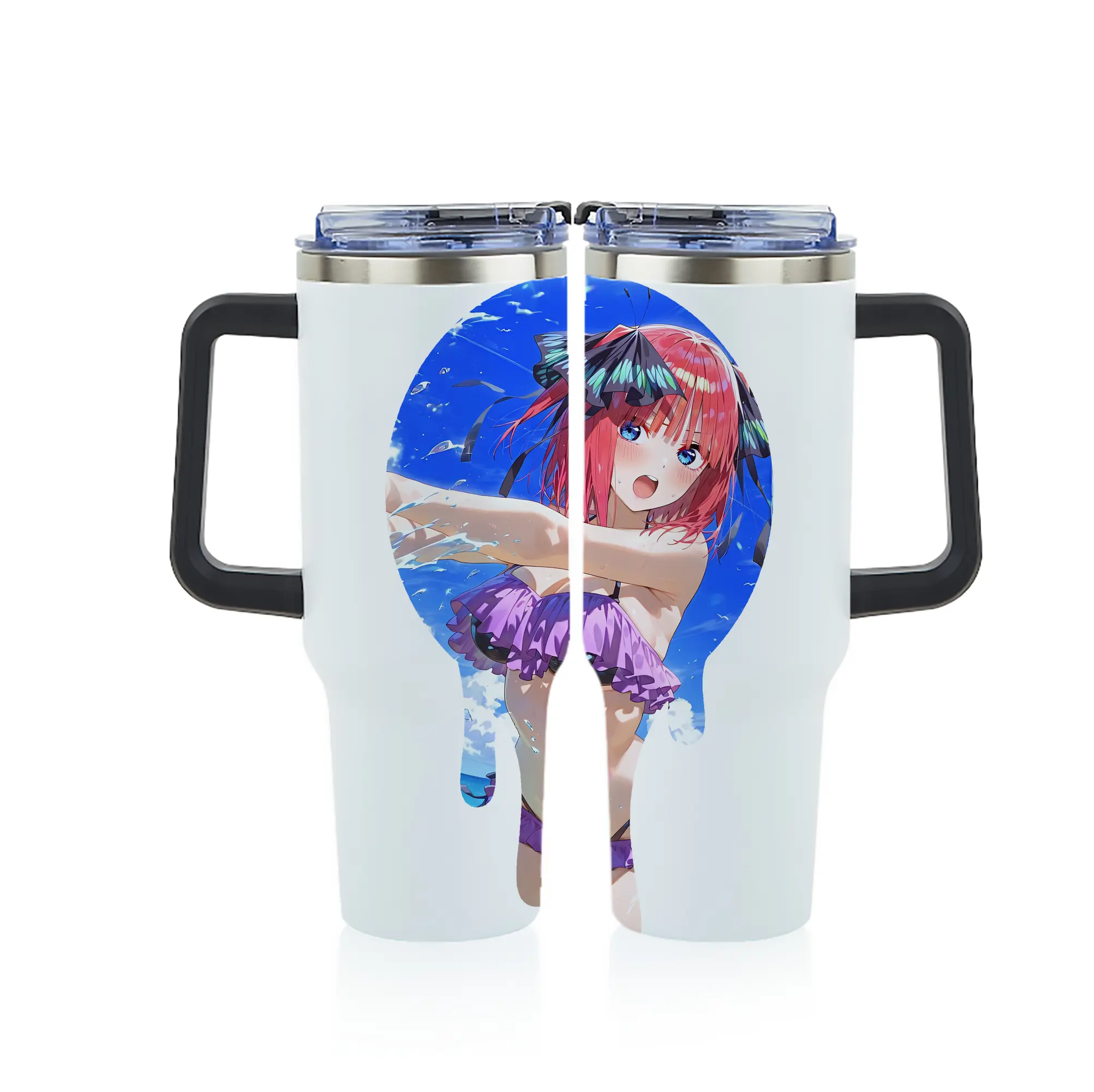 五等分の花嫁 グッズ 中野 二乃 - 1200mL フルプリント車用タンブラー ・ 304ステンレス 内側 ・ 201ステンレス 外側 ・ 保温 保冷 ・ 通勤 ドライブ アウトドア用
