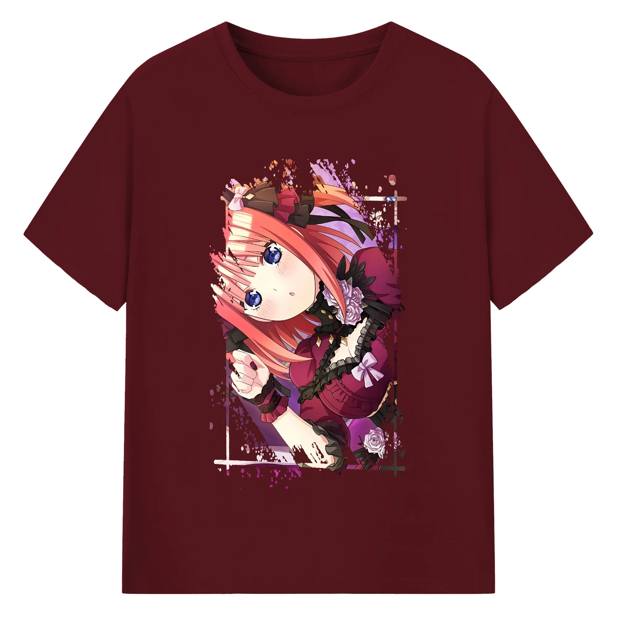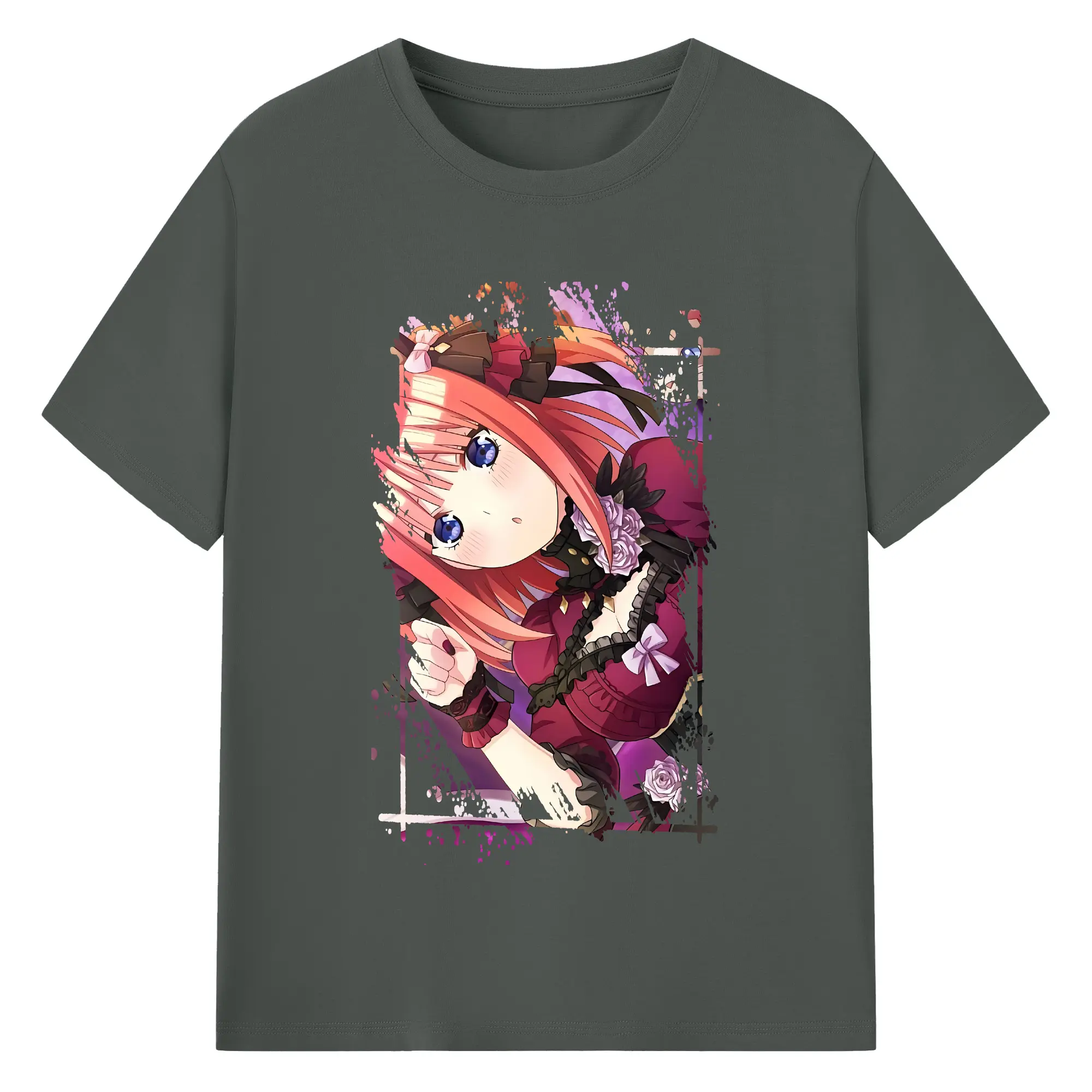 五等分の花嫁 グッズ 中野 二乃 - 綿100% 半袖Tシャツ ・ バックプリント ・ 快適 通気性 ・ 日常使い 散歩 スポーツ用