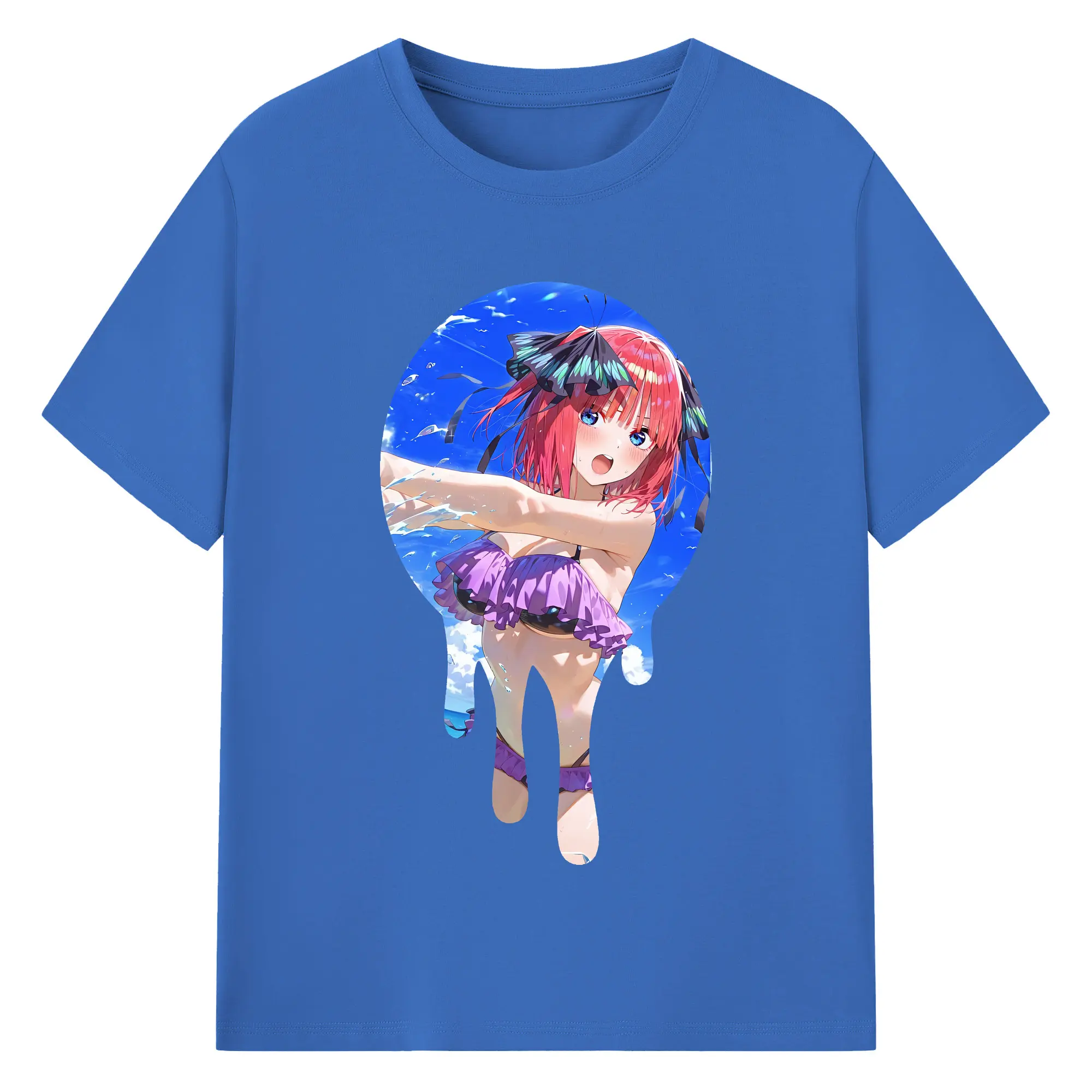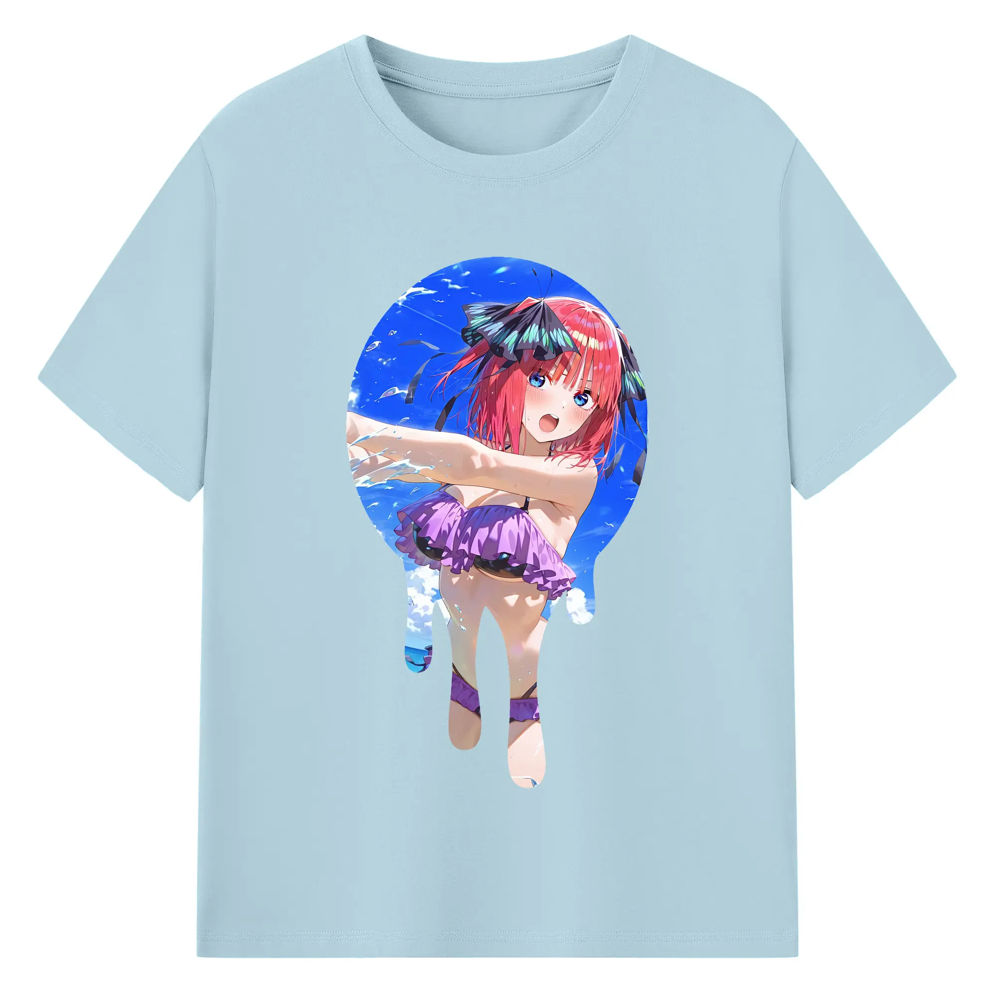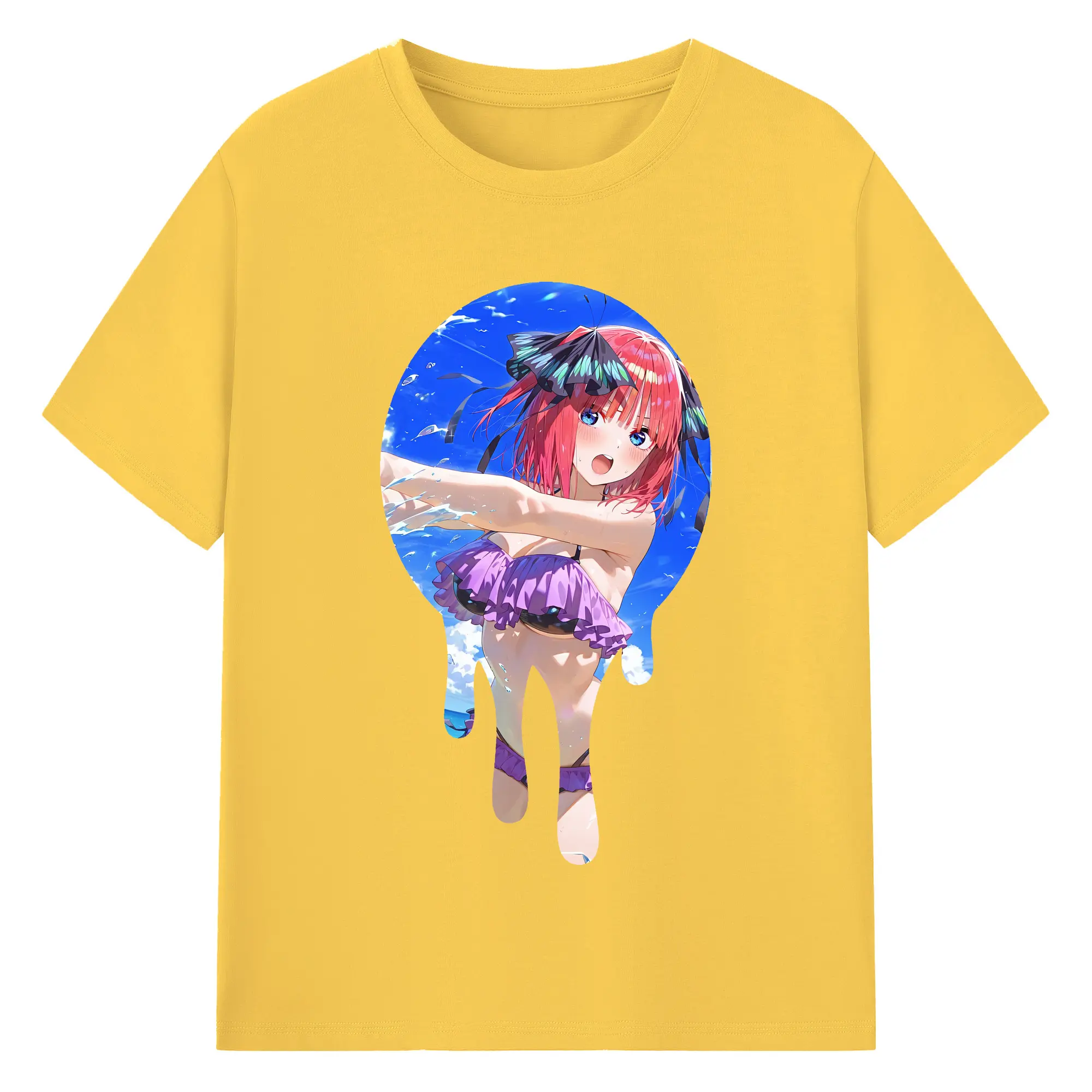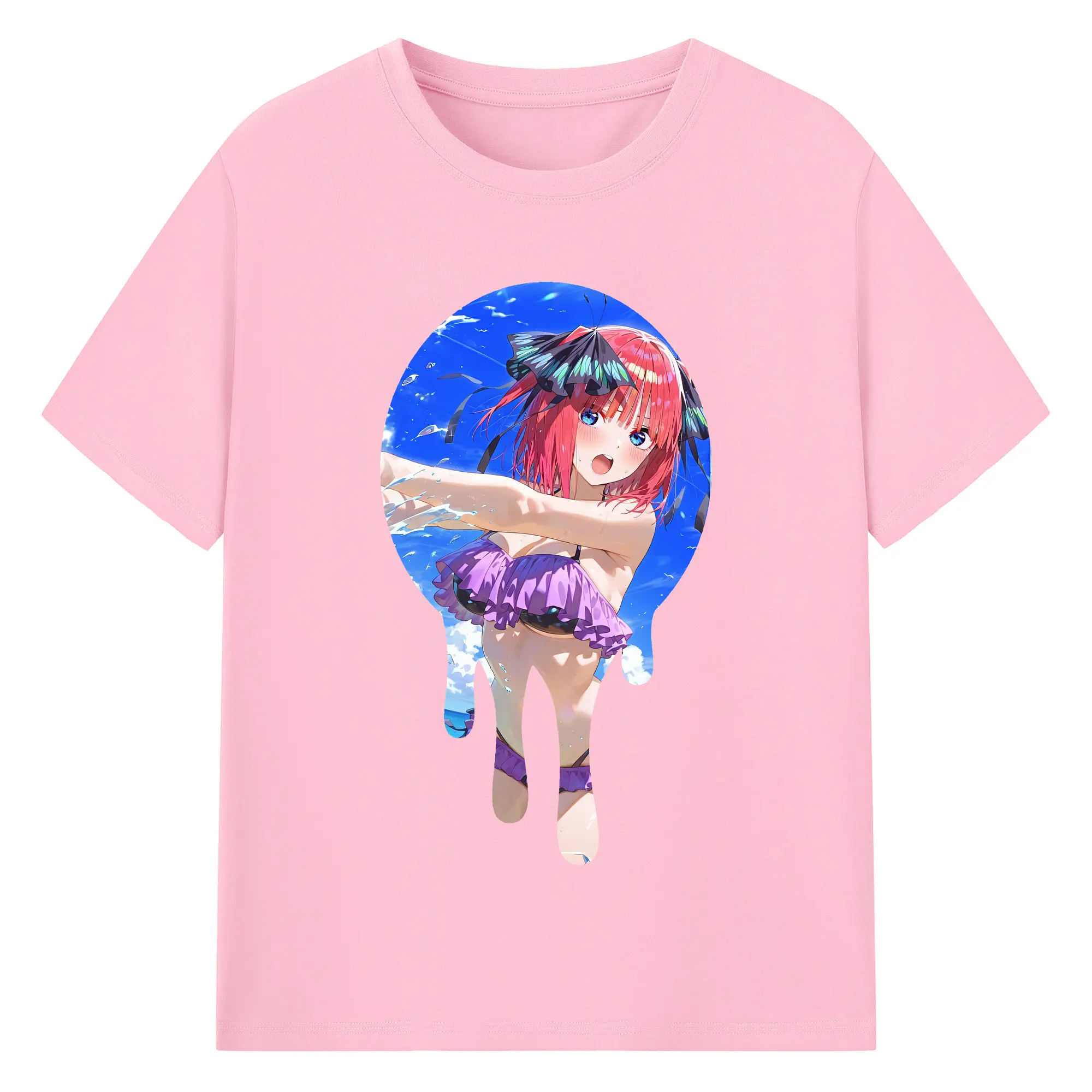 五等分の花嫁 グッズ 中野 二乃 - 綿100% 半袖Tシャツ ・ バックプリント ・ 快適 通気性 ・ 日常使い 散歩 スポーツ用