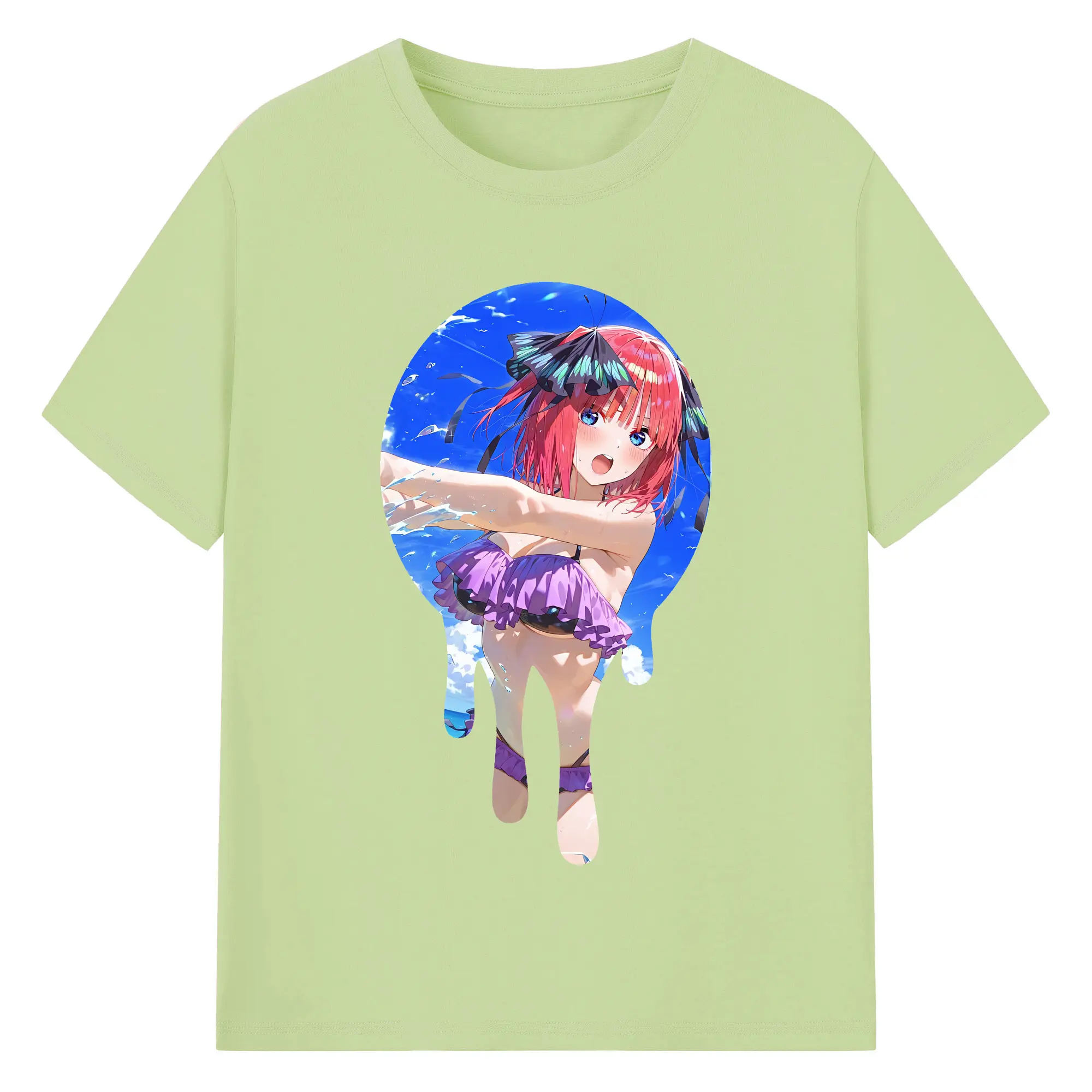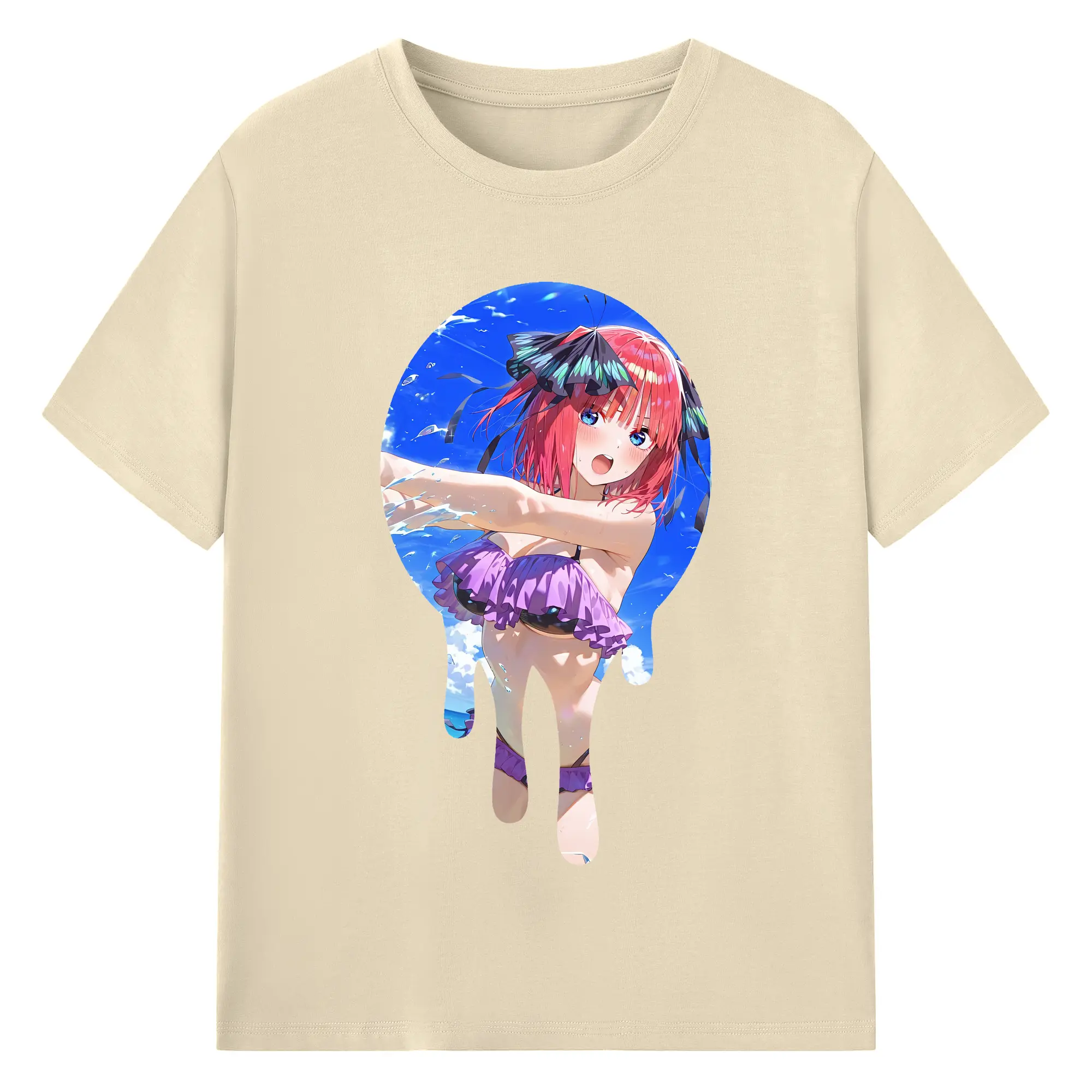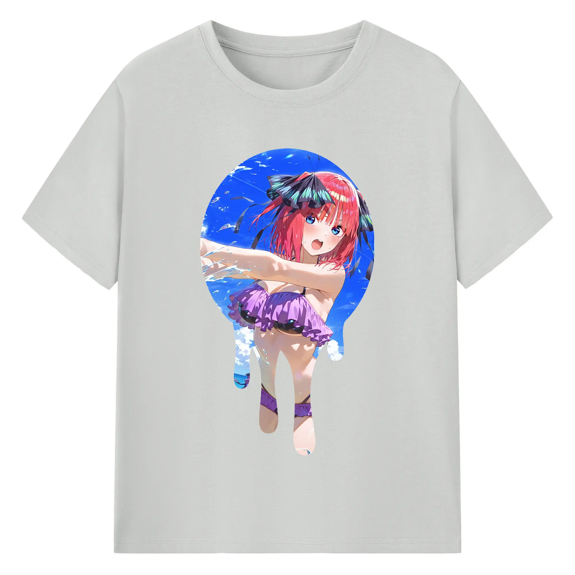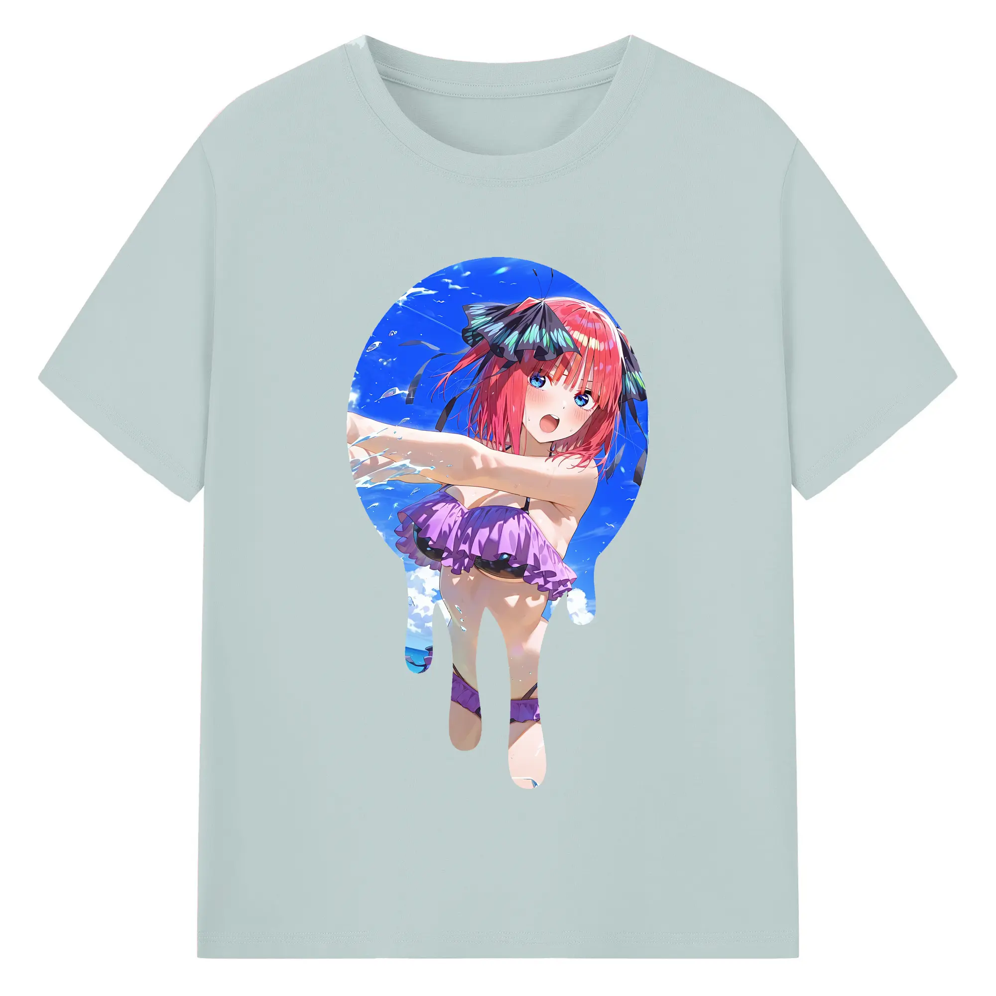 五等分の花嫁 グッズ 中野 二乃 - 綿100% 半袖Tシャツ ・ バックプリント ・ 快適 通気性 ・ 日常使い 散歩 スポーツ用