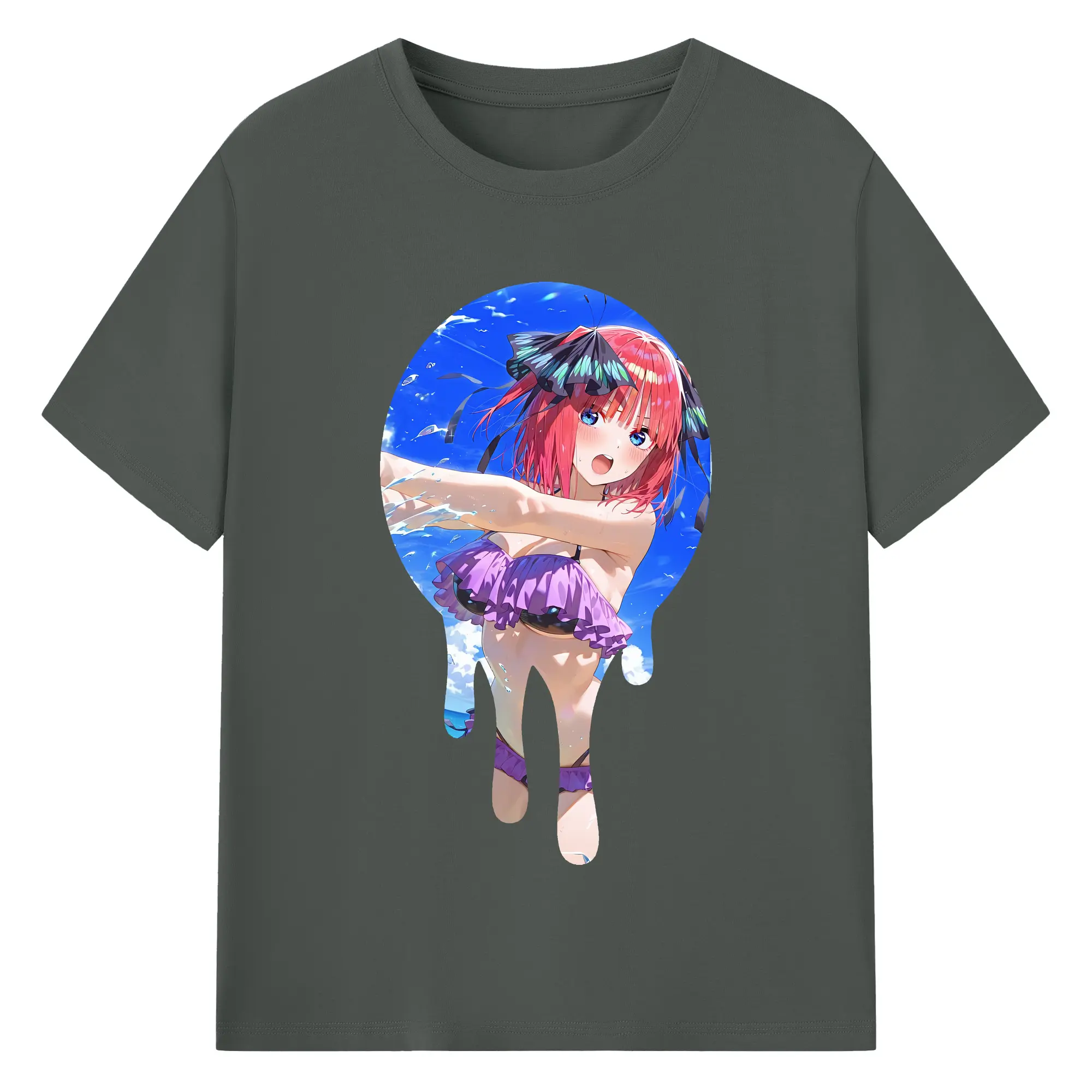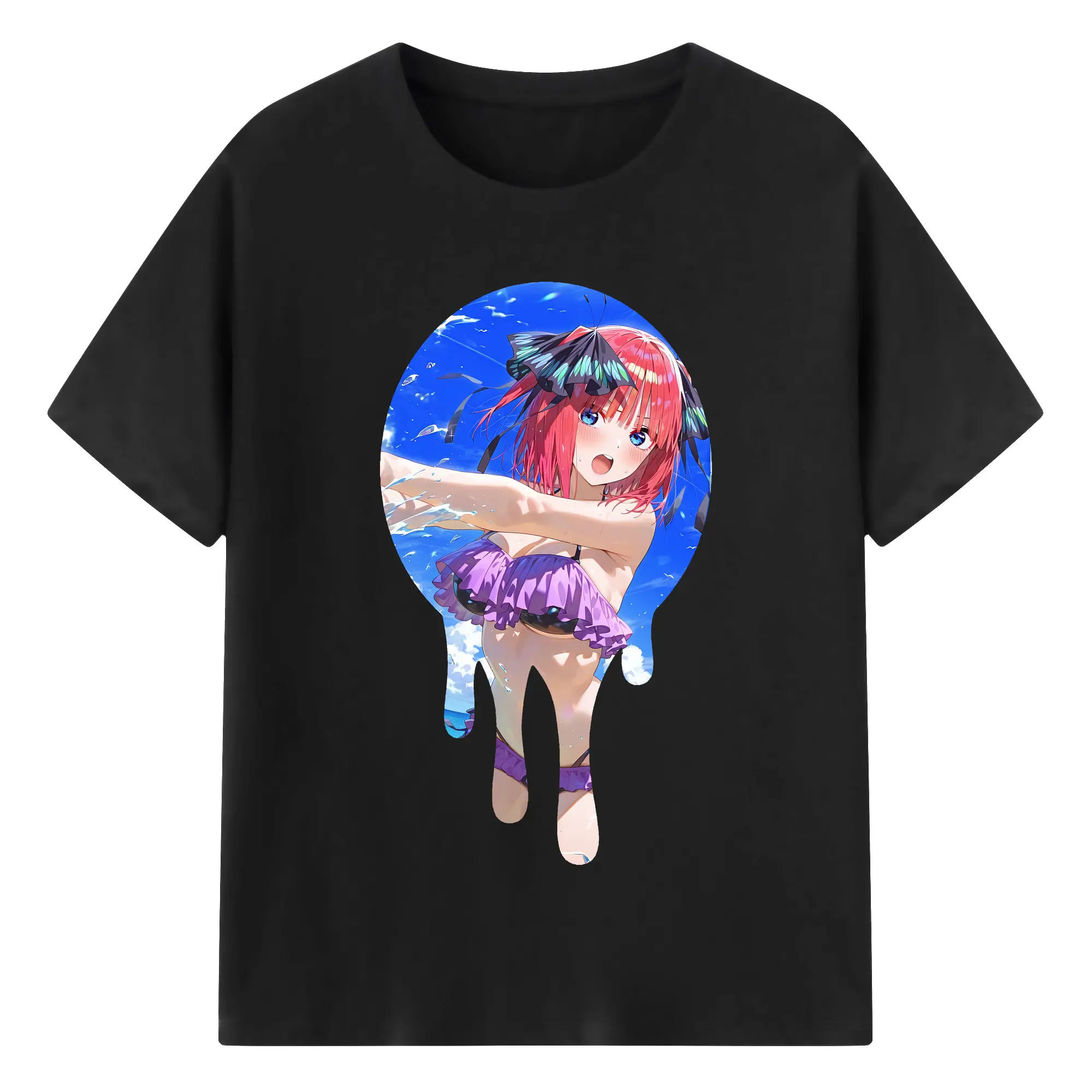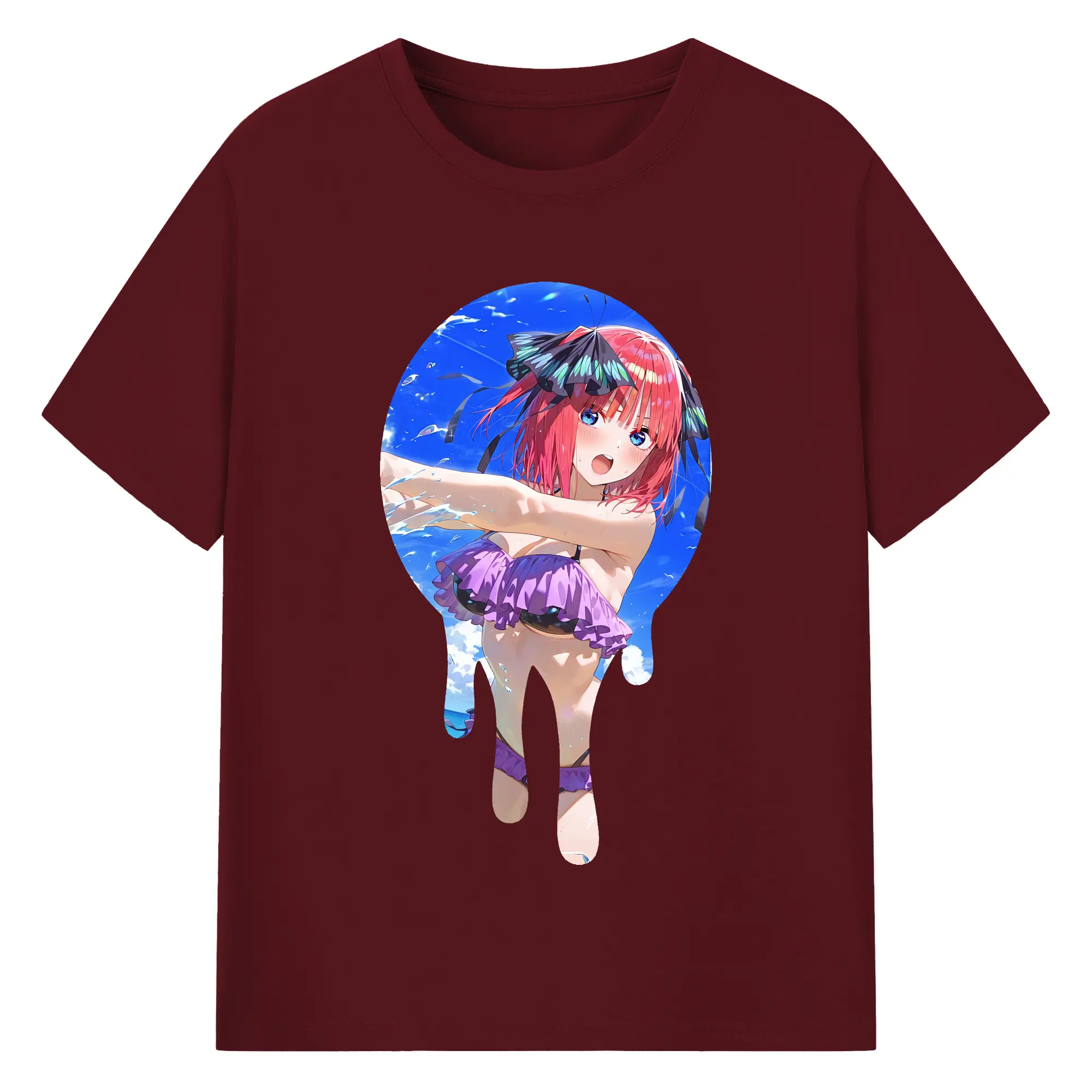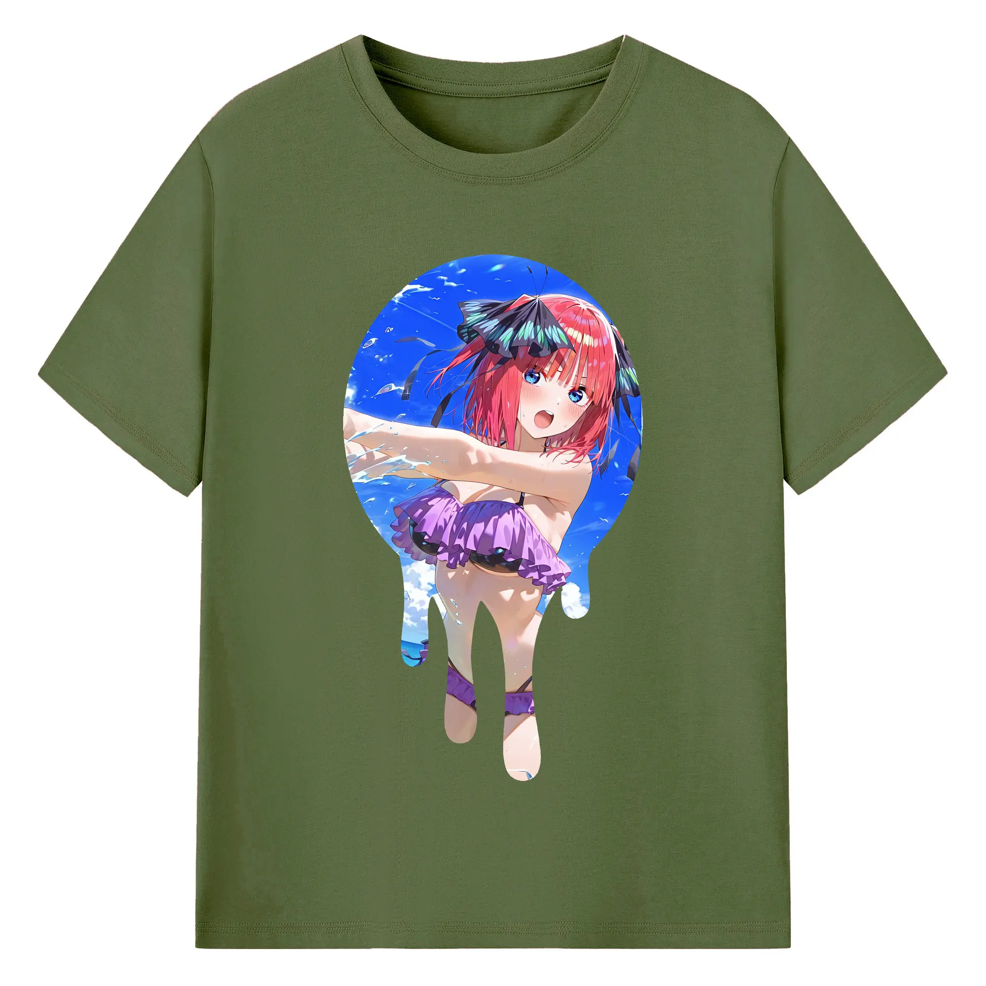 五等分の花嫁 グッズ 中野 二乃 - 綿100% 半袖Tシャツ ・ バックプリント ・ 快適 通気性 ・ 日常使い 散歩 スポーツ用