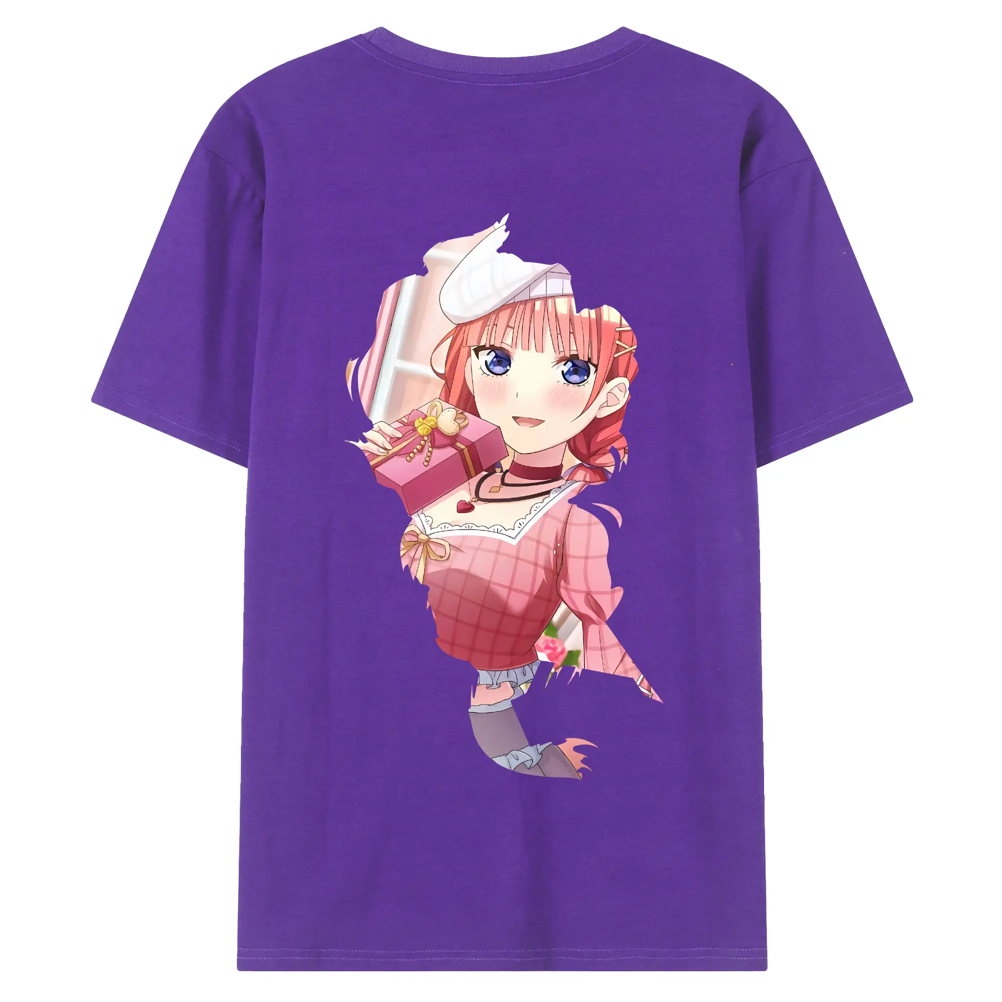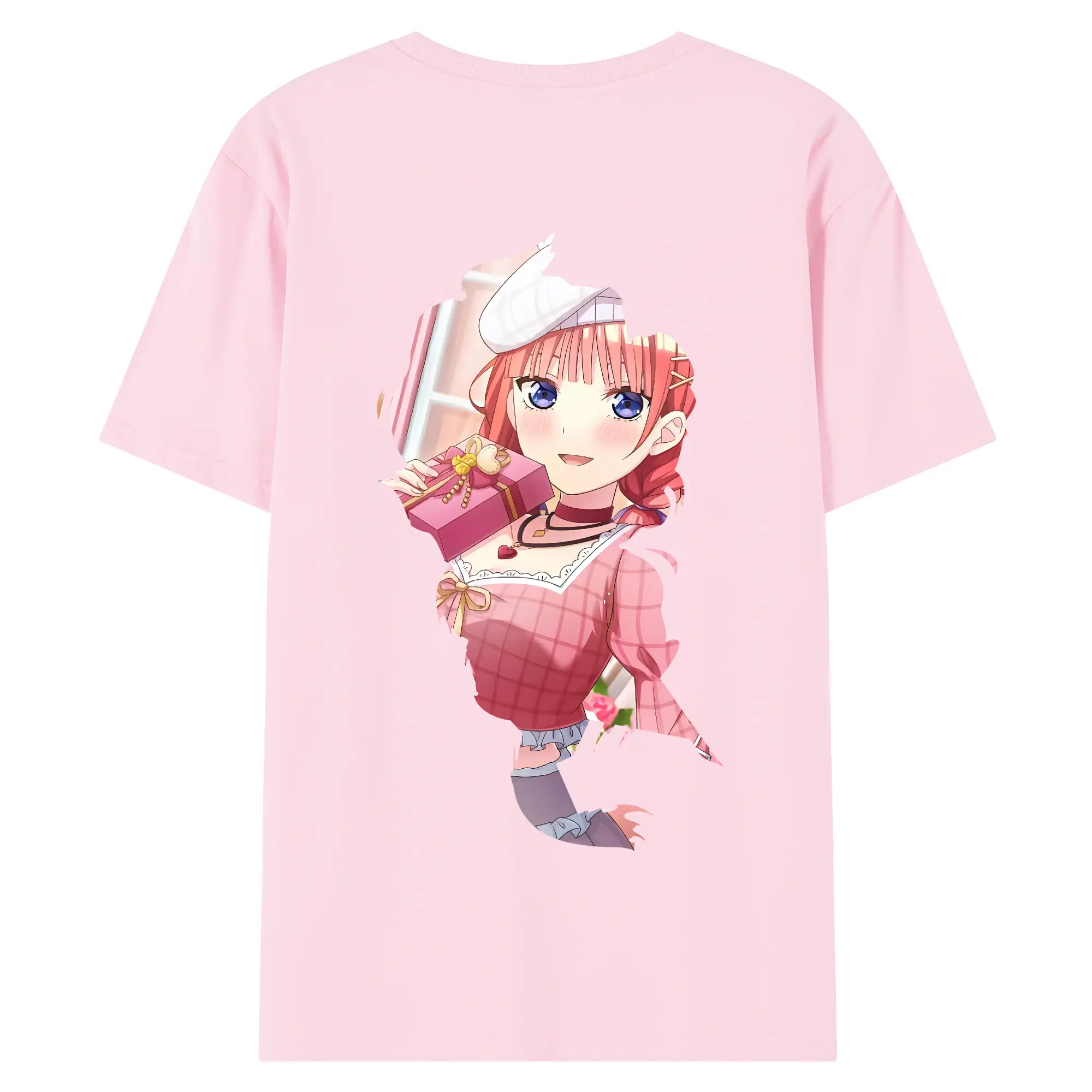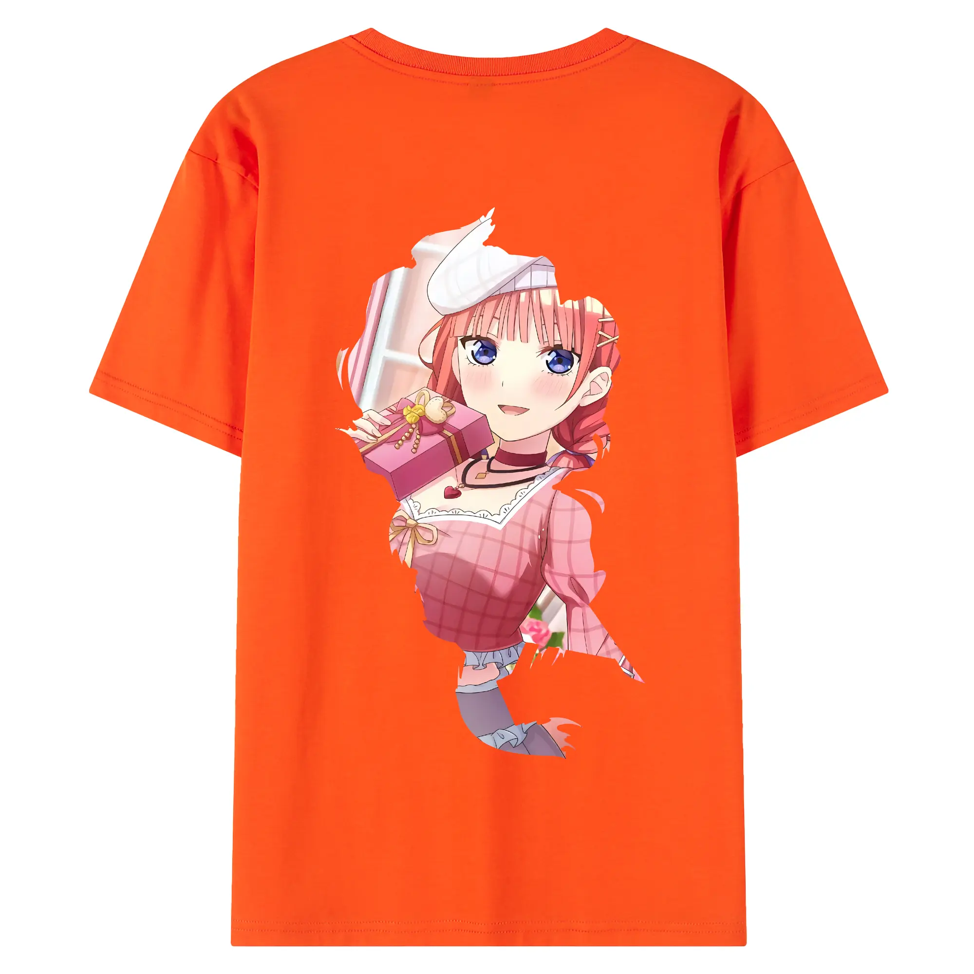 五等分の花嫁 グッズ 中野 二乃 - 綿100% 半袖Tシャツ ・ フロントプリント ・ 快適 通気性 ・ 日常使い 散歩 スポーツ用