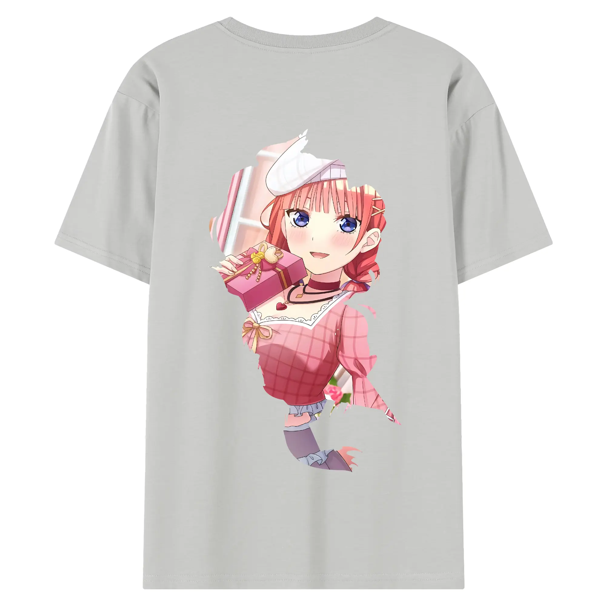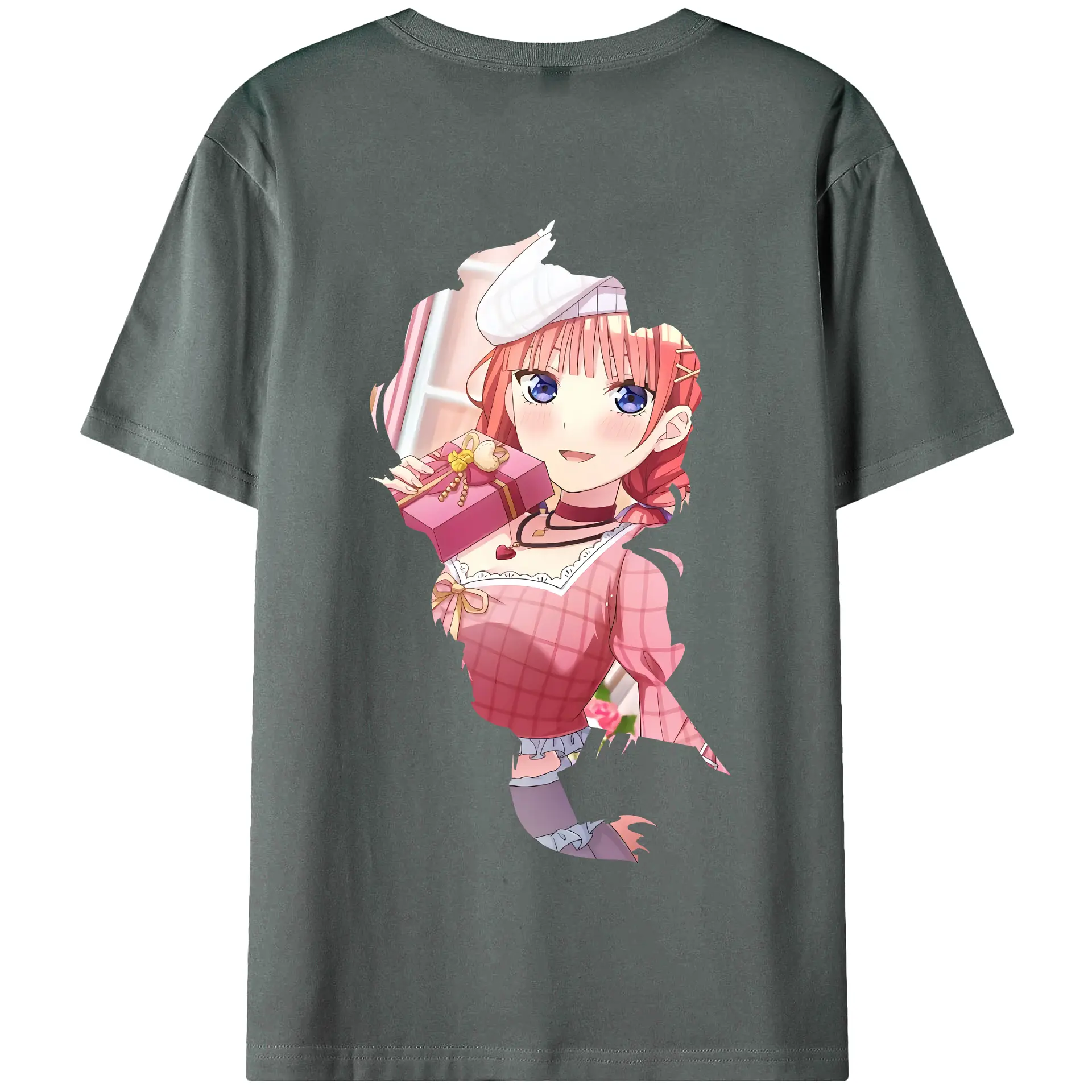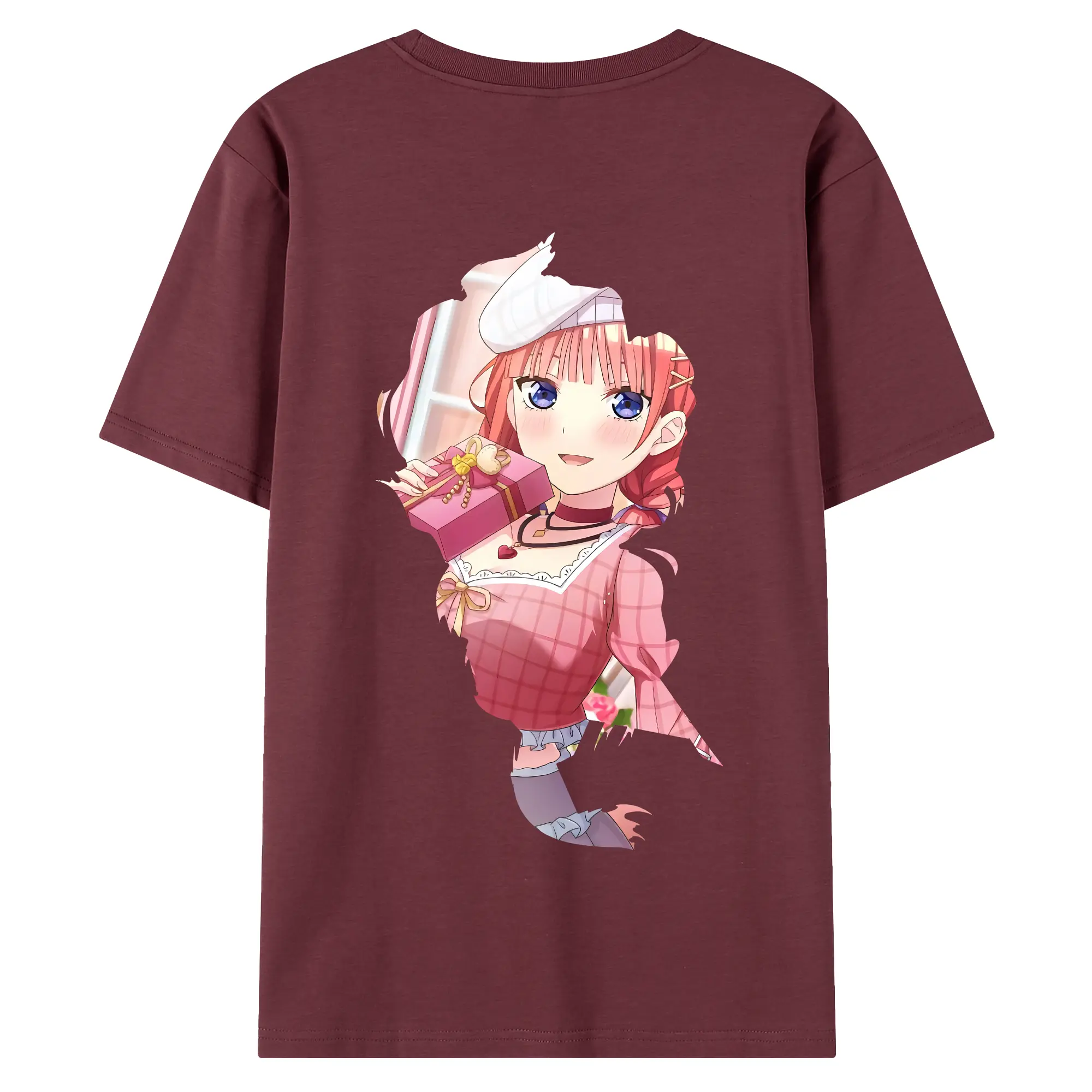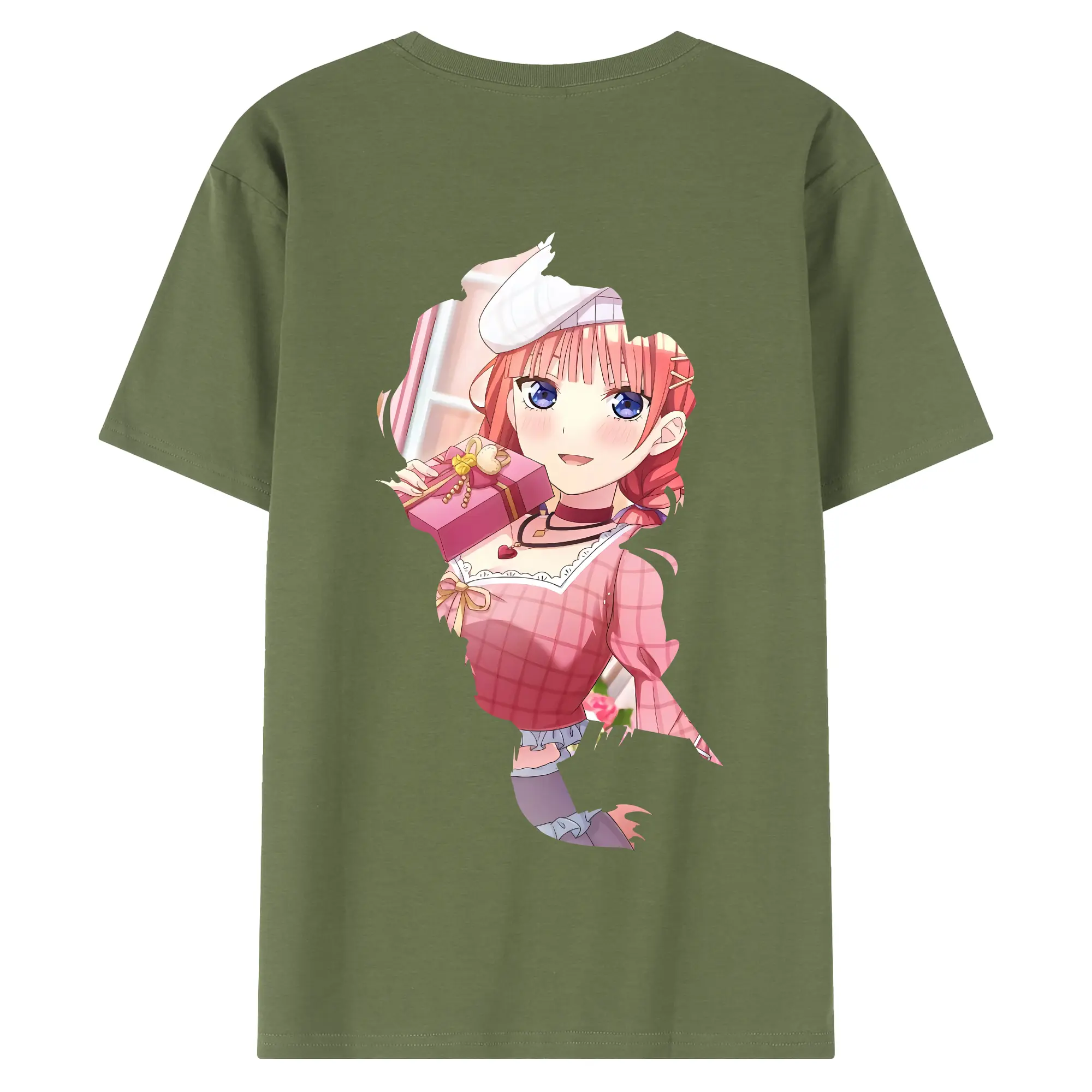 五等分の花嫁 グッズ 中野 二乃 - 綿100% 半袖Tシャツ ・ フロントプリント ・ 快適 通気性 ・ 日常使い 散歩 スポーツ用
