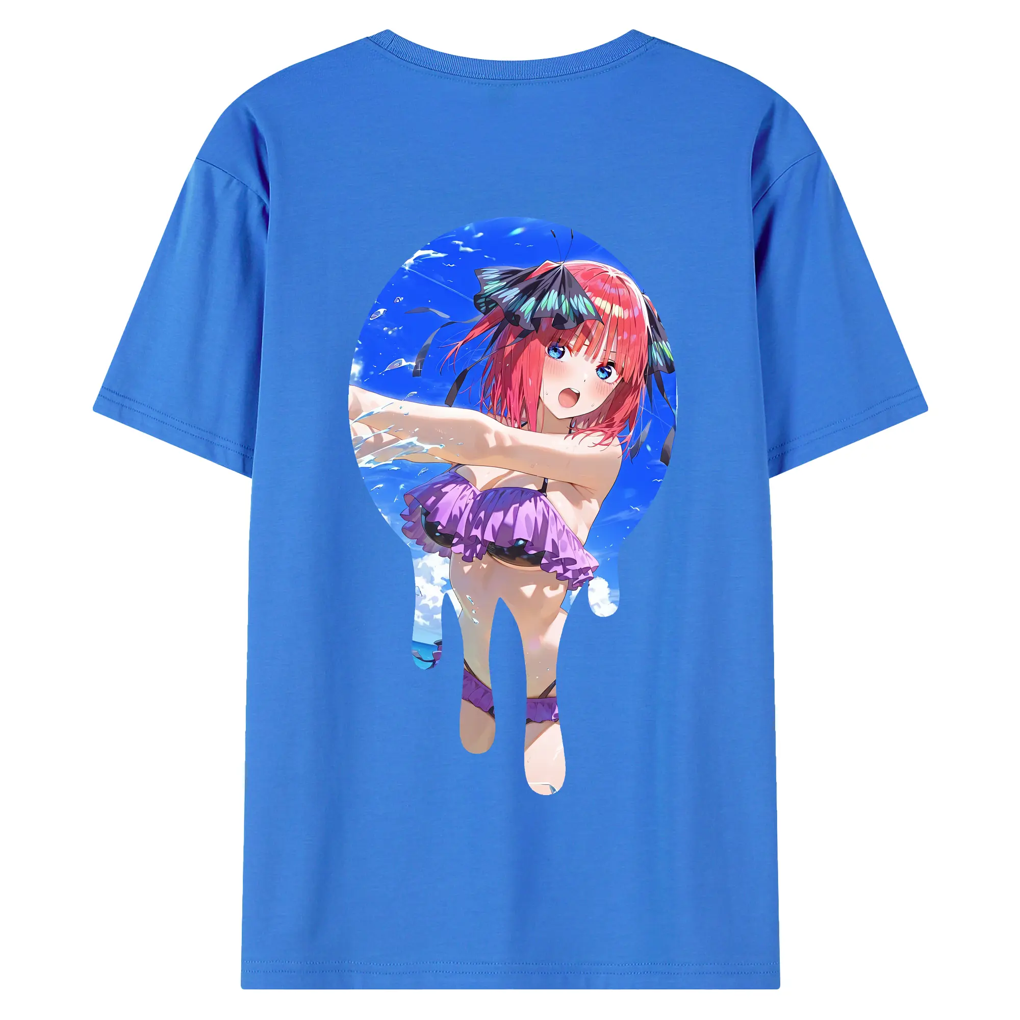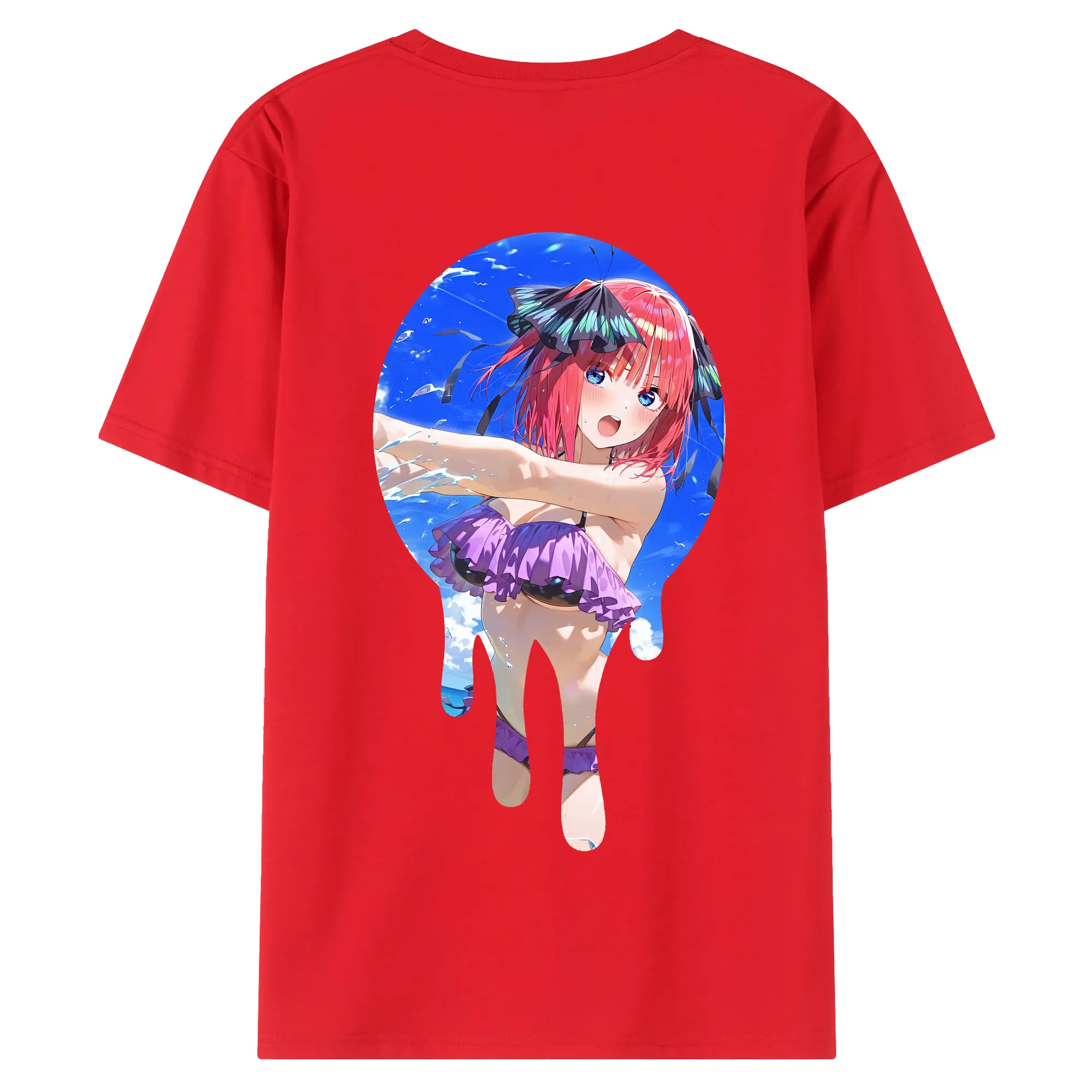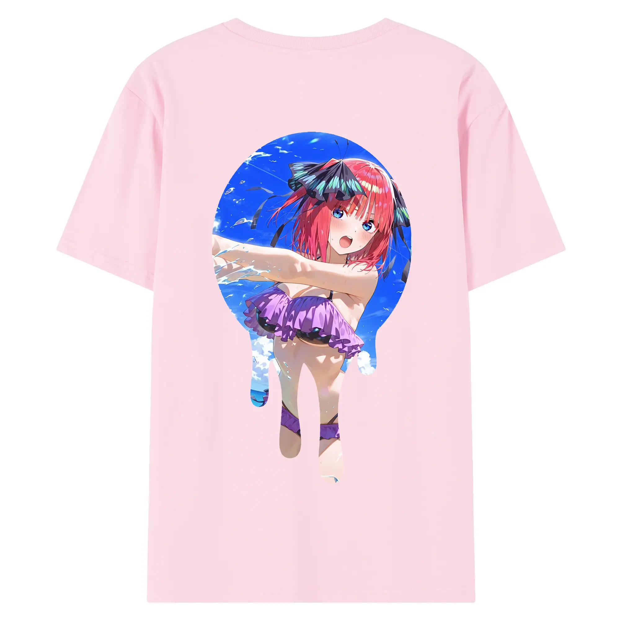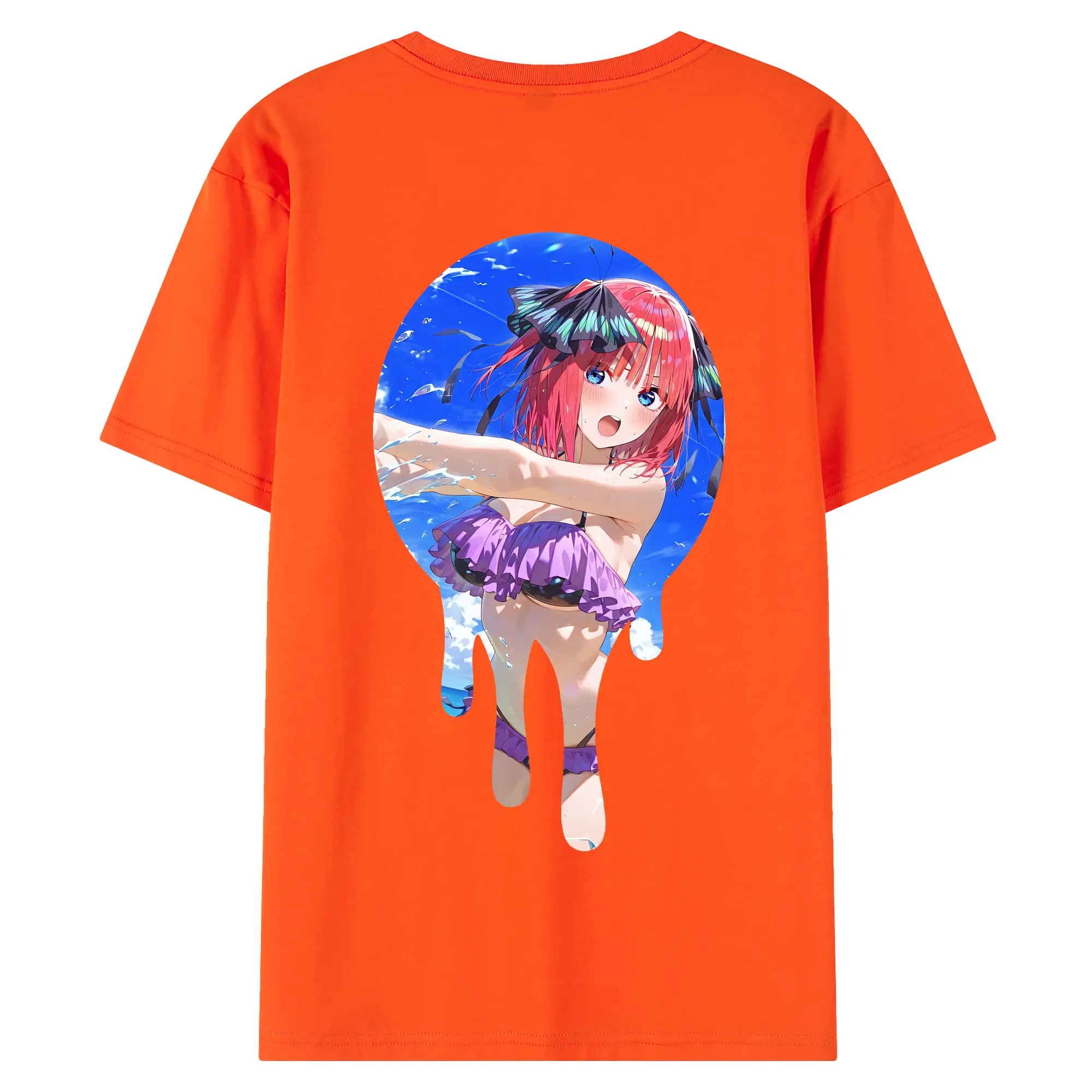 五等分の花嫁 グッズ 中野 二乃 - 綿100% 半袖Tシャツ ・ フロントプリント ・ 快適 通気性 ・ 日常使い 散歩 スポーツ用
