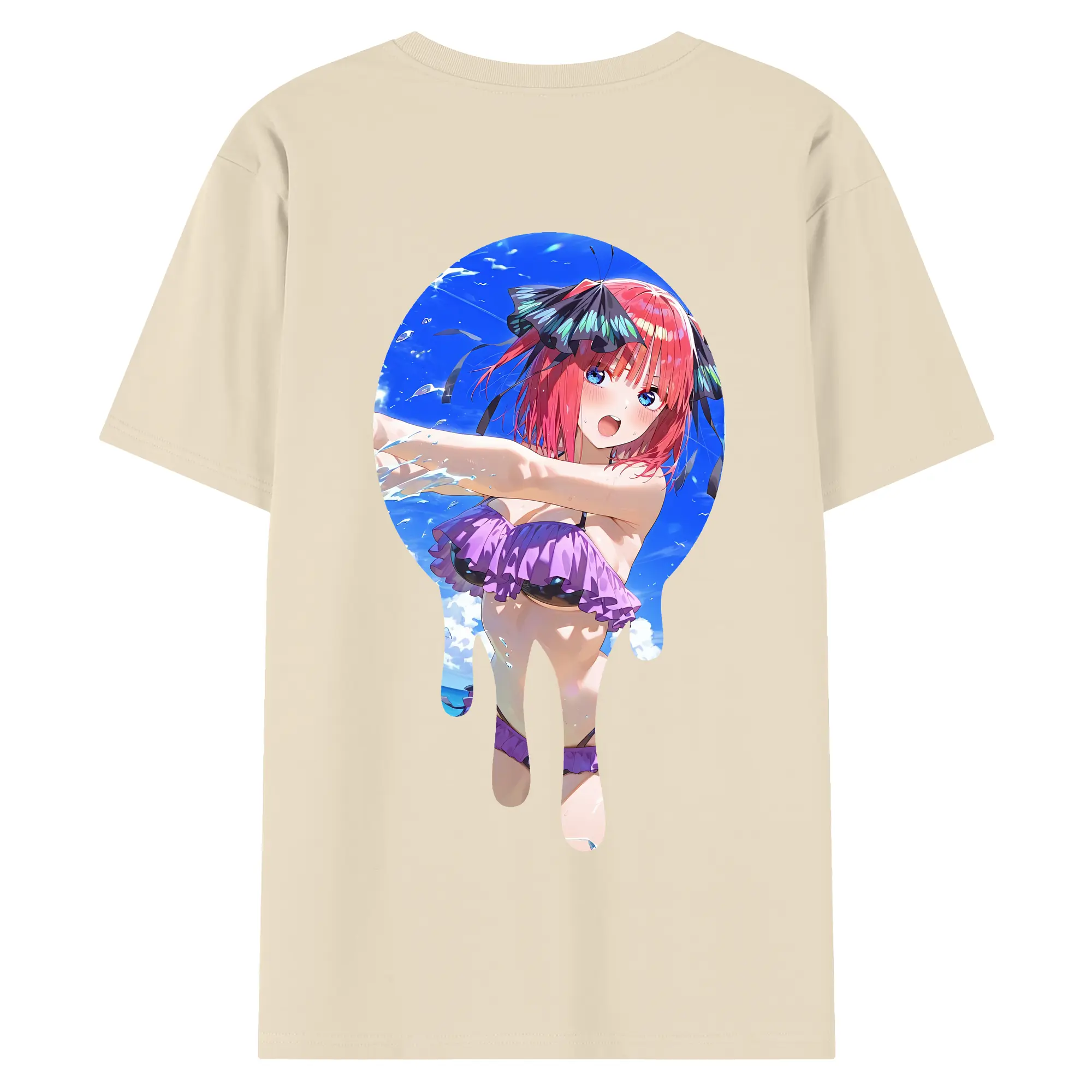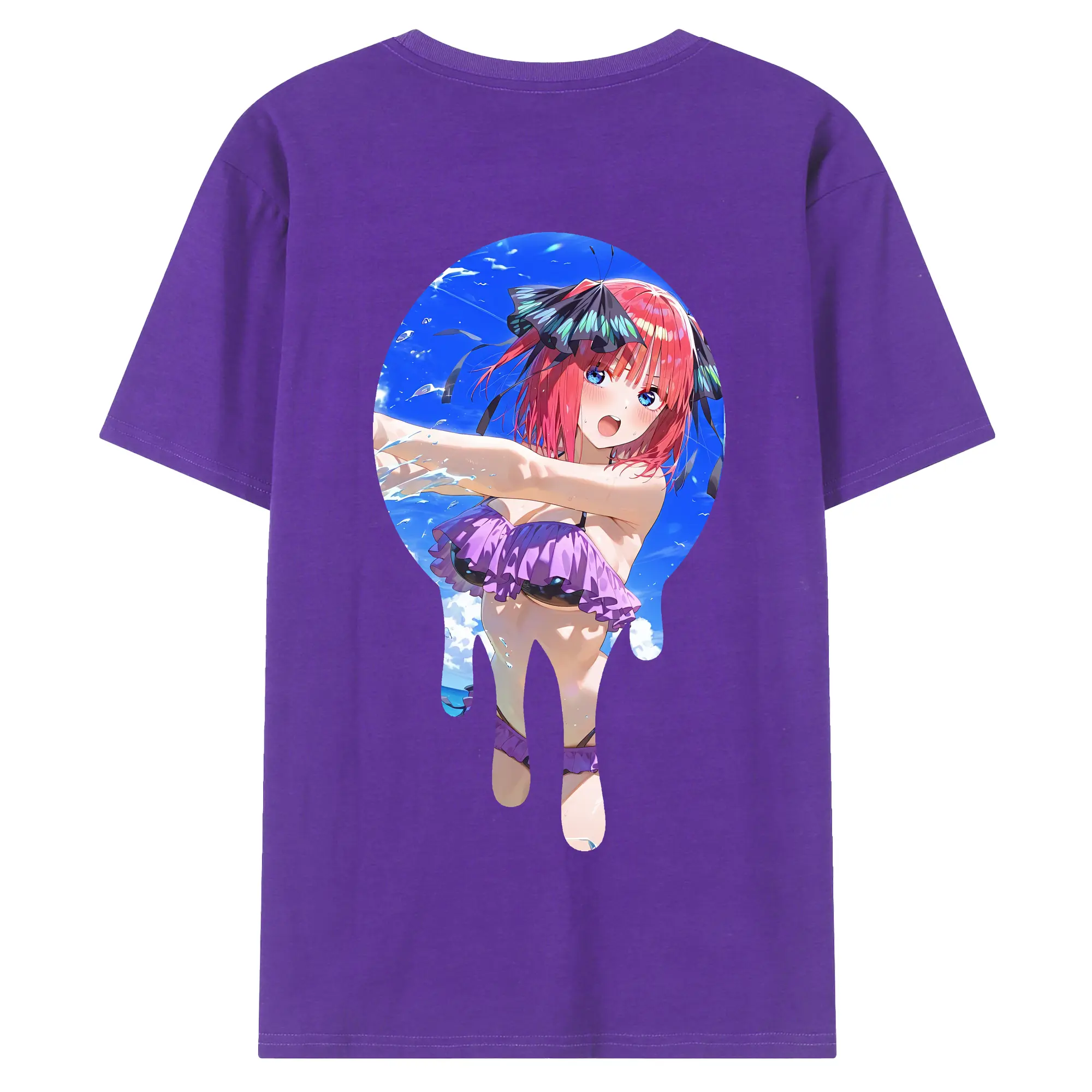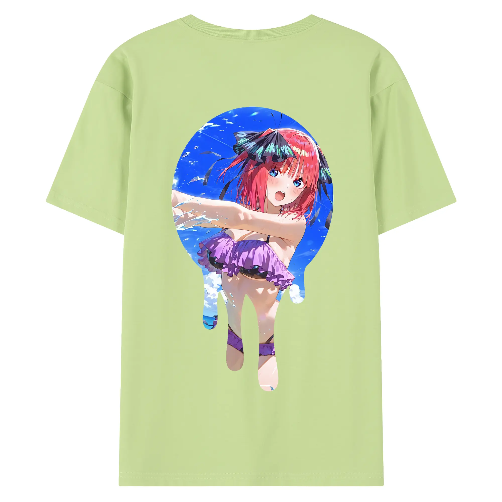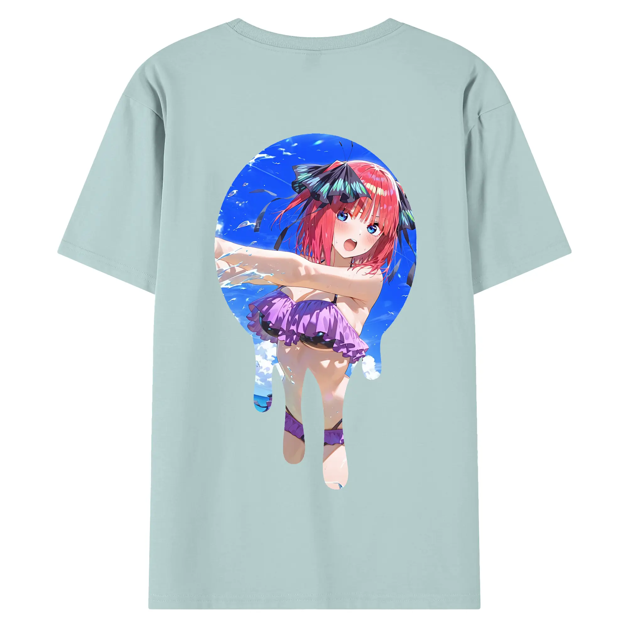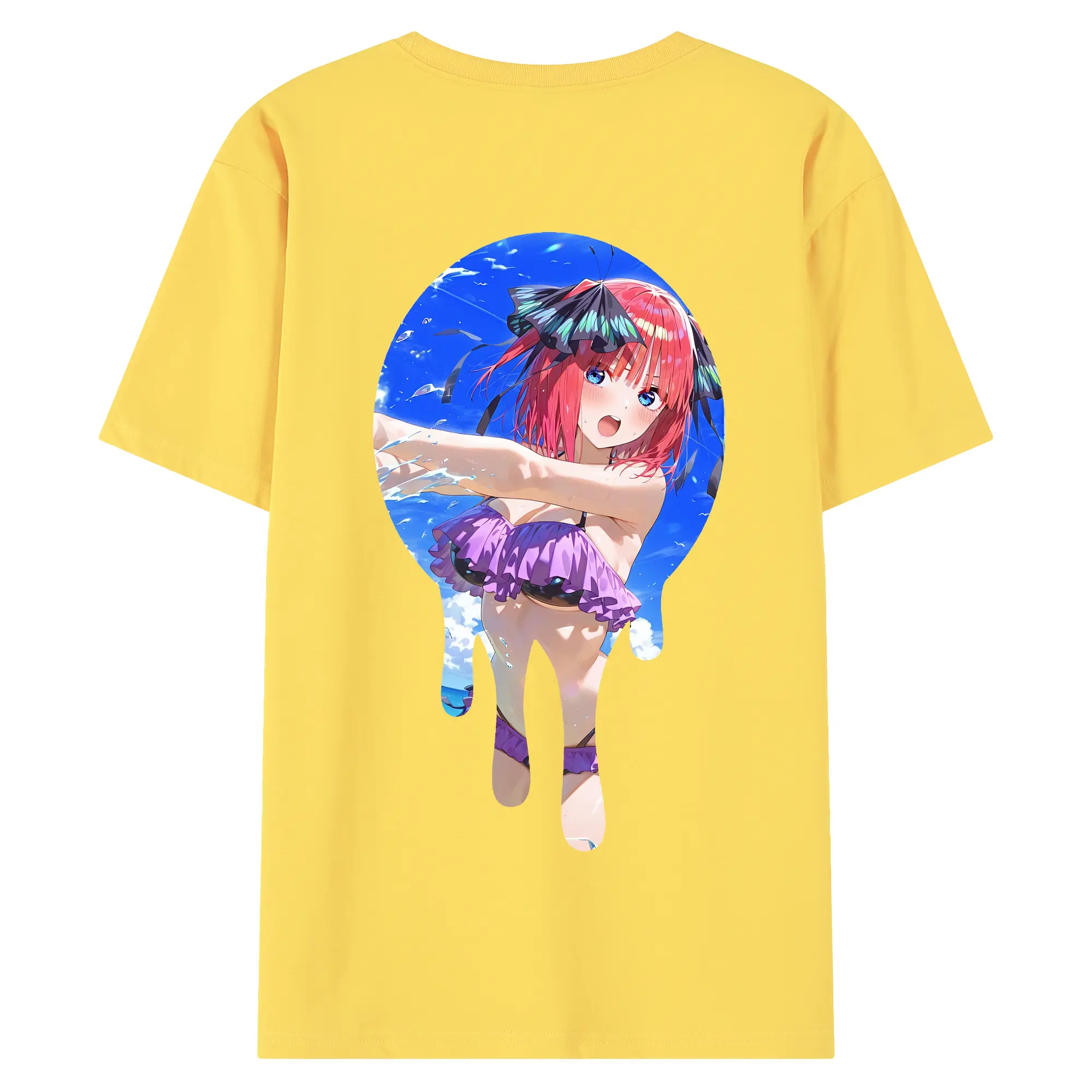 五等分の花嫁 グッズ 中野 二乃 - 綿100% 半袖Tシャツ ・ フロントプリント ・ 快適 通気性 ・ 日常使い 散歩 スポーツ用