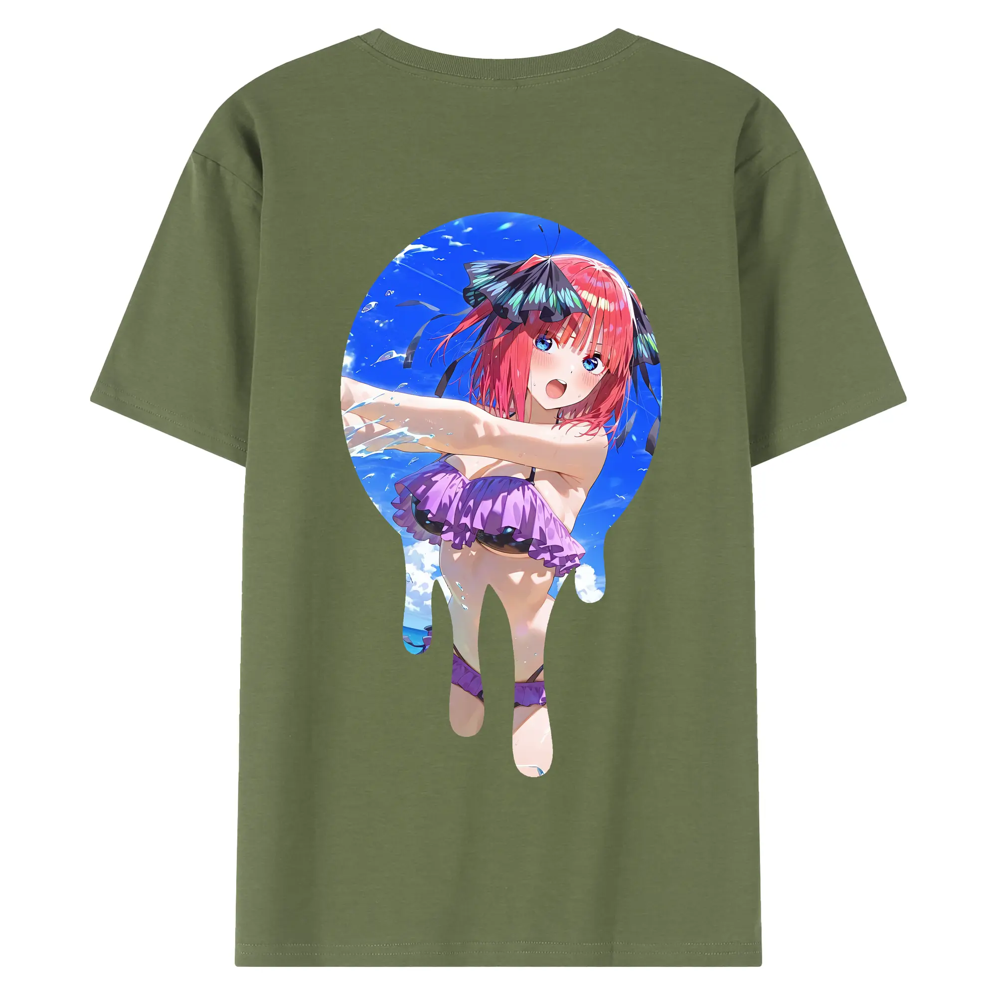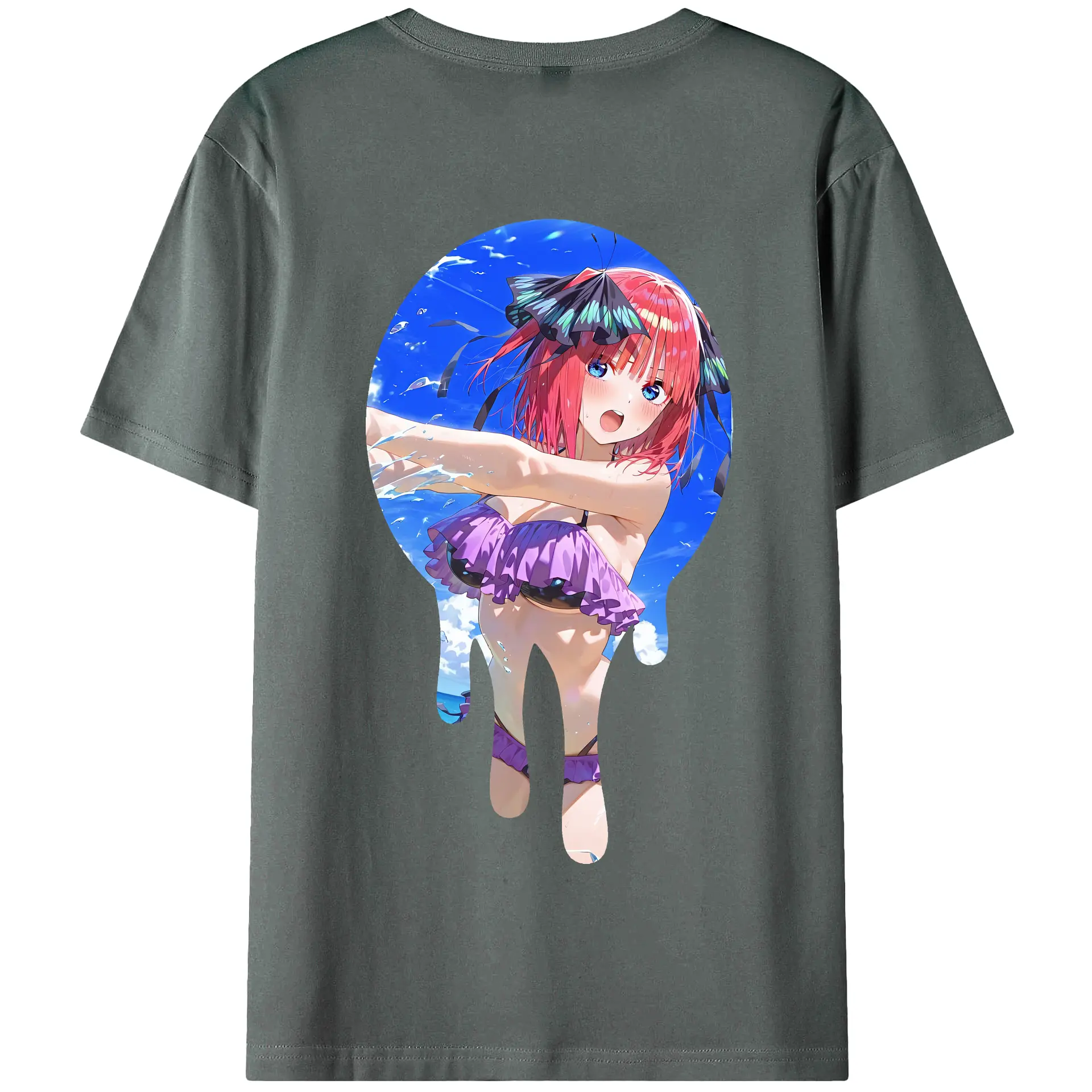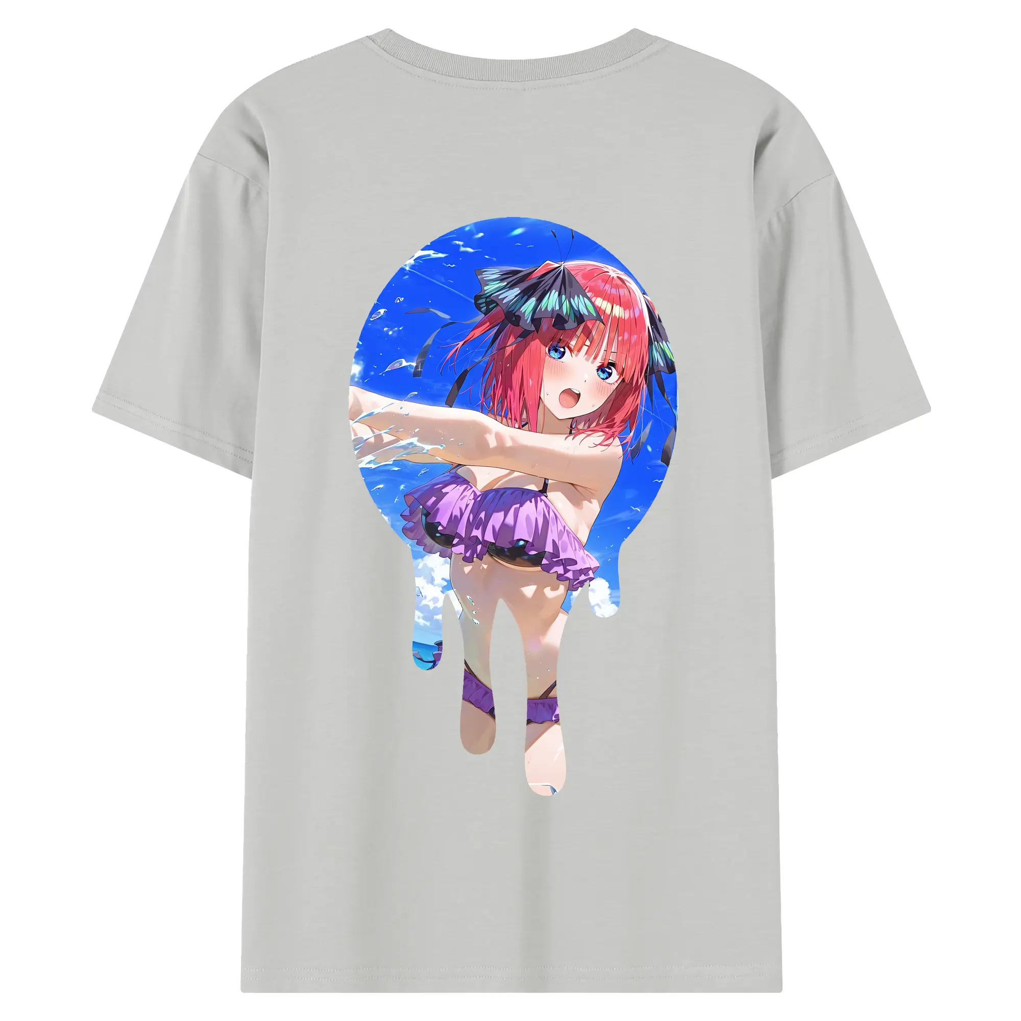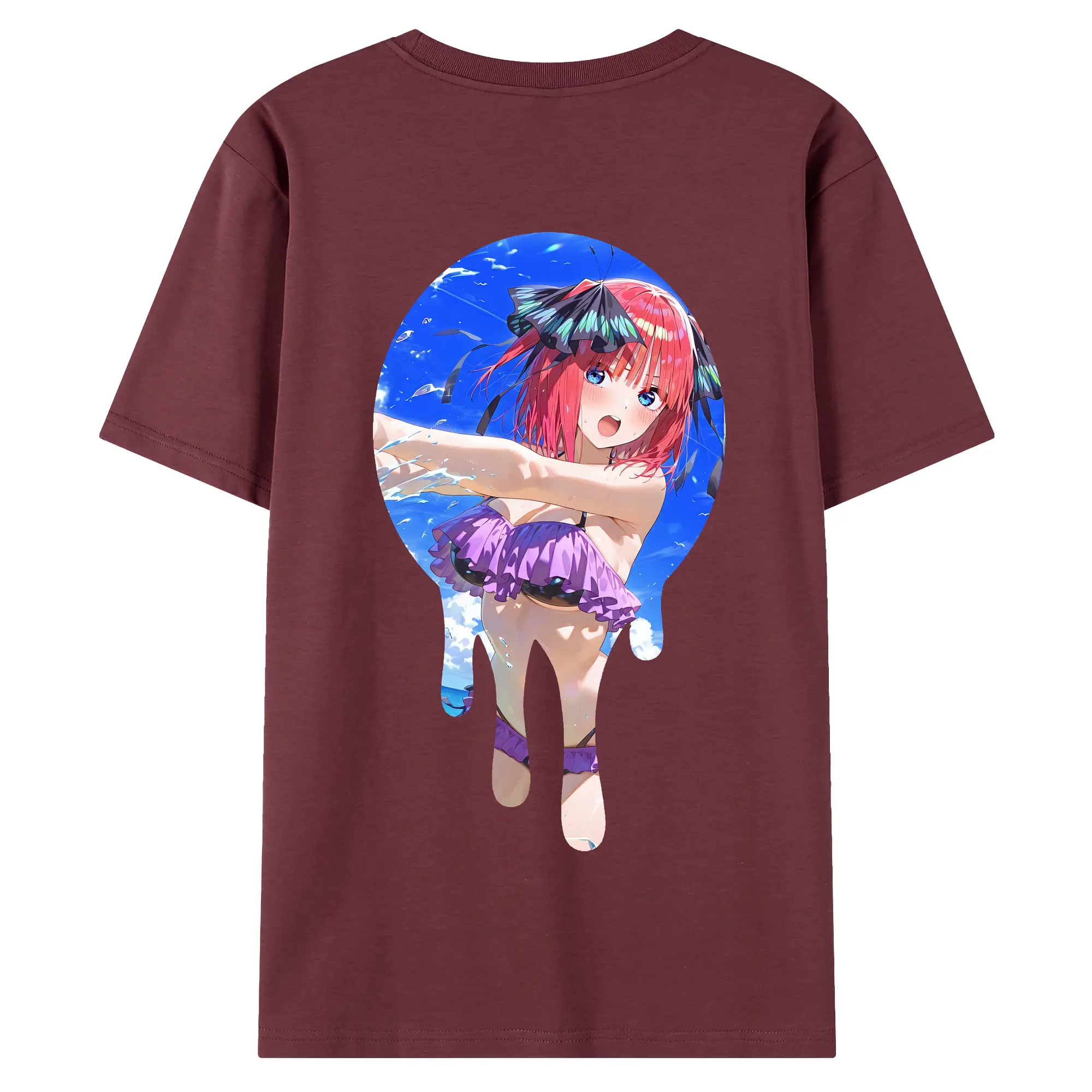 五等分の花嫁 グッズ 中野 二乃 - 綿100% 半袖Tシャツ ・ フロントプリント ・ 快適 通気性 ・ 日常使い 散歩 スポーツ用