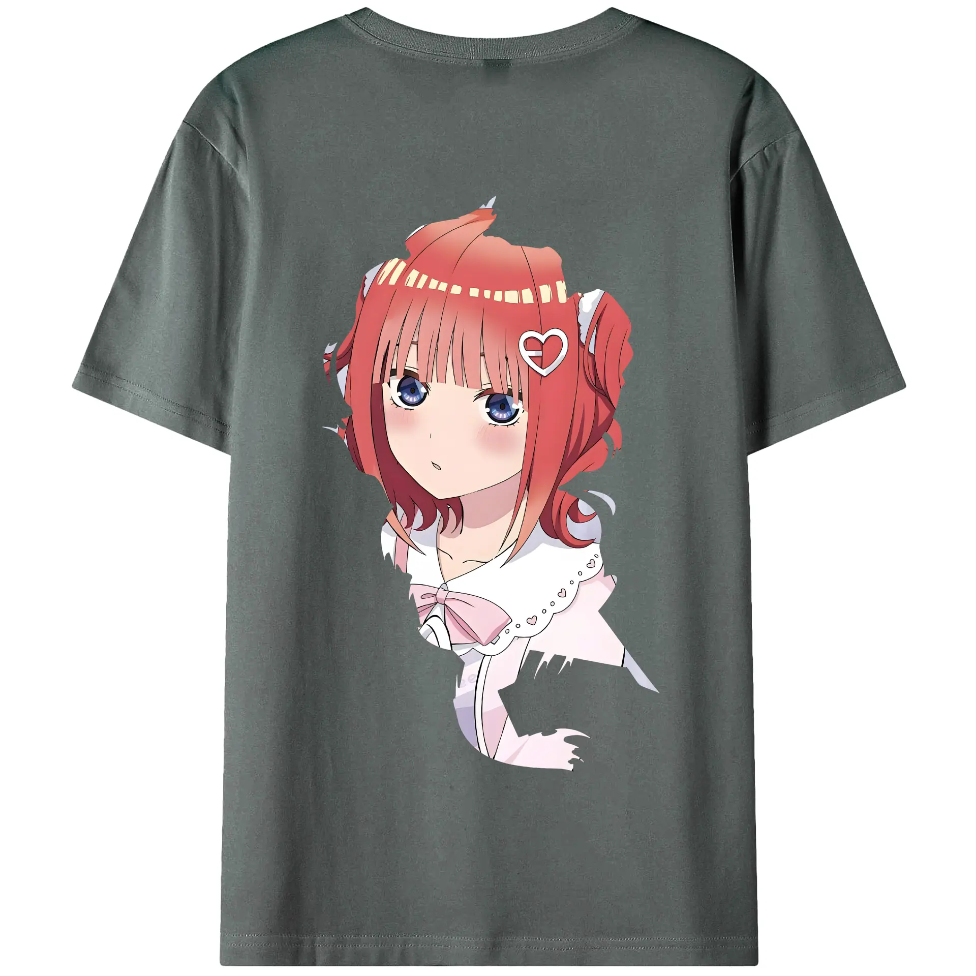 五等分の花嫁 グッズ 中野 二乃 - 綿100% ヴィンテージ風 半袖Tシャツ ・ 背面プリント ・ 柔らか肌触り ・ 通気性 快適 ・ スポーツ カジュアル 外出用