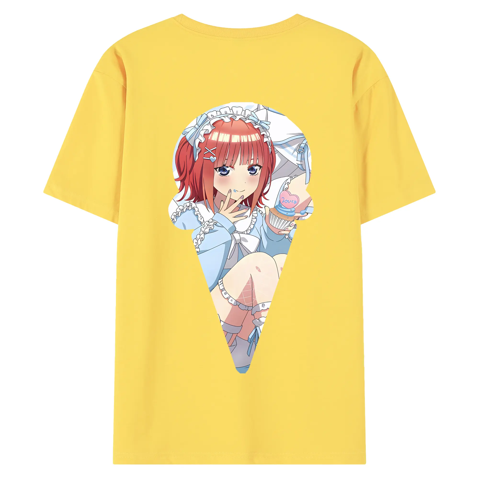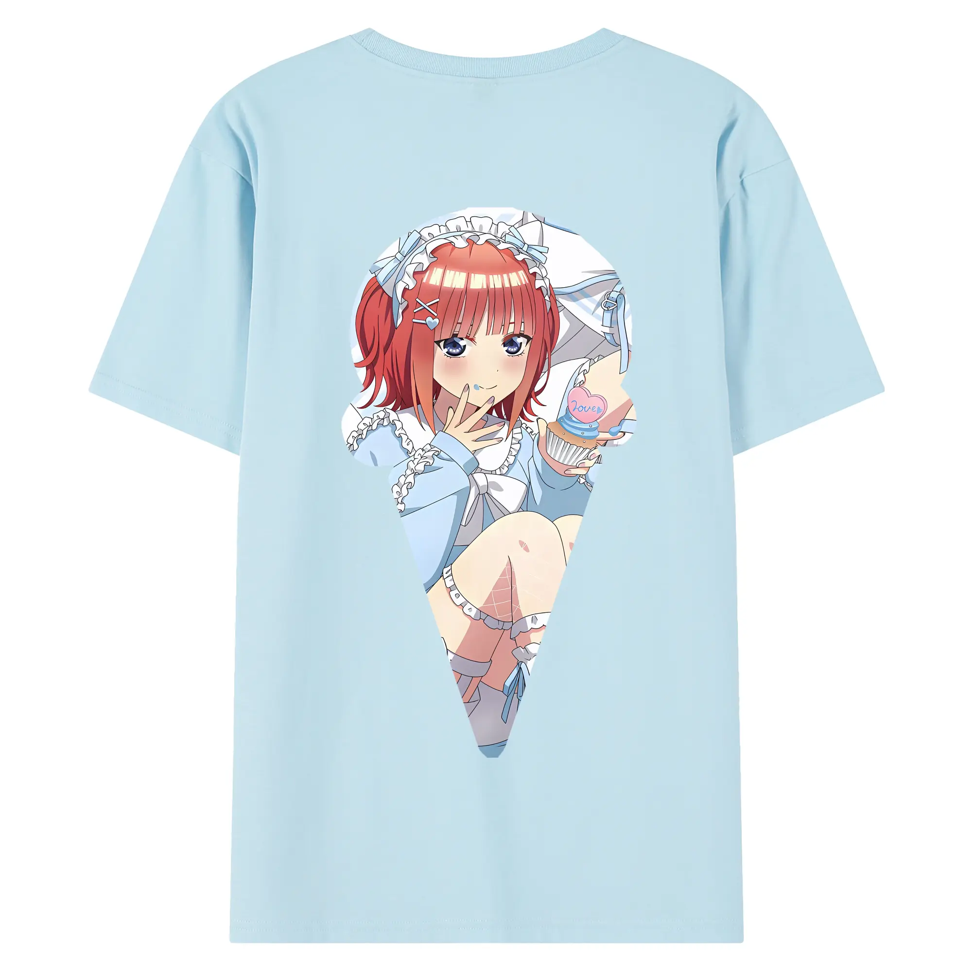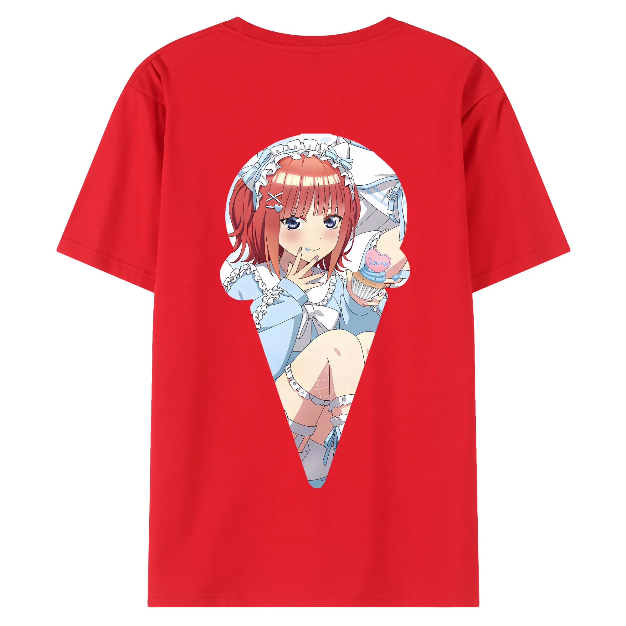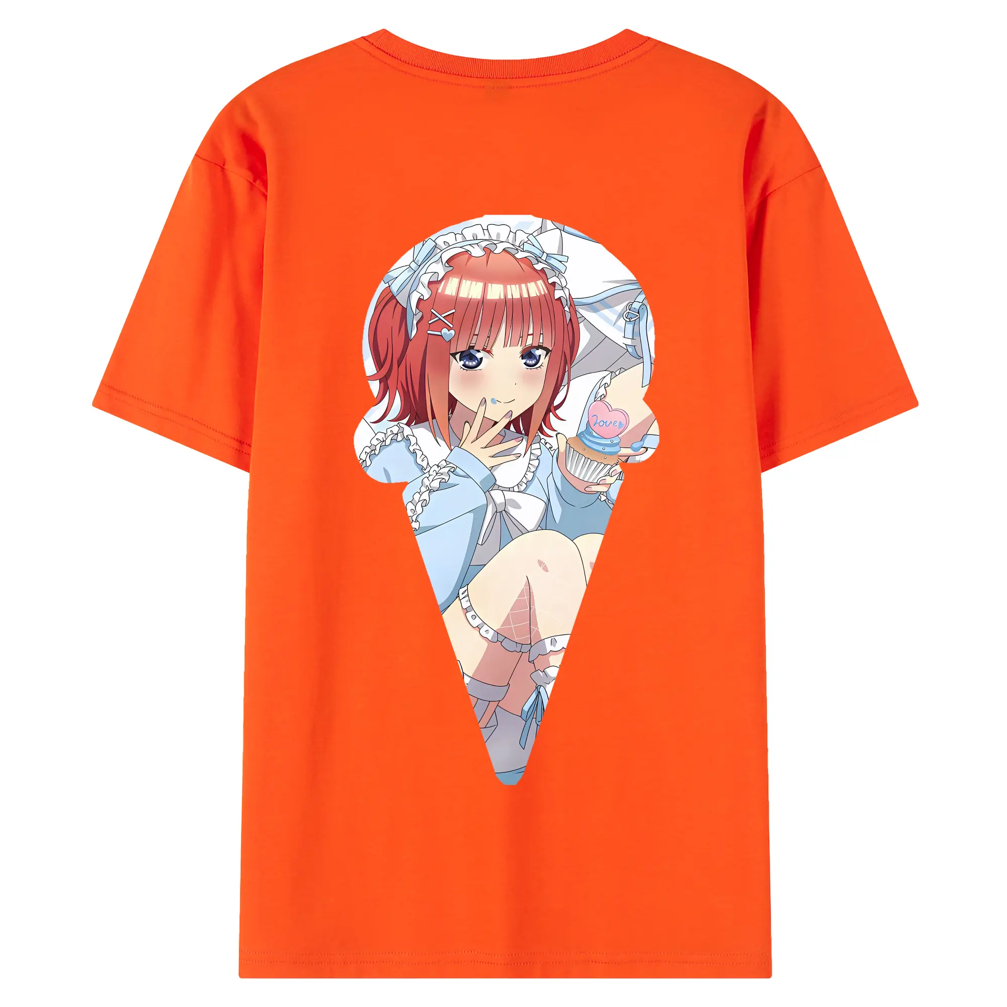 五等分の花嫁 グッズ 中野 二乃 - 綿100% 半袖Tシャツ ・ フロントプリント ・ 快適 通気性 ・ 日常使い 散歩 スポーツ用