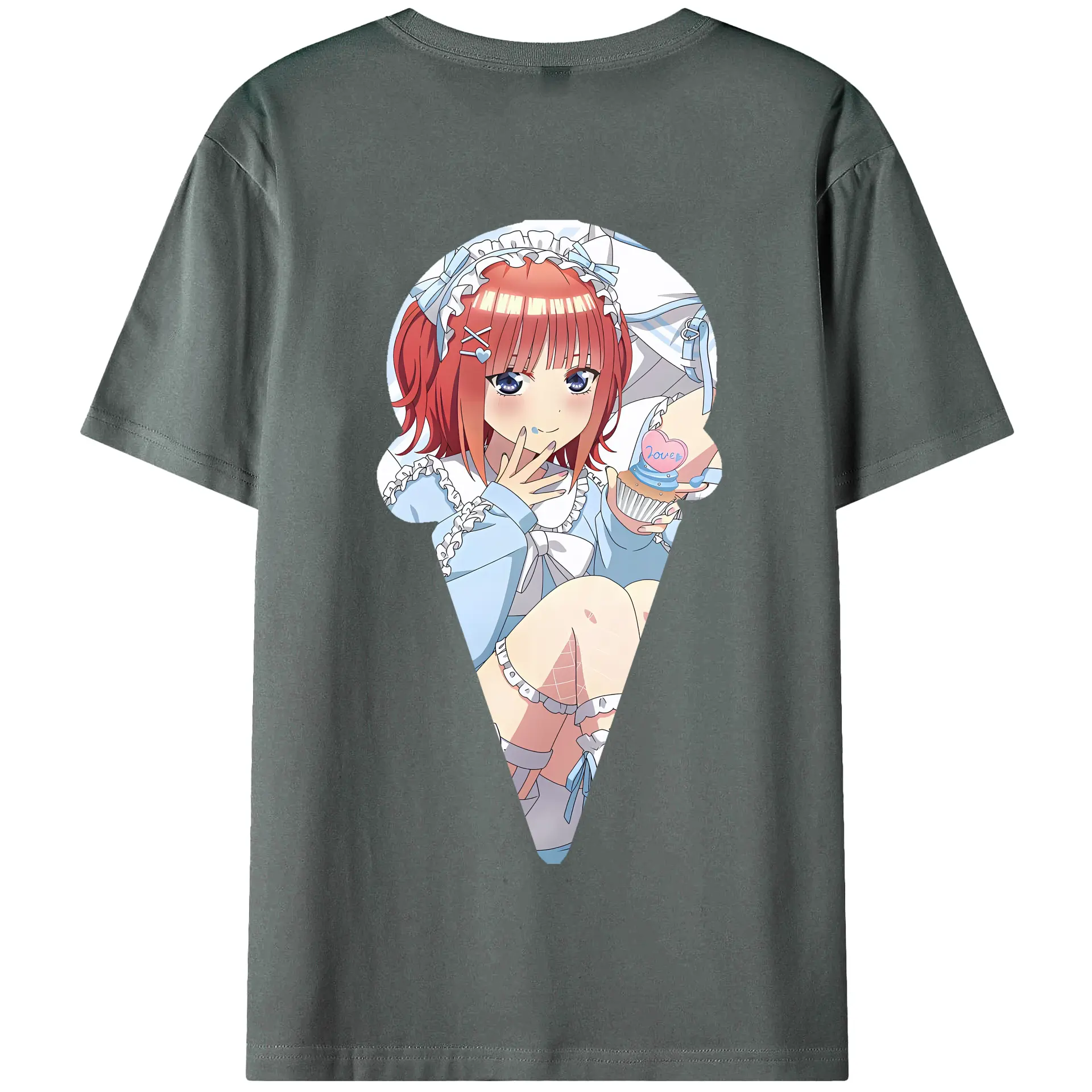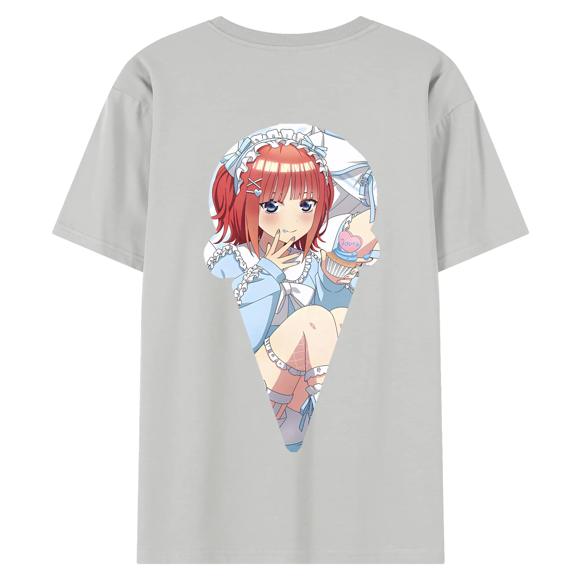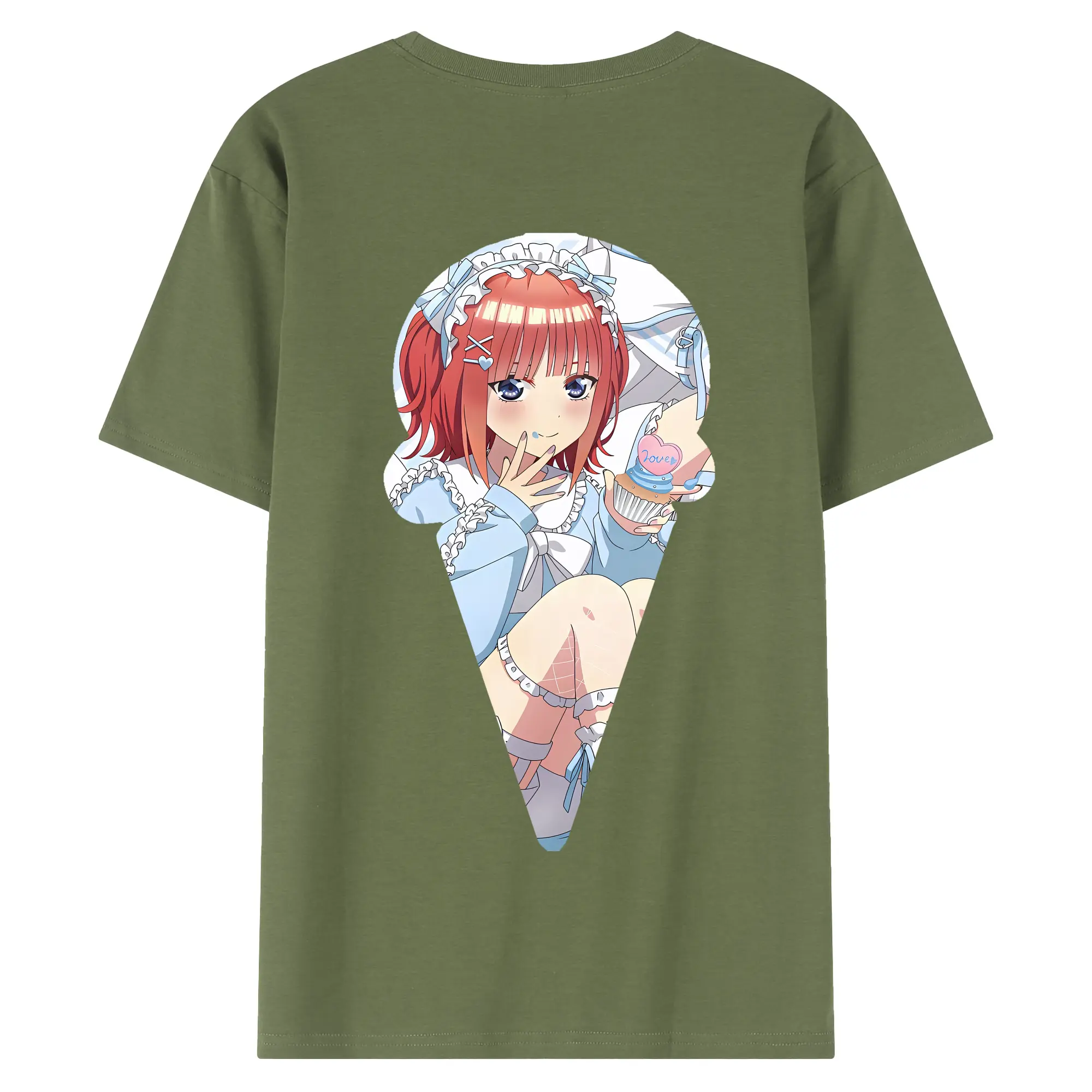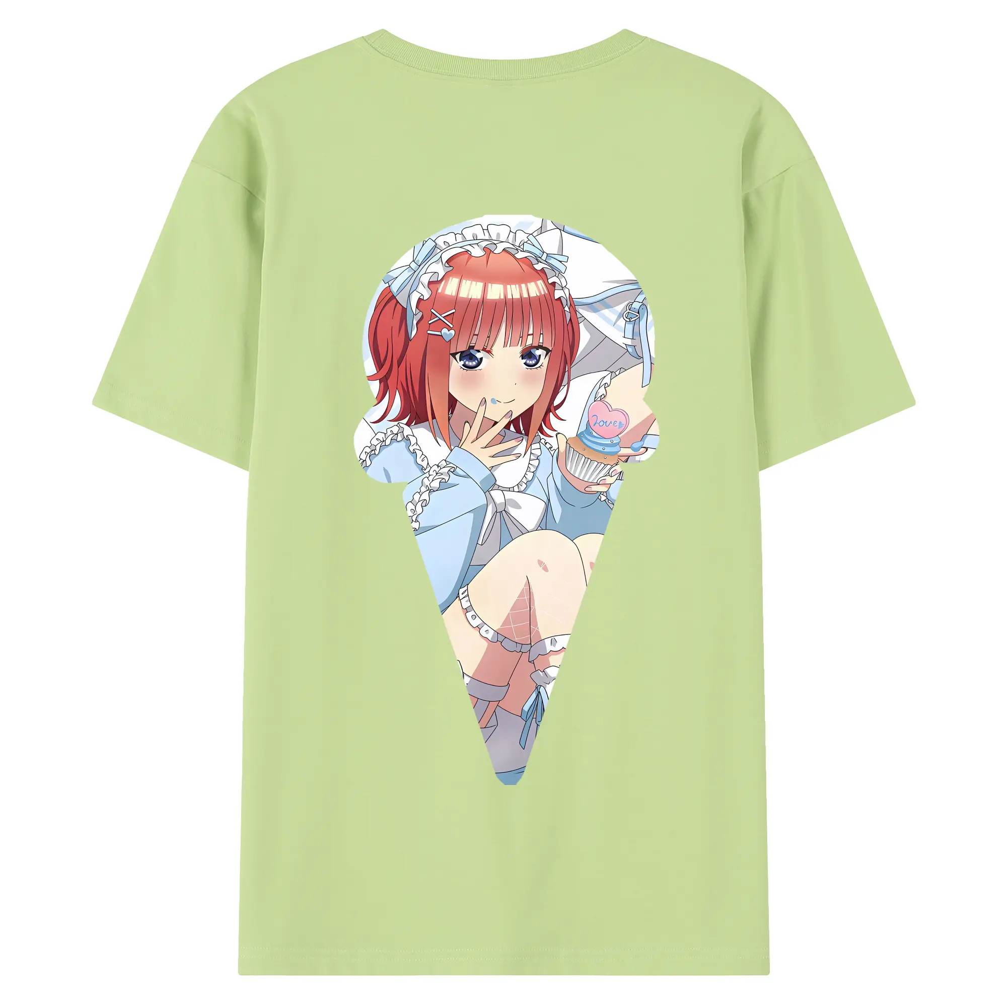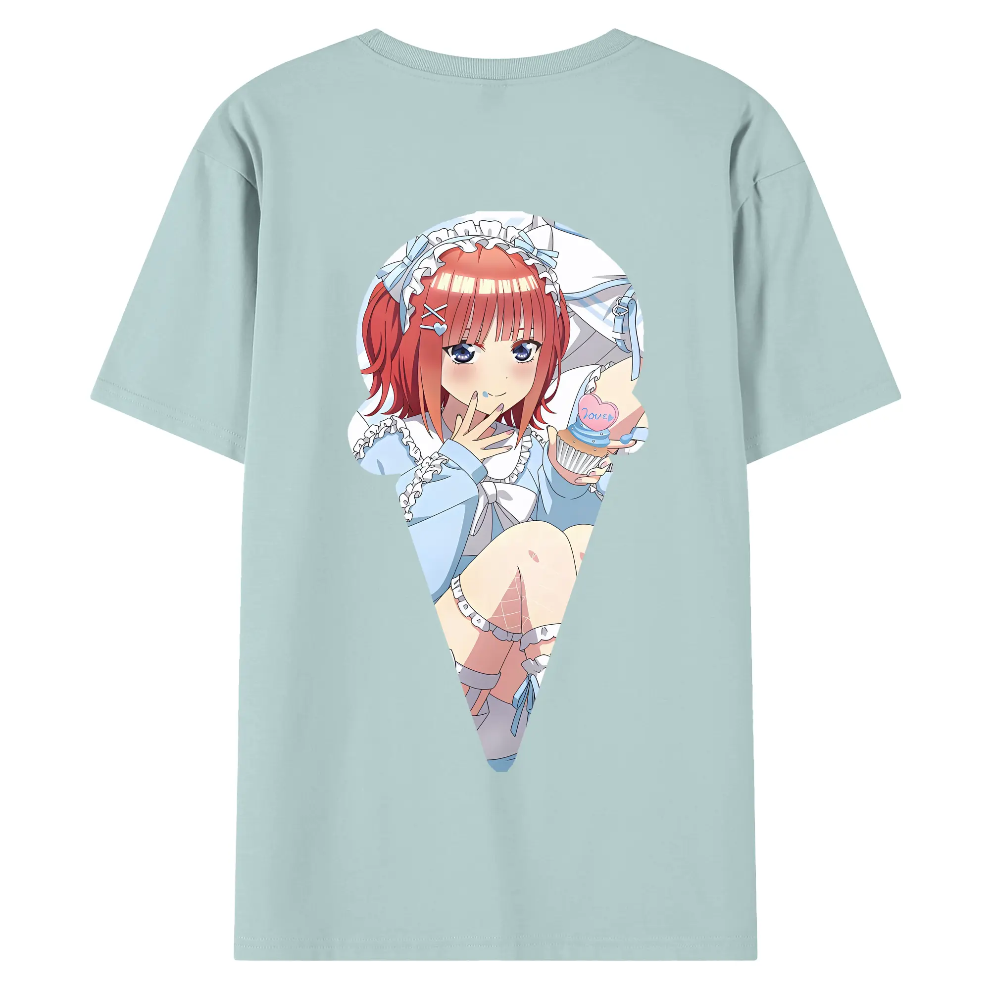 五等分の花嫁 グッズ 中野 二乃 - 綿100% 半袖Tシャツ ・ フロントプリント ・ 快適 通気性 ・ 日常使い 散歩 スポーツ用