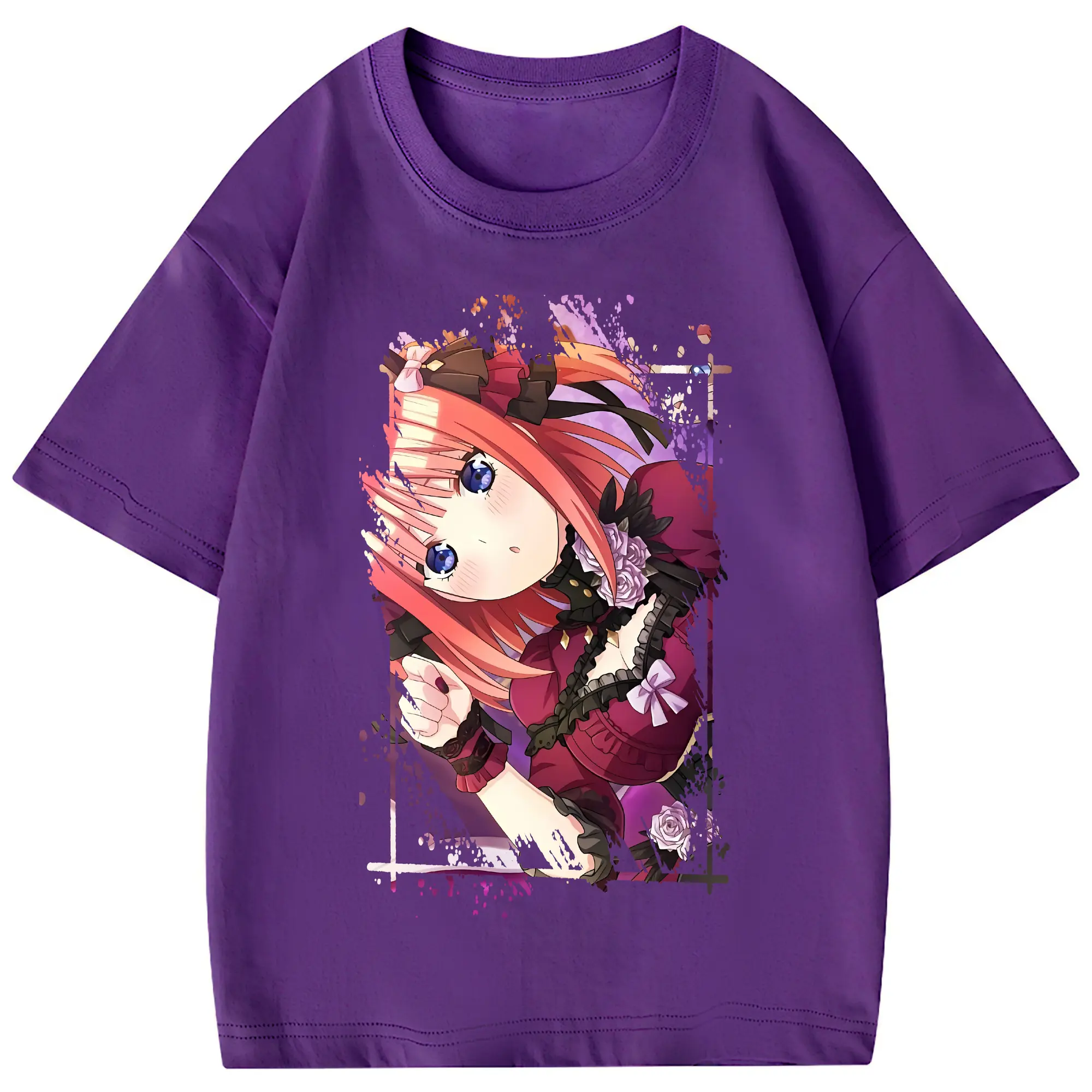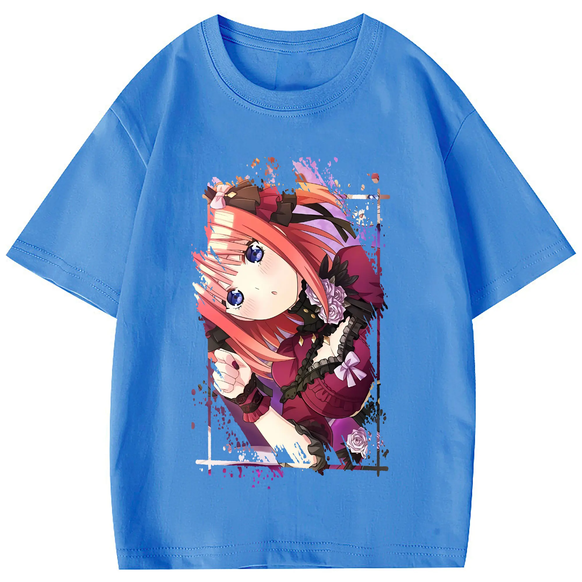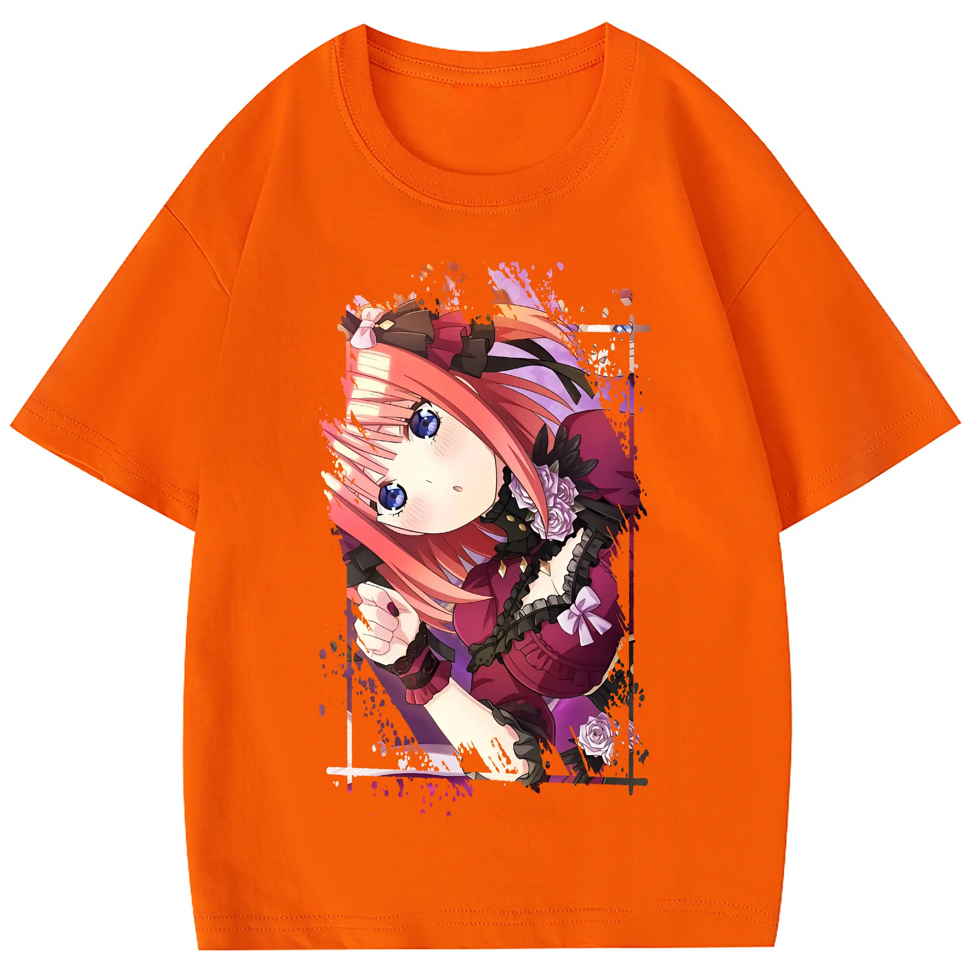 五等分の花嫁 グッズ 中野 二乃 - 綿100% 半袖Tシャツ ・ フロントプリント ・ 快適 通気性 ・ 日常使い 散歩 スポーツ用