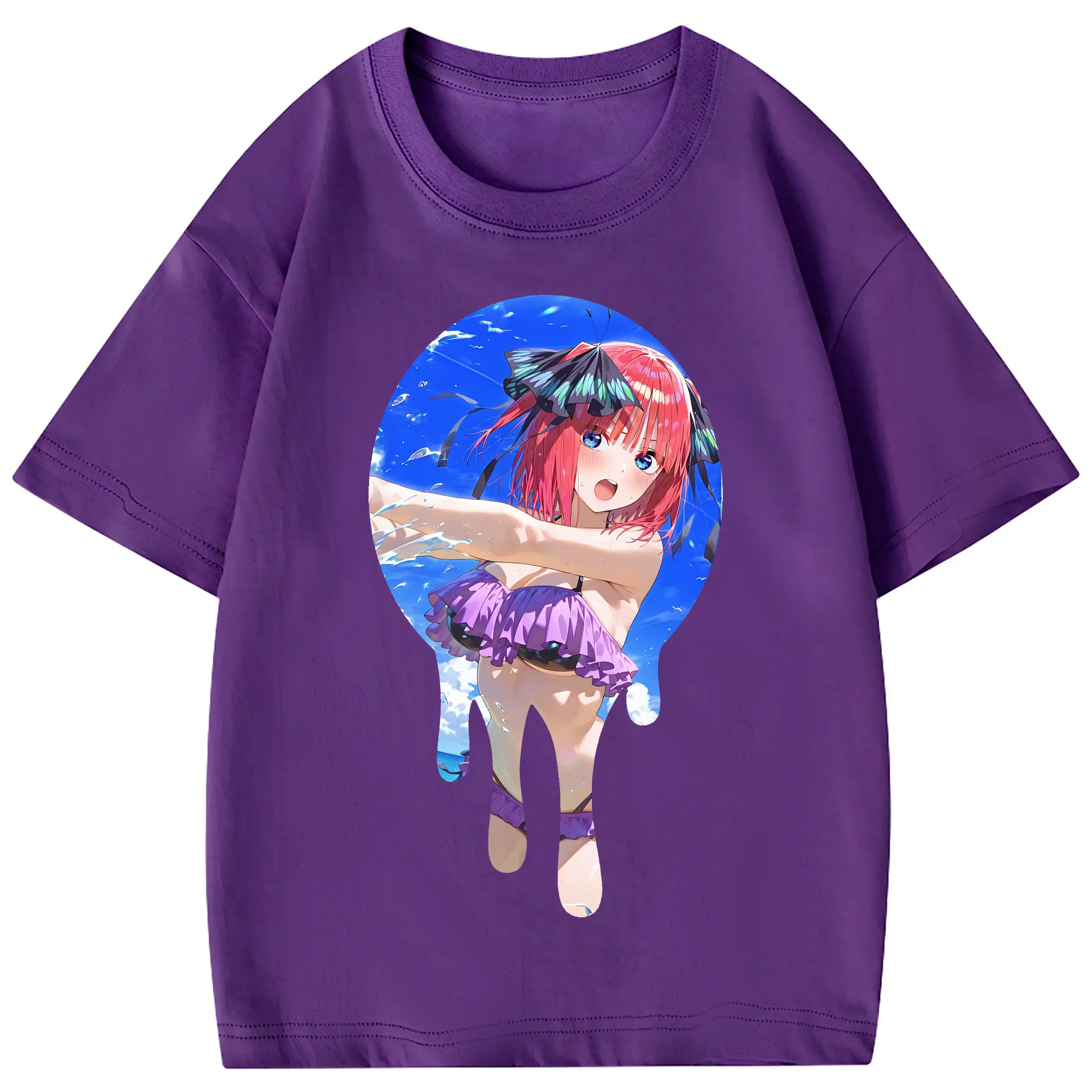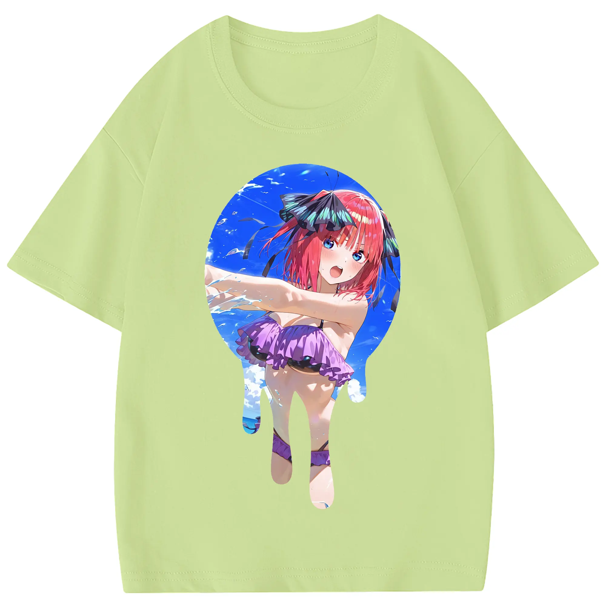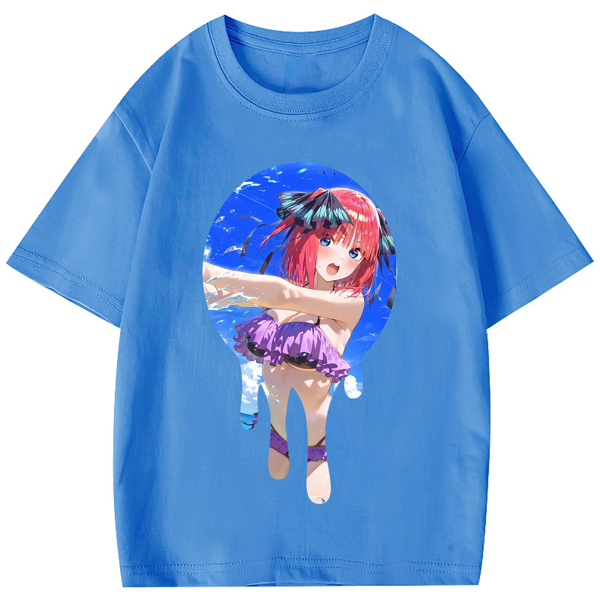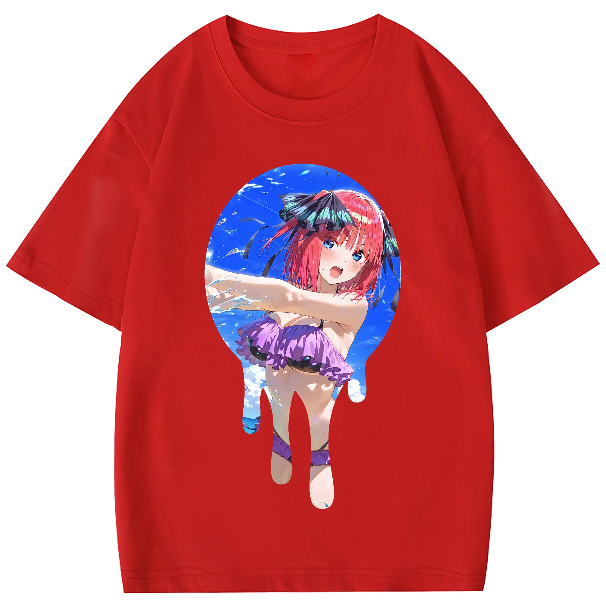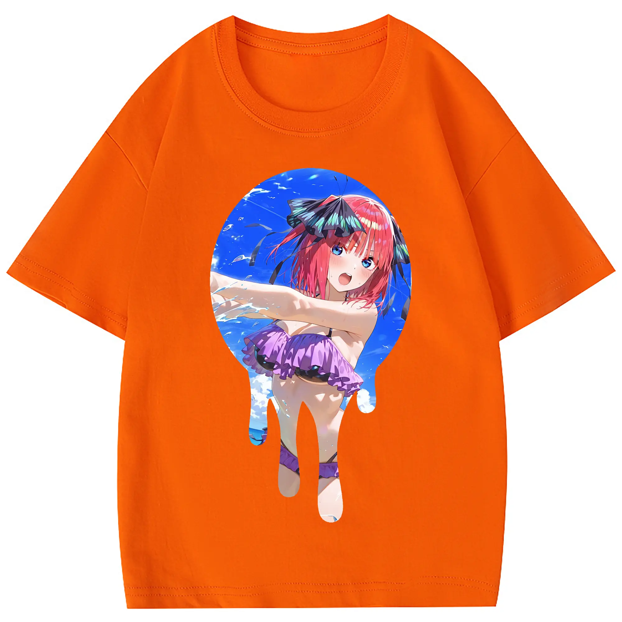 五等分の花嫁 グッズ 中野 二乃 - 綿100% 半袖Tシャツ ・ フロントプリント ・ 快適 通気性 ・ 日常使い 散歩 スポーツ用