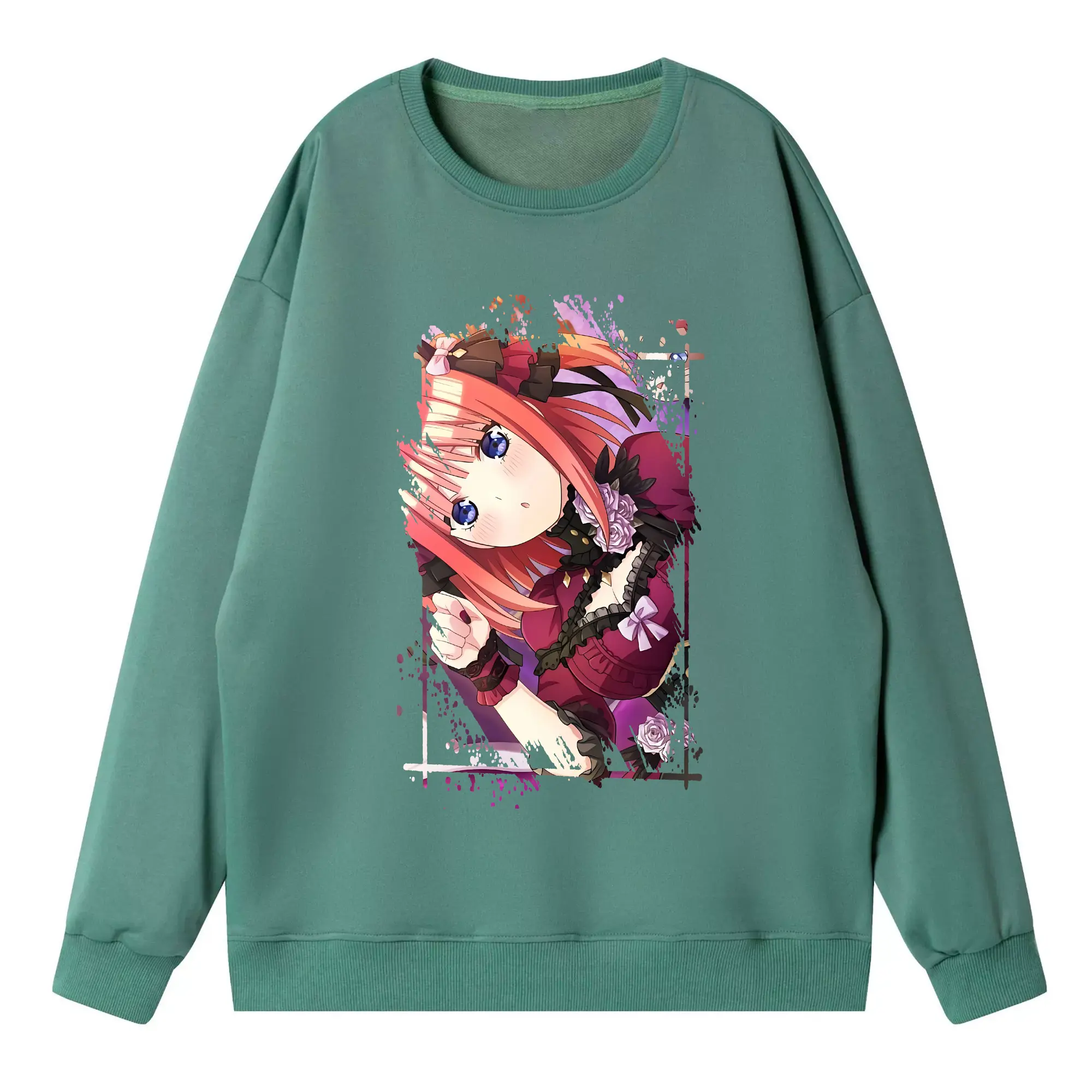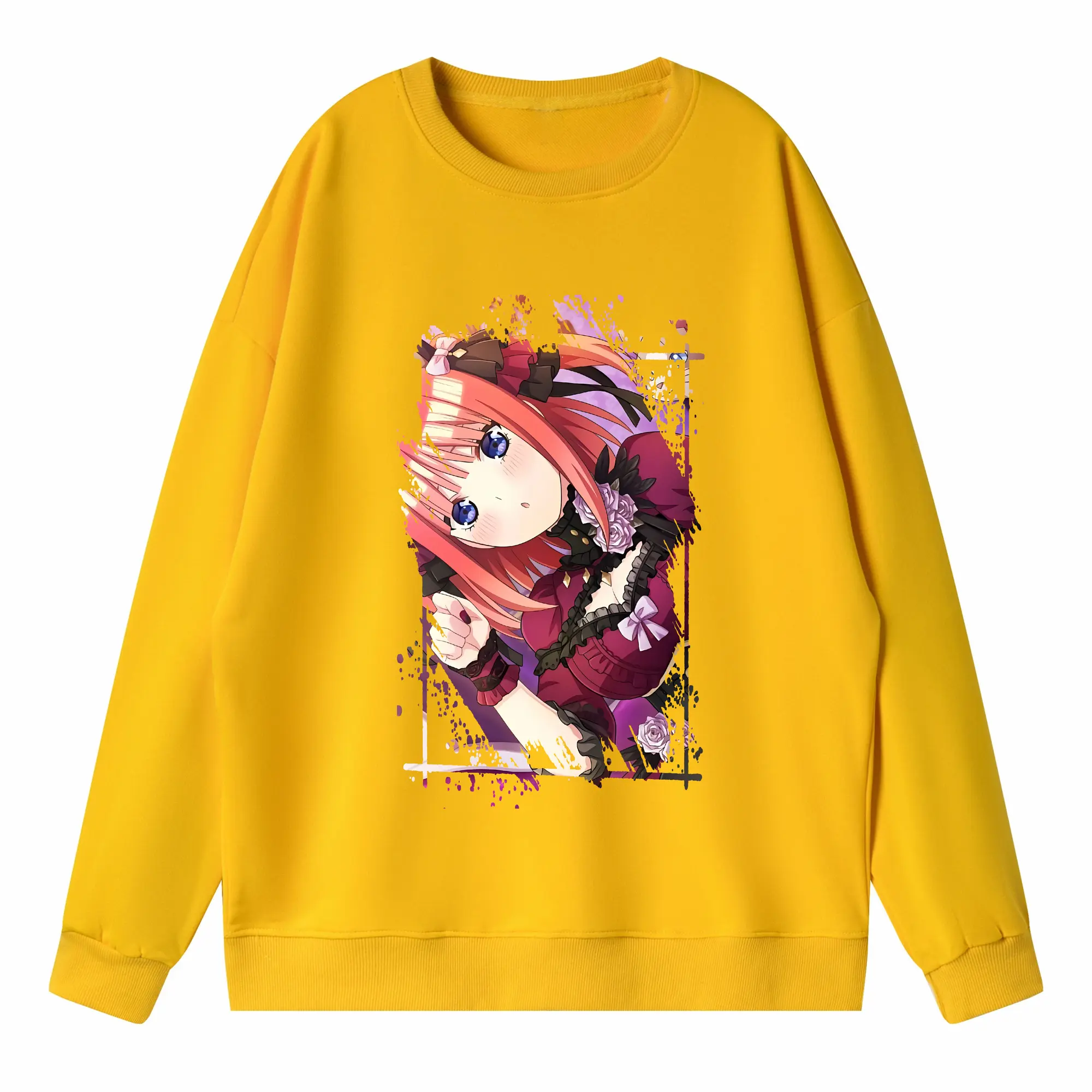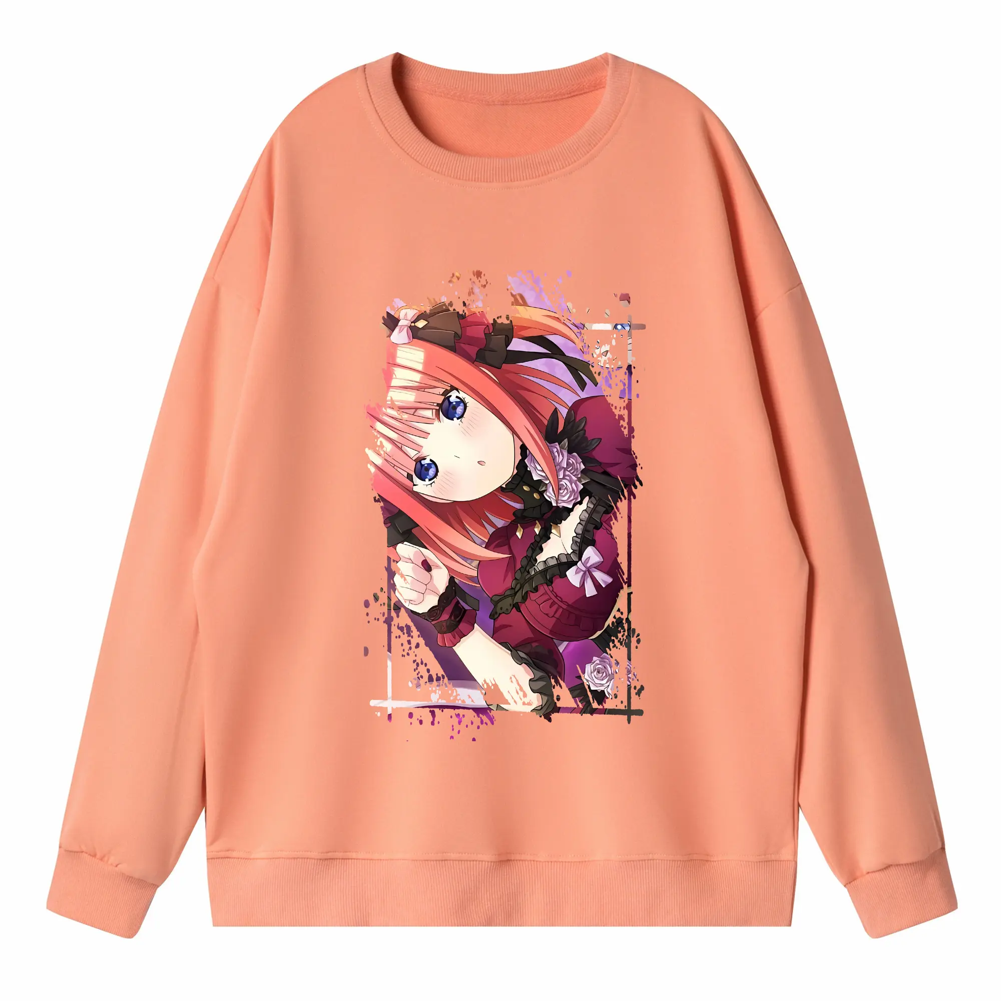 五等分の花嫁 グッズ 中野 二乃 - 高品質 クルーネック スウェット ・ コットン59% ポリエステル41% ・ ユニセックス 長袖 トレーナー ・ カジュアル デイリー スポーツ 散歩用