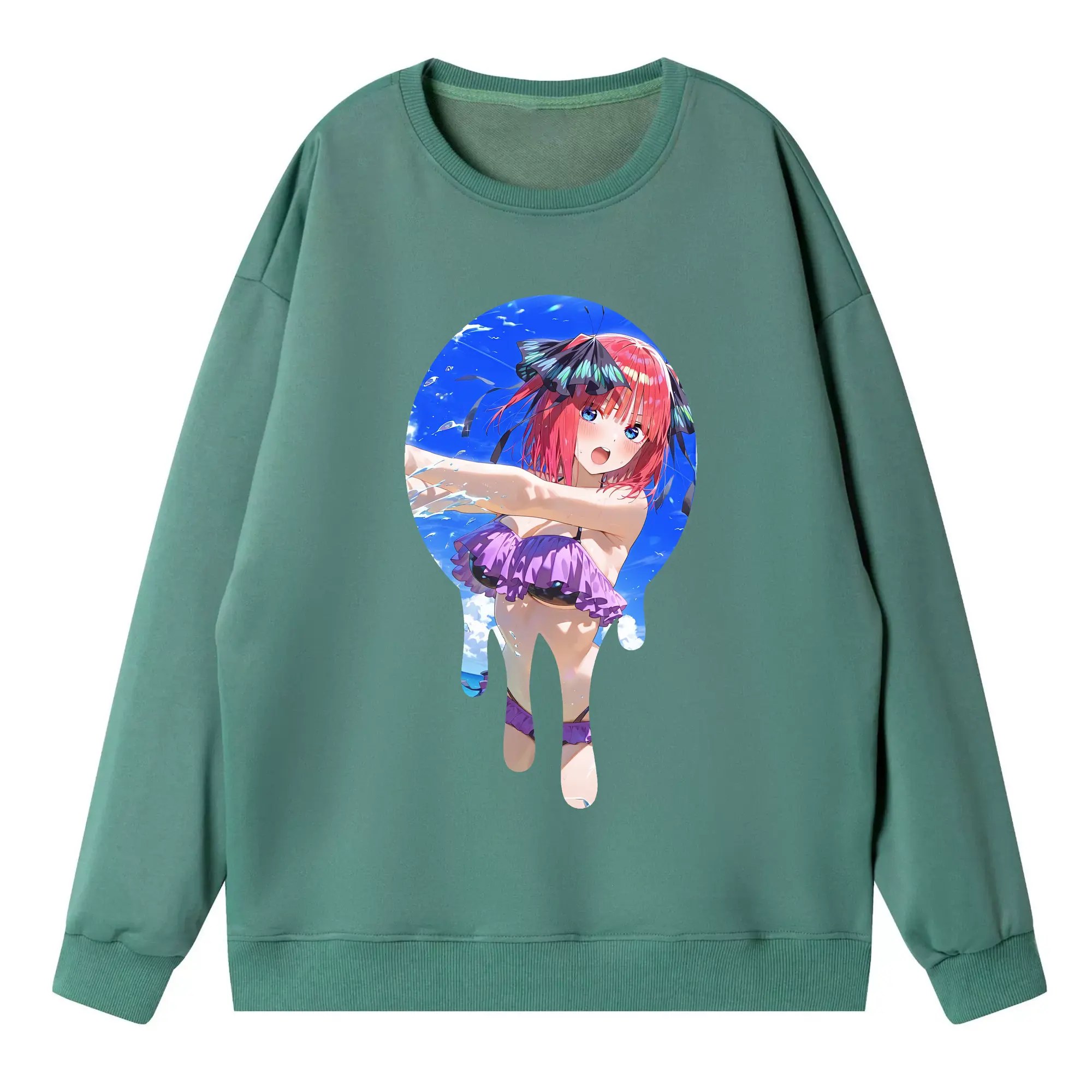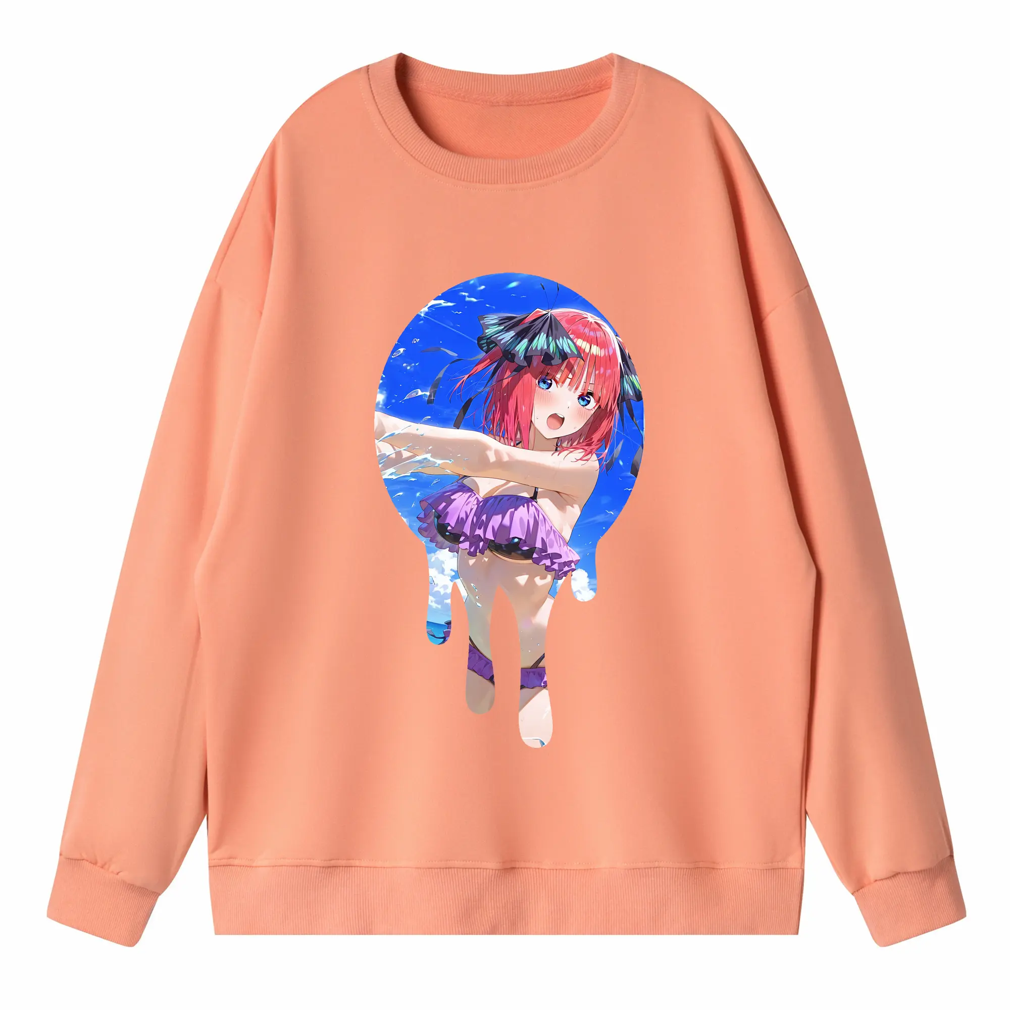 五等分の花嫁 グッズ 中野 二乃 - 高品質 クルーネック スウェット ・ コットン59% ポリエステル41% ・ ユニセックス 長袖 トレーナー ・ カジュアル デイリー スポーツ 散歩用