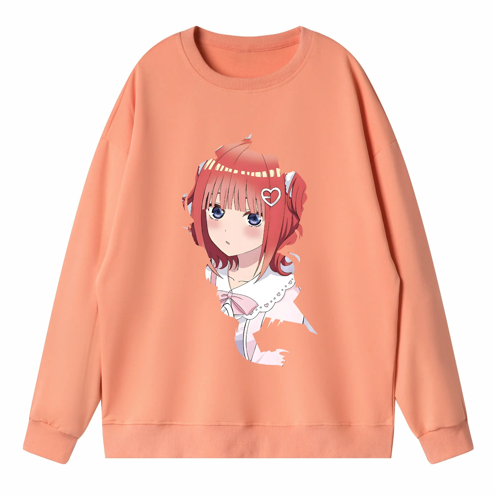 五等分の花嫁 グッズ 中野 二乃 - 高品質 クルーネック スウェット ・ コットン59% ポリエステル41% ・ ユニセックス 長袖 トレーナー ・ カジュアル デイリー スポーツ 散歩用