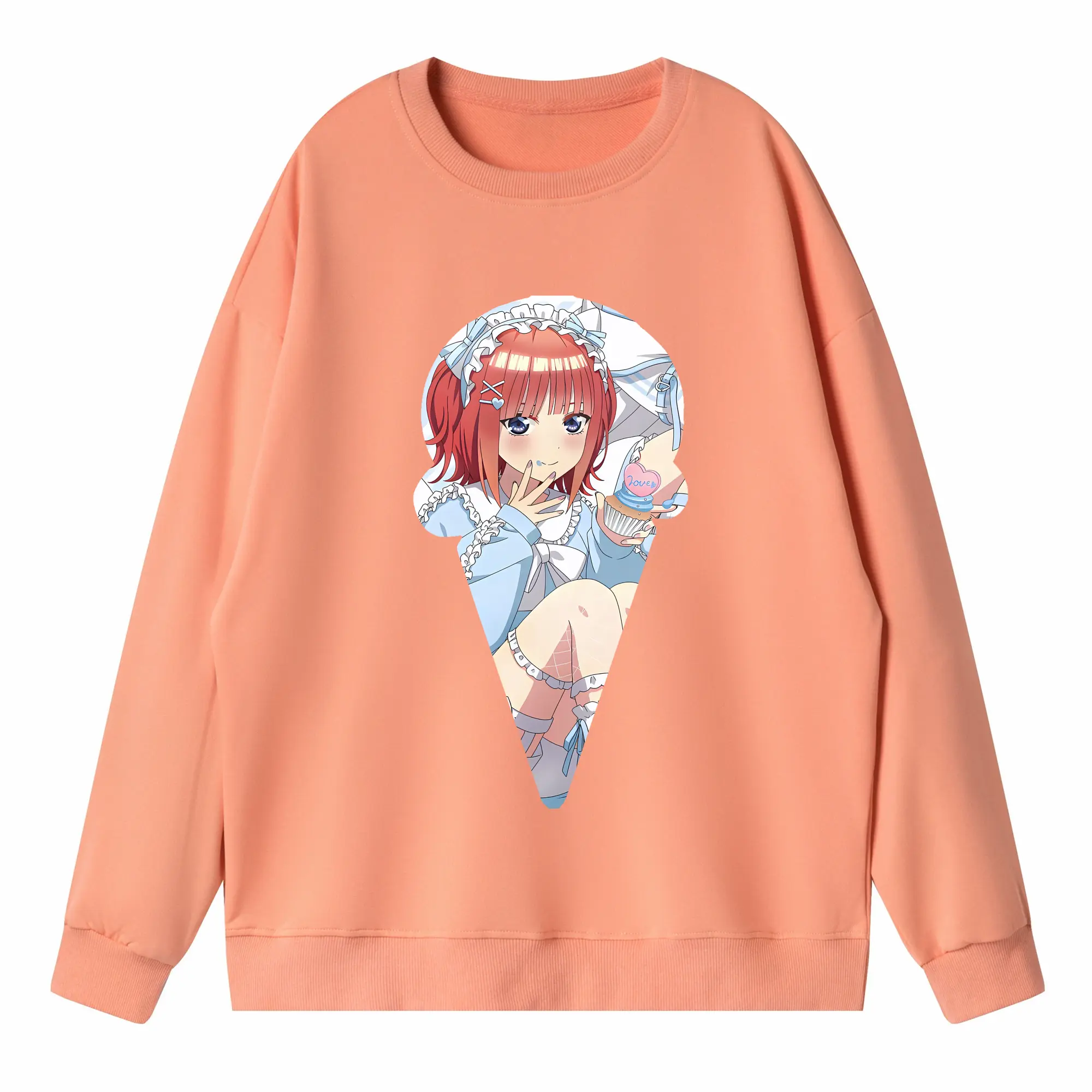 五等分の花嫁 グッズ 中野 二乃 - 高品質 クルーネック スウェット ・ コットン59% ポリエステル41% ・ ユニセックス 長袖 トレーナー ・ カジュアル デイリー スポーツ 散歩用