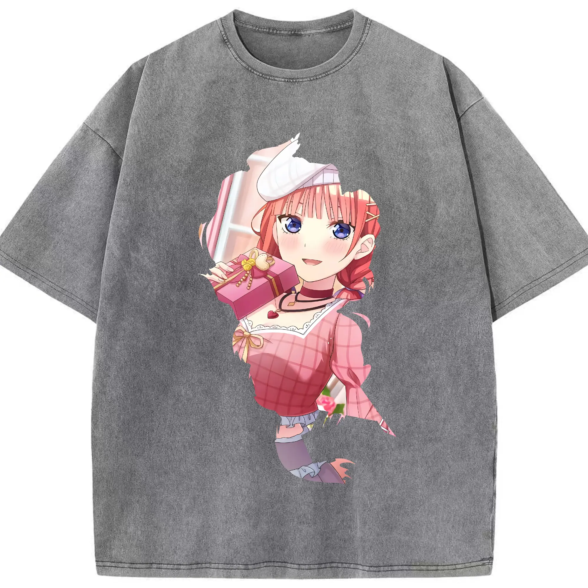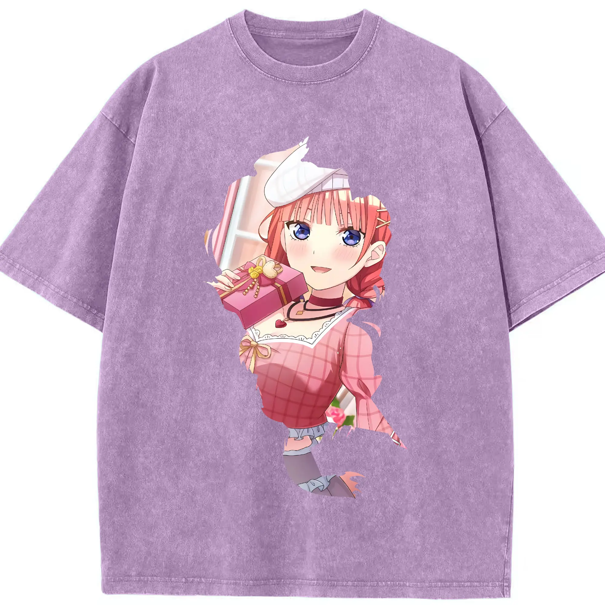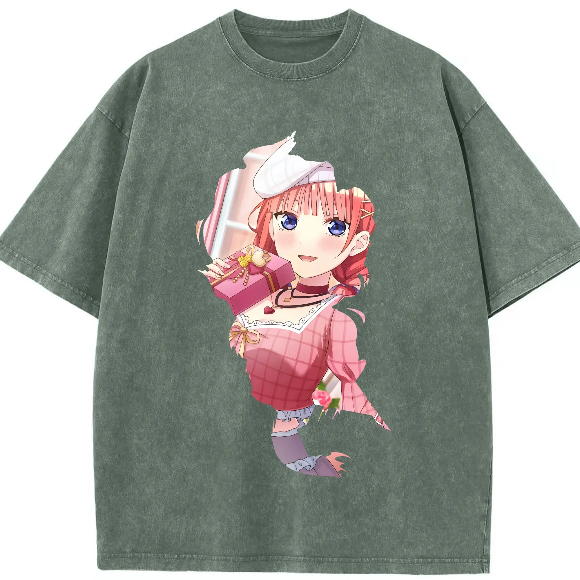 五等分の花嫁 グッズ 中野 二乃 - 綿100% ヴィンテージ風 半袖Tシャツ ・ 背面プリント ・ 柔らか肌触り ・ 通気性 快適 ・ スポーツ カジュアル 外出用