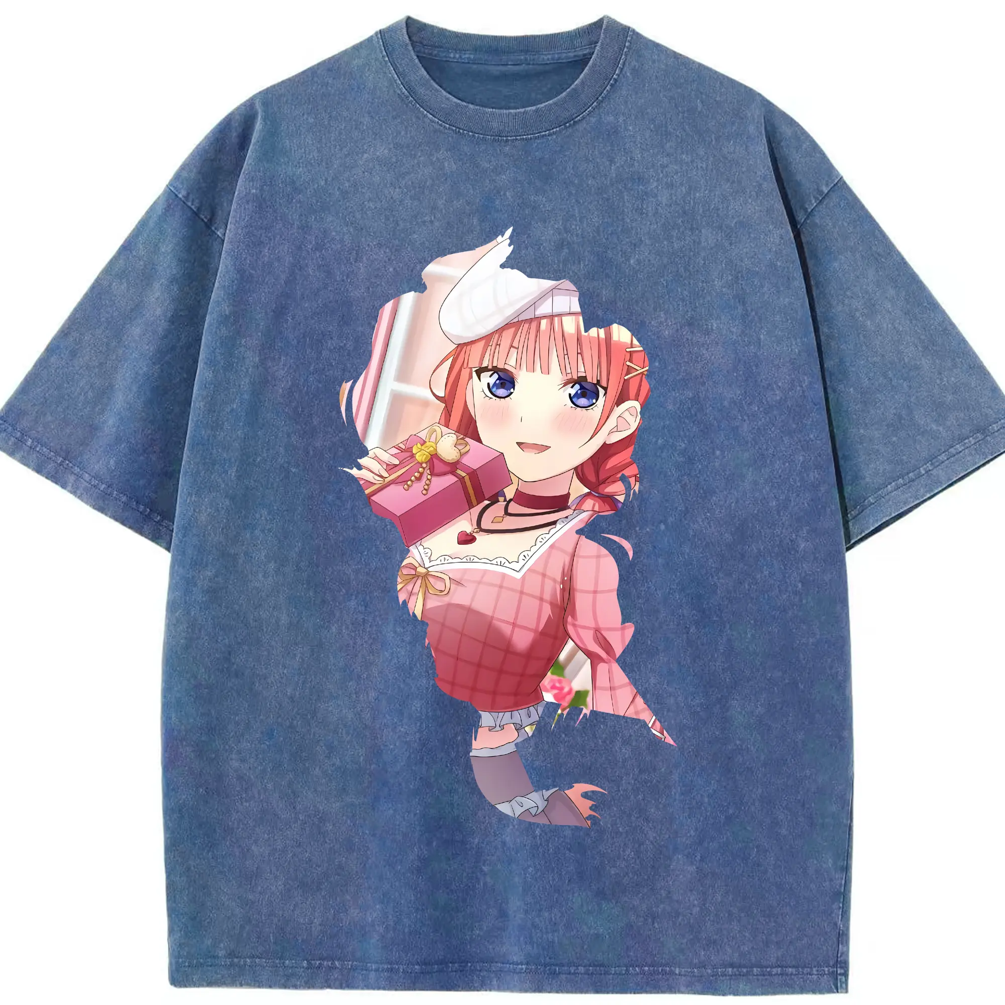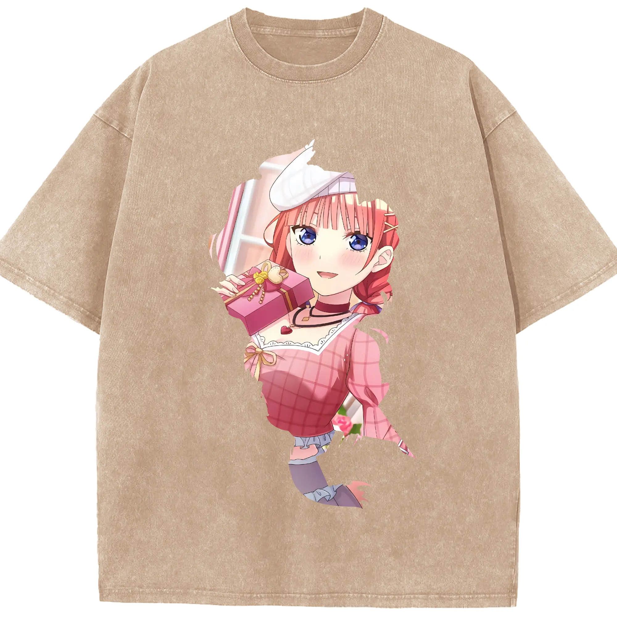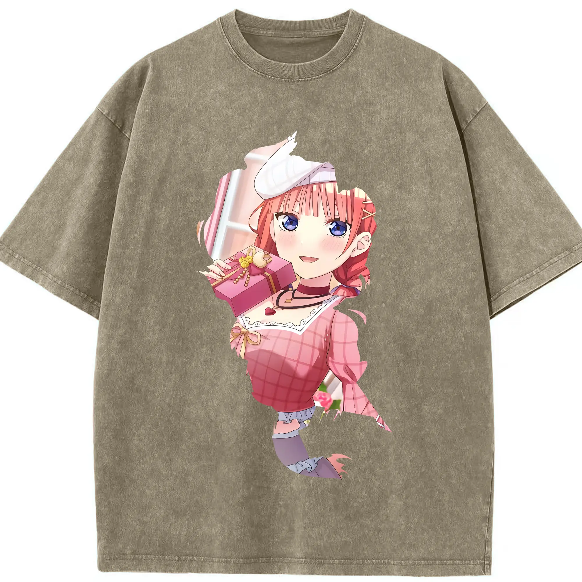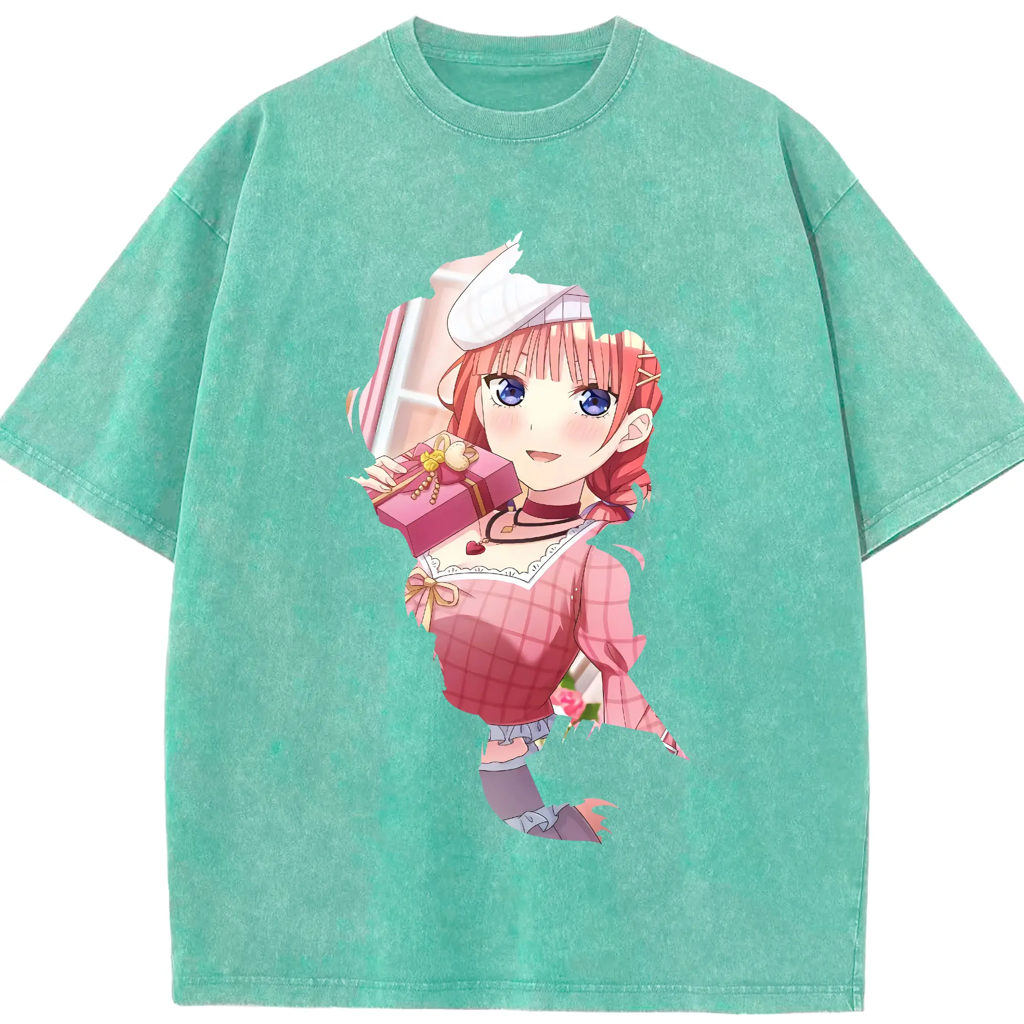 五等分の花嫁 グッズ 中野 二乃 - 綿100% ヴィンテージ風 半袖Tシャツ ・ 背面プリント ・ 柔らか肌触り ・ 通気性 快適 ・ スポーツ カジュアル 外出用