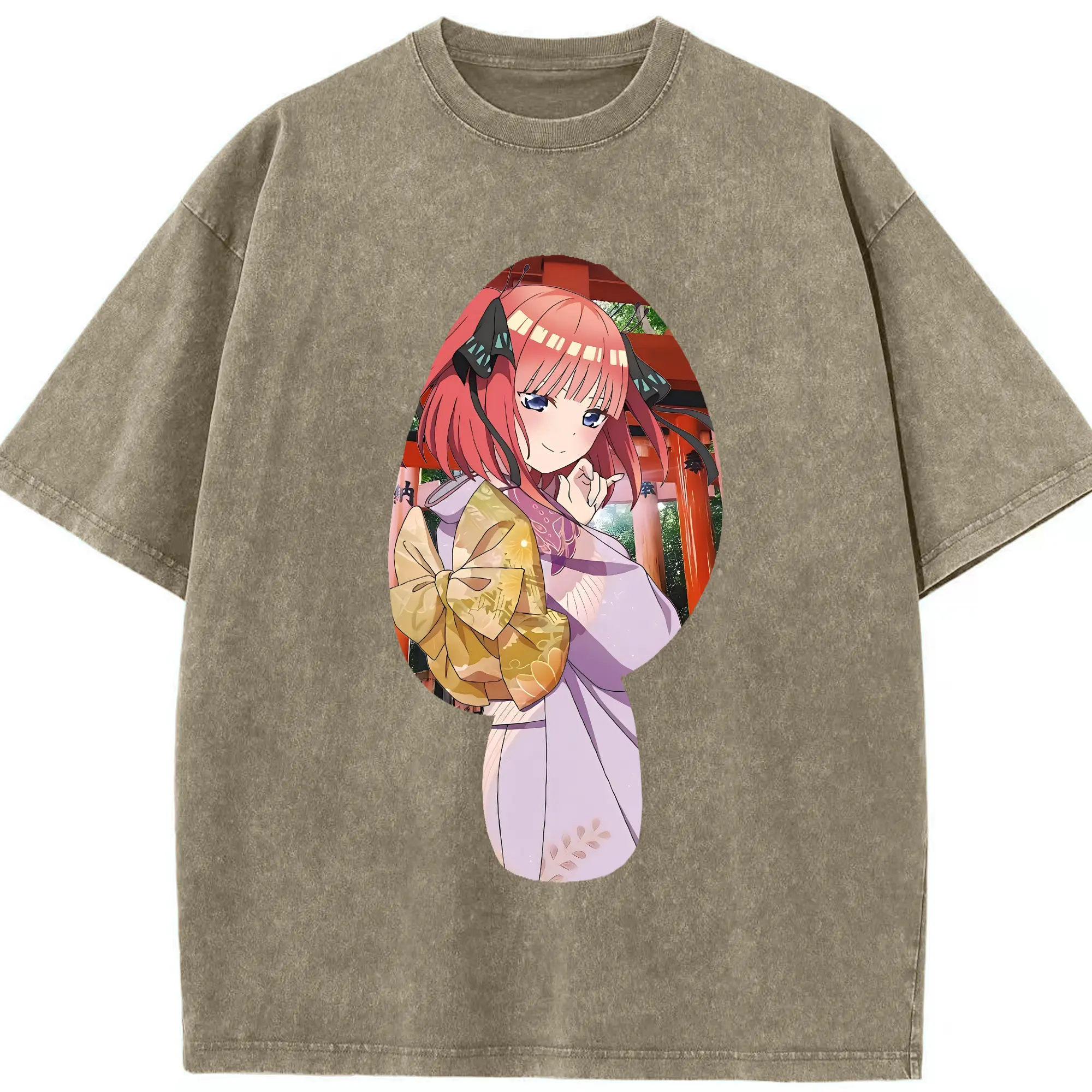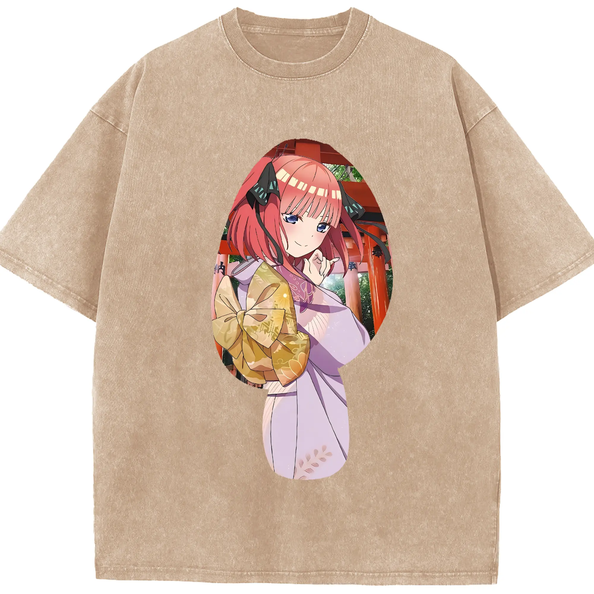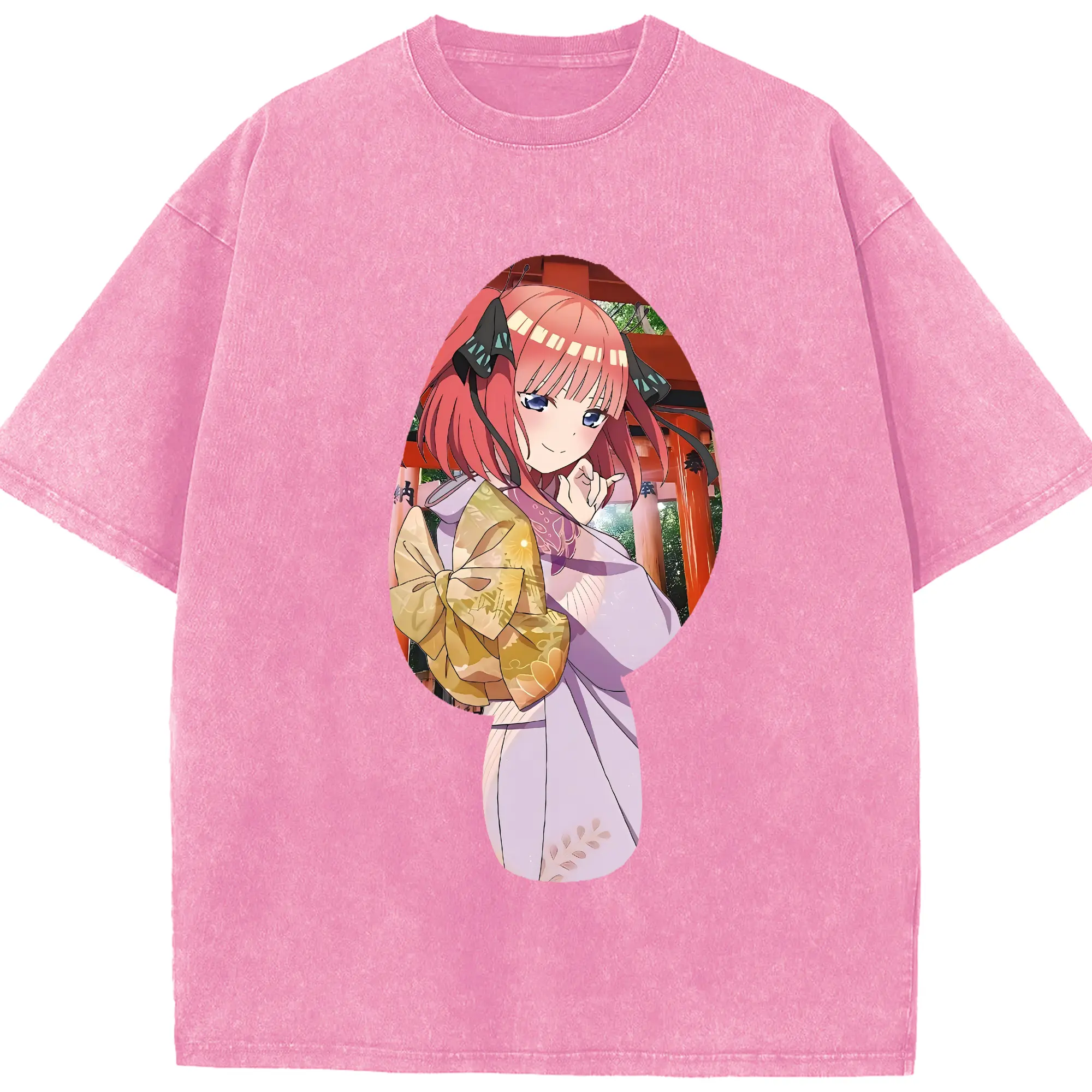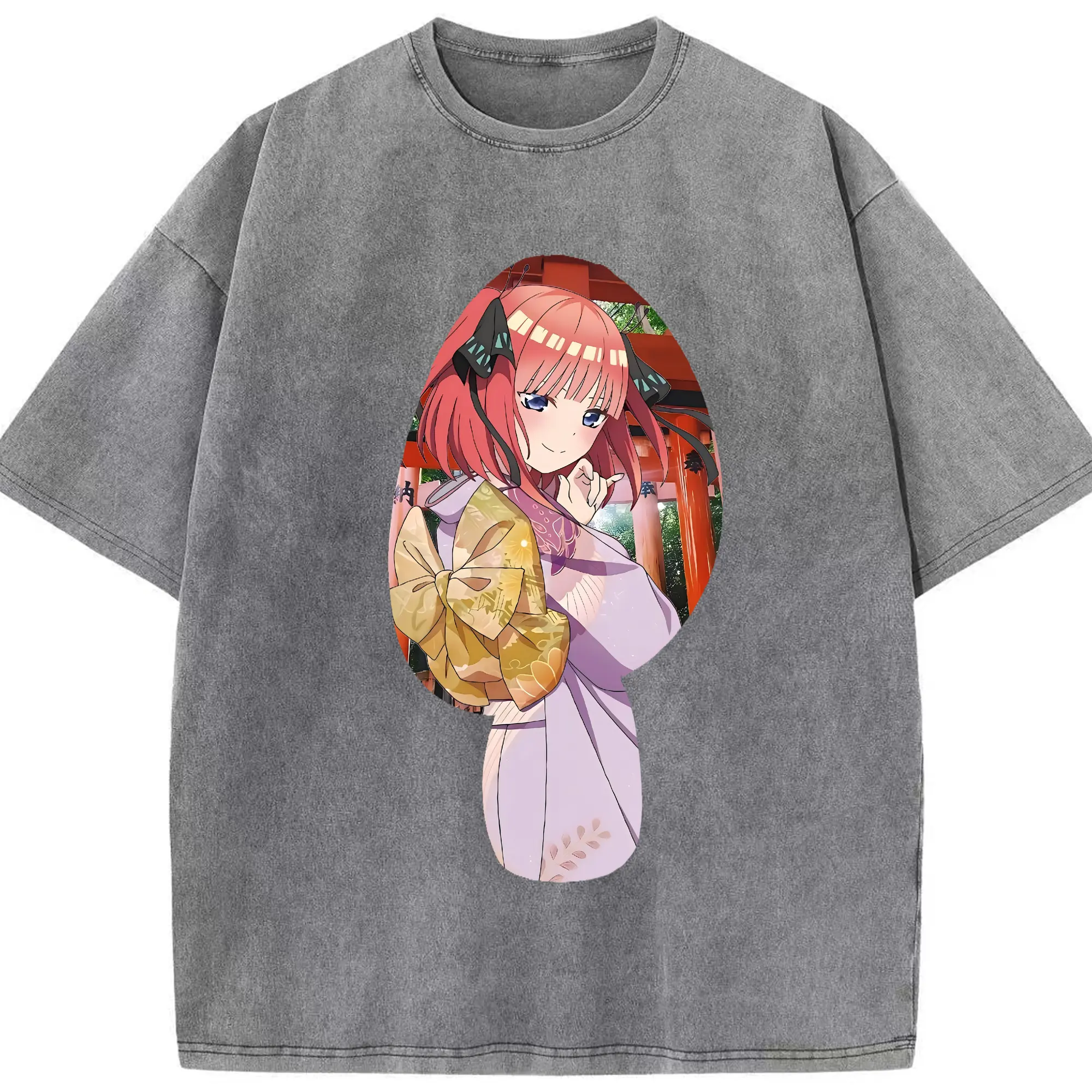 五等分の花嫁 グッズ 中野 二乃 - 綿100% ヴィンテージ風 半袖Tシャツ ・ 背面プリント ・ 柔らか肌触り ・ 通気性 快適 ・ スポーツ カジュアル 外出用