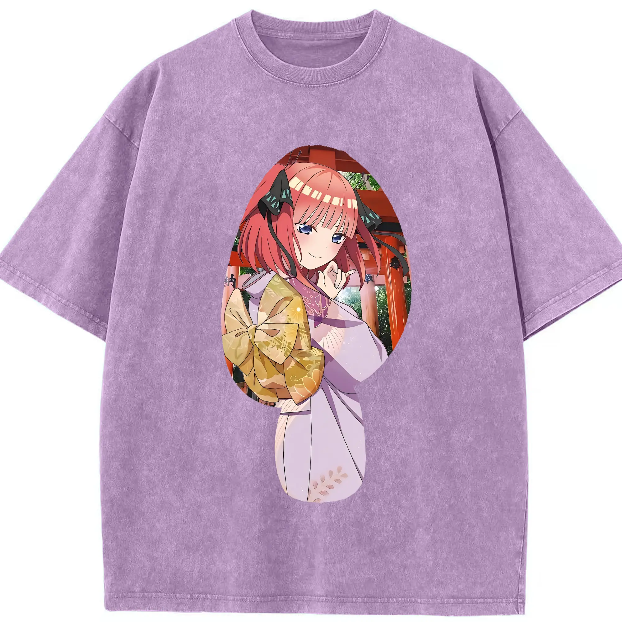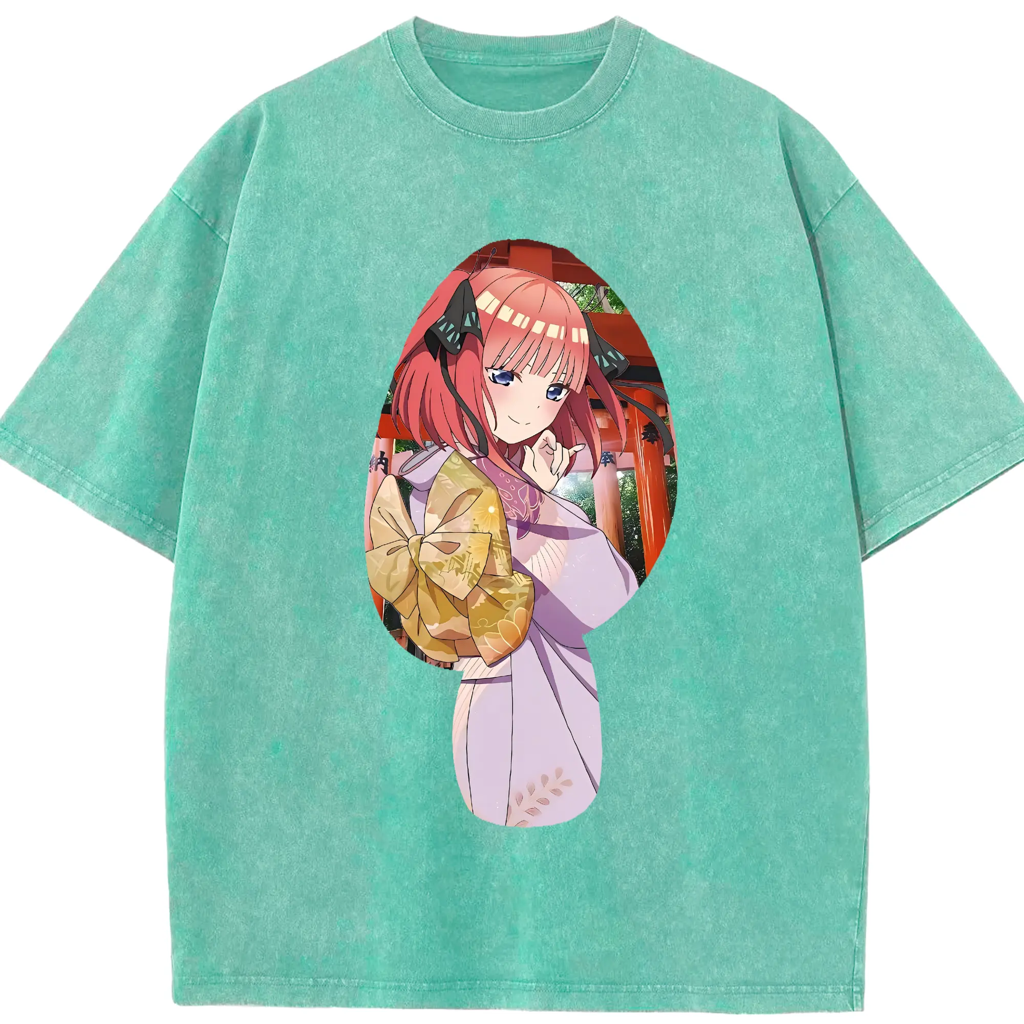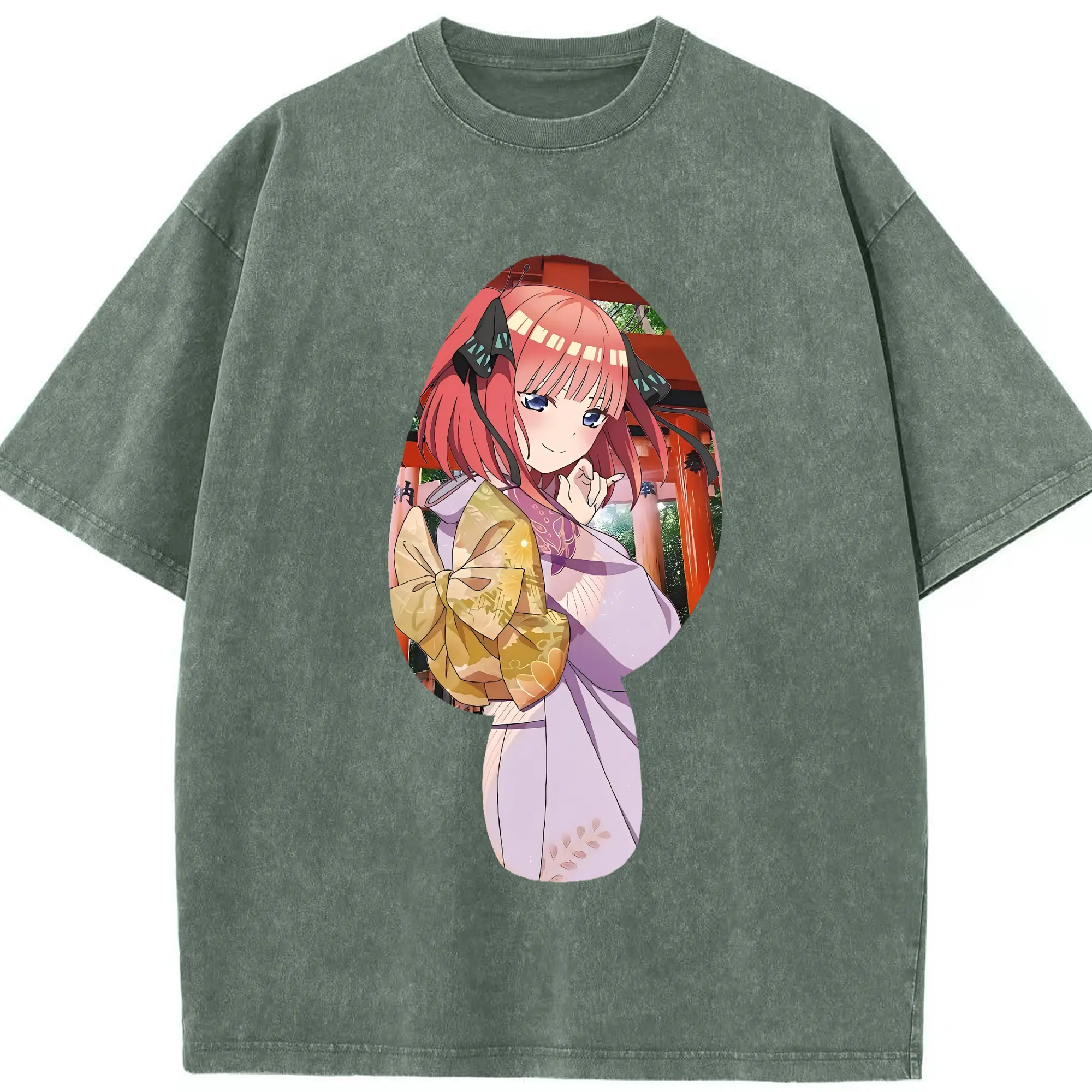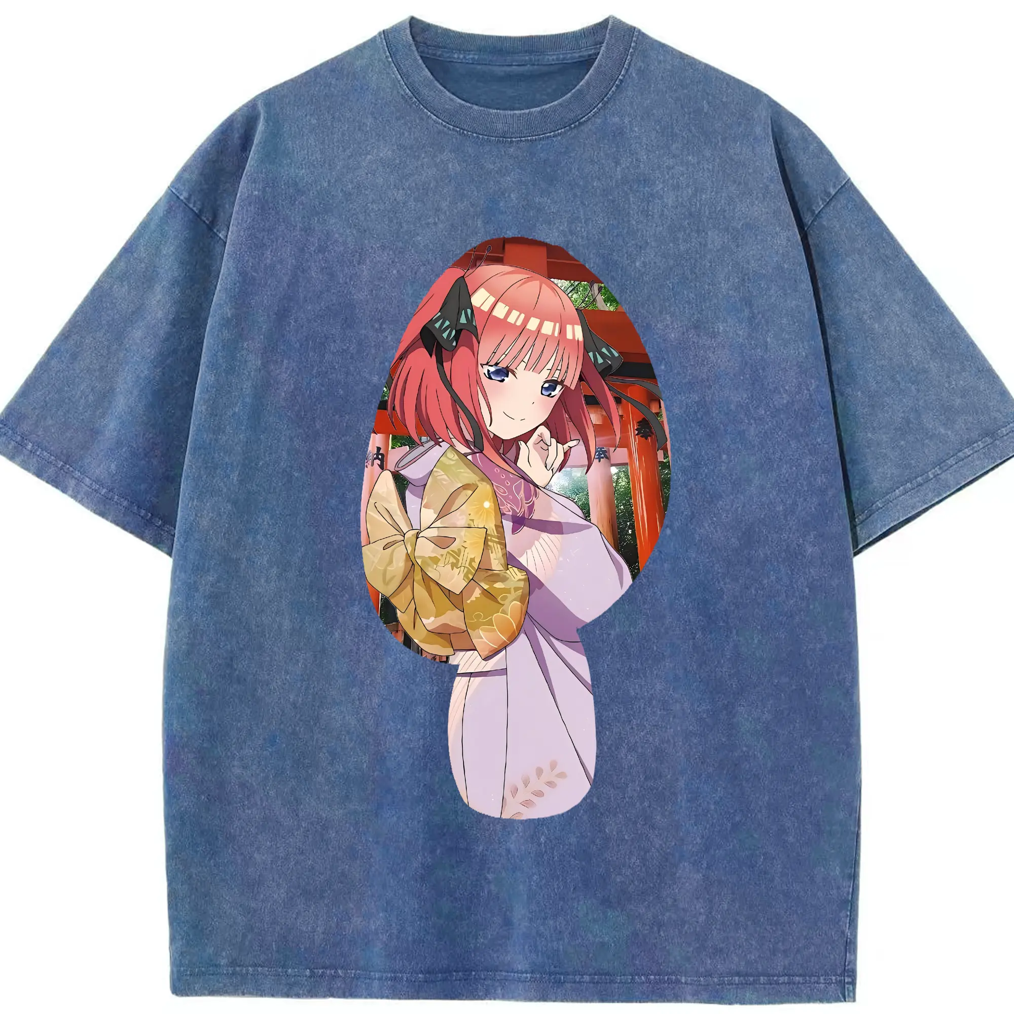 五等分の花嫁 グッズ 中野 二乃 - 綿100% ヴィンテージ風 半袖Tシャツ ・ 背面プリント ・ 柔らか肌触り ・ 通気性 快適 ・ スポーツ カジュアル 外出用