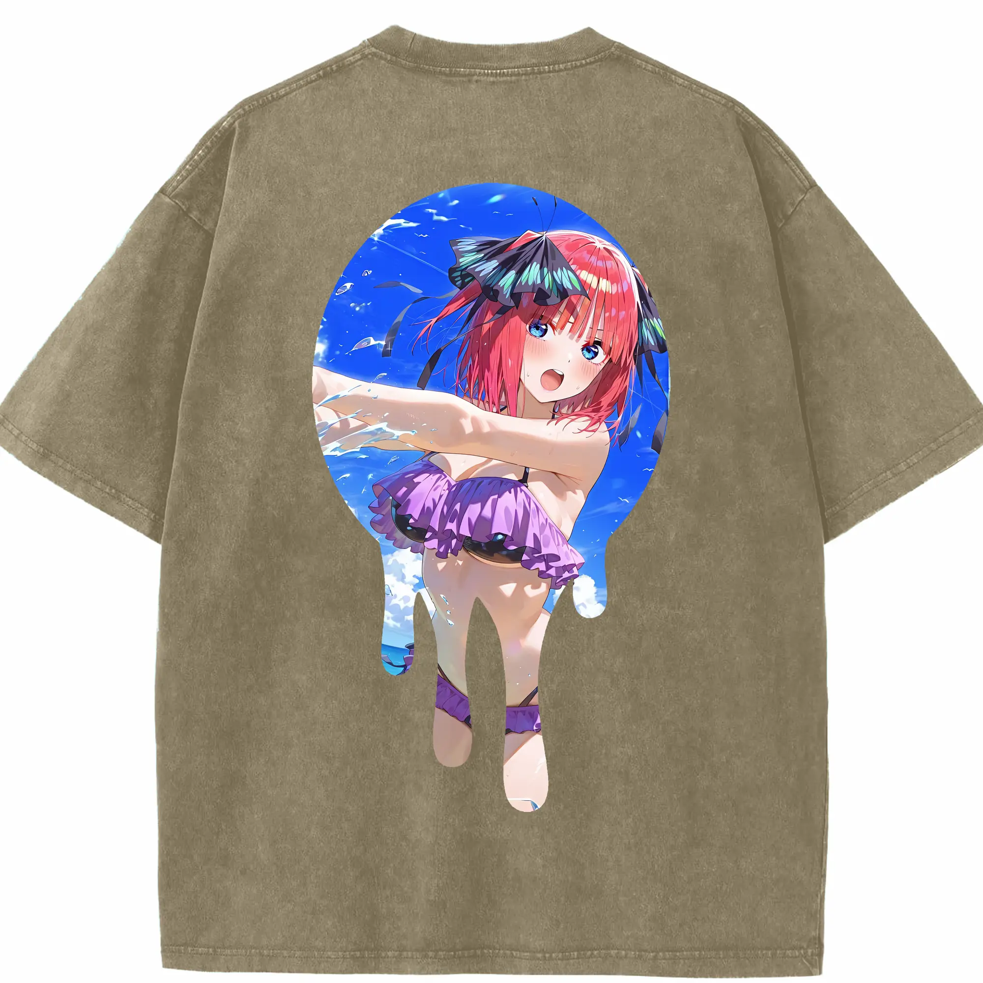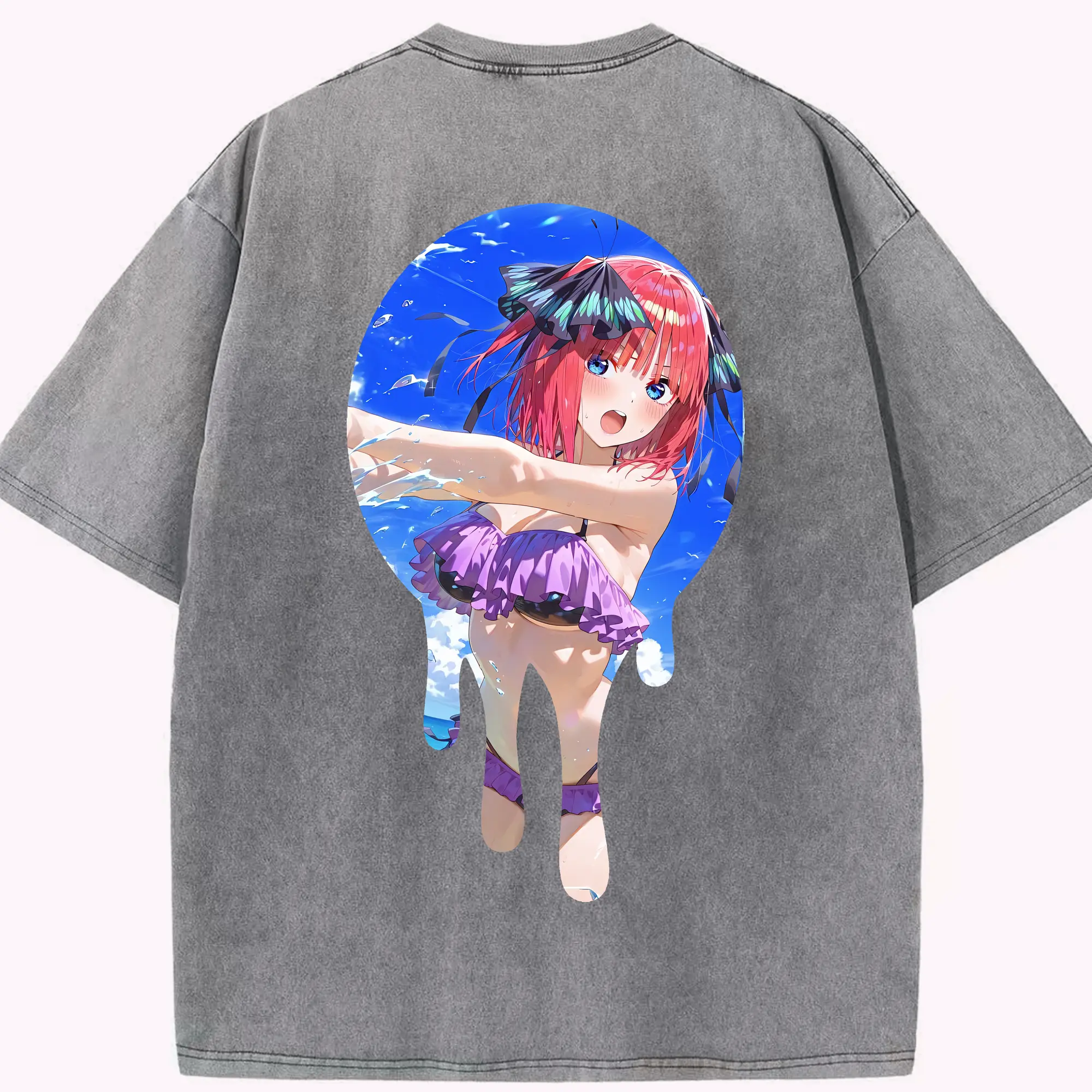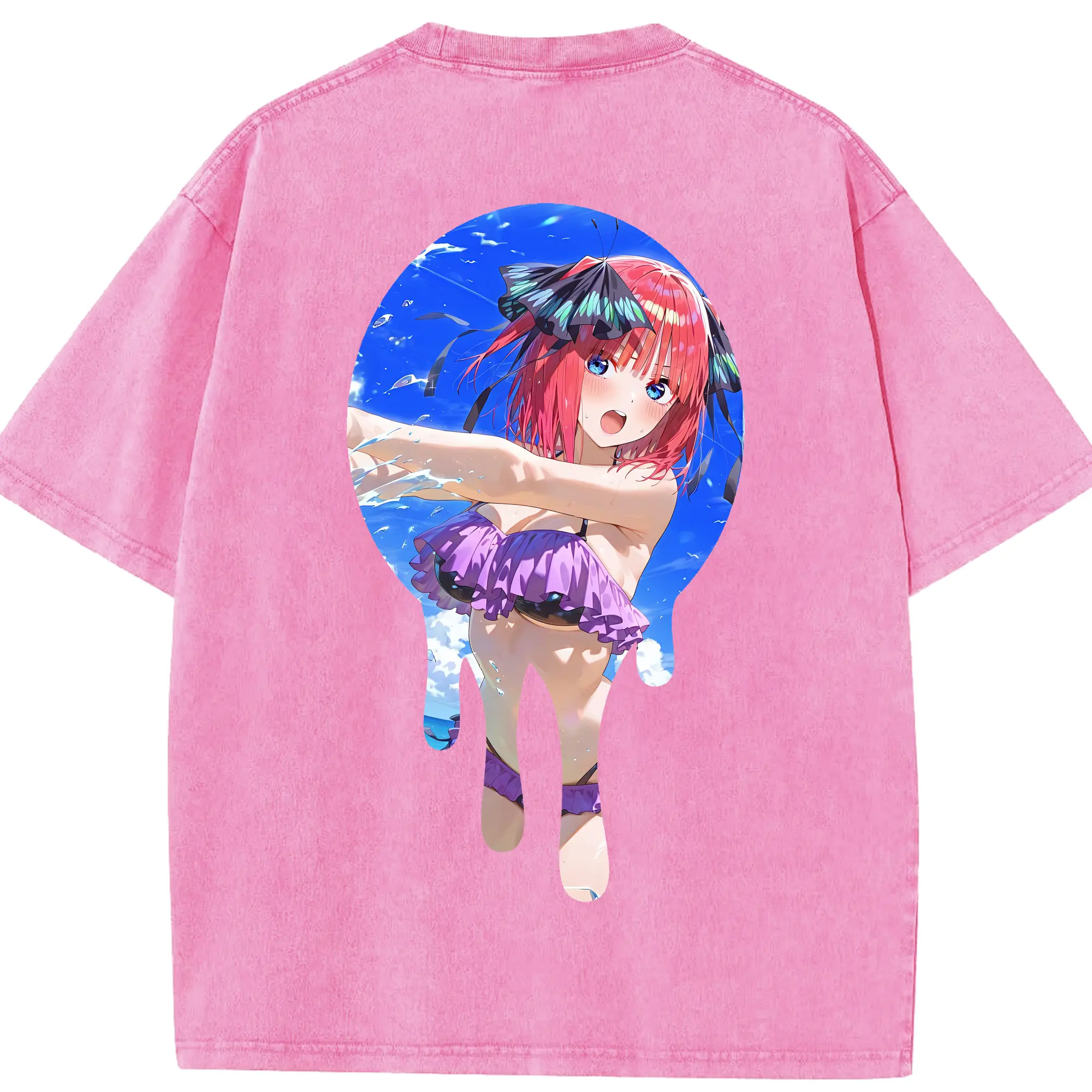 五等分の花嫁 グッズ 中野 二乃 - 綿100% 半袖Tシャツ ・ バックプリント ・ 快適 通気性 ・ 日常使い 散歩 スポーツ用