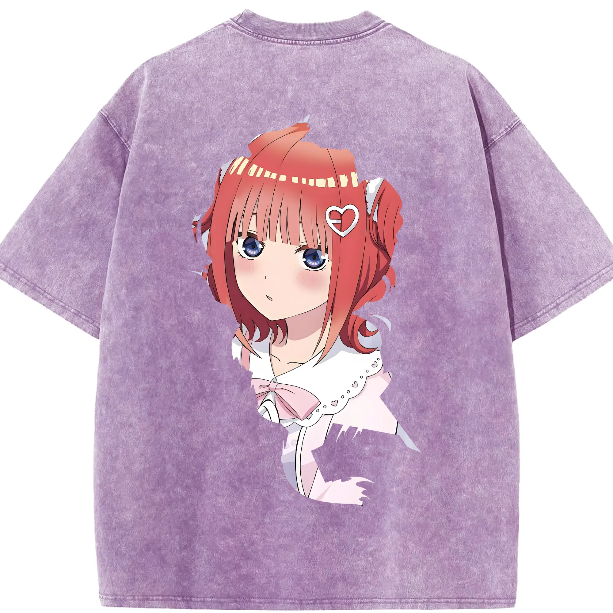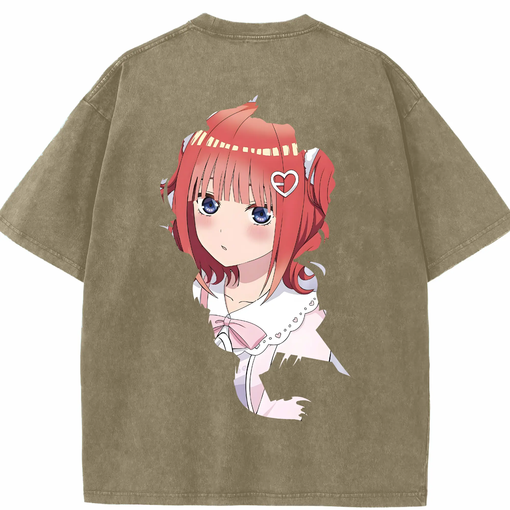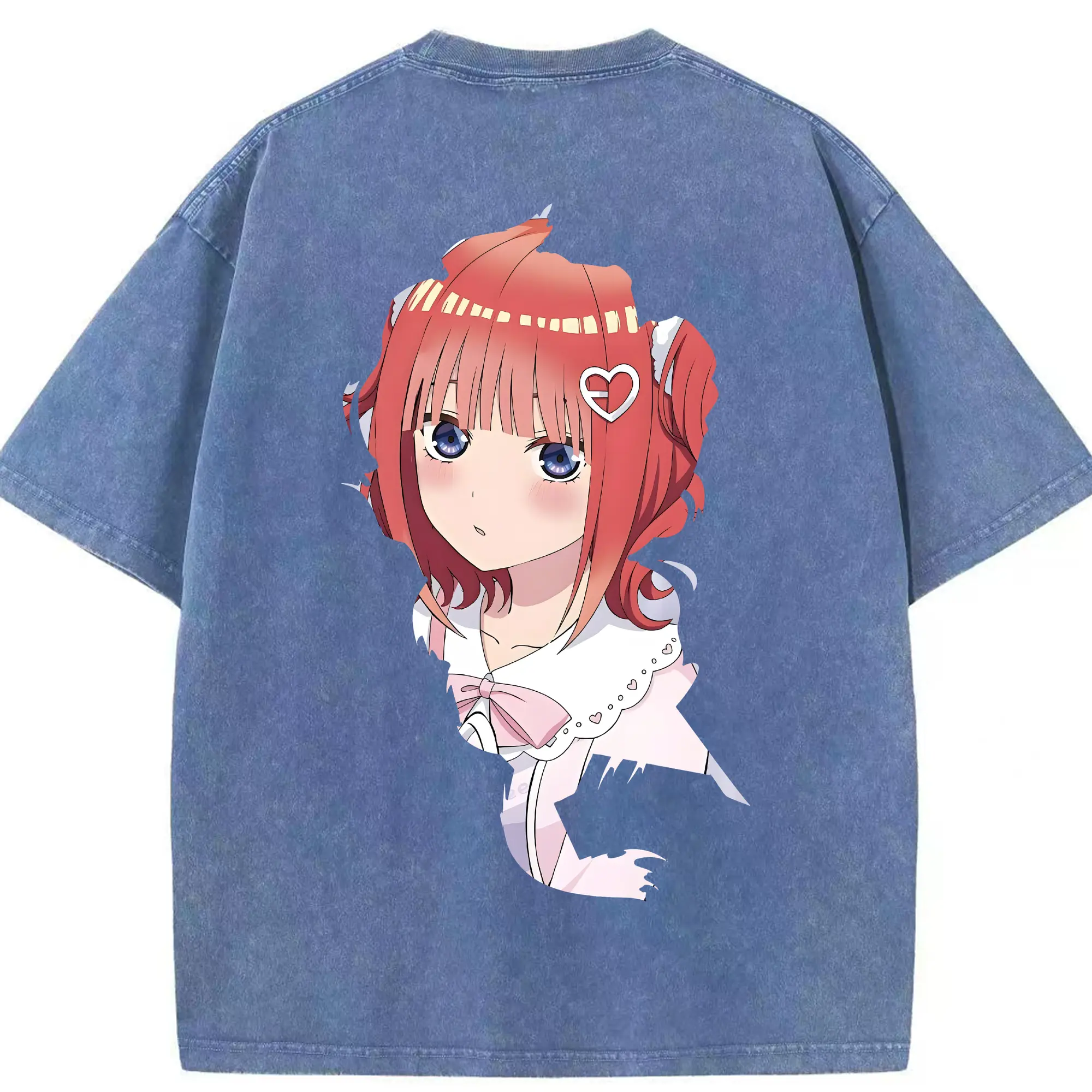 五等分の花嫁 グッズ 中野 二乃 - 綿100% ヴィンテージ風 半袖Tシャツ ・ フロントプリント ・ 柔らか肌触り ・ 通気性 快適 ・ スポーツ カジュアル 外出用