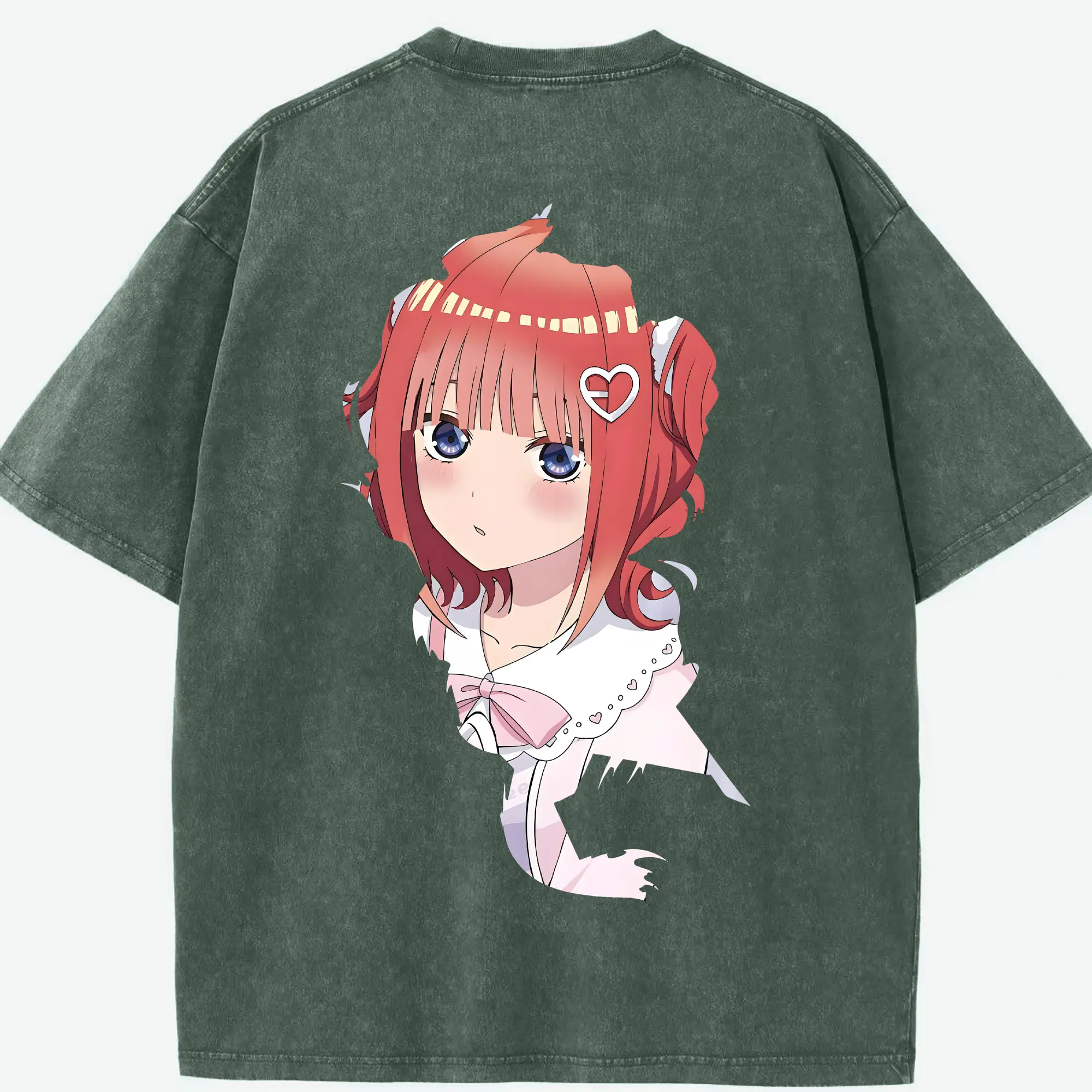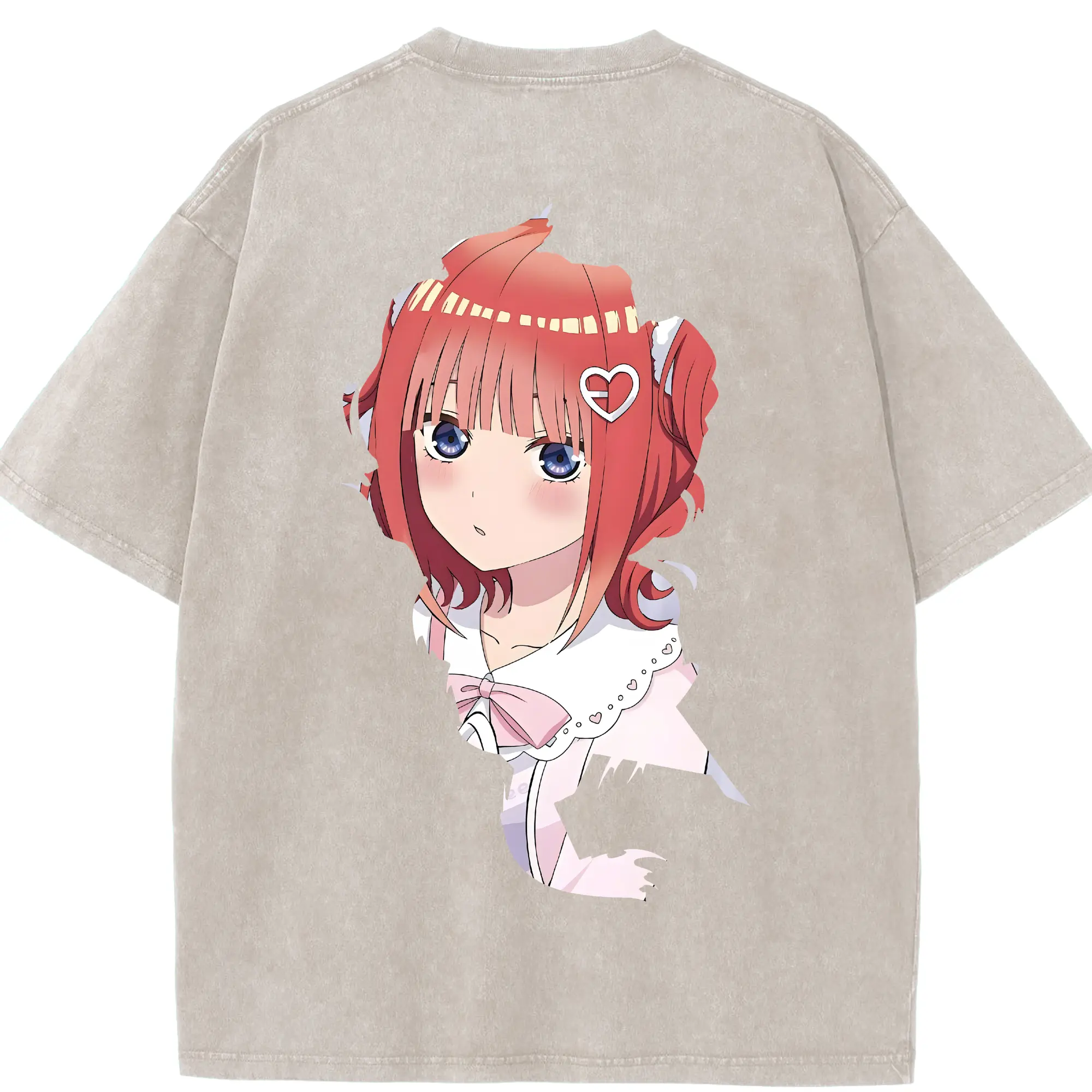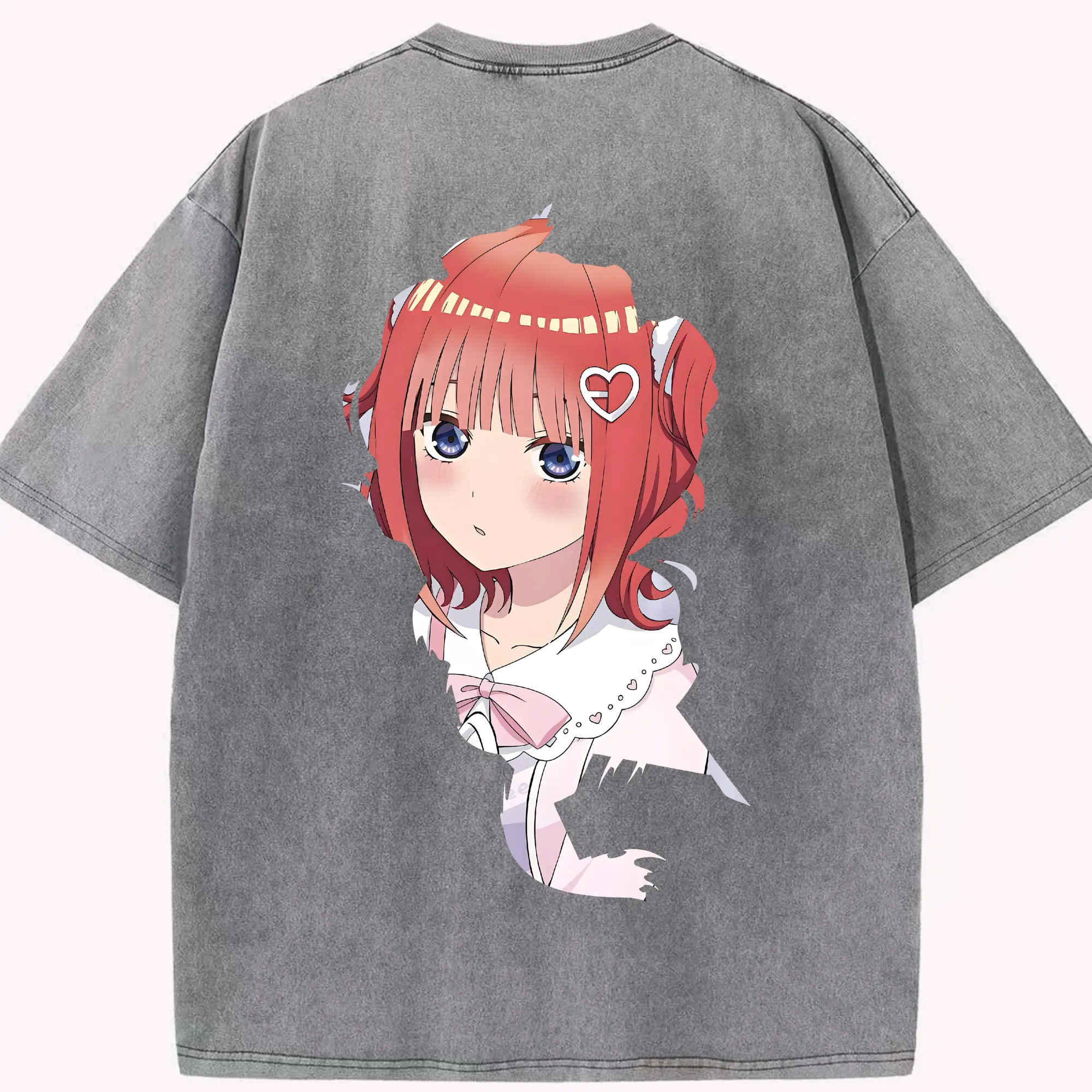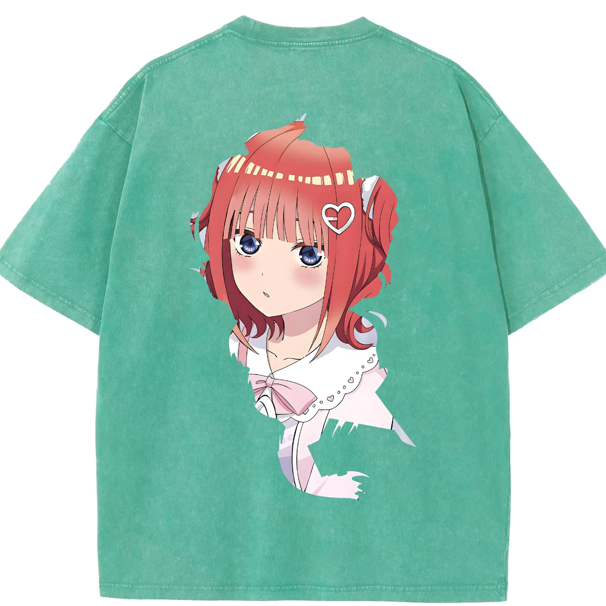 五等分の花嫁 グッズ 中野 二乃 - 綿100% ヴィンテージ風 半袖Tシャツ ・ フロントプリント ・ 柔らか肌触り ・ 通気性 快適 ・ スポーツ カジュアル 外出用