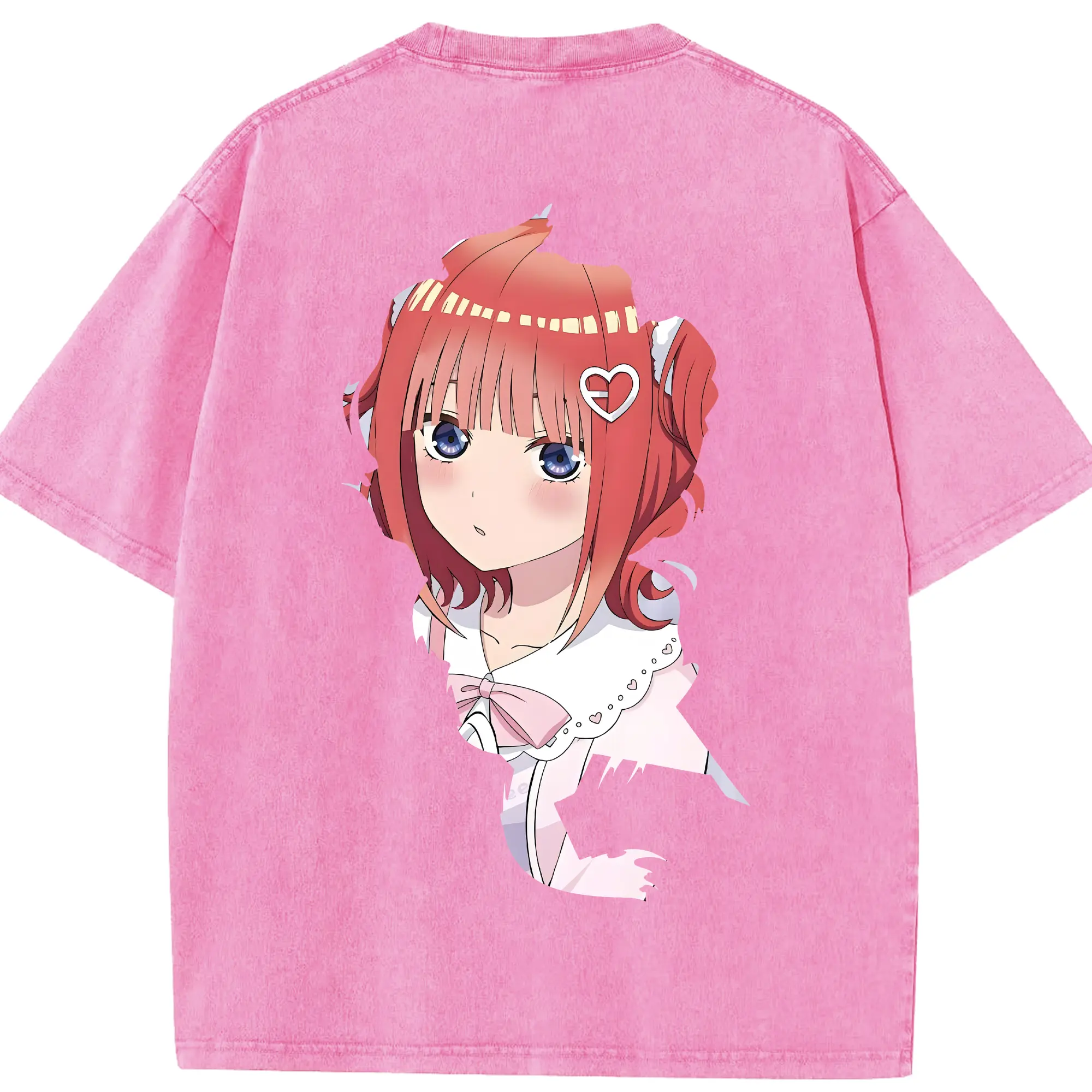 五等分の花嫁 グッズ 中野 二乃 - 綿100% 半袖Tシャツ ・ バックプリント ・ 快適 通気性 ・ 日常使い 散歩 スポーツ用